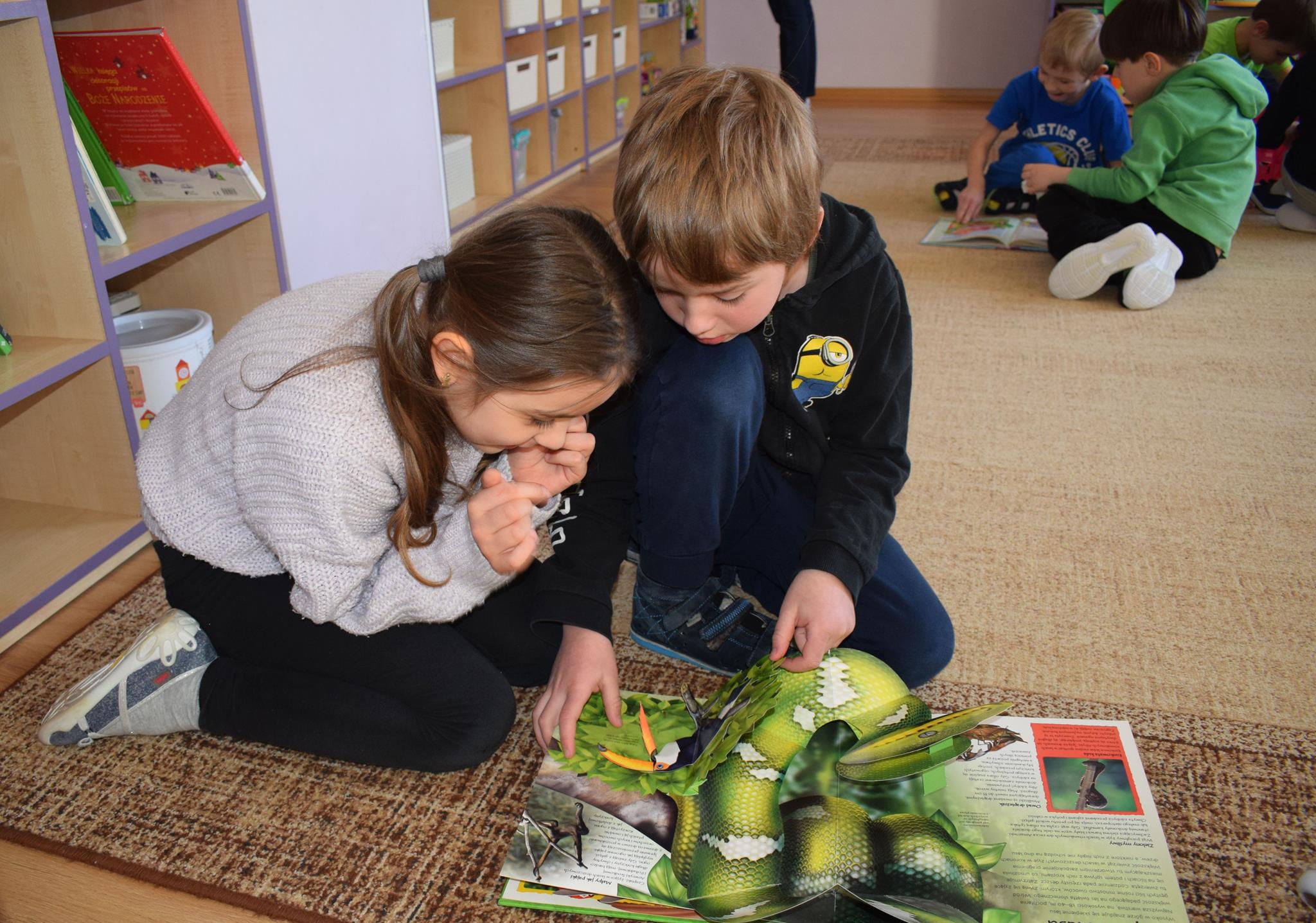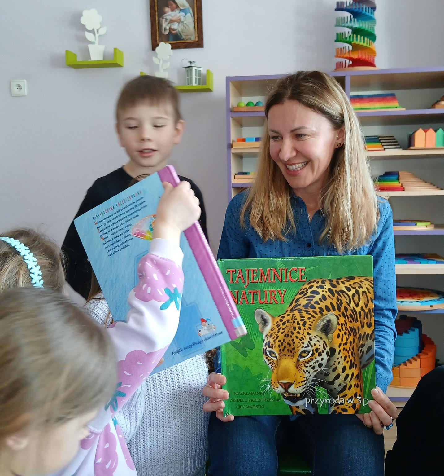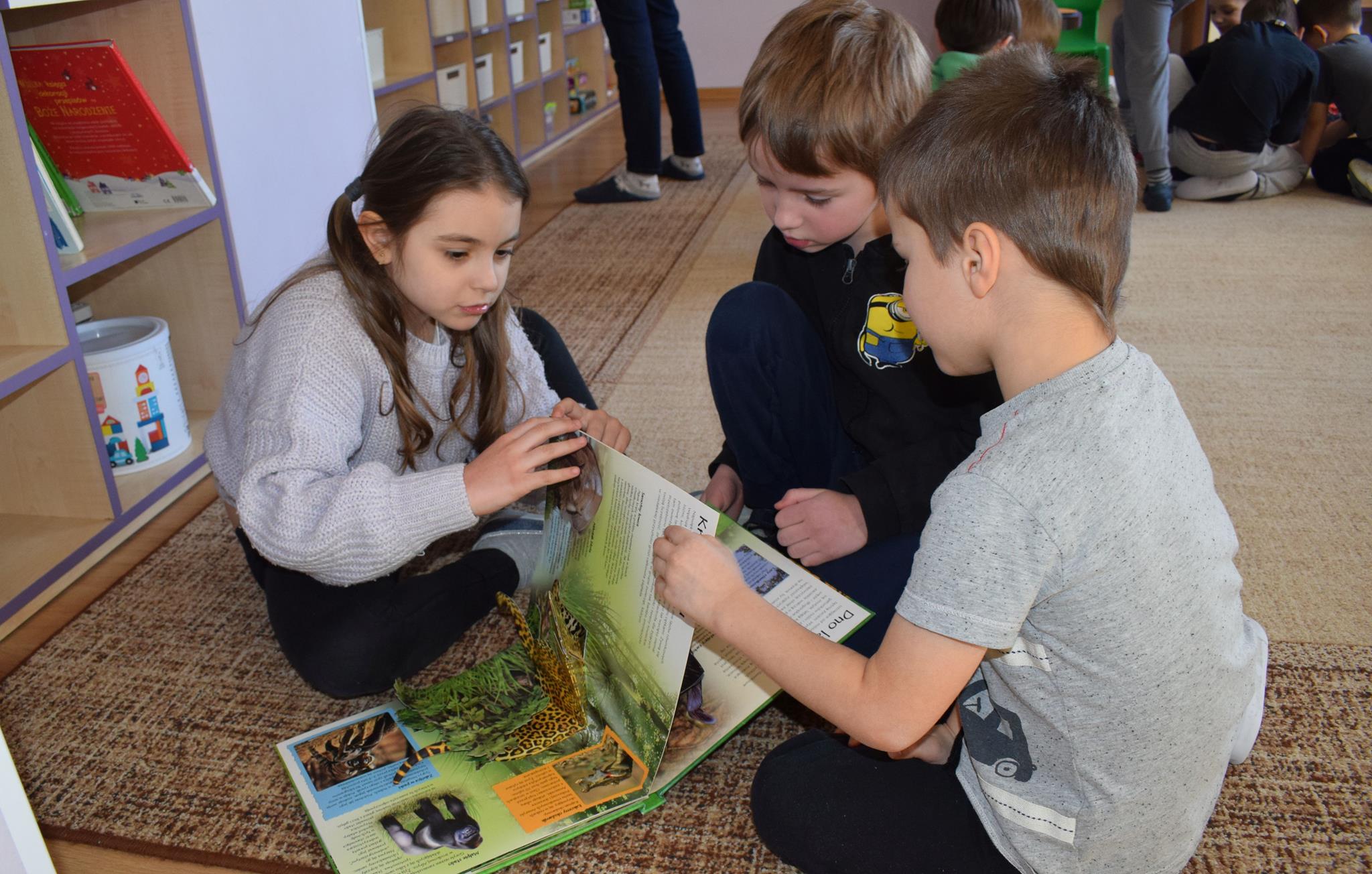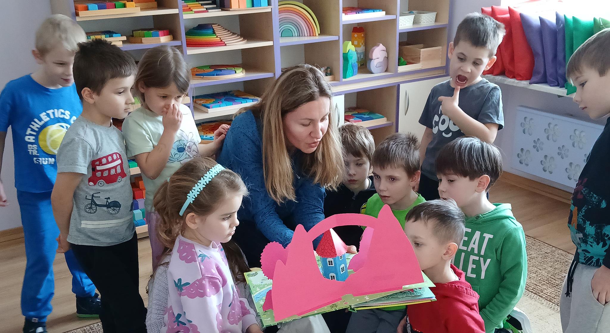 W ramach programu Rodzice Dzieciom gościliśmy w grupie Sówek mamę Iwa – panią Karinę. Pani Karina przygotowała dla dzieci wiele niespodzianek czytelniczych. Najpierw dzięki książce Tove’a Janssona pt. „Muminki szukają domu” z trójwymiarowymi obrazkami przenieśliśmy się do krainy Muminków. Następnie „odbyliśmy podróż” po wszystkich kontynentach poszerzając wiedzę o zwierzętach egzotycznych. Całość dopełniały kolorowe i autentyczne modele zwierząt zamieszczone w książce pt. „Tajemnice natury – przyroda w 3D”. Stworzyło to naszym przedszkolakom okazję do wymiany informacji o bogactwie świata przyrody i zdobycia nowej wiedzy. Na zakończenie mama Iwa przeczytała kilka wierszyków dla dzieci, które wywołały dużo radości. Bardzo dziękujemy za interesujące i pełne emocji spotkanie.