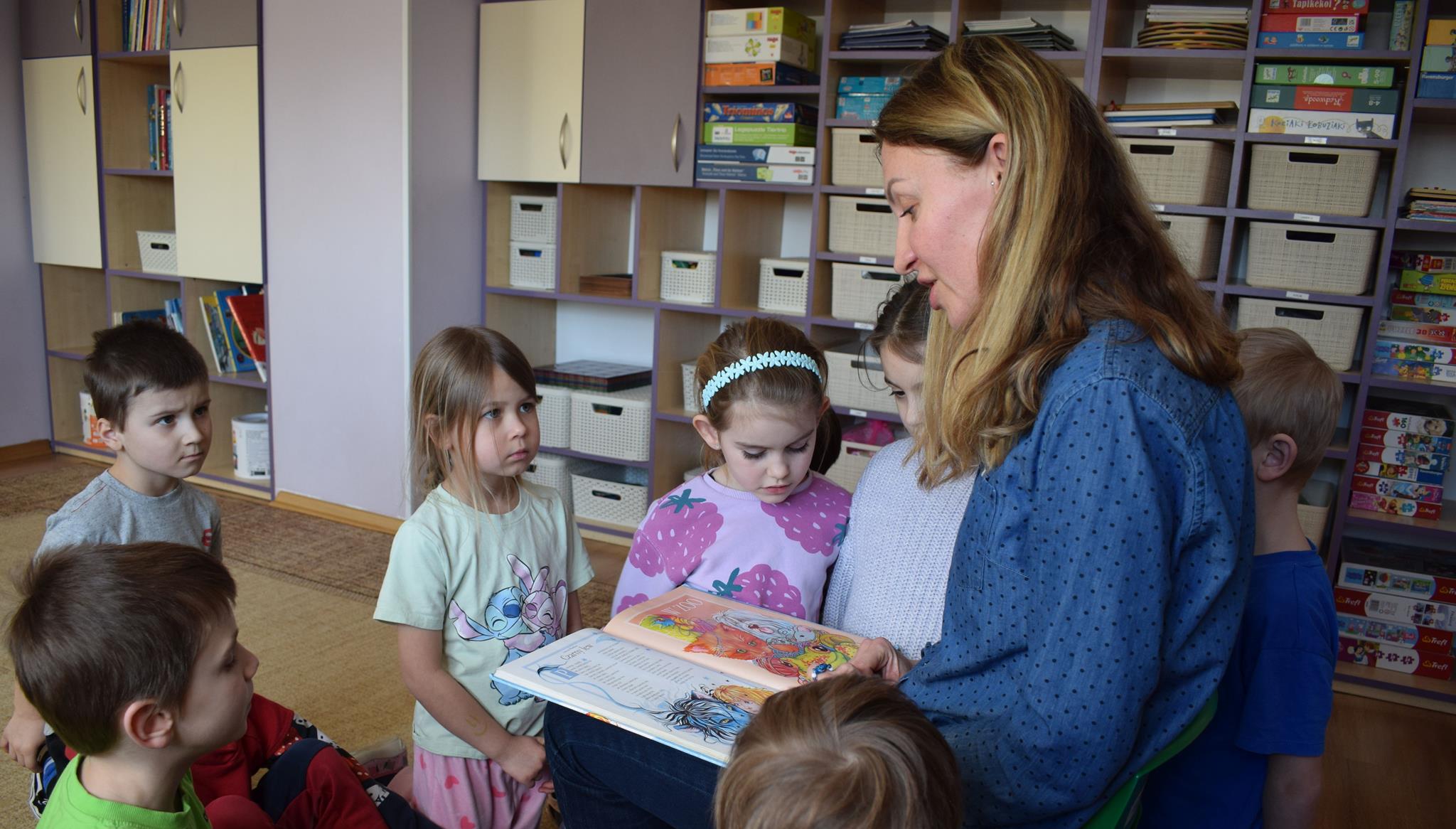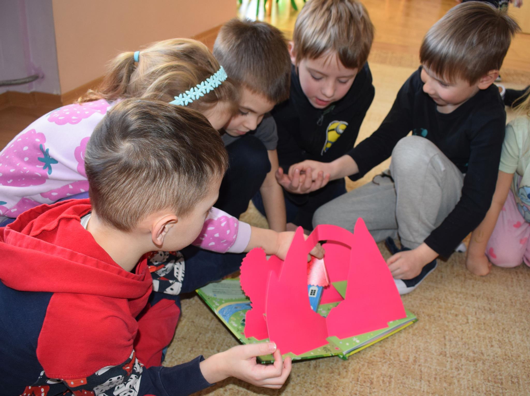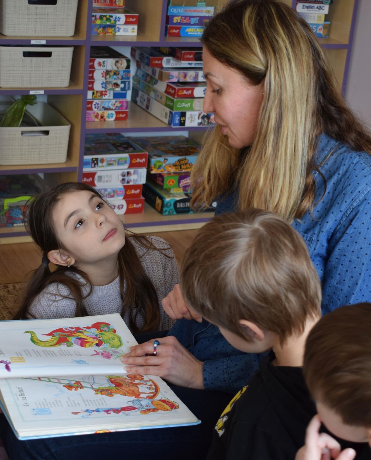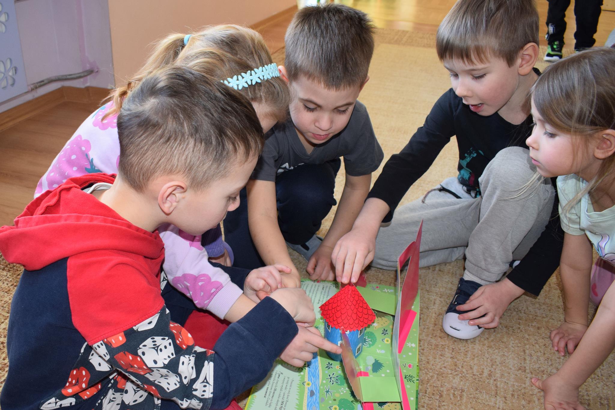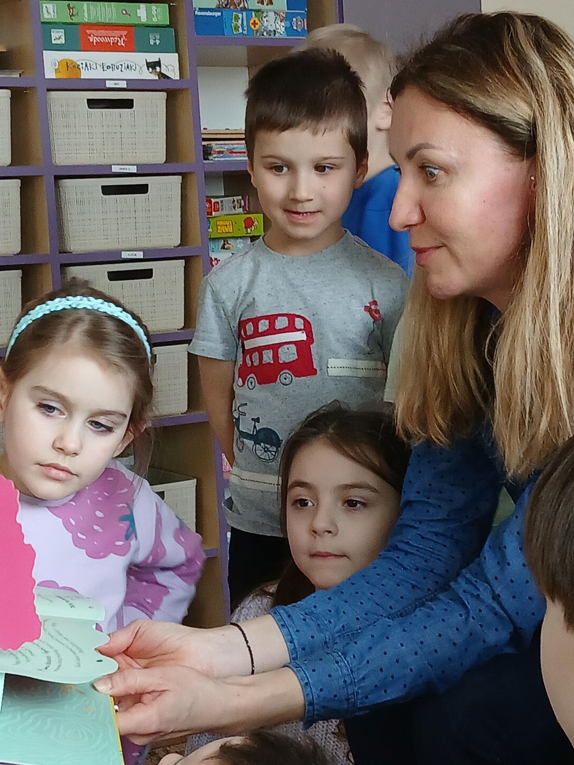 W ramach programu Rodzice Dzieciom gościliśmy w grupie Sówek mamę Iwa – panią Karinę. Pani Karina przygotowała dla dzieci wiele niespodzianek czytelniczych. Najpierw dzięki książce Tove’a Janssona pt. „Muminki szukają domu” z trójwymiarowymi obrazkami przenieśliśmy się do krainy Muminków. Następnie „odbyliśmy podróż” po wszystkich kontynentach poszerzając wiedzę o zwierzętach egzotycznych. Całość dopełniały kolorowe i autentyczne modele zwierząt zamieszczone w książce pt. „Tajemnice natury – przyroda w 3D”. Stworzyło to naszym przedszkolakom okazję do wymiany informacji o bogactwie świata przyrody i zdobycia nowej wiedzy. Na zakończenie mama Iwa przeczytała kilka wierszyków dla dzieci, które wywołały dużo radości. Bardzo dziękujemy za interesujące i pełne emocji spotkanie.