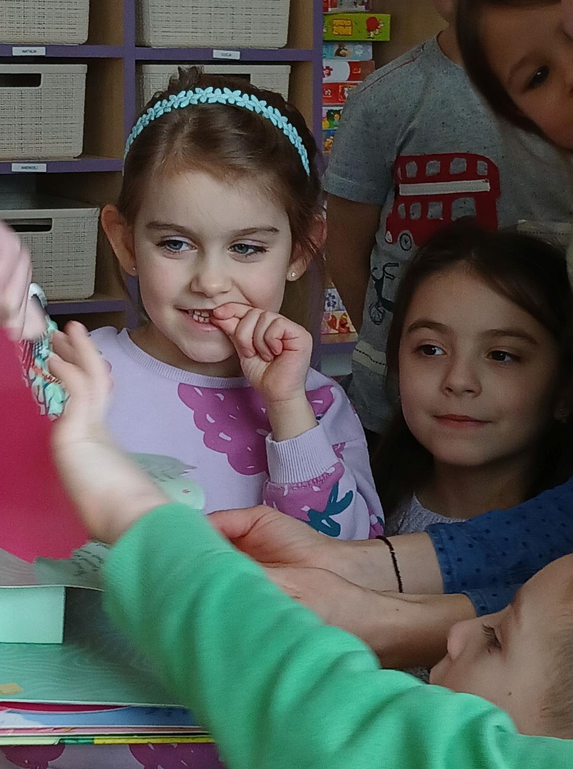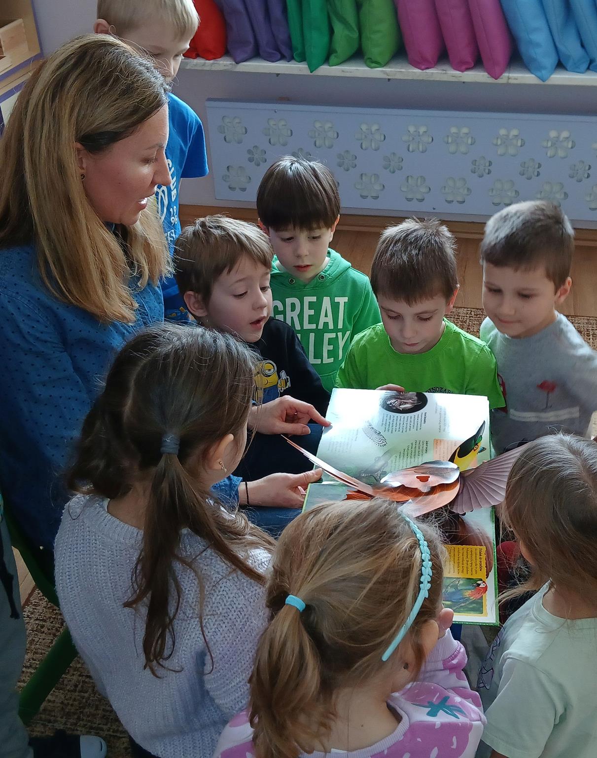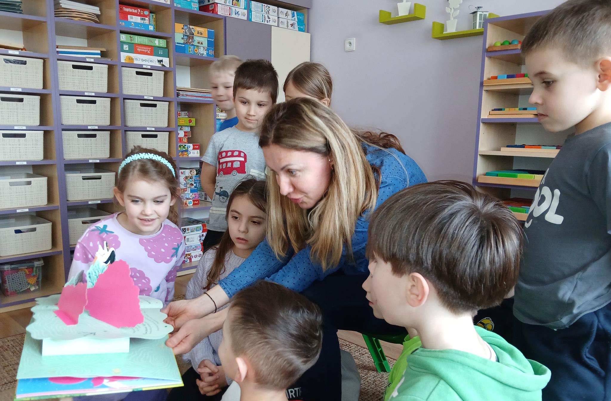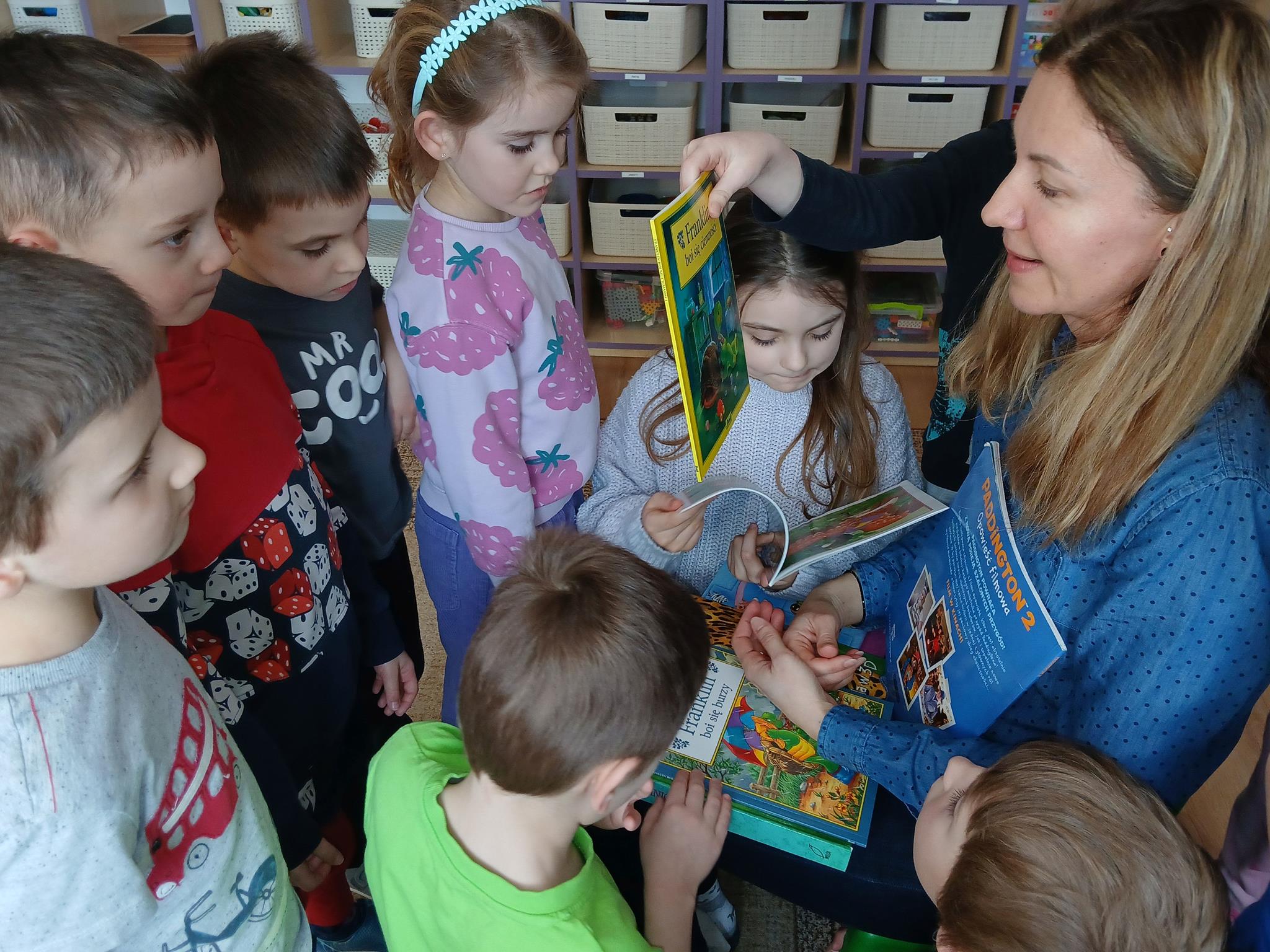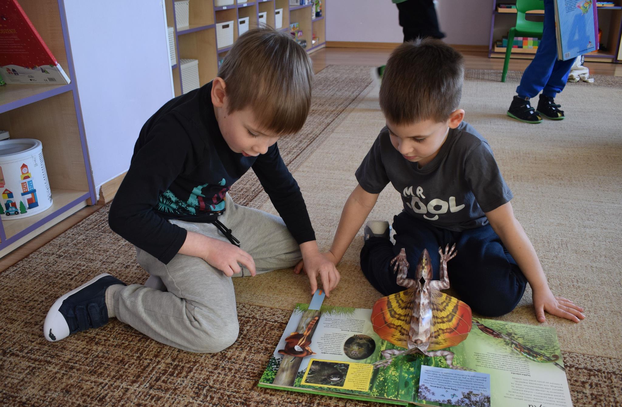 W ramach programu Rodzice Dzieciom gościliśmy w grupie Sówek mamę Iwa – panią Karinę. Pani Karina przygotowała dla dzieci wiele niespodzianek czytelniczych. Najpierw dzięki książce Tove’a Janssona pt. „Muminki szukają domu” z trójwymiarowymi obrazkami przenieśliśmy się do krainy Muminków. Następnie „odbyliśmy podróż” po wszystkich kontynentach poszerzając wiedzę o zwierzętach egzotycznych. Całość dopełniały kolorowe i autentyczne modele zwierząt zamieszczone w książce pt. „Tajemnice natury – przyroda w 3D”. Stworzyło to naszym przedszkolakom okazję do wymiany informacji o bogactwie świata przyrody i zdobycia nowej wiedzy. Na zakończenie mama Iwa przeczytała kilka wierszyków dla dzieci, które wywołały dużo radości. Bardzo dziękujemy za interesujące i pełne emocji spotkanie.