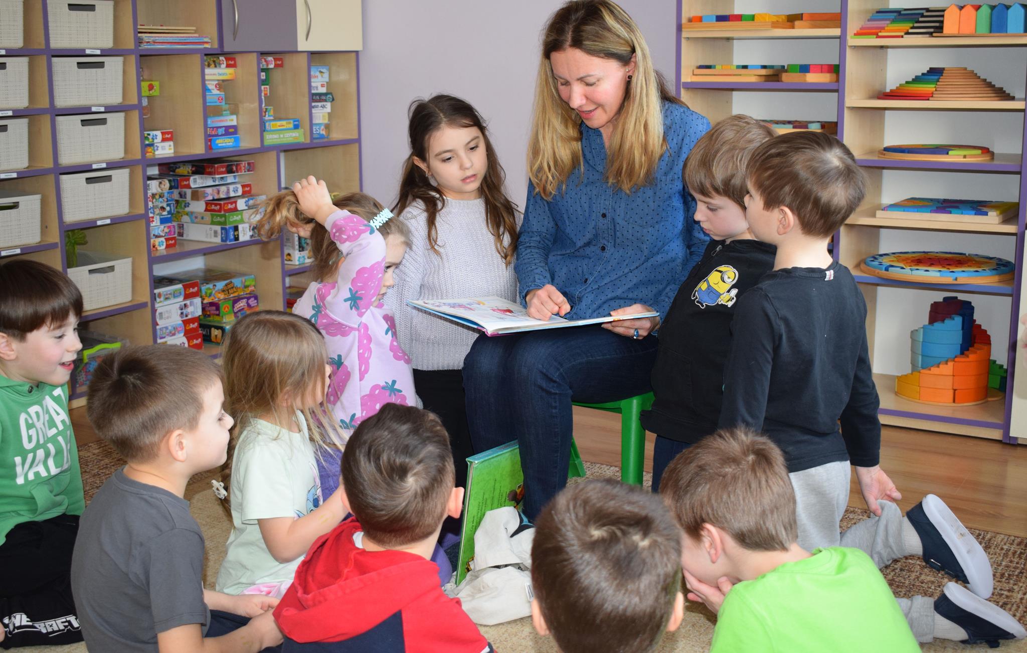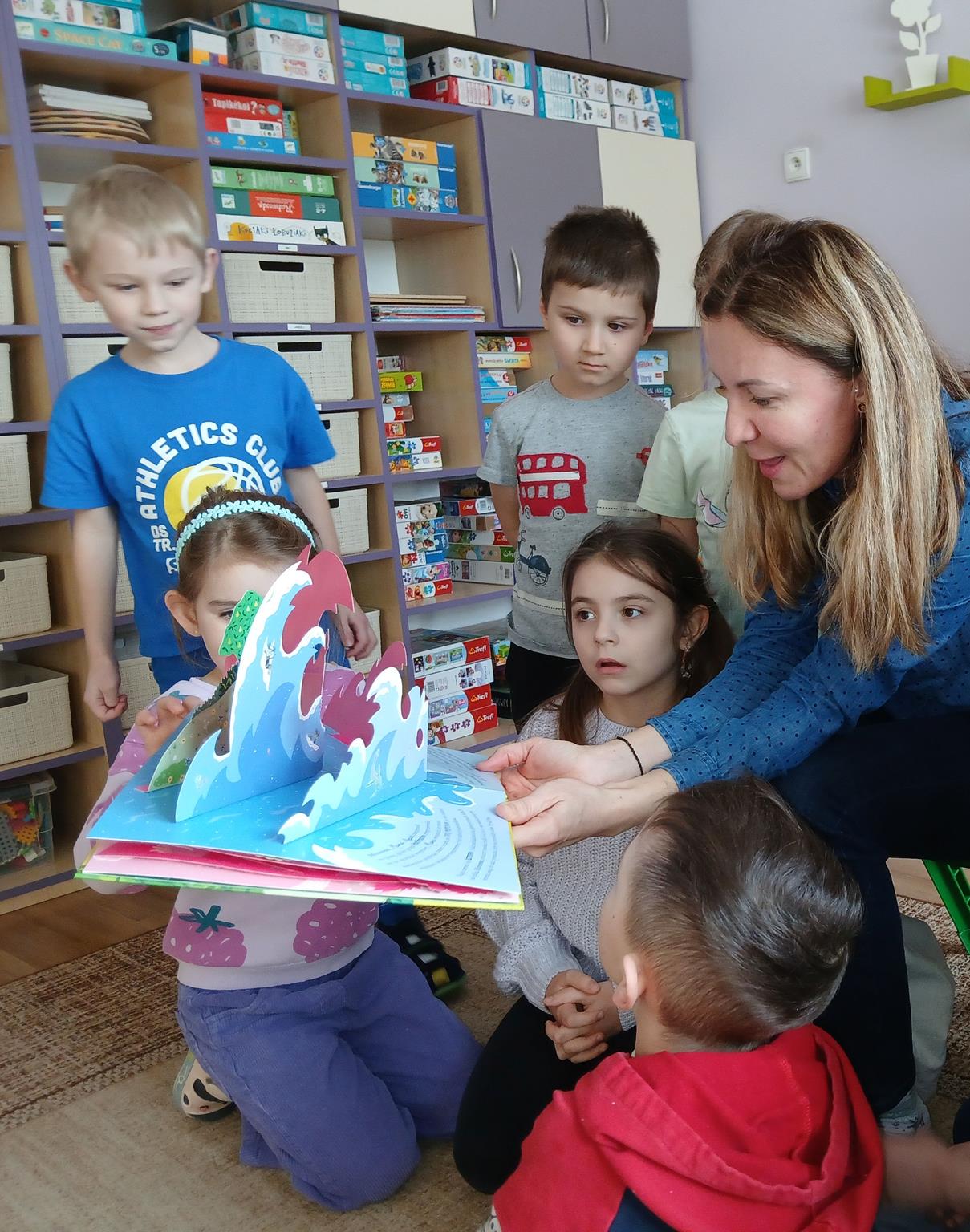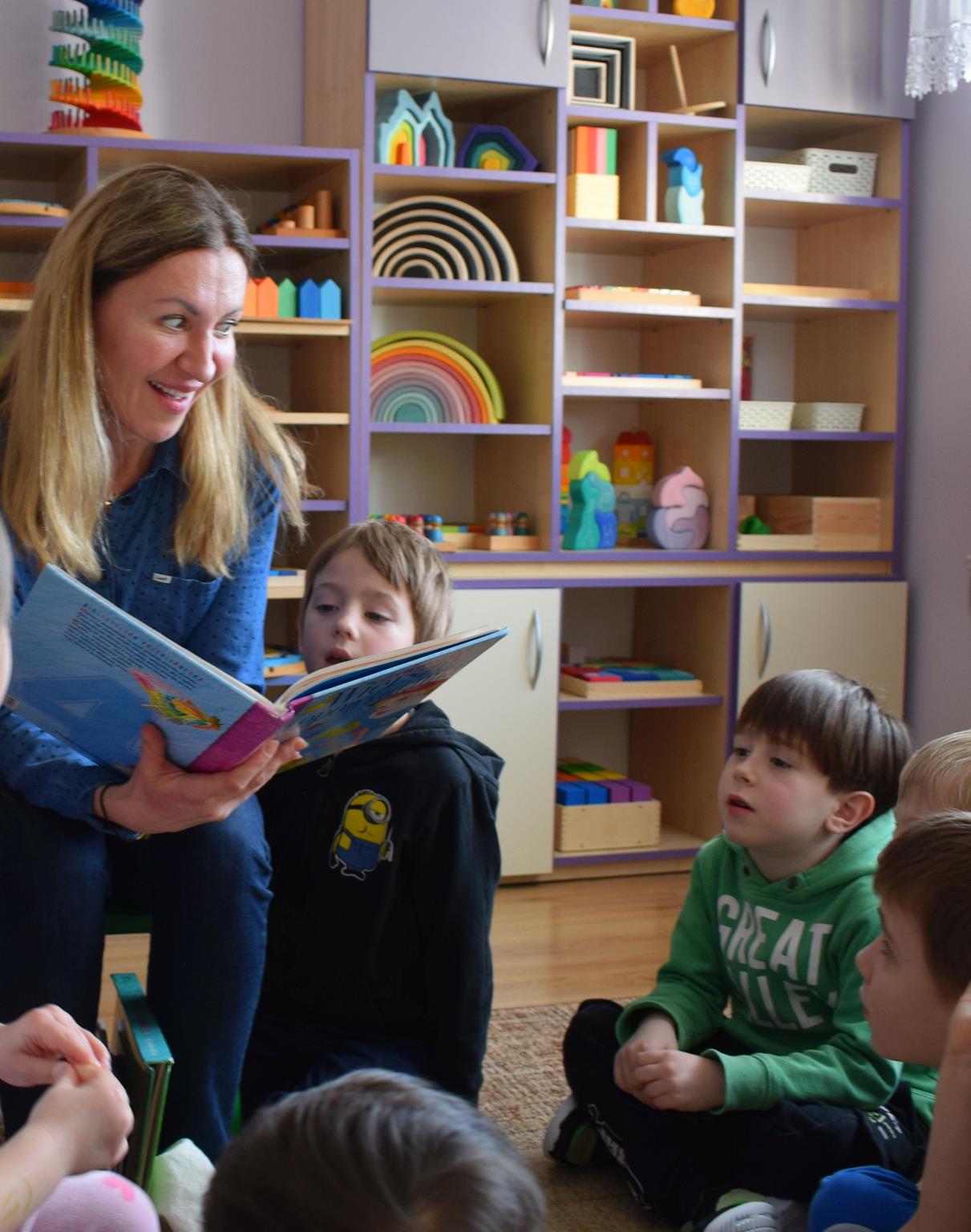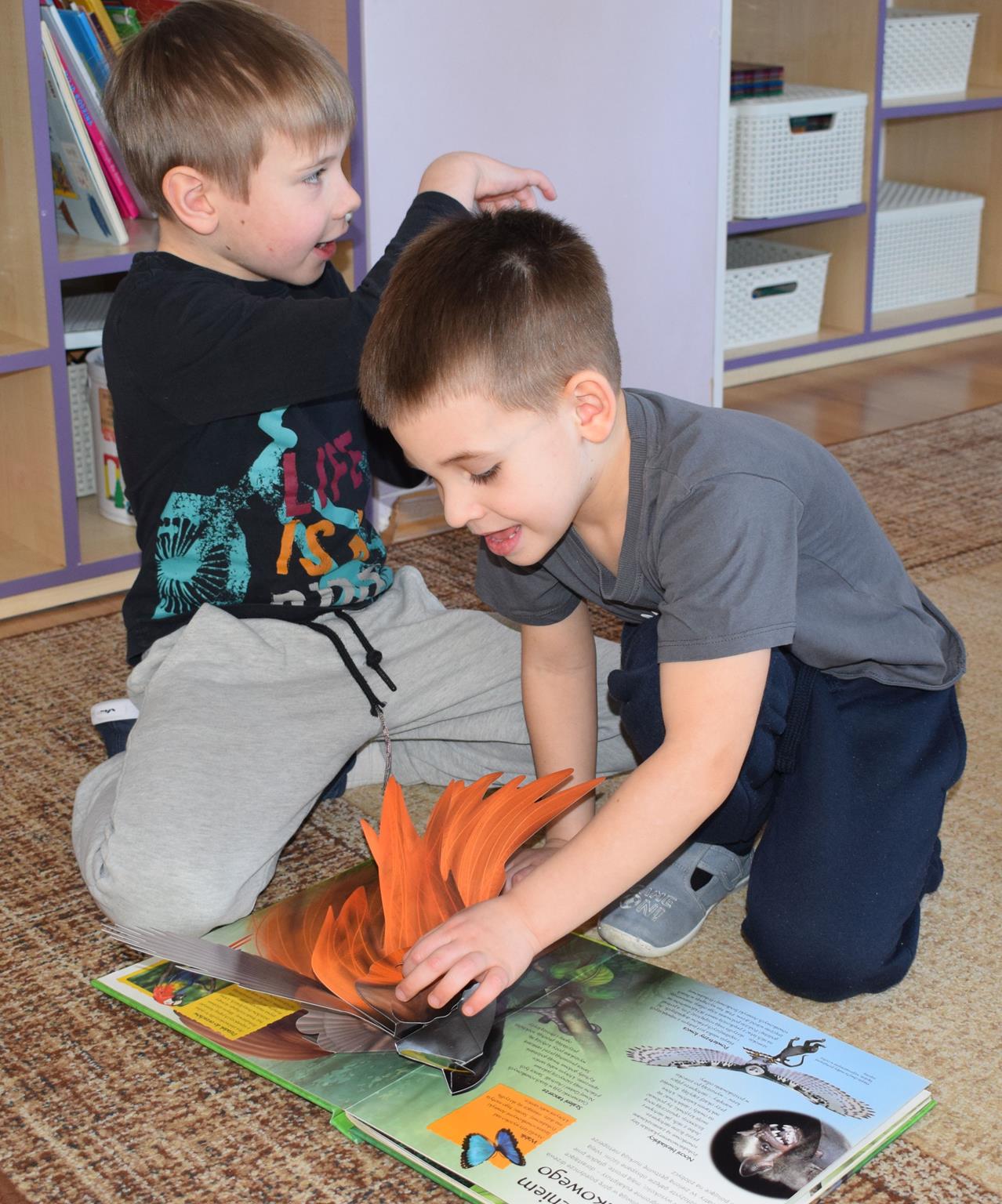 W ramach programu Rodzice Dzieciom gościliśmy w grupie Sówek mamę Iwa – panią Karinę. Pani Karina przygotowała dla dzieci wiele niespodzianek czytelniczych. Najpierw dzięki książce Tove’a Janssona pt. „Muminki szukają domu” z trójwymiarowymi obrazkami przenieśliśmy się do krainy Muminków. Następnie „odbyliśmy podróż” po wszystkich kontynentach poszerzając wiedzę o zwierzętach egzotycznych. Całość dopełniały kolorowe i autentyczne modele zwierząt zamieszczone w książce pt. „Tajemnice natury – przyroda w 3D”. Stworzyło to naszym przedszkolakom okazję do wymiany informacji o bogactwie świata przyrody i zdobycia nowej wiedzy. Na zakończenie mama Iwa przeczytała kilka wierszyków dla dzieci, które wywołały dużo radości. Bardzo dziękujemy za interesujące i pełne emocji spotkanie.