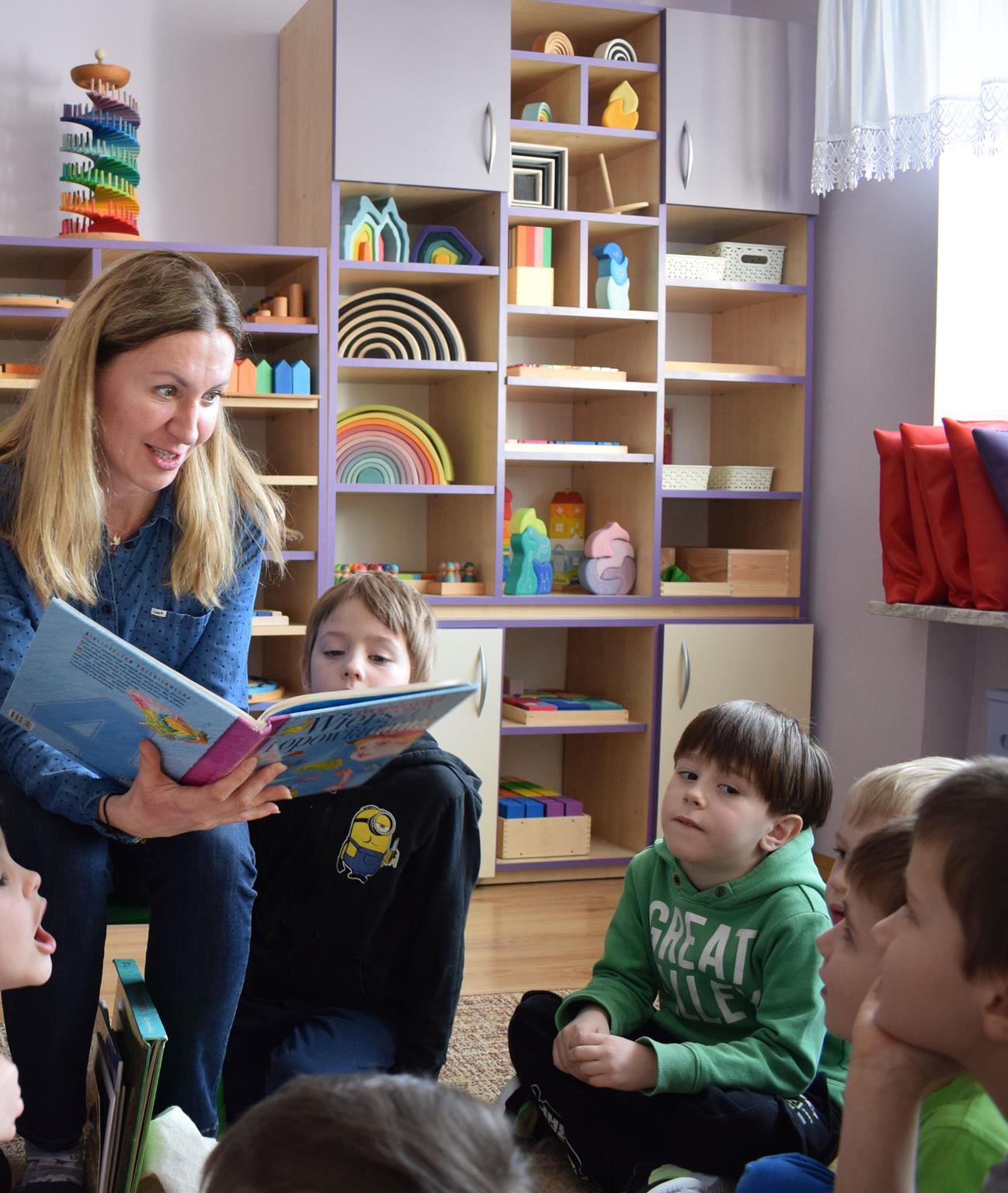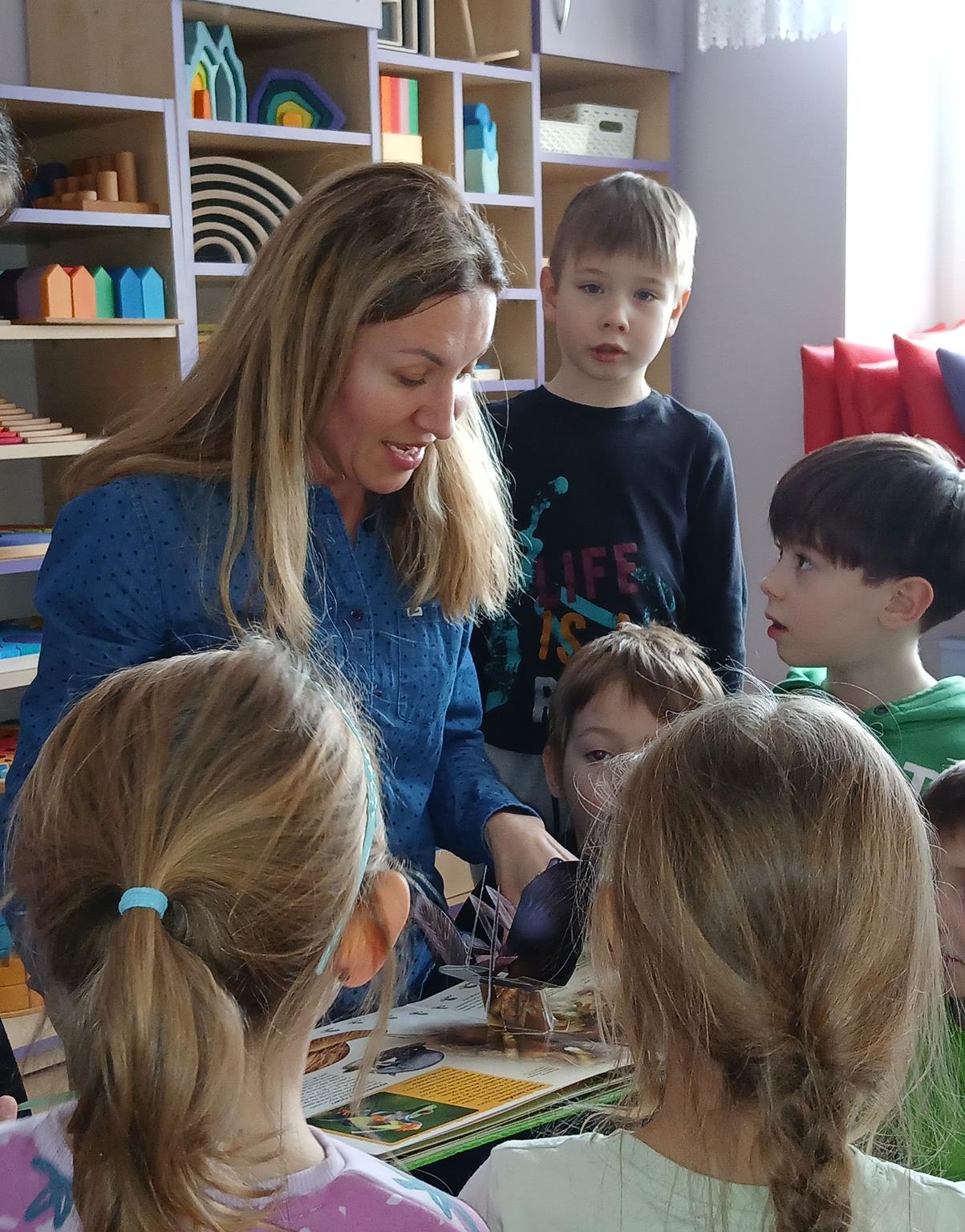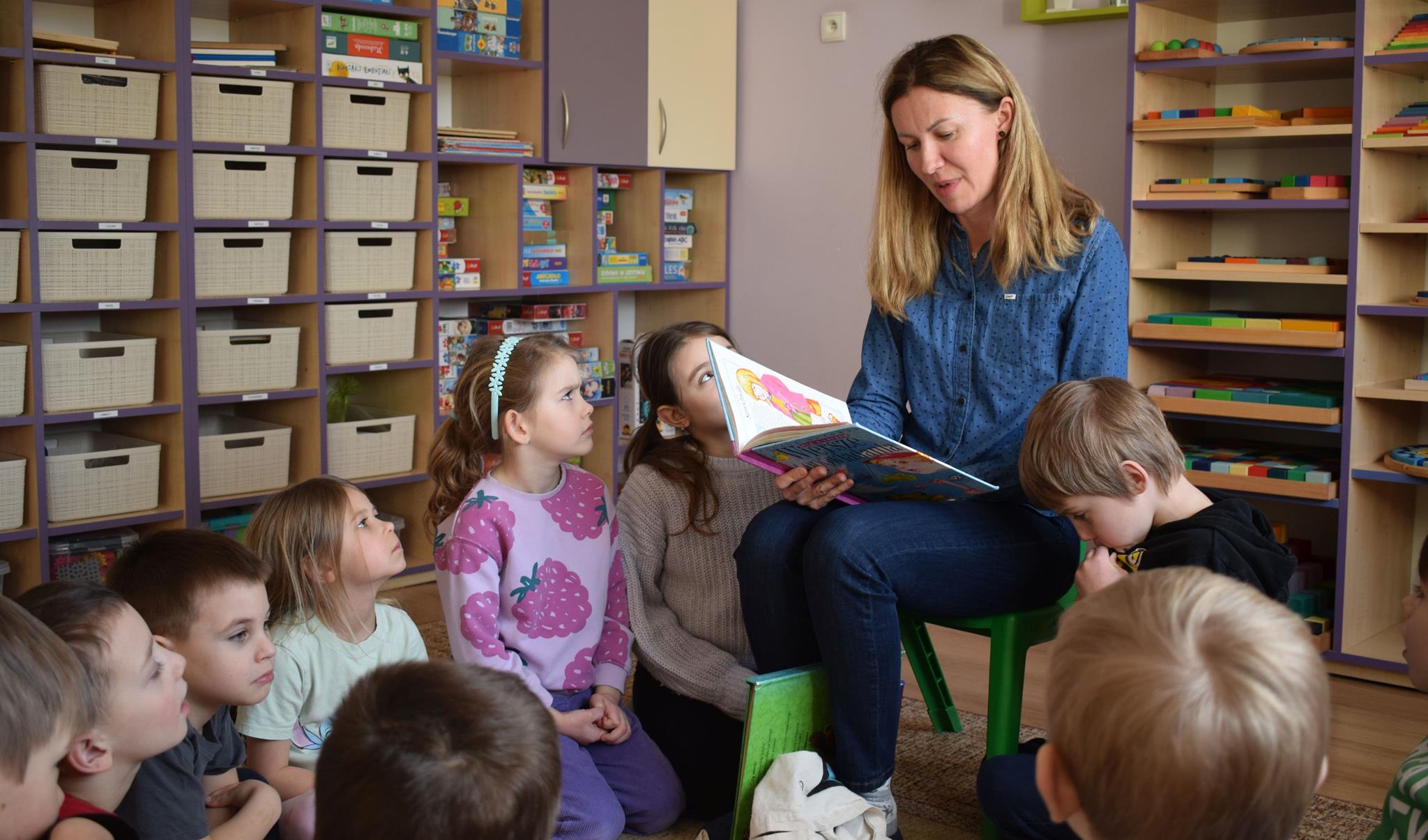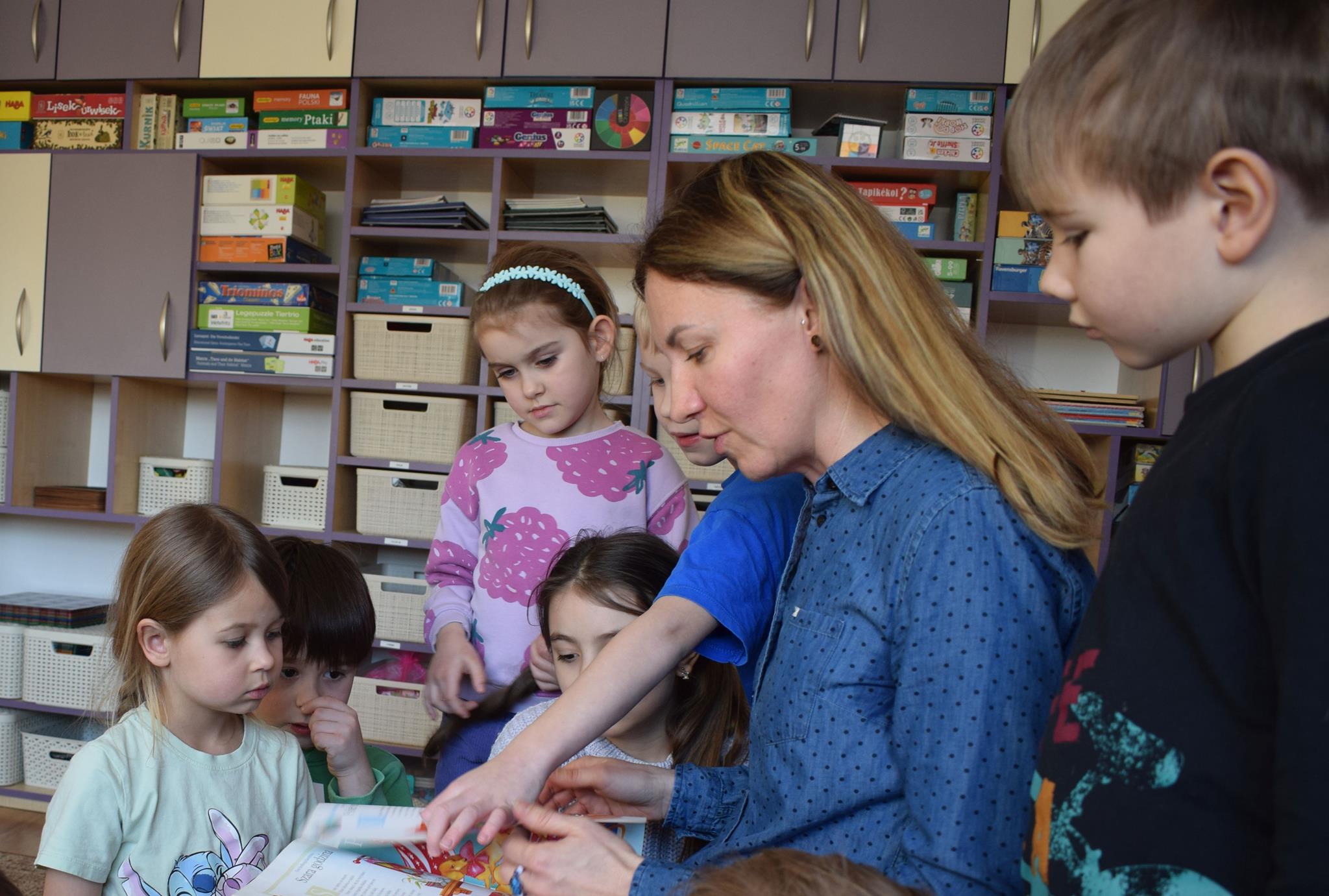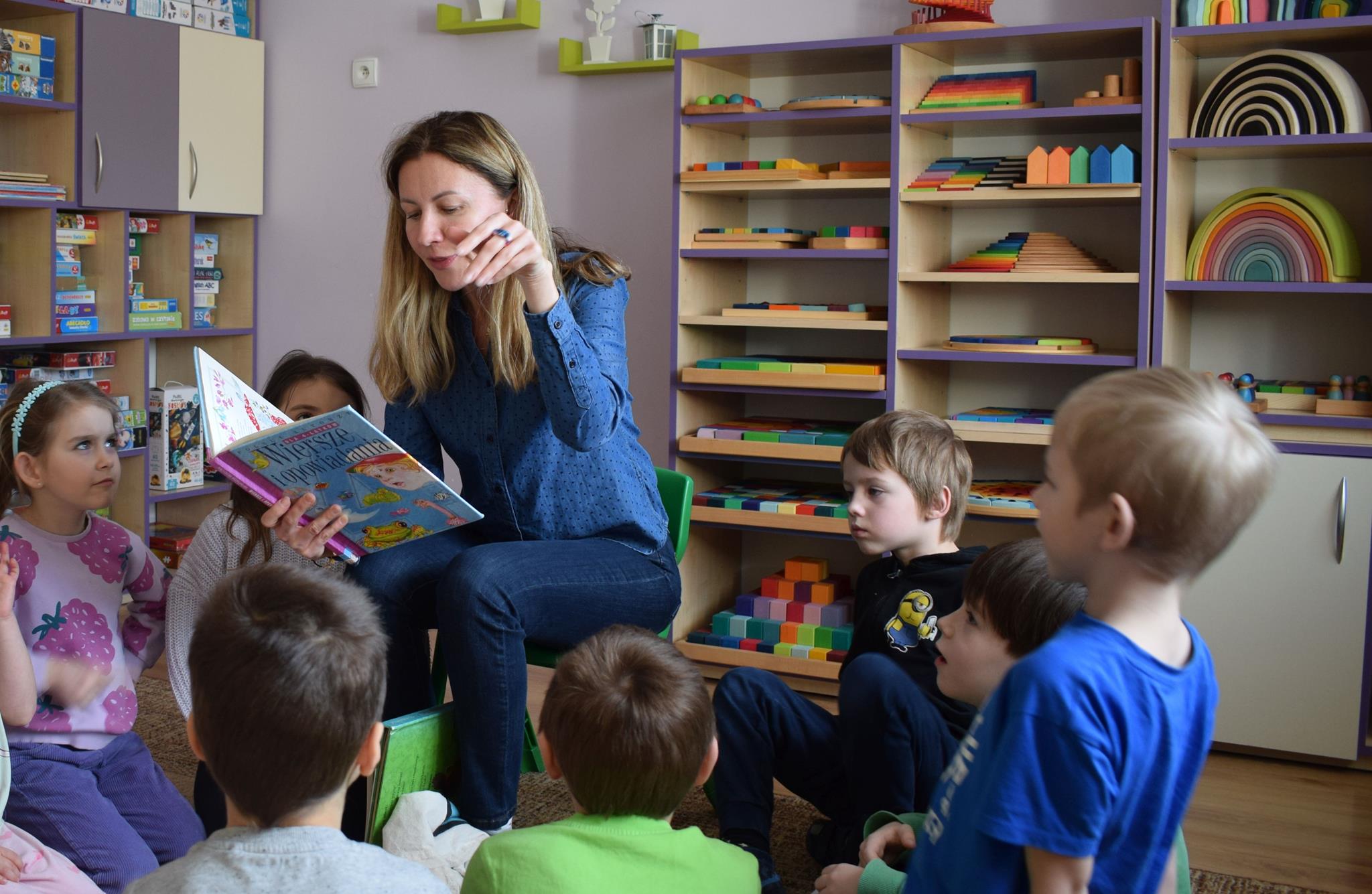 W ramach programu Rodzice Dzieciom gościliśmy w grupie Sówek mamę Iwa – panią Karinę. Pani Karina przygotowała dla dzieci wiele niespodzianek czytelniczych. Najpierw dzięki książce Tove’a Janssona pt. „Muminki szukają domu” z trójwymiarowymi obrazkami przenieśliśmy się do krainy Muminków. Następnie „odbyliśmy podróż” po wszystkich kontynentach poszerzając wiedzę o zwierzętach egzotycznych. Całość dopełniały kolorowe i autentyczne modele zwierząt zamieszczone w książce pt. „Tajemnice natury – przyroda w 3D”. Stworzyło to naszym przedszkolakom okazję do wymiany informacji o bogactwie świata przyrody i zdobycia nowej wiedzy. Na zakończenie mama Iwa przeczytała kilka wierszyków dla dzieci, które wywołały dużo radości. Bardzo dziękujemy za interesujące i pełne emocji spotkanie.