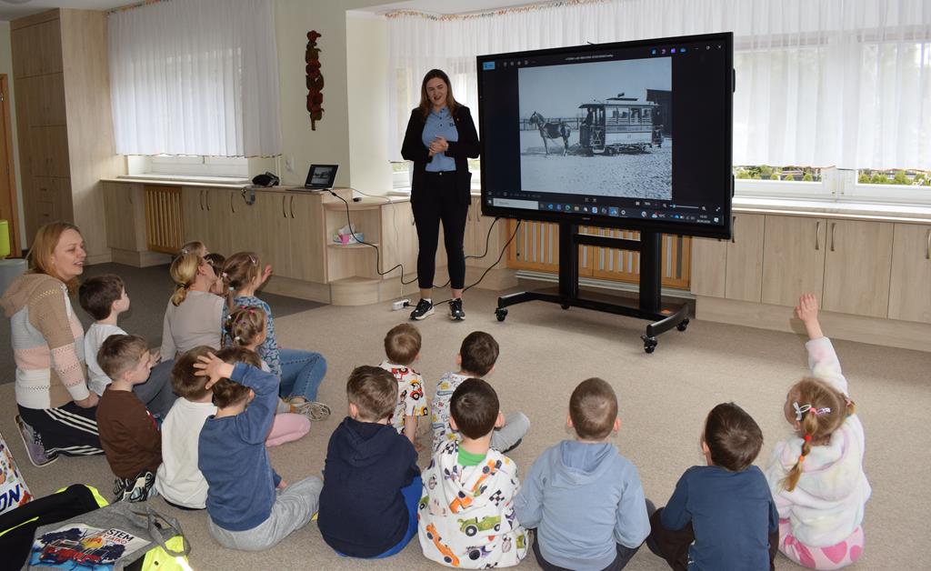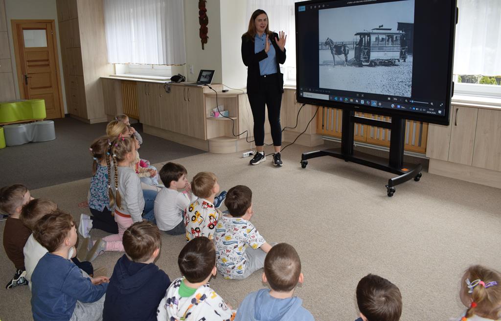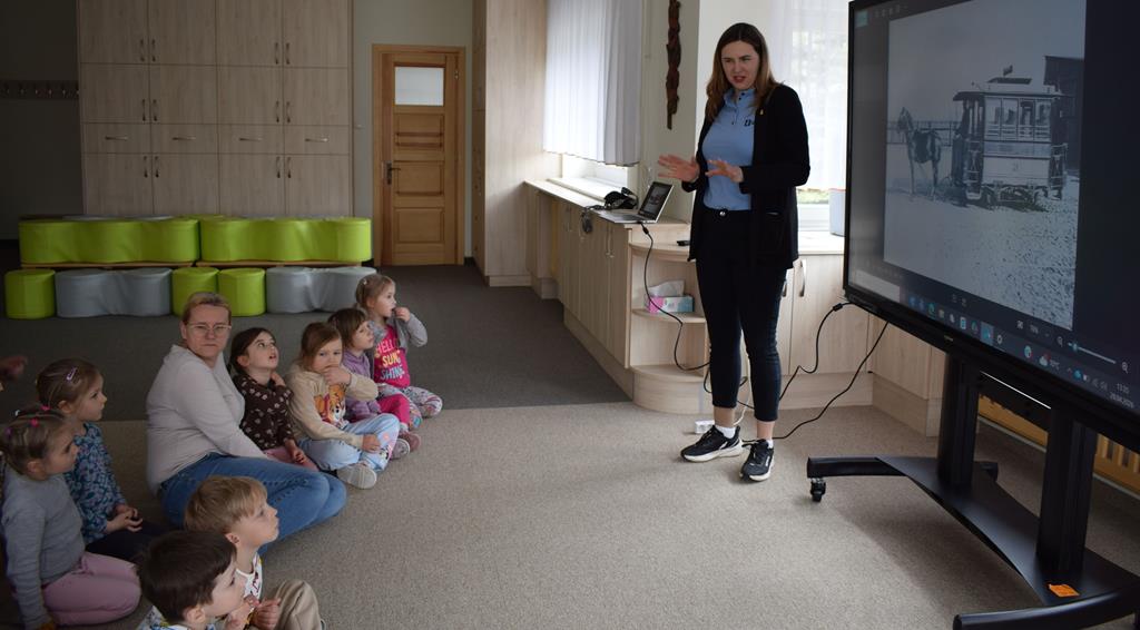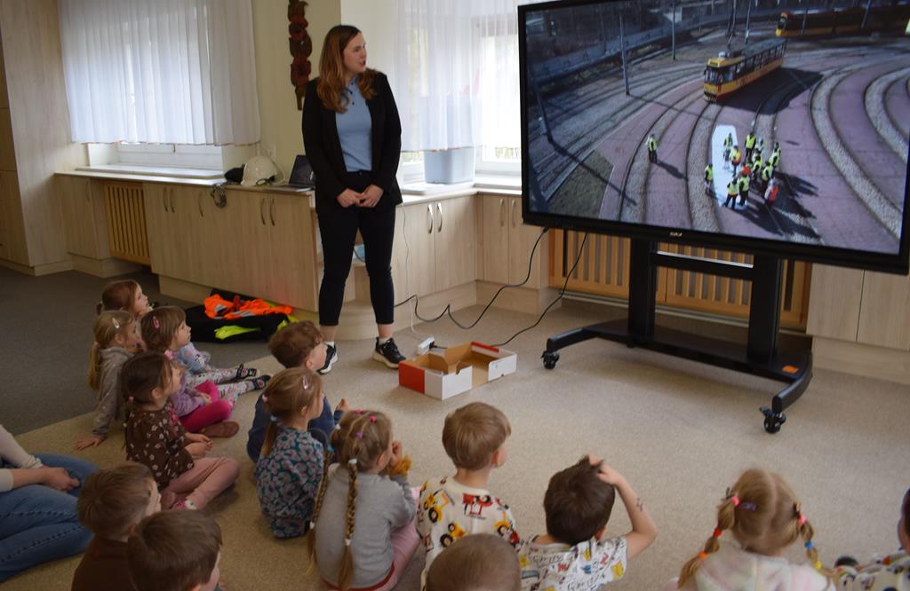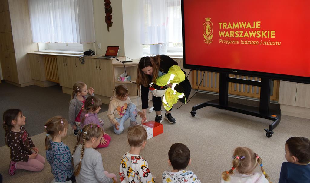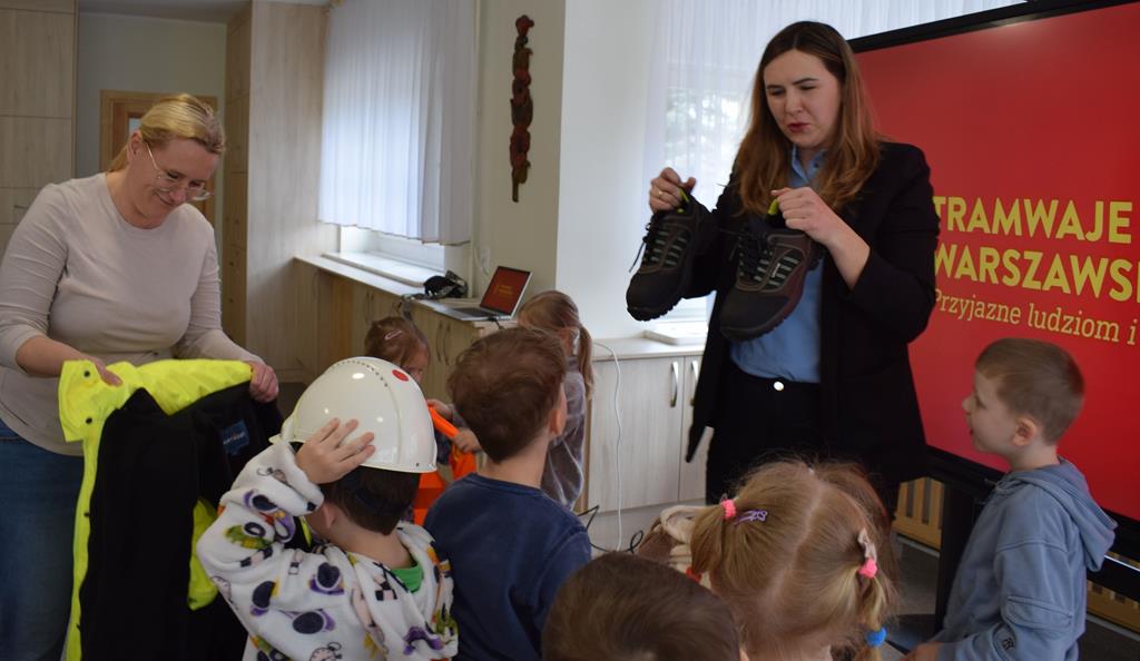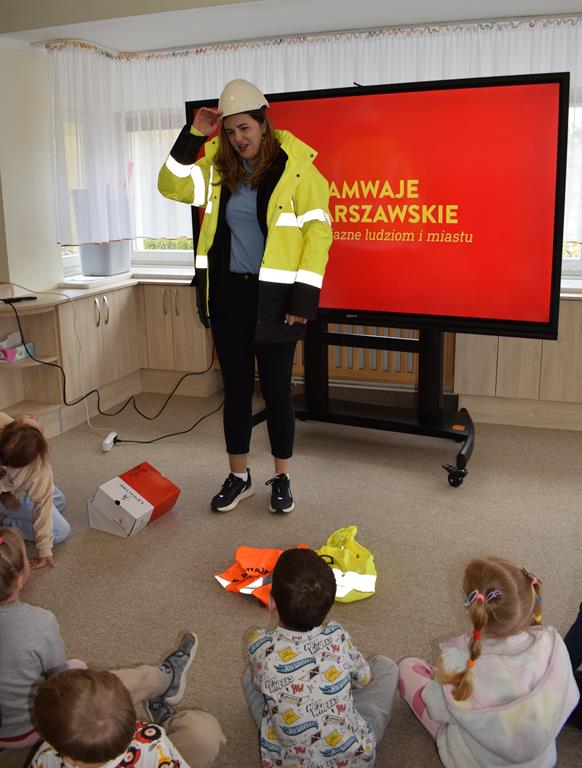 W naszym przedszkolu gościliśmy Mamę Helenki z gr. Motylków, która jest inżynierem w Tramwajach Warszawskich. Dzięki temu spotkaniu dzieci miały okazję poznać tajniki zawodu, który sprawia, że Warszawa jest w ciągłym ruchu! Podczas profesjonalnego pokazu multimedialnego przedszkolaki wyruszyły w podróż przez historię stolicy. Zobaczyły wagony ciągnięte przez konie i dowiedziały się, dlaczego kiedyś tramwaje „dzwoniły” dzwoneczkami. Poznały moment w którym prąd zastąpił konie, a na ulicach pojawiły się pierwsze żółto-czerwone wozy elektryczne. Dzięki filmom i animacjom dzieci mogły zobaczyć tajemnice inżynierskiej pracy, dowiedzieć się, że zajezdnia – to miejsce, które jest „szpitalem i domem” dla tramwajów. Dlaczego kask, kamizelka odblaskowa, specjalistyczne obuwie, rękawiczki, okulary, to najważniejsze elementy stroju każdego fachowca. Na zakończenie wizyty każde dziecko otrzymało wspaniałe tramwajowe gadżety, które wywołały mnóstwo uśmiechów na dziecięcych twarzach. To była fascynująca lekcja techniki i historii. Kto wie, może wśród naszych przedszkolaków kryje się przyszły konstruktor warszawskich tramwajów? Mamie Helenki serdecznie dziękujemy za spotkanie:)