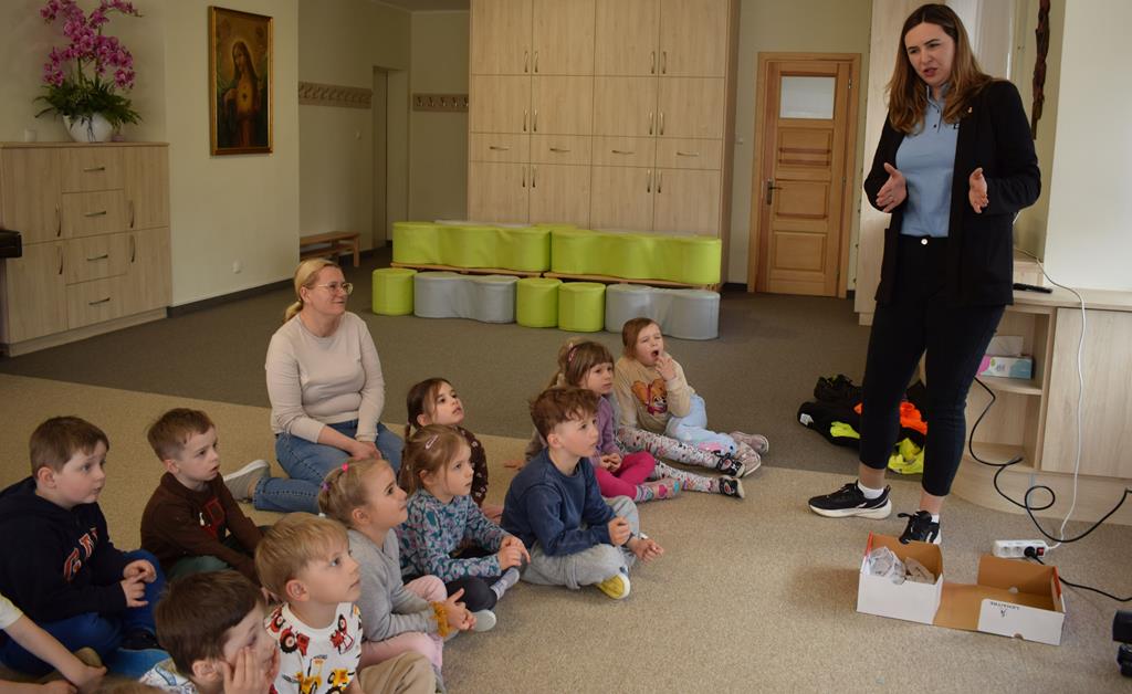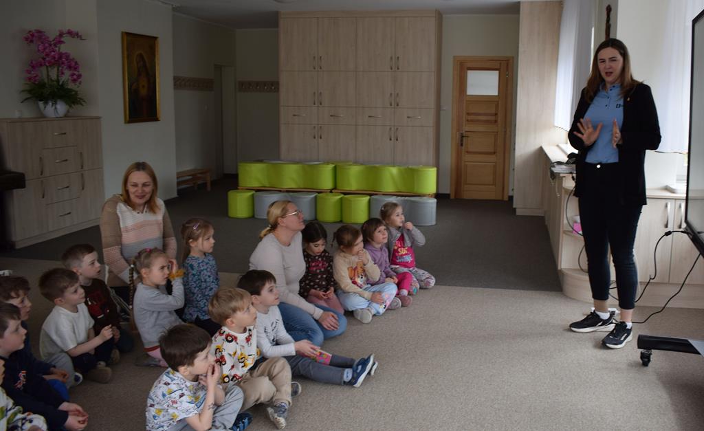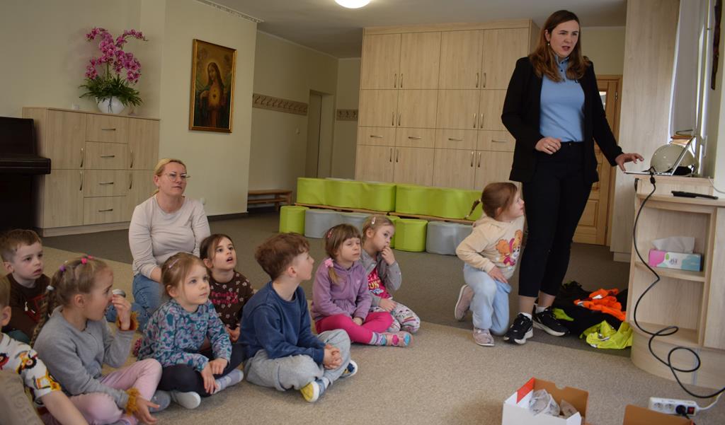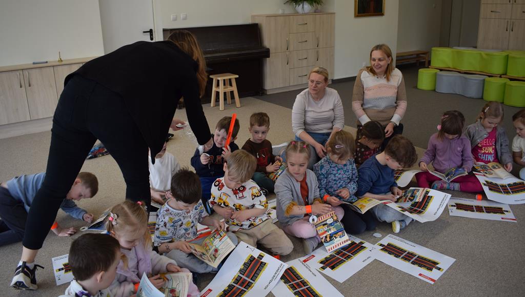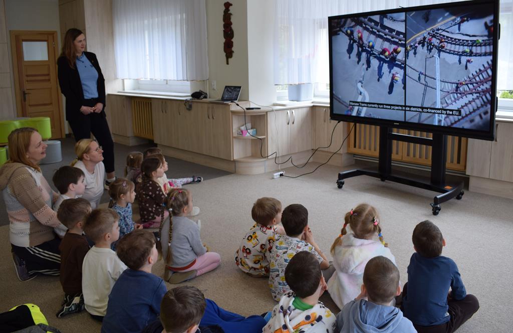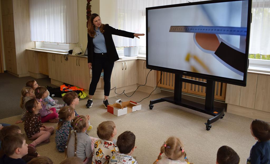 W naszym przedszkolu gościliśmy Mamę Helenki z gr. Motylków, która jest inżynierem w Tramwajach Warszawskich. Dzięki temu spotkaniu dzieci miały okazję poznać tajniki zawodu, który sprawia, że Warszawa jest w ciągłym ruchu! Podczas profesjonalnego pokazu multimedialnego przedszkolaki wyruszyły w podróż przez historię stolicy. Zobaczyły wagony ciągnięte przez konie i dowiedziały się, dlaczego kiedyś tramwaje „dzwoniły” dzwoneczkami. Poznały moment w którym prąd zastąpił konie, a na ulicach pojawiły się pierwsze żółto-czerwone wozy elektryczne. Dzięki filmom i animacjom dzieci mogły zobaczyć tajemnice inżynierskiej pracy, dowiedzieć się, że zajezdnia – to miejsce, które jest „szpitalem i domem” dla tramwajów. Dlaczego kask, kamizelka odblaskowa, specjalistyczne obuwie, rękawiczki, okulary, to najważniejsze elementy stroju każdego fachowca. Na zakończenie wizyty każde dziecko otrzymało wspaniałe tramwajowe gadżety, które wywołały mnóstwo uśmiechów na dziecięcych twarzach. To była fascynująca lekcja techniki i historii. Kto wie, może wśród naszych przedszkolaków kryje się przyszły konstruktor warszawskich tramwajów? Mamie Helenki serdecznie dziękujemy za spotkanie:)