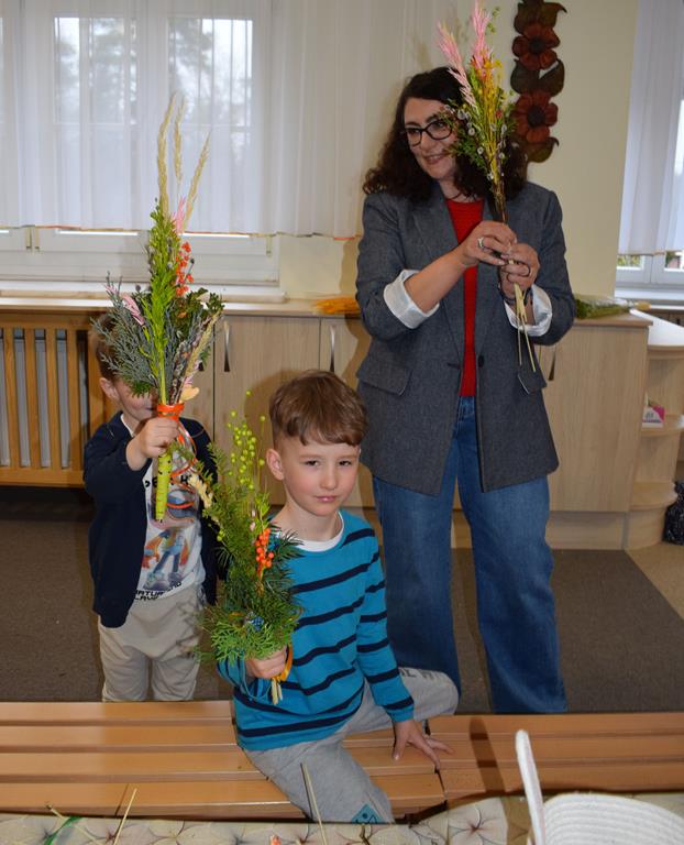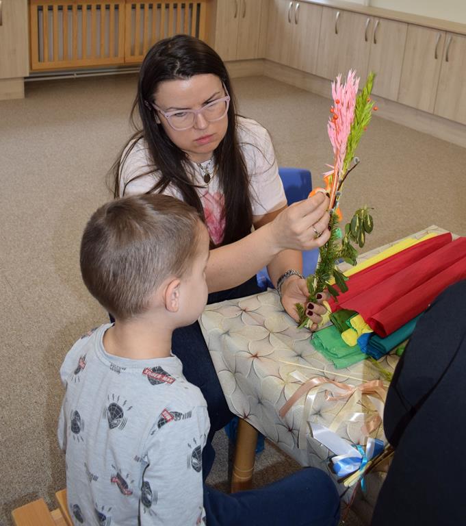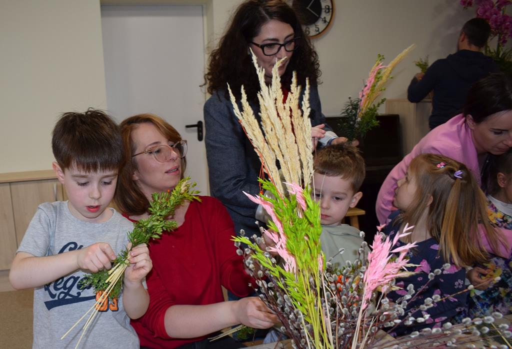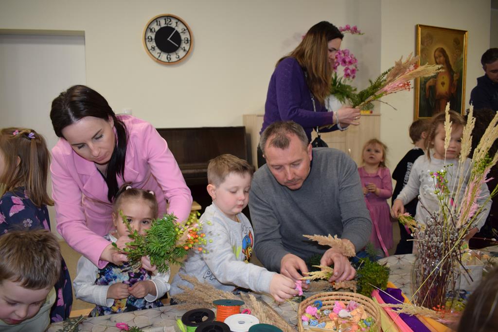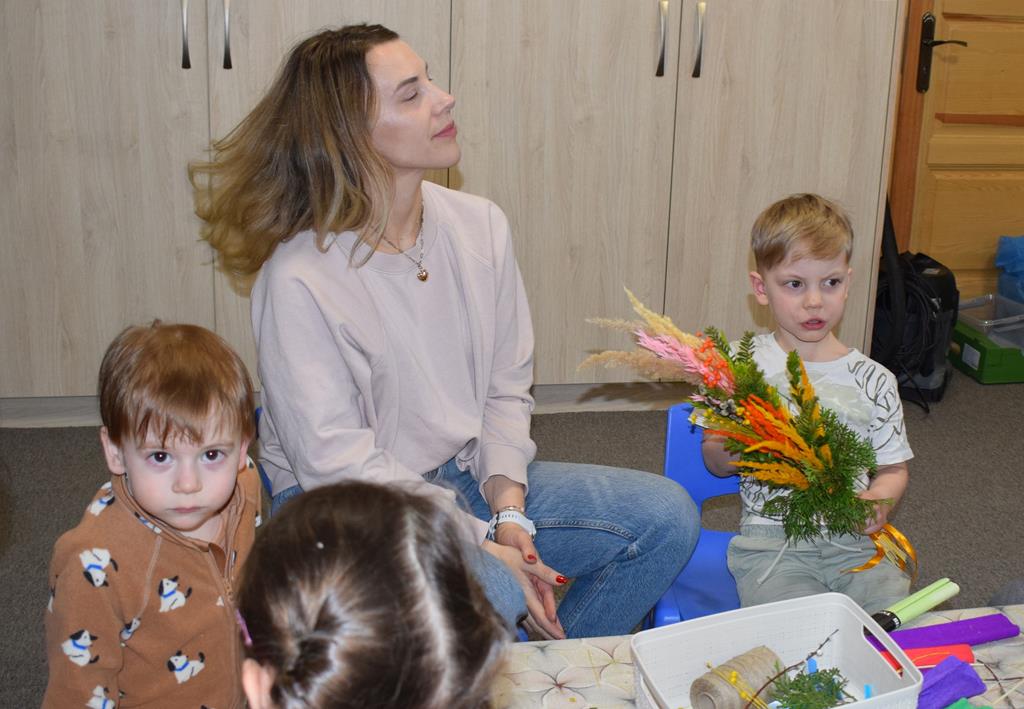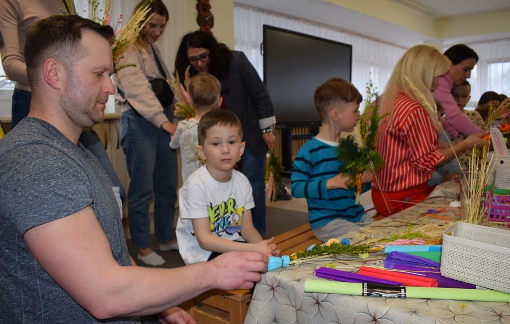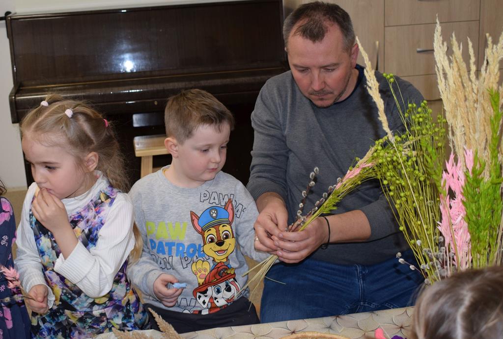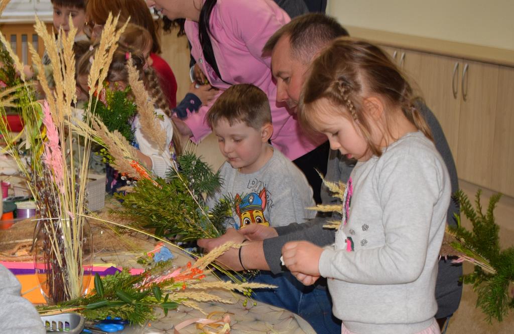 W grupie Motylków zapanował duch radosnego oczekiwania na Wielkanoc. Podczas wspólnych warsztatów dzieci i rodzice przygotowali tradycyjne palmy, które są symbolem wjazdu Pana Jezusa do Jerozolimy i zwiastunem nadchodzącego Zmartwychwstania. Praca nad palmami była nie tylko okazją do zabawy, ale przede wszystkim lekcją tradycji i wiary. Z bazi, bukszpanu, barwionych traw, owsa i kolorowych kwiatów powstały symbole życia i zwycięstwa, które nasze przedszkolaki z dumą zaniosą do kościoła na uroczyste poświęcenie w Niedzielę Palmową. Serdecznie dziękujemy Pani Karolinie za zaangażowanie w przygotowanie warsztatu, a wszystkim rodzicom za udział i wspólnie spędzony czas. Zapraszamy na niedzielną Mszę Świętą do kaplicy Sióstr Rodziny Maryi na godz. 10.00