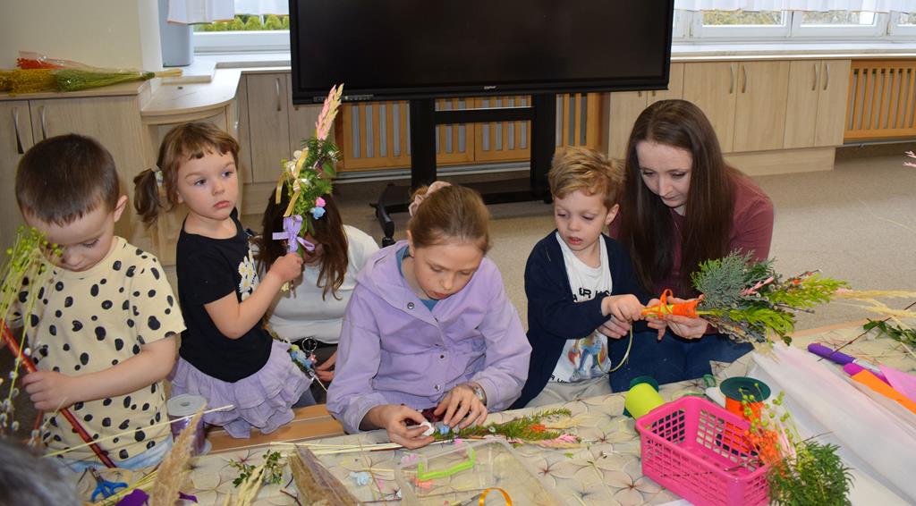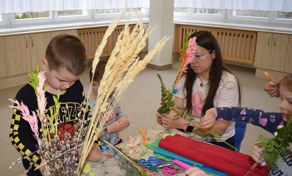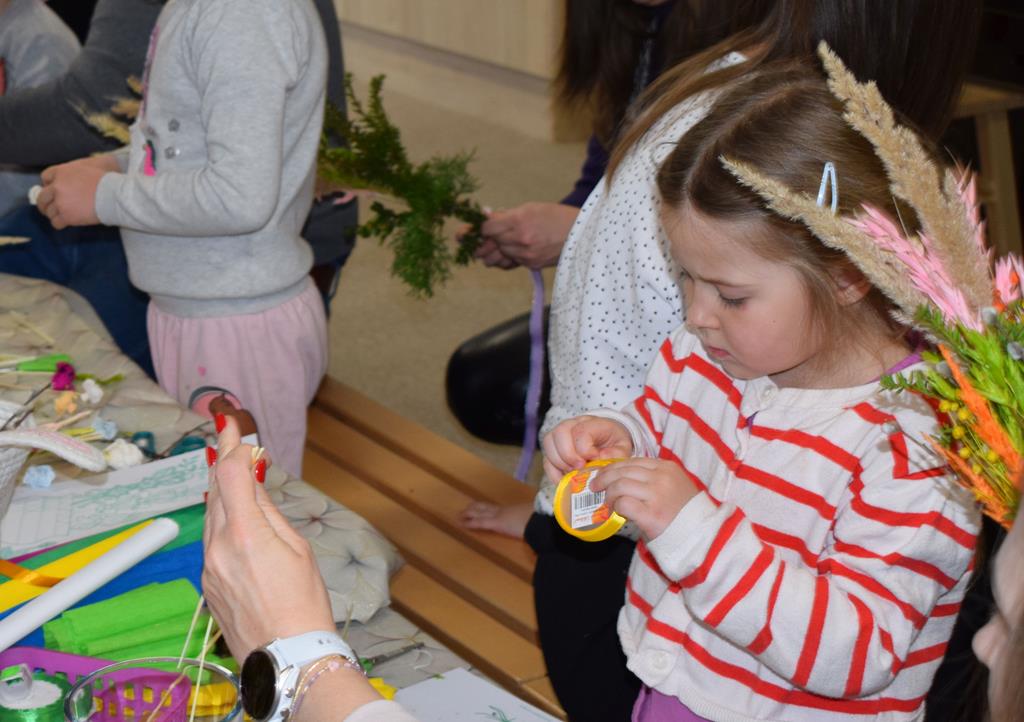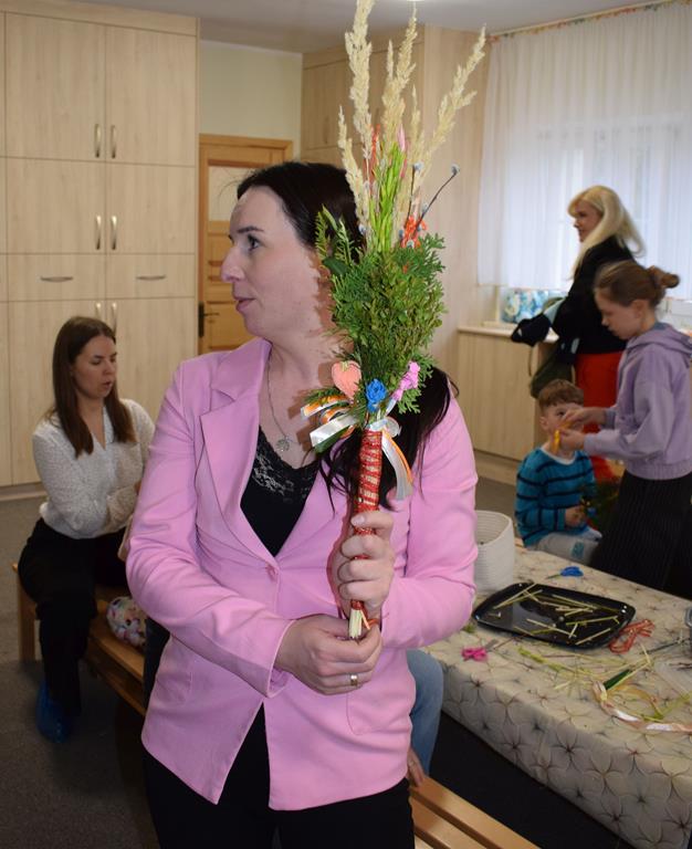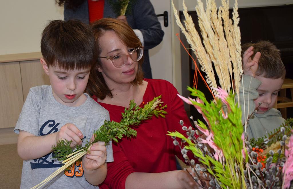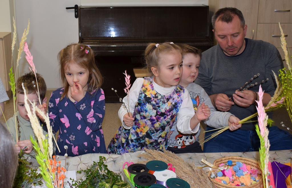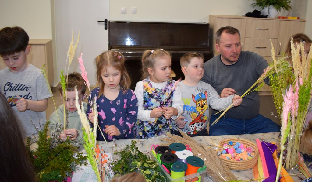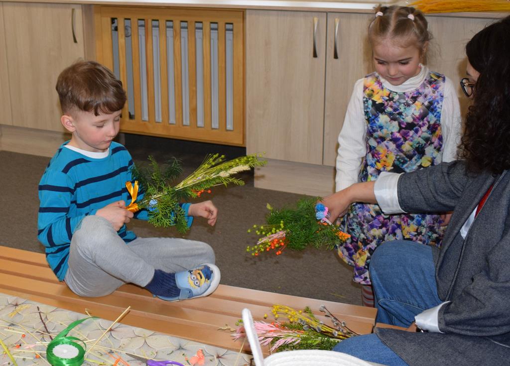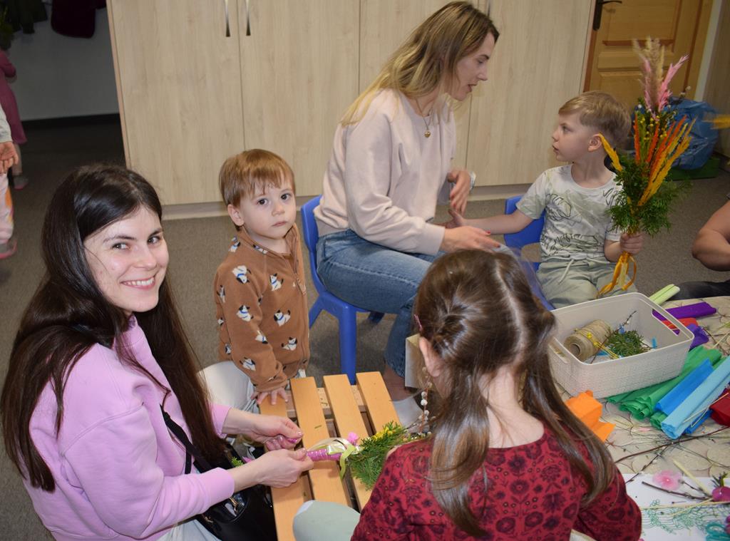 W grupie Motylków zapanował duch radosnego oczekiwania na Wielkanoc. Podczas wspólnych warsztatów dzieci i rodzice przygotowali tradycyjne palmy, które są symbolem wjazdu Pana Jezusa do Jerozolimy i zwiastunem nadchodzącego Zmartwychwstania. Praca nad palmami była nie tylko okazją do zabawy, ale przede wszystkim lekcją tradycji i wiary. Z bazi, bukszpanu, barwionych traw, owsa i kolorowych kwiatów powstały symbole życia i zwycięstwa, które nasze przedszkolaki z dumą zaniosą do kościoła na uroczyste poświęcenie w Niedzielę Palmową. Serdecznie dziękujemy Pani Karolinie za zaangażowanie w przygotowanie warsztatu, a wszystkim rodzicom za udział i wspólnie spędzony czas. Zapraszamy na niedzielną Mszę Świętą do kaplicy Sióstr Rodziny Maryi na godz. 10.00