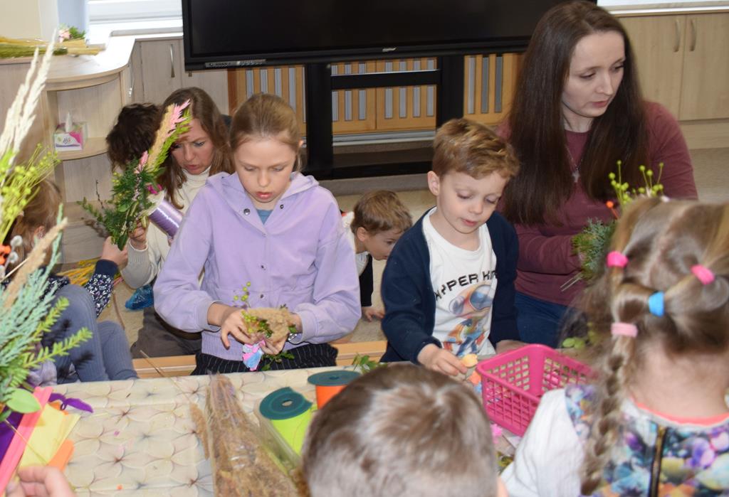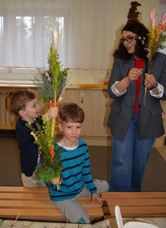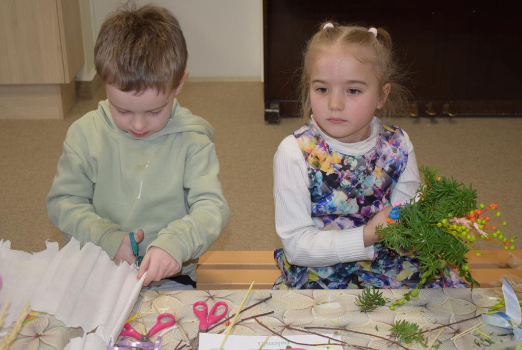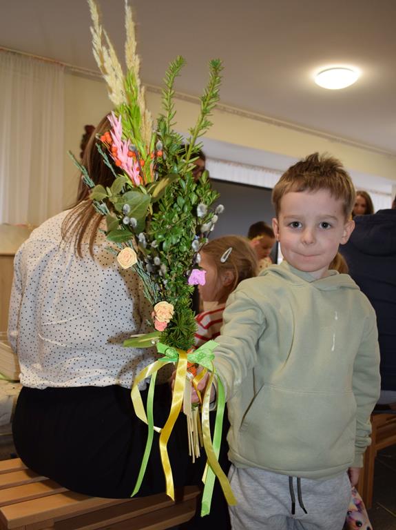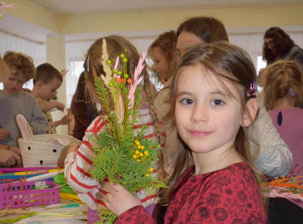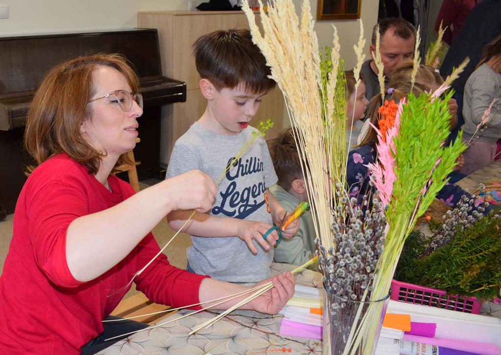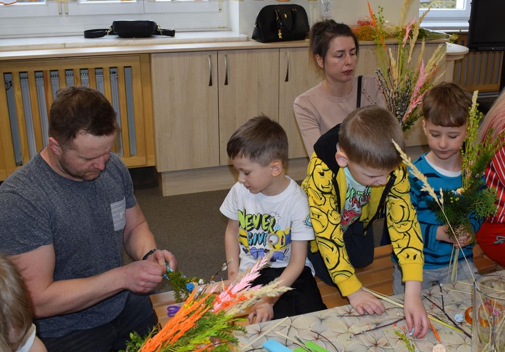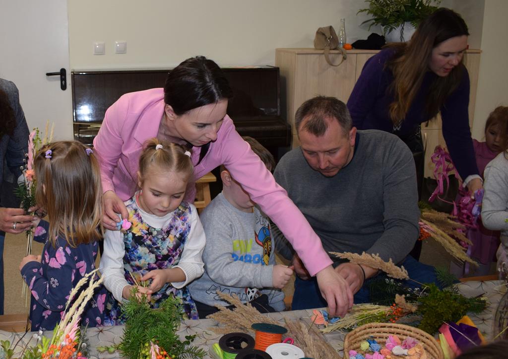 W grupie Motylków zapanował duch radosnego oczekiwania na Wielkanoc. Podczas wspólnych warsztatów dzieci i rodzice przygotowali tradycyjne palmy, które są symbolem wjazdu Pana Jezusa do Jerozolimy i zwiastunem nadchodzącego Zmartwychwstania. Praca nad palmami była nie tylko okazją do zabawy, ale przede wszystkim lekcją tradycji i wiary. Z bazi, bukszpanu, barwionych traw, owsa i kolorowych kwiatów powstały symbole życia i zwycięstwa, które nasze przedszkolaki z dumą zaniosą do kościoła na uroczyste poświęcenie w Niedzielę Palmową. Serdecznie dziękujemy Pani Karolinie za zaangażowanie w przygotowanie warsztatu, a wszystkim rodzicom za udział i wspólnie spędzony czas. Zapraszamy na niedzielną Mszę Świętą do kaplicy Sióstr Rodziny Maryi na godz. 10.00