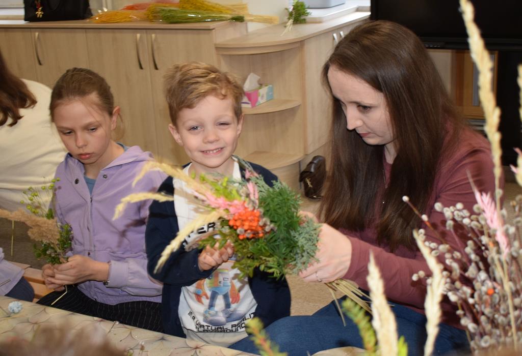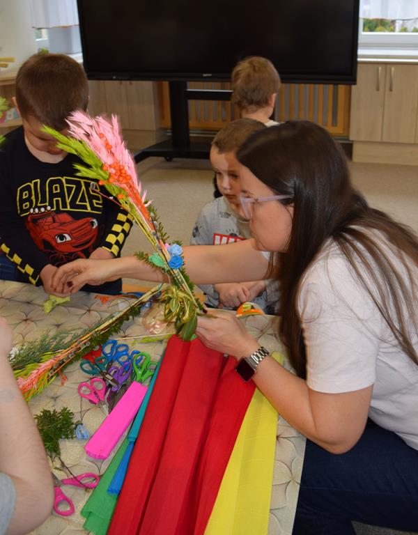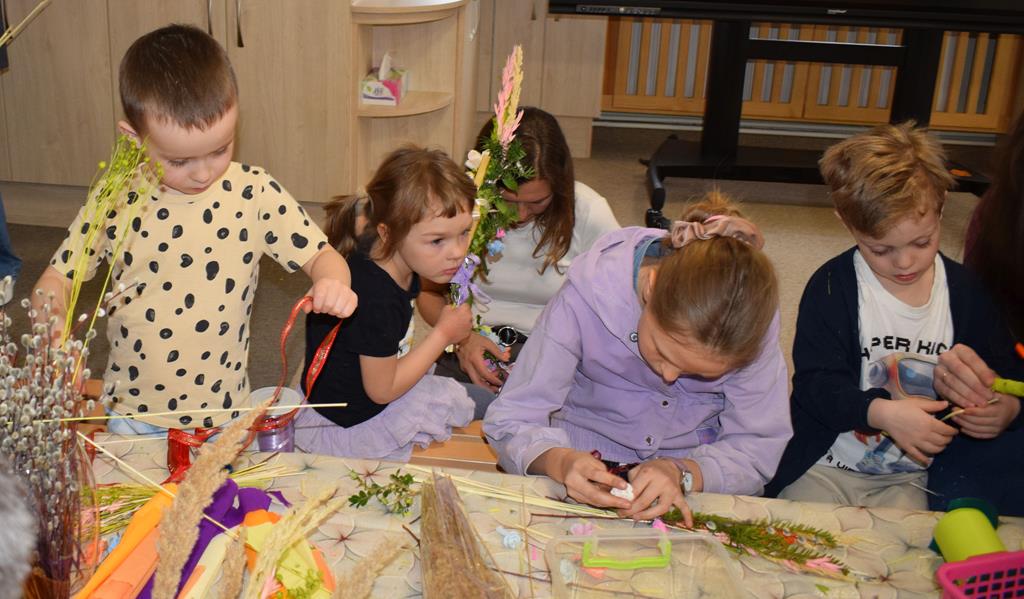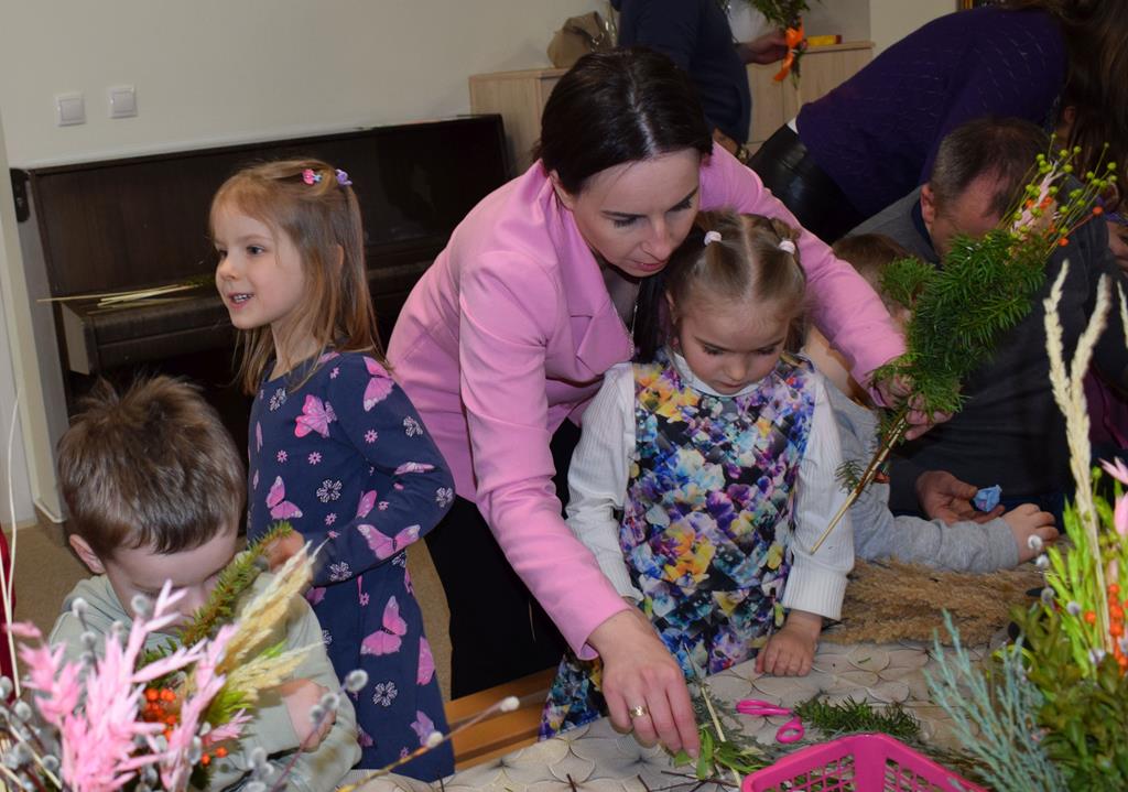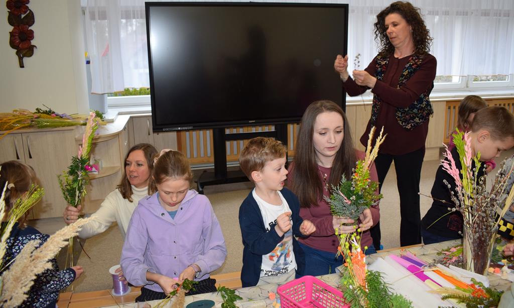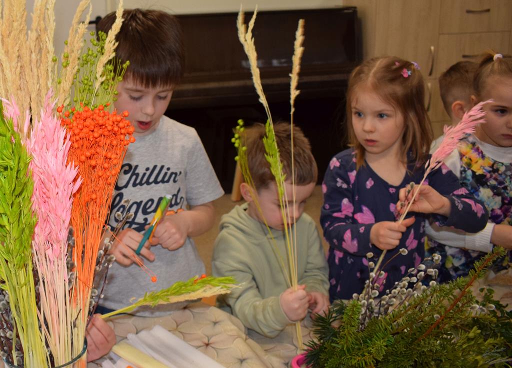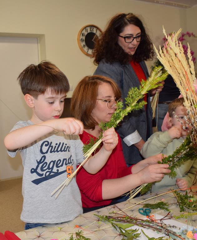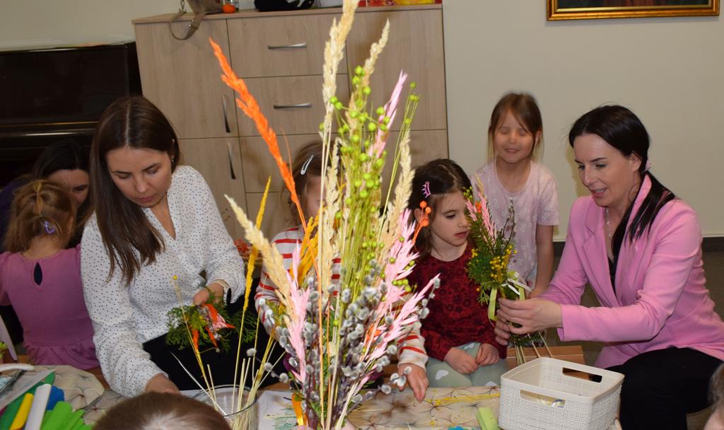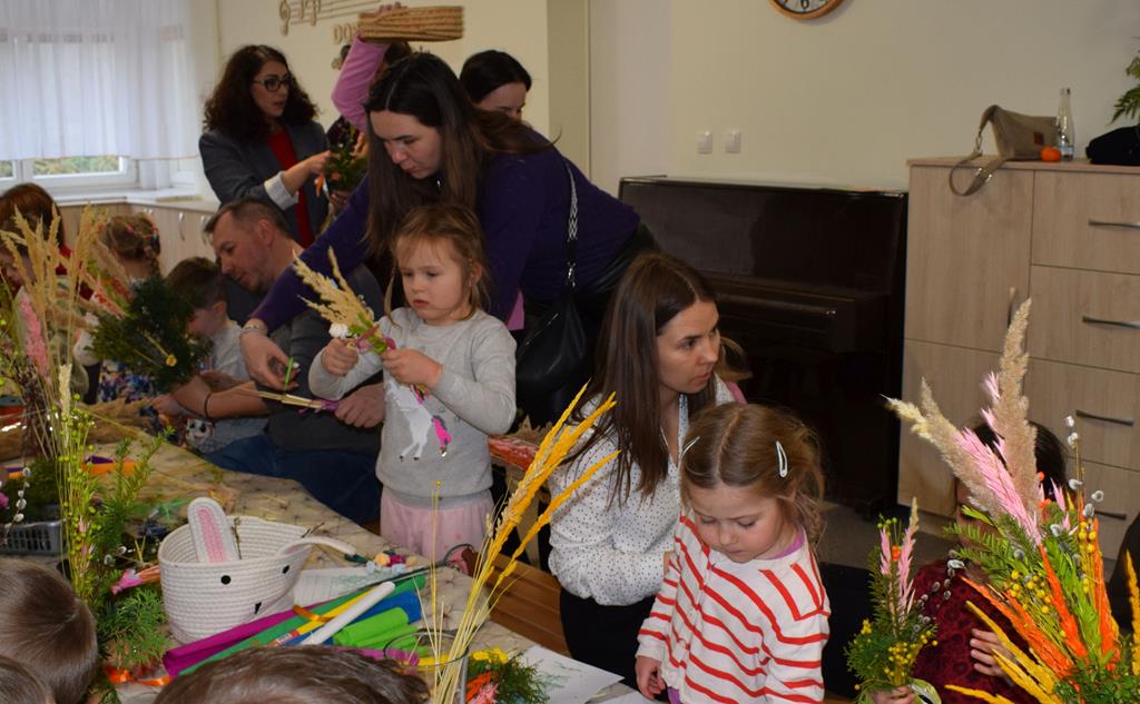 W grupie Motylków zapanował duch radosnego oczekiwania na Wielkanoc. Podczas wspólnych warsztatów dzieci i rodzice przygotowali tradycyjne palmy, które są symbolem wjazdu Pana Jezusa do Jerozolimy i zwiastunem nadchodzącego Zmartwychwstania. Praca nad palmami była nie tylko okazją do zabawy, ale przede wszystkim lekcją tradycji i wiary. Z bazi, bukszpanu, barwionych traw, owsa i kolorowych kwiatów powstały symbole życia i zwycięstwa, które nasze przedszkolaki z dumą zaniosą do kościoła na uroczyste poświęcenie w Niedzielę Palmową. Serdecznie dziękujemy Pani Karolinie za zaangażowanie w przygotowanie warsztatu, a wszystkim rodzicom za udział i wspólnie spędzony czas. Zapraszamy na niedzielną Mszę Świętą do kaplicy Sióstr Rodziny Maryi na godz. 10.00
