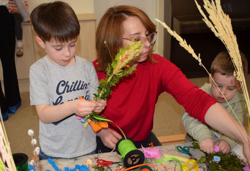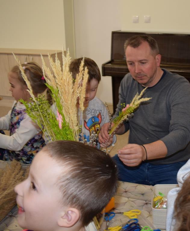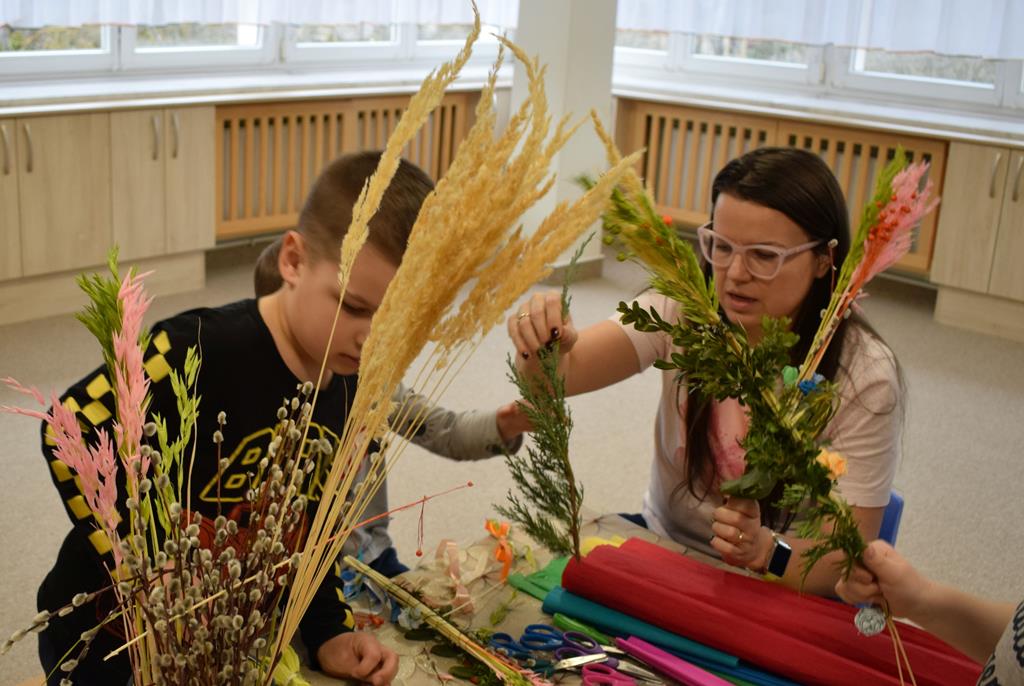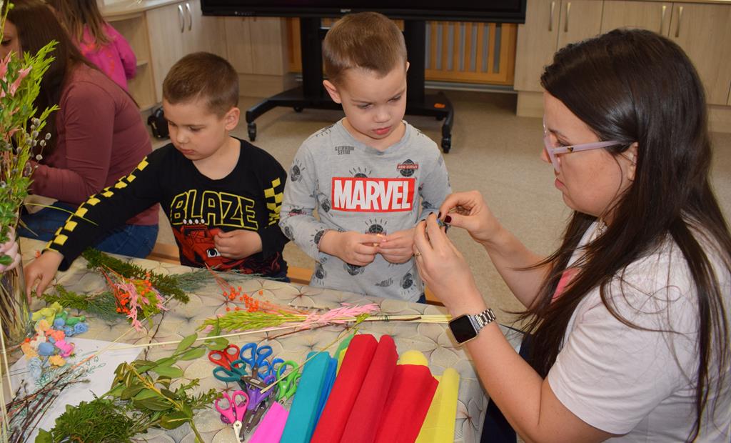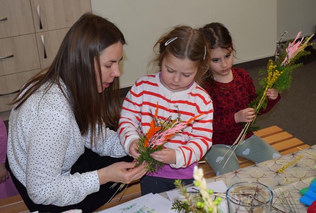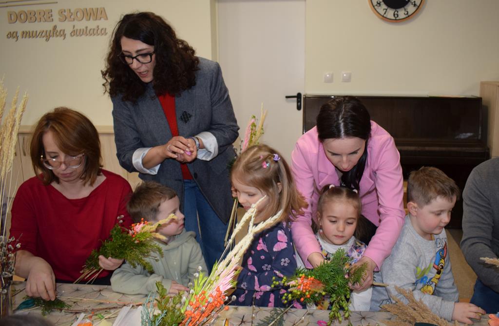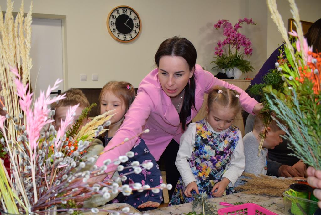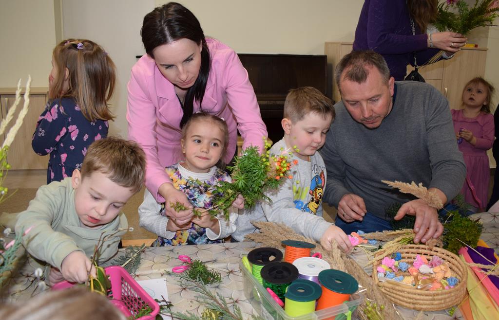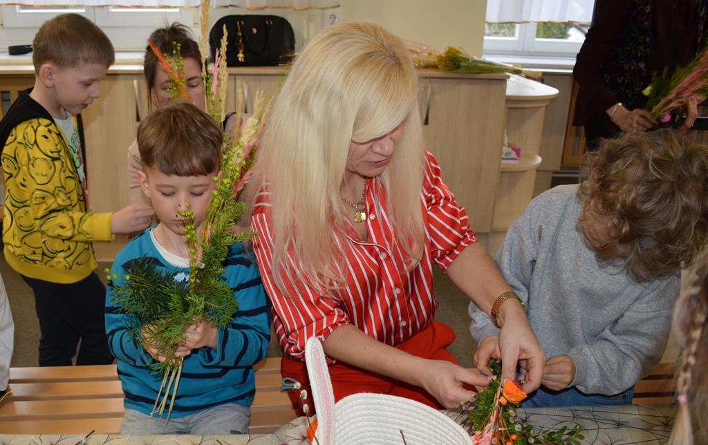 W grupie Motylków zapanował duch radosnego oczekiwania na Wielkanoc. Podczas wspólnych warsztatów dzieci i rodzice przygotowali tradycyjne palmy, które są symbolem wjazdu Pana Jezusa do Jerozolimy i zwiastunem nadchodzącego Zmartwychwstania. Praca nad palmami była nie tylko okazją do zabawy, ale przede wszystkim lekcją tradycji i wiary. Z bazi, bukszpanu, barwionych traw, owsa i kolorowych kwiatów powstały symbole życia i zwycięstwa, które nasze przedszkolaki z dumą zaniosą do kościoła na uroczyste poświęcenie w Niedzielę Palmową. Serdecznie dziękujemy Pani Karolinie za zaangażowanie w przygotowanie warsztatu, a wszystkim rodzicom za udział i wspólnie spędzony czas. Zapraszamy na niedzielną Mszę Świętą do kaplicy Sióstr Rodziny Maryi na godz. 10.00