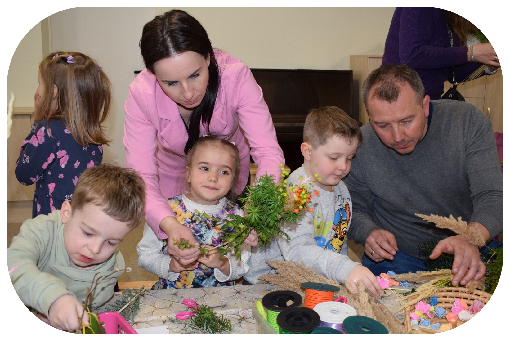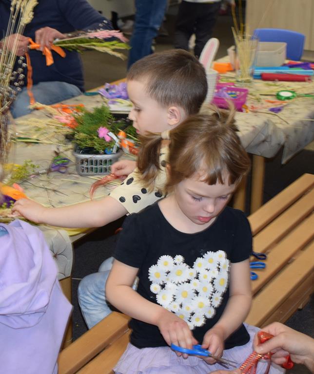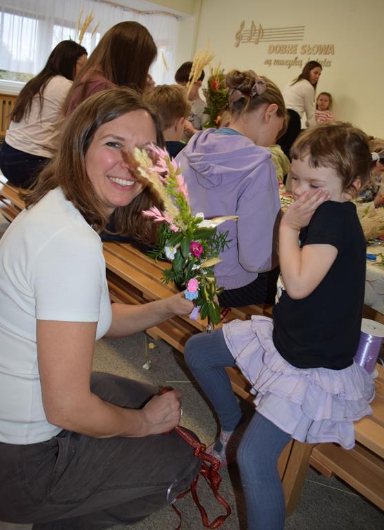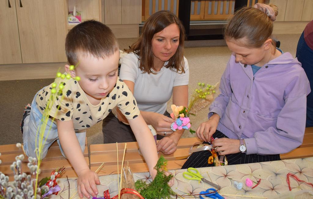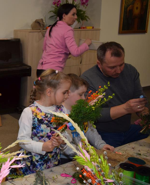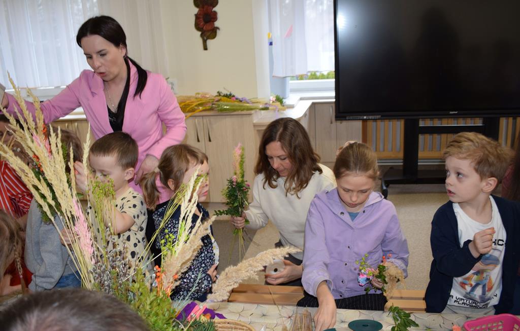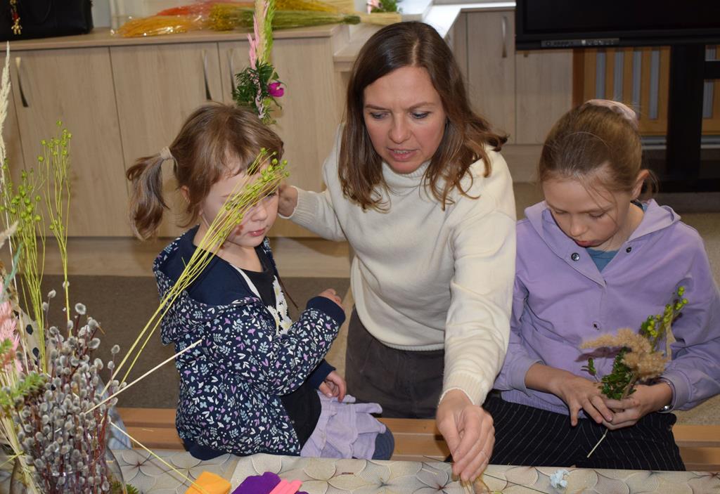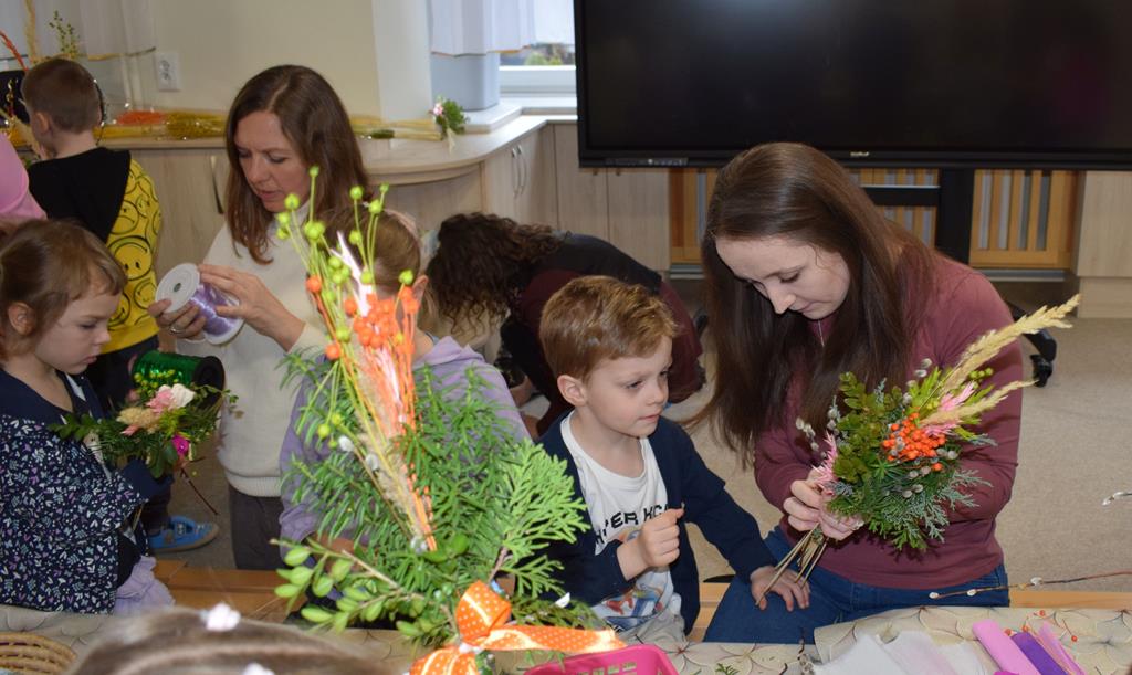 W grupie Motylków zapanował duch radosnego oczekiwania na Wielkanoc. Podczas wspólnych warsztatów dzieci i rodzice przygotowali tradycyjne palmy, które są symbolem wjazdu Pana Jezusa do Jerozolimy i zwiastunem nadchodzącego Zmartwychwstania. Praca nad palmami była nie tylko okazją do zabawy, ale przede wszystkim lekcją tradycji i wiary. Z bazi, bukszpanu, barwionych traw, owsa i kolorowych kwiatów powstały symbole życia i zwycięstwa, które nasze przedszkolaki z dumą zaniosą do kościoła na uroczyste poświęcenie w Niedzielę Palmową. Serdecznie dziękujemy Pani Karolinie za zaangażowanie w przygotowanie warsztatu, a wszystkim rodzicom za udział i wspólnie spędzony czas. Zapraszamy na niedzielną Mszę Świętą do kaplicy Sióstr Rodziny Maryi na godz. 10.00