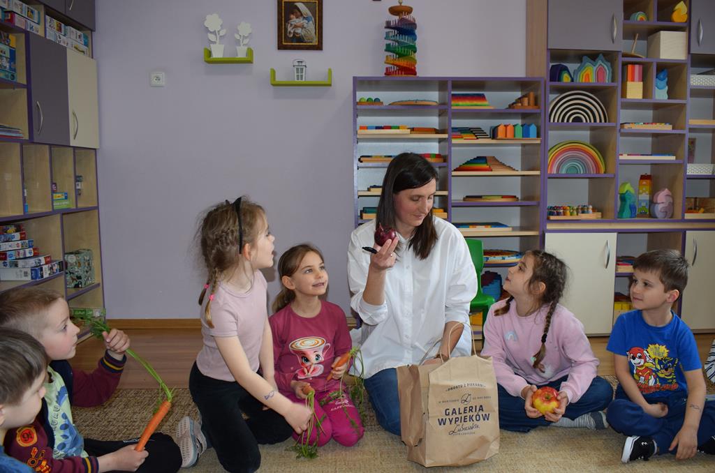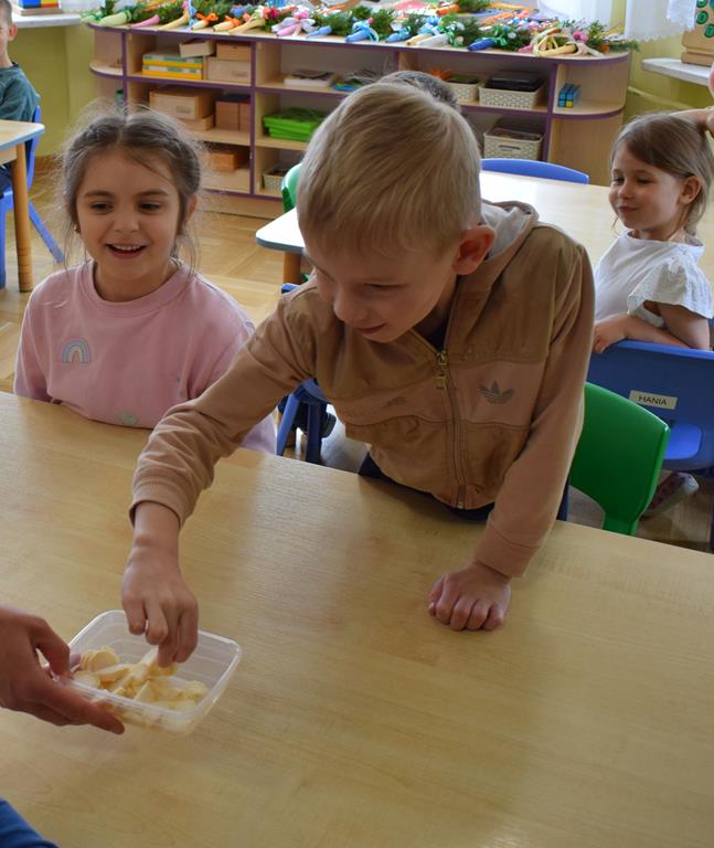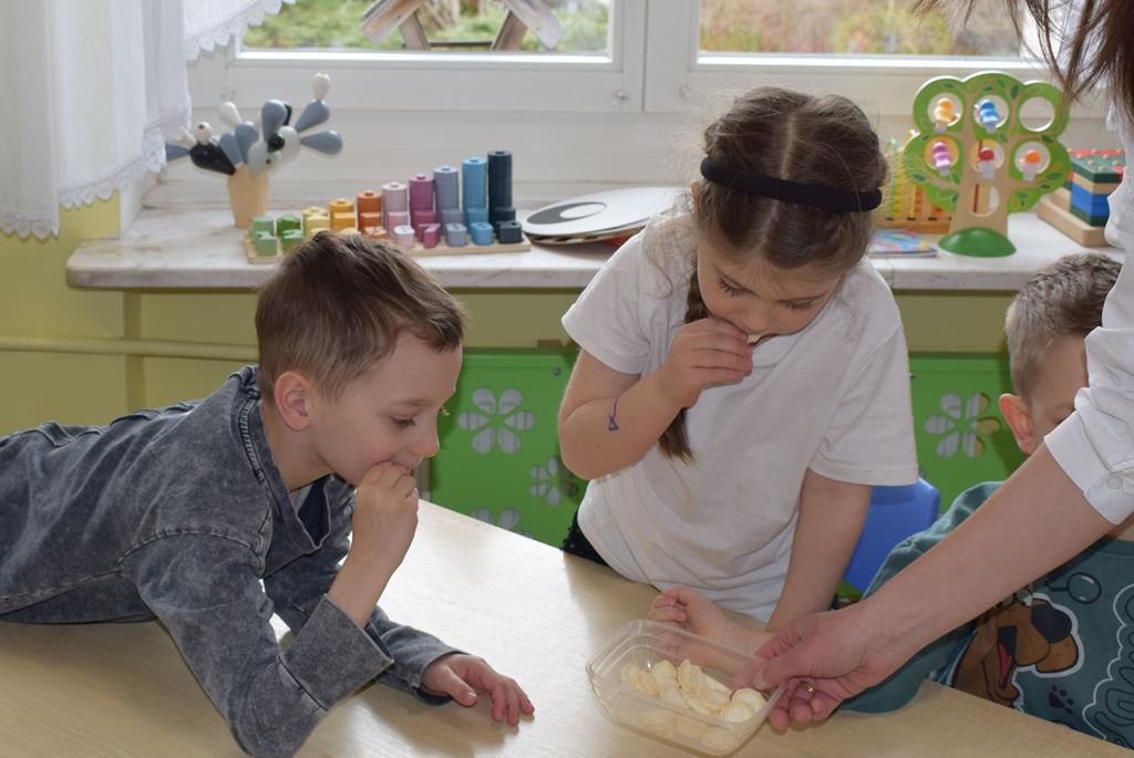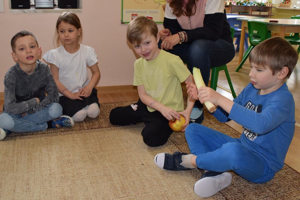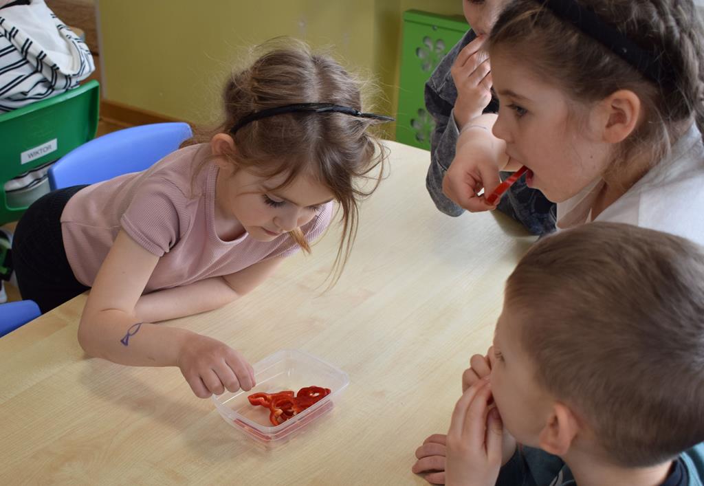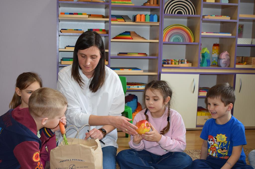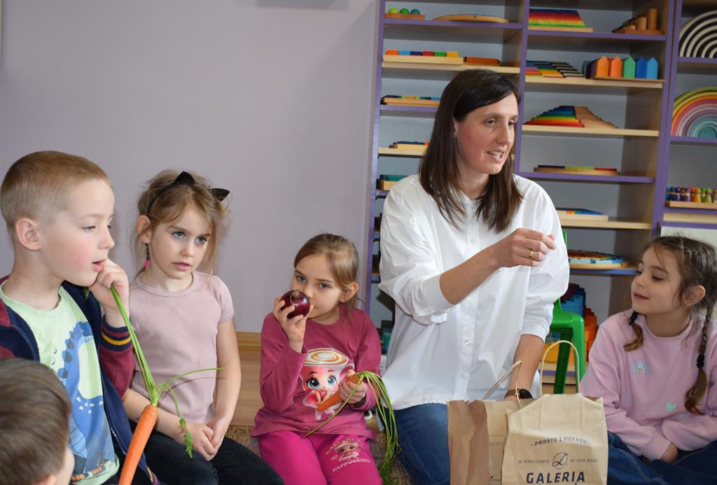 W grupie Sówek odbyÅ‚y siÄ™ zajÄ™cia „Wiem, co jem” z MamÄ… Tymka poÅ›wiÄ™cone zasadom zdrowego odżywiania. Celem spotkania byÅ‚o budowanie Å›wiadomoÅ›ci dotyczÄ…cej tego, co lÄ…duje na naszych talerzach, oraz zachÄ™cenie dzieci do próbowania nowych smaków. Sala zamieniÅ‚a siÄ™ w kolorowe laboratorium smaków, w którym gÅ‚ównÄ… rolÄ™ odgrywaÅ‚y Å›wieże owoce i warzywa. To byÅ‚a niesamowita frajda patrzeć, jak dzieci odkrywajÄ… smaki i nabierajÄ… pozytywnych skojarzeÅ„ o zdrowym jedzeniu. Pani Uli bardzo dziÄ™kujemy za spotkanie i za dawkÄ™ tylu witamin!