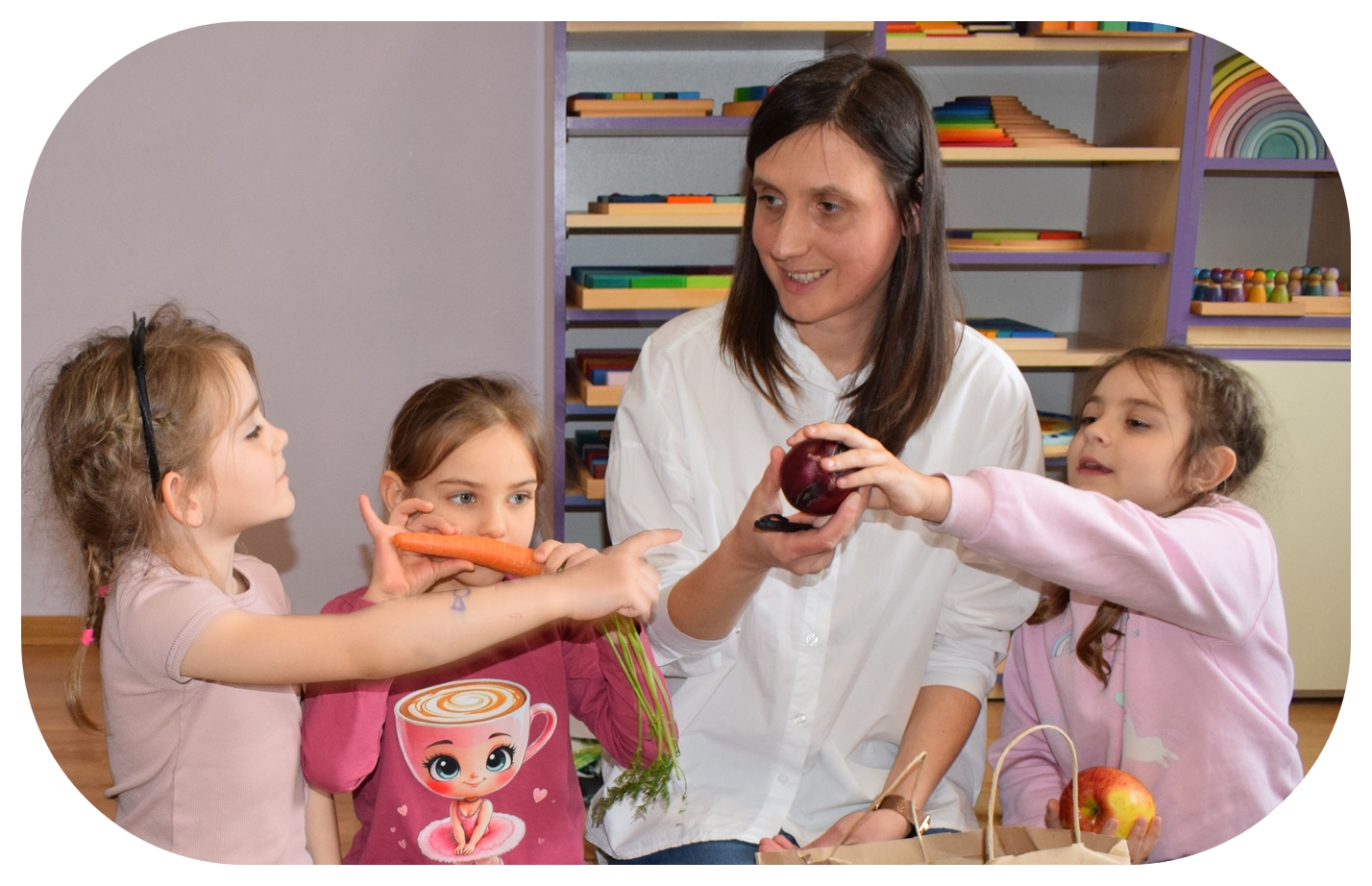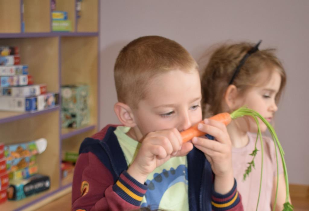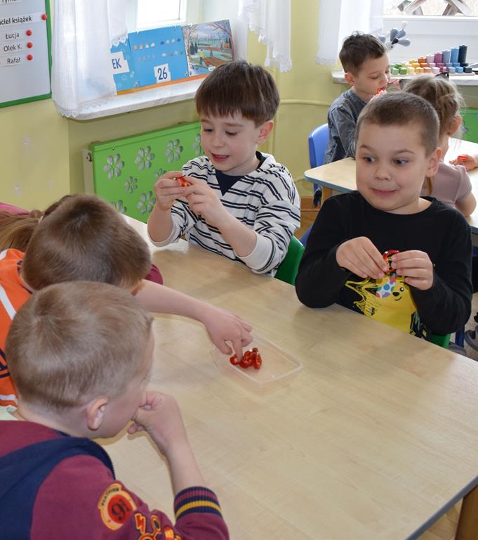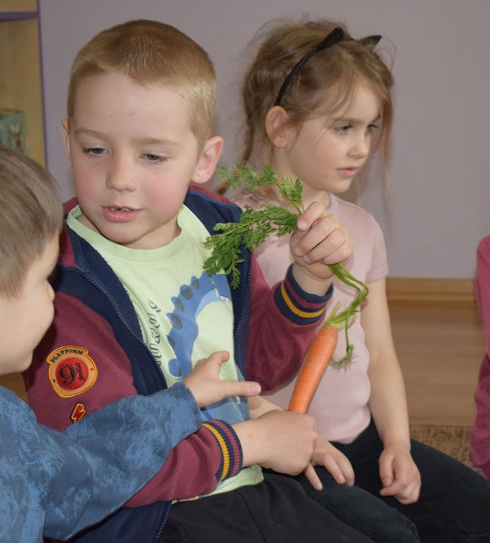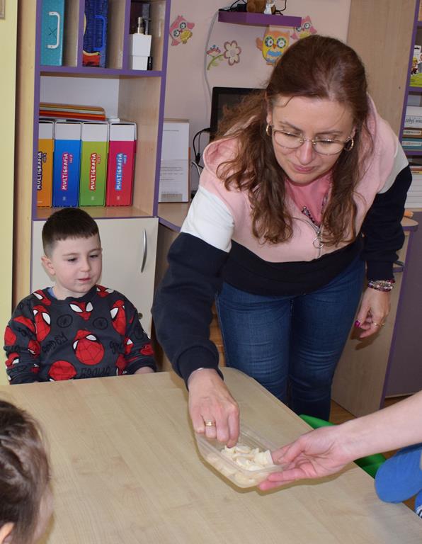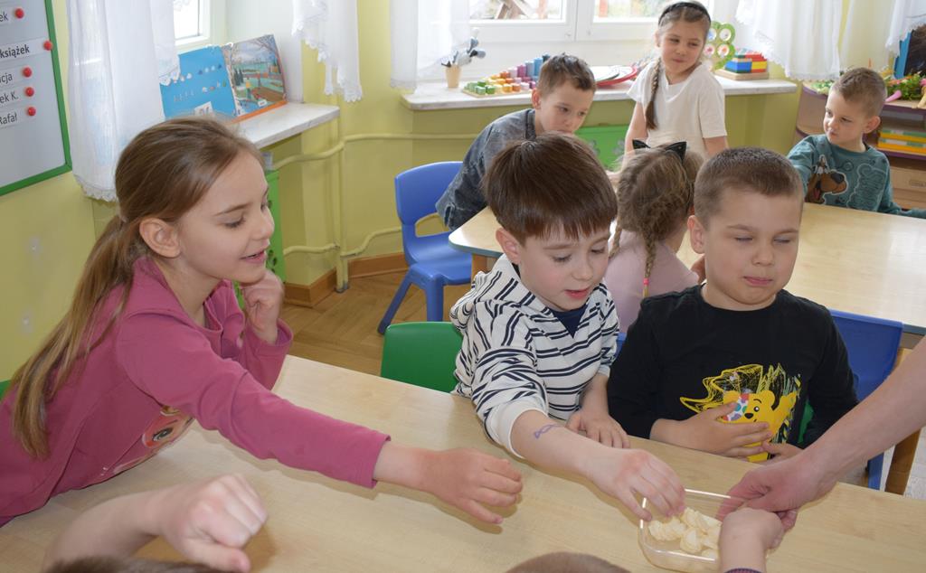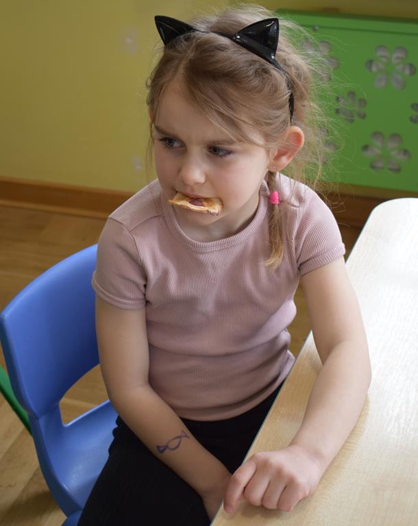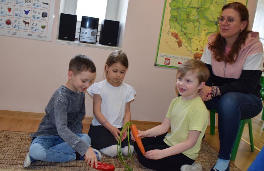 W grupie Sówek odbyÅ‚y siÄ™ zajÄ™cia „Wiem, co jem” z MamÄ… Tymka poÅ›wiÄ™cone zasadom zdrowego odżywiania. Celem spotkania byÅ‚o budowanie Å›wiadomoÅ›ci dotyczÄ…cej tego, co lÄ…duje na naszych talerzach, oraz zachÄ™cenie dzieci do próbowania nowych smaków. Sala zamieniÅ‚a siÄ™ w kolorowe laboratorium smaków, w którym gÅ‚ównÄ… rolÄ™ odgrywaÅ‚y Å›wieże owoce i warzywa. To byÅ‚a niesamowita frajda patrzeć, jak dzieci odkrywajÄ… smaki i nabierajÄ… pozytywnych skojarzeÅ„ o zdrowym jedzeniu. Pani Uli bardzo dziÄ™kujemy za spotkanie i za dawkÄ™ tylu witamin!