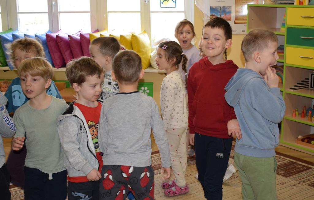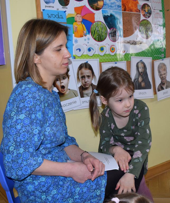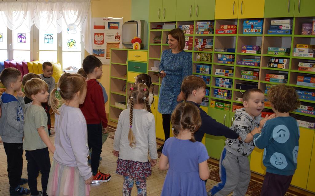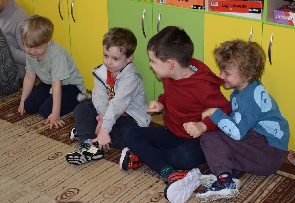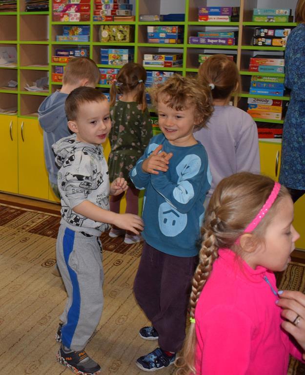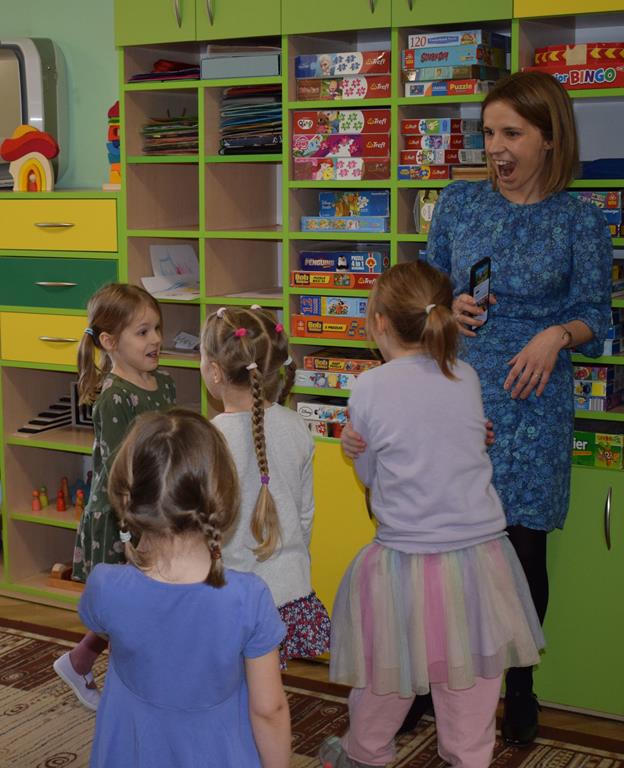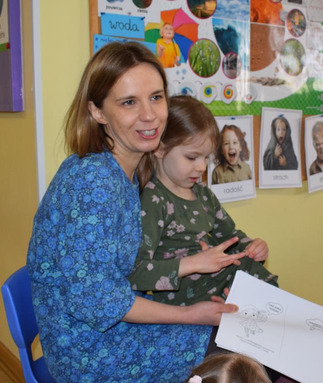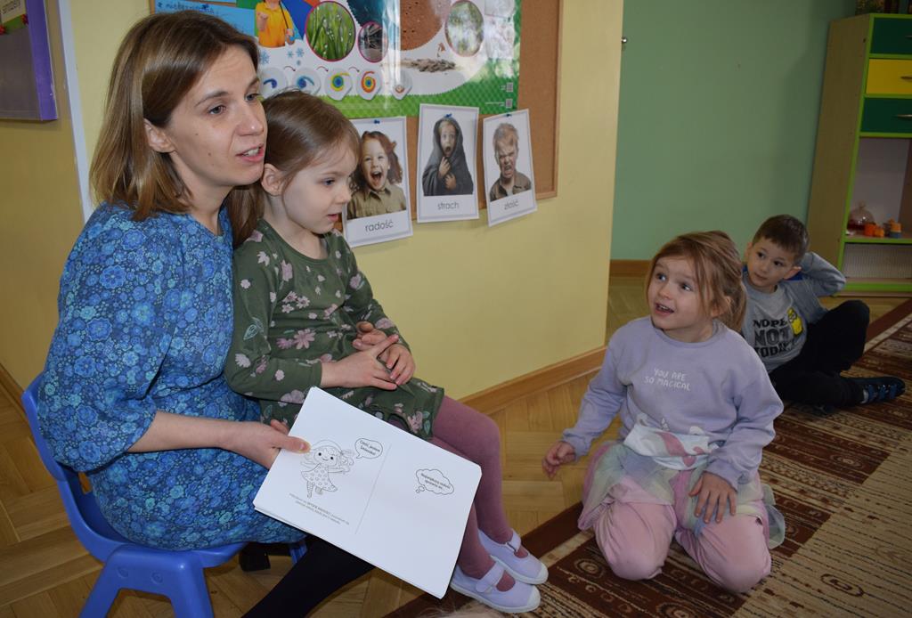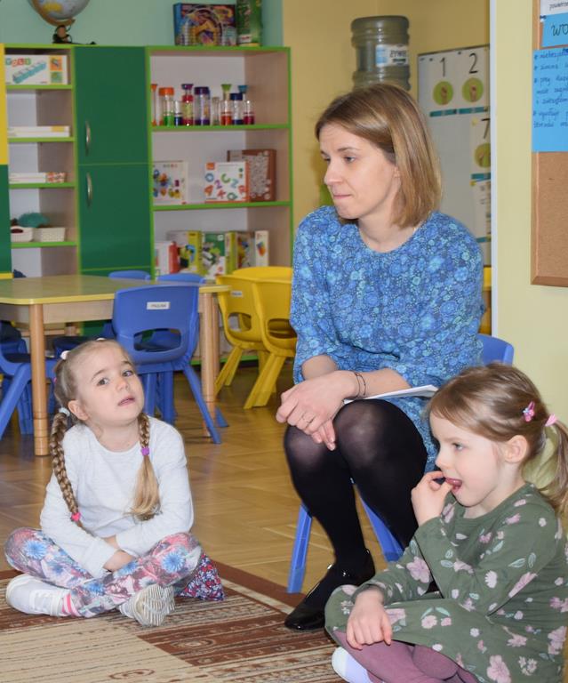 W ramach współpracy z rodzicami w gr. Motylki odbyło się spotkanie z Mamą Agatki, która z zawodu jest psychologiem. Pani Agnieszka przeprowadziła fantastyczne warsztaty o emocjach. Poprzez wspólną zabawę, zagadki i zestaw ilustracji dzieci uczyły się, jak rozpoznawać radość, smutek czy złość oraz jak radzić sobie z trudniejszymi emocjami. Odbyła się również zabawa ruchowa przy muzyce – dzieci z ogromnym entuzjazmem reagowały na zmieniające się rytmy, ucząc się rozpoznawać i wyrażać emocje poprzez taniec i gesty. Gdy muzyka była skoczna i wesoła, sala wypełniła się radosnymi podskokami, a przy wolniejszych tonach dzieci wyrażały smutek czy spokój. Było mnóstwo śmiechu, ale też chwil ważnego skupienia i empatii. Serdecznie dziękujemy mamie Agatki za poświęcony czas, kreatywność i serce włożone w przygotowanie tych zajęć.