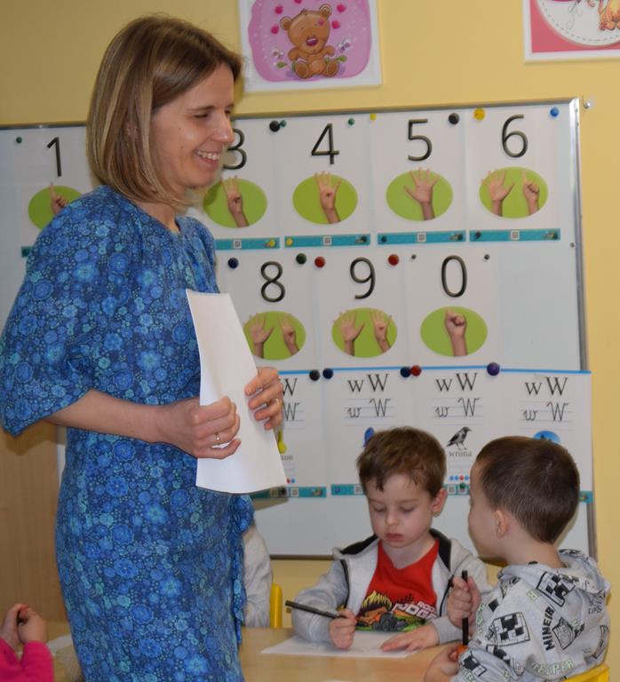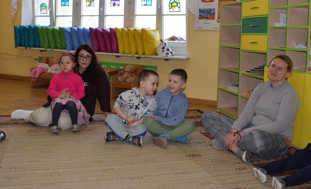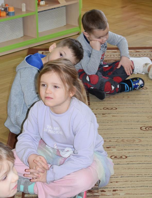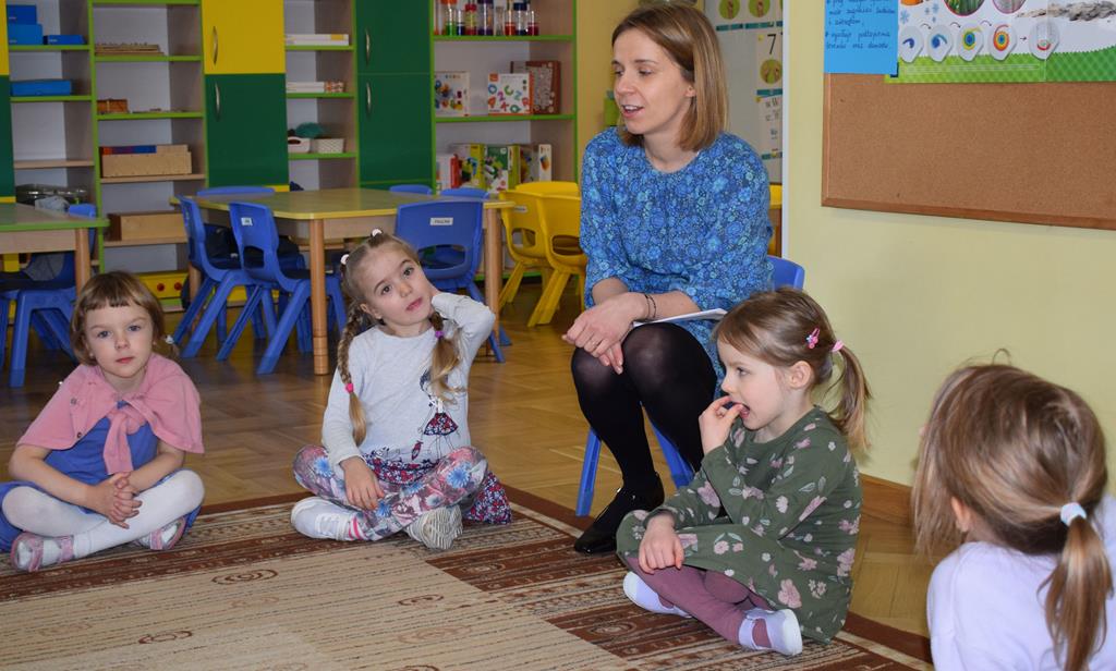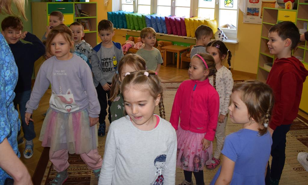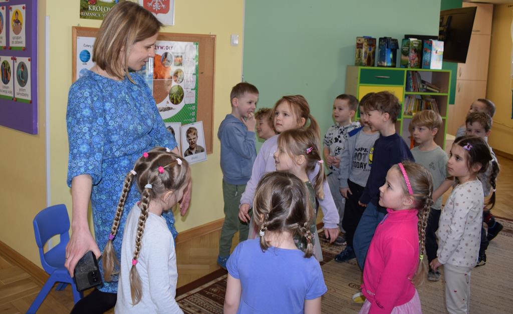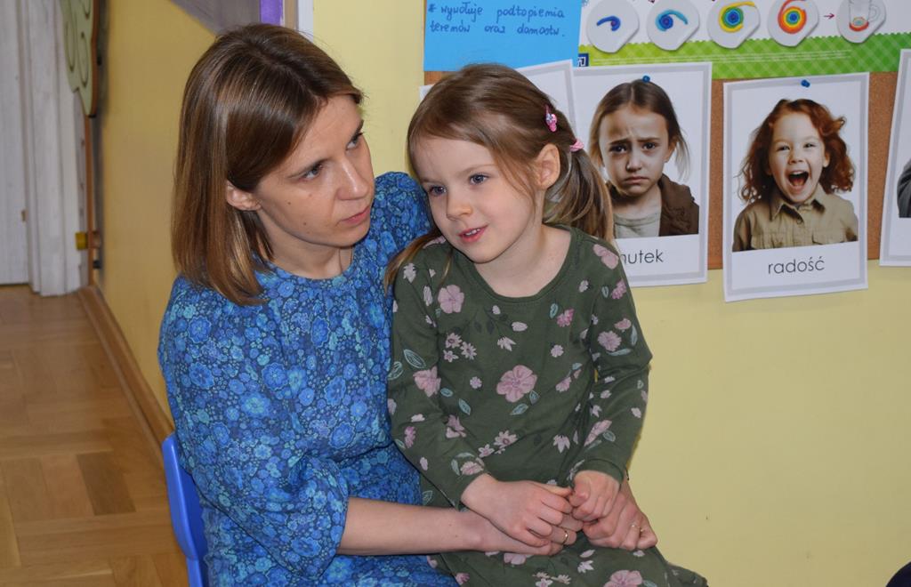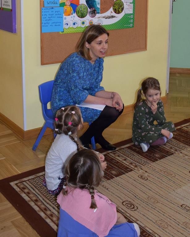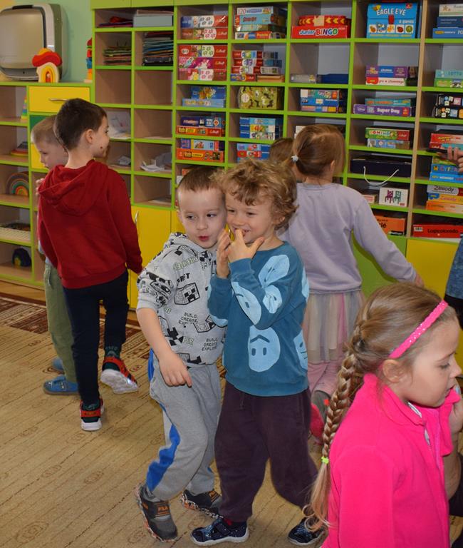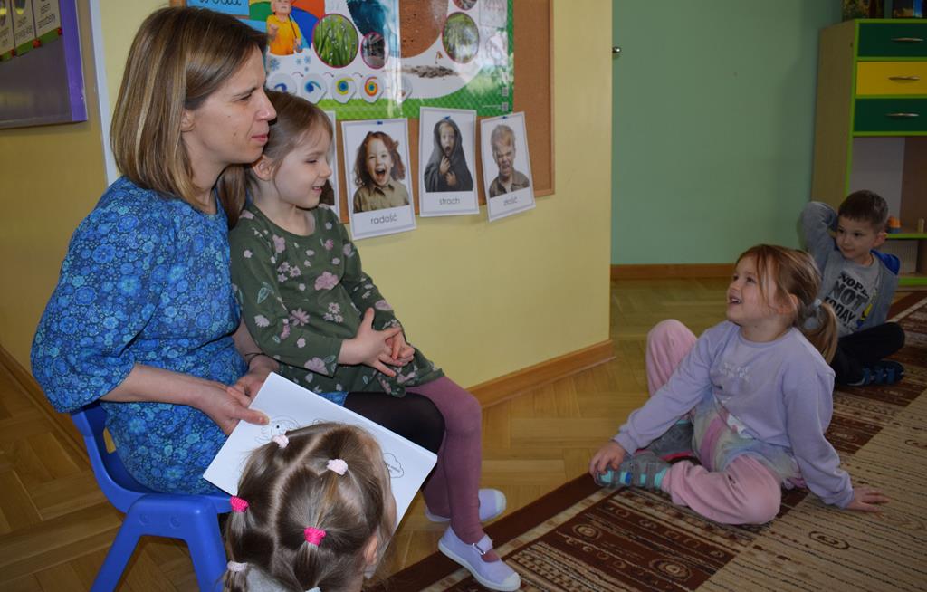 W ramach współpracy z rodzicami w gr. Motylki odbyło się spotkanie z Mamą Agatki, która z zawodu jest psychologiem. Pani Agnieszka przeprowadziła fantastyczne warsztaty o emocjach. Poprzez wspólną zabawę, zagadki i zestaw ilustracji dzieci uczyły się, jak rozpoznawać radość, smutek czy złość oraz jak radzić sobie z trudniejszymi emocjami. Odbyła się również zabawa ruchowa przy muzyce – dzieci z ogromnym entuzjazmem reagowały na zmieniające się rytmy, ucząc się rozpoznawać i wyrażać emocje poprzez taniec i gesty. Gdy muzyka była skoczna i wesoła, sala wypełniła się radosnymi podskokami, a przy wolniejszych tonach dzieci wyrażały smutek czy spokój. Było mnóstwo śmiechu, ale też chwil ważnego skupienia i empatii. Serdecznie dziękujemy mamie Agatki za poświęcony czas, kreatywność i serce włożone w przygotowanie tych zajęć.
