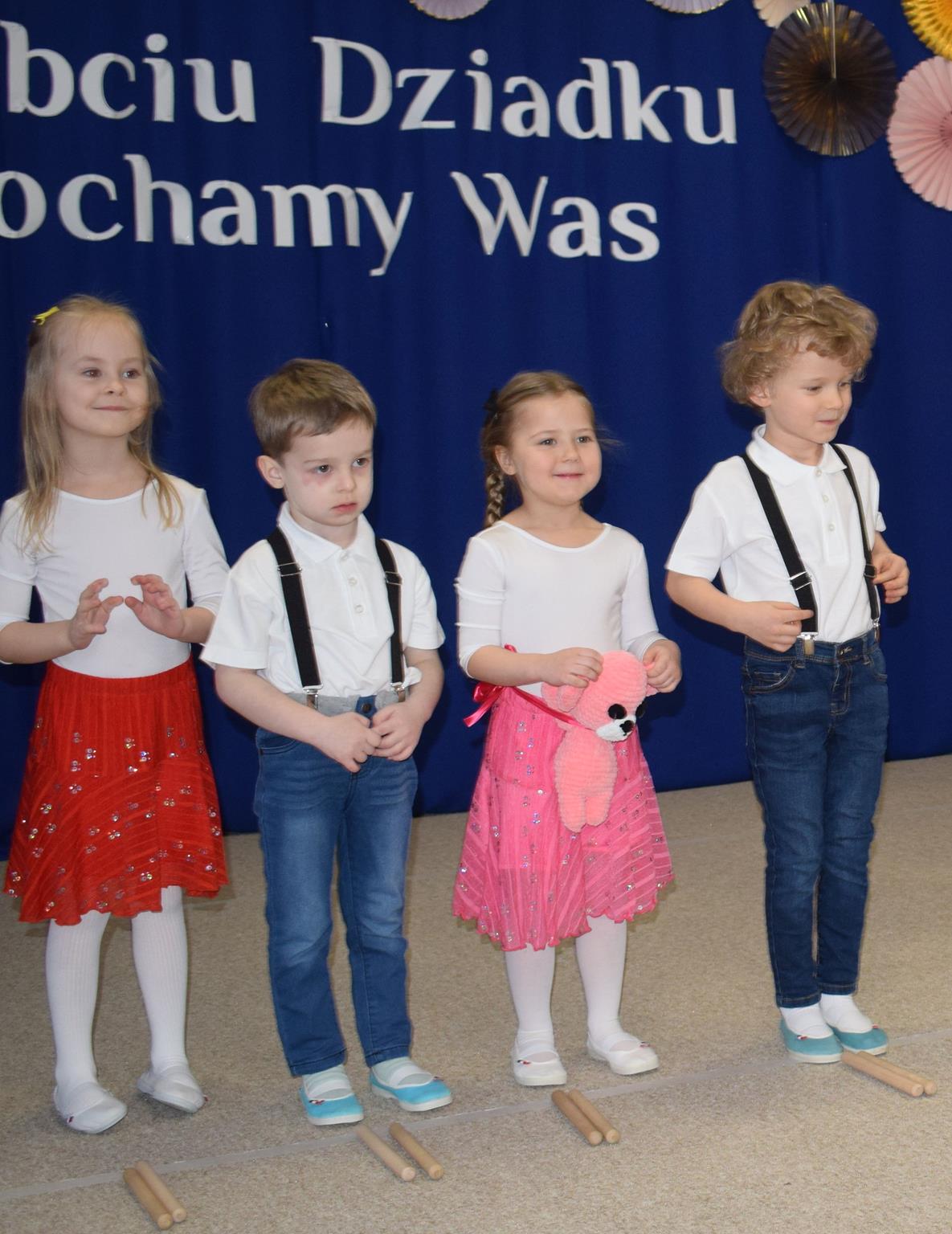 Gościliśmy w naszym przedszkolu wyjątkowe osoby – kochane Babcie i Dziadków. Dziadkowie, to wielki skarb. To oni czynią dzieciństwo bardziej pełnym, udanym i szczęśliwym. Babcia i Dziadek to słowa, które każdemu dziecku kojarzą się z ciepłem, miłością i wszystkim, co dobre. Mali artyści z wielkim przejęciem wyśpiewali najpiękniejsze życzenia, wyrecytowali wierszyki pełne miłości, odtańczyli radosne tańce, które wywołały uśmiech na każdej twarzy. Nie zabrakło też wzruszeń przy wręczaniu własnoręcznie przygotowanych upominków. Kochani Dziadkowie dziękujemy za Waszą obecność, za każdą bajkę, opowieść, przytulenie, pomoc, za czas, który poświęcacie swoim wnuczętom! Życzymy Wam dużo zdrowia, uśmiechu, a przede wszystkim Bożego błogosławieństwa na każdy dzień życia.