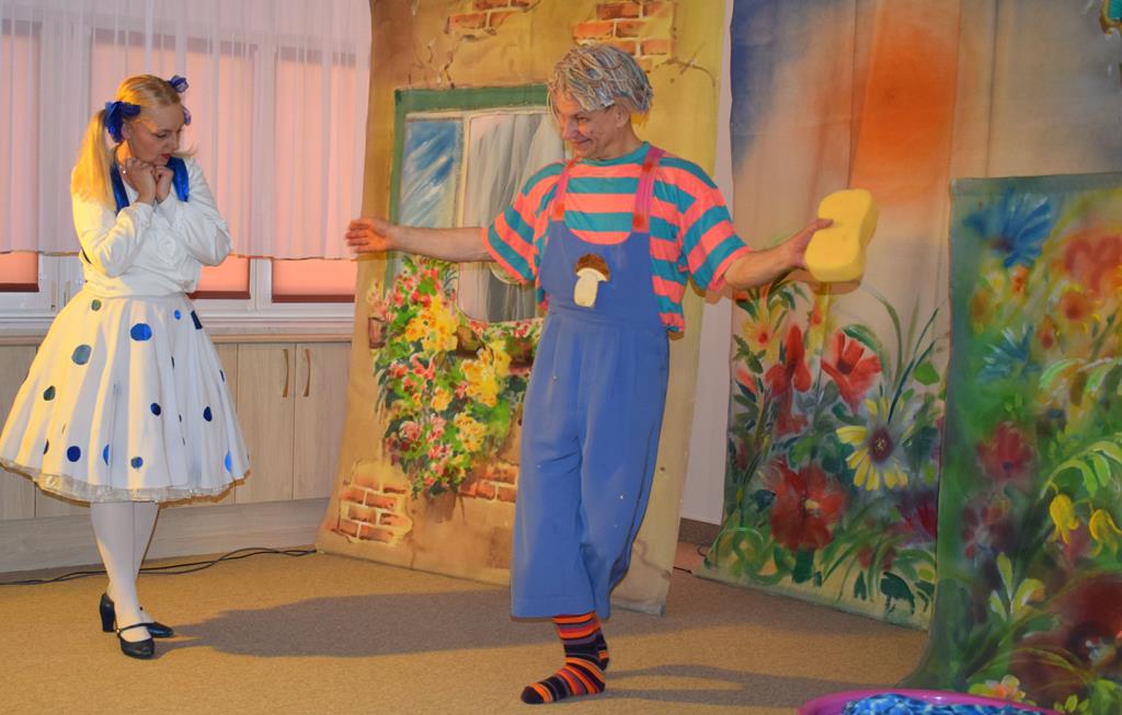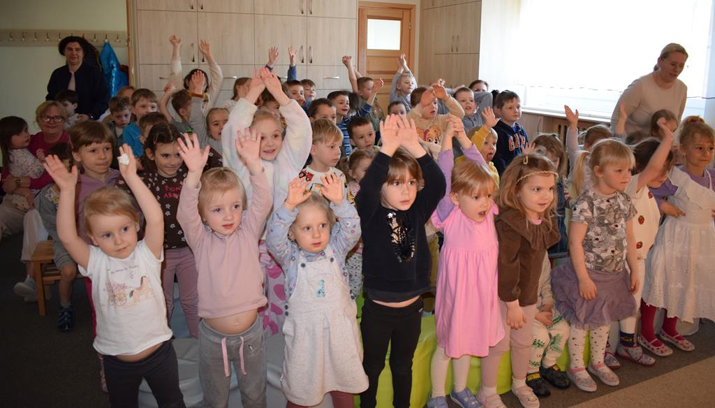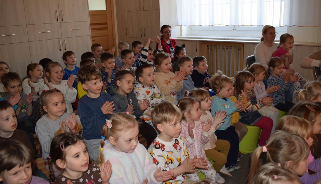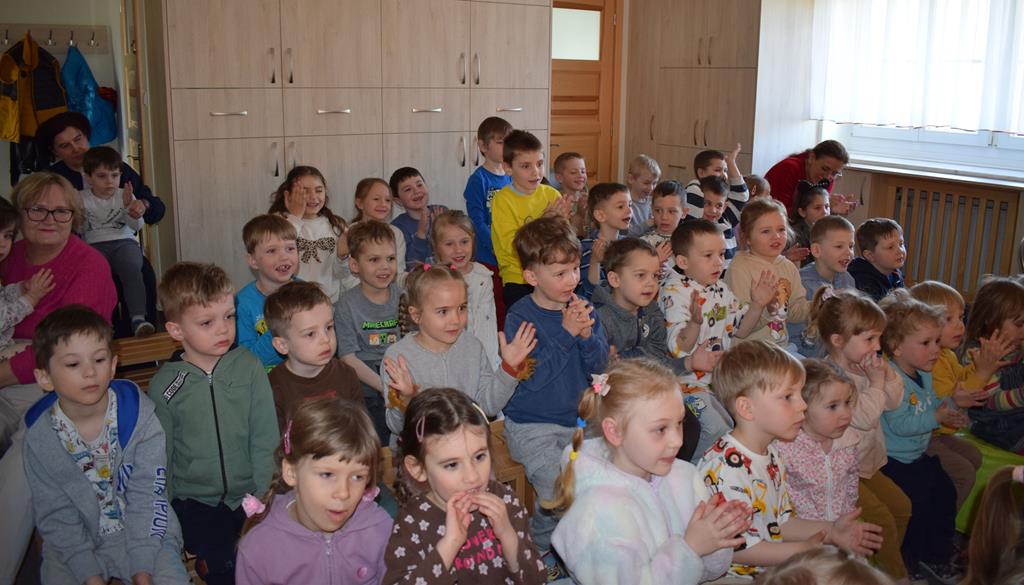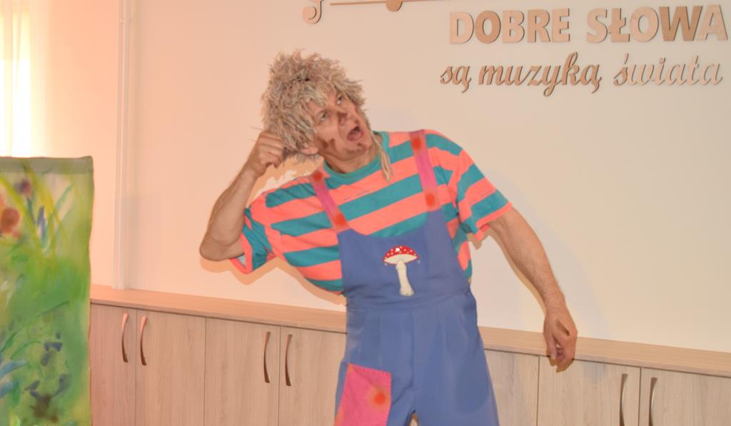 Nasze przedszkole odwiedzili aktorzy z Teatru Złoty Dukat. Dzieci miały okazję obejrzeć pouczający i pełen humoru spektakl pt. „O Brudasku Oberwasku”. Głównym bohaterem był chłopiec, który unikał wody, mydła i grzebienia, co stało się początkiem serii zabawnych nieszczęść. Dzięki pomocy innych bohaterów oraz aktywnemu wsparciu naszych przedszkolaków, Oberwasek zrozumiał, że czystość to zdrowie. Spektakl był lekcją higieny podaną w lekkiej, teatralnej formie. Kolorowa scenografia i świetna gra aktorska sprawiły, że przedszkolaki z dużym zaangażowaniem śledziły losy bohatera. Serdecznie dziękujemy aktorom z Teatru Złoty Dukat za profesjonalizm, wspaniałą energię i umiejętność nawiązania doskonałego kontaktu z najmłodszą widownią. Dzięki Wam nauka dobrych nawyków stała się dla naszych dzieci niezapomnianą przygodą!