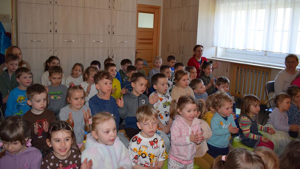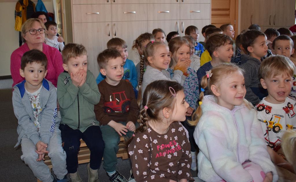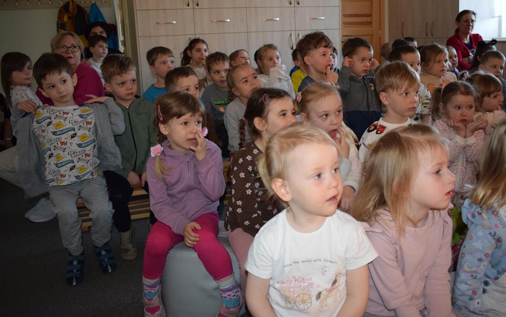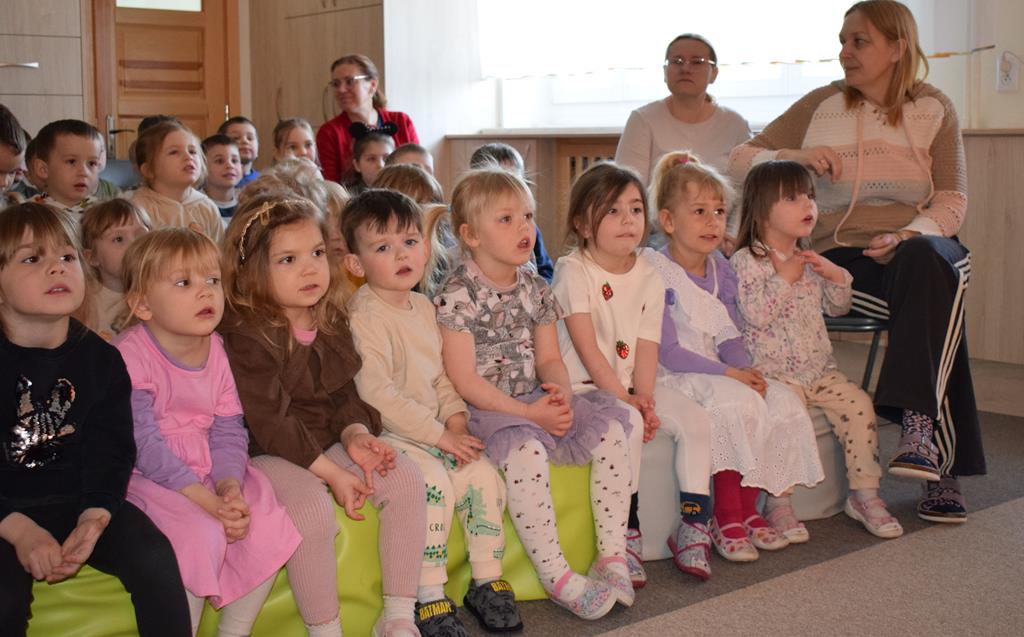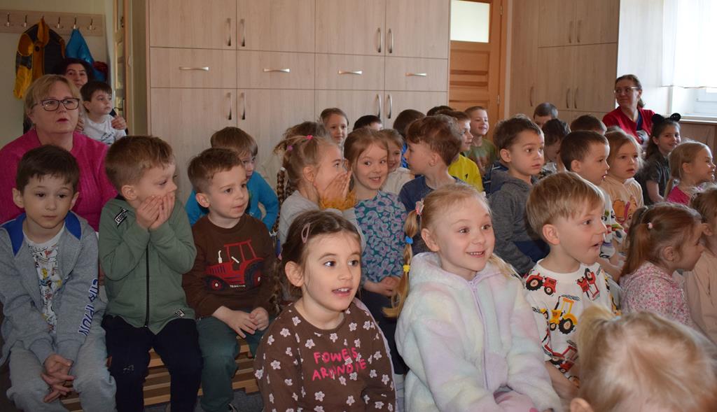 Nasze przedszkole odwiedzili aktorzy z Teatru Złoty Dukat. Dzieci miały okazję obejrzeć pouczający i pełen humoru spektakl pt. „O Brudasku Oberwasku”. Głównym bohaterem był chłopiec, który unikał wody, mydła i grzebienia, co stało się początkiem serii zabawnych nieszczęść. Dzięki pomocy innych bohaterów oraz aktywnemu wsparciu naszych przedszkolaków, Oberwasek zrozumiał, że czystość to zdrowie. Spektakl był lekcją higieny podaną w lekkiej, teatralnej formie. Kolorowa scenografia i świetna gra aktorska sprawiły, że przedszkolaki z dużym zaangażowaniem śledziły losy bohatera. Serdecznie dziękujemy aktorom z Teatru Złoty Dukat za profesjonalizm, wspaniałą energię i umiejętność nawiązania doskonałego kontaktu z najmłodszą widownią. Dzięki Wam nauka dobrych nawyków stała się dla naszych dzieci niezapomnianą przygodą!