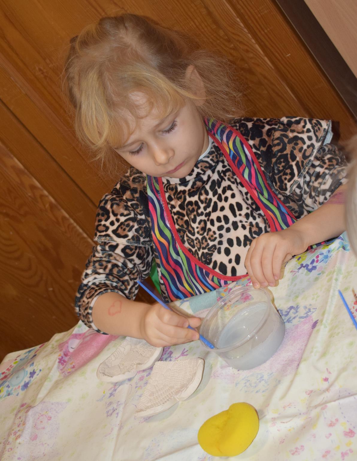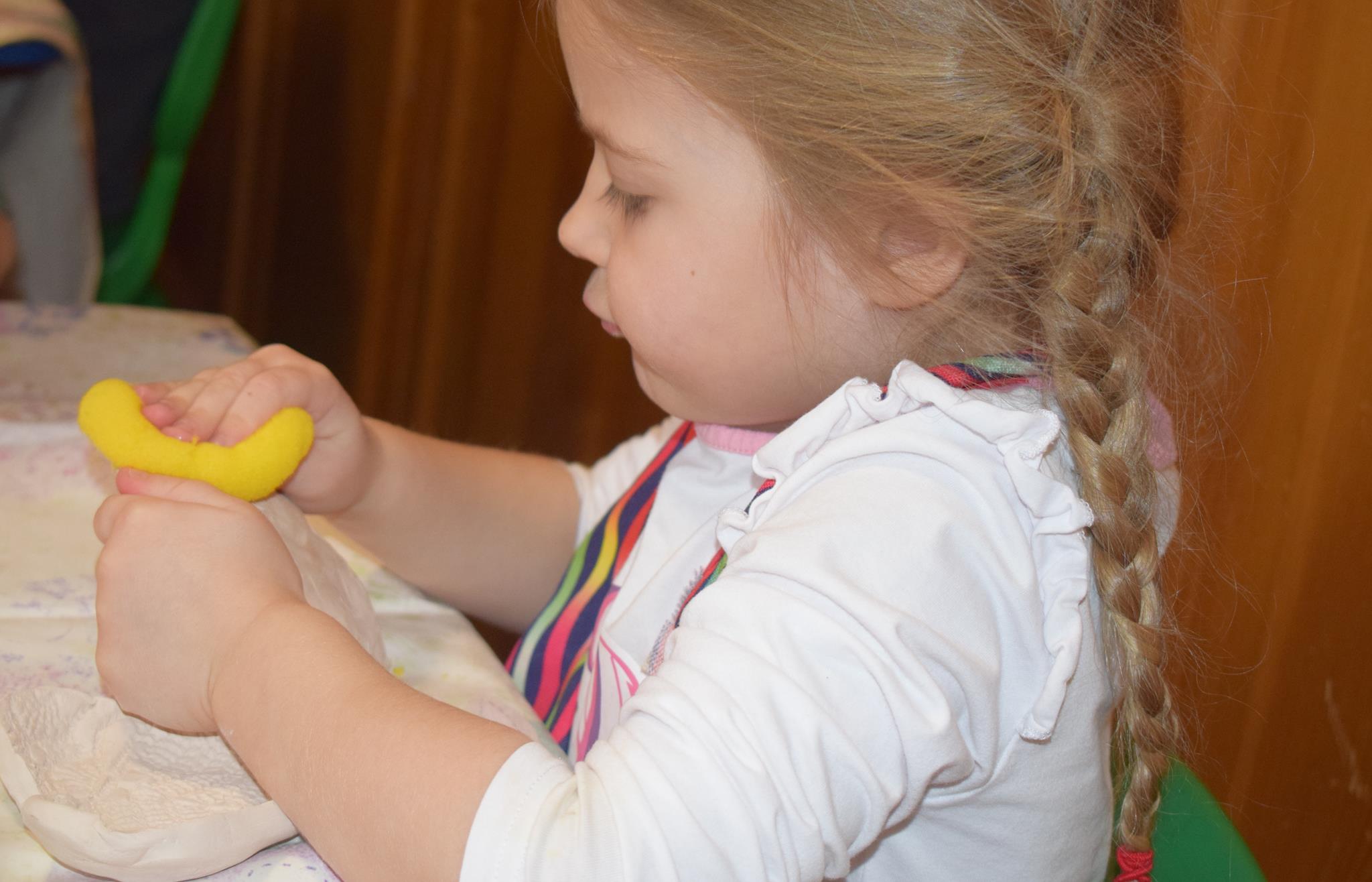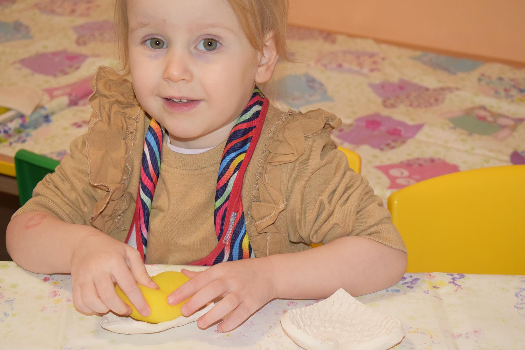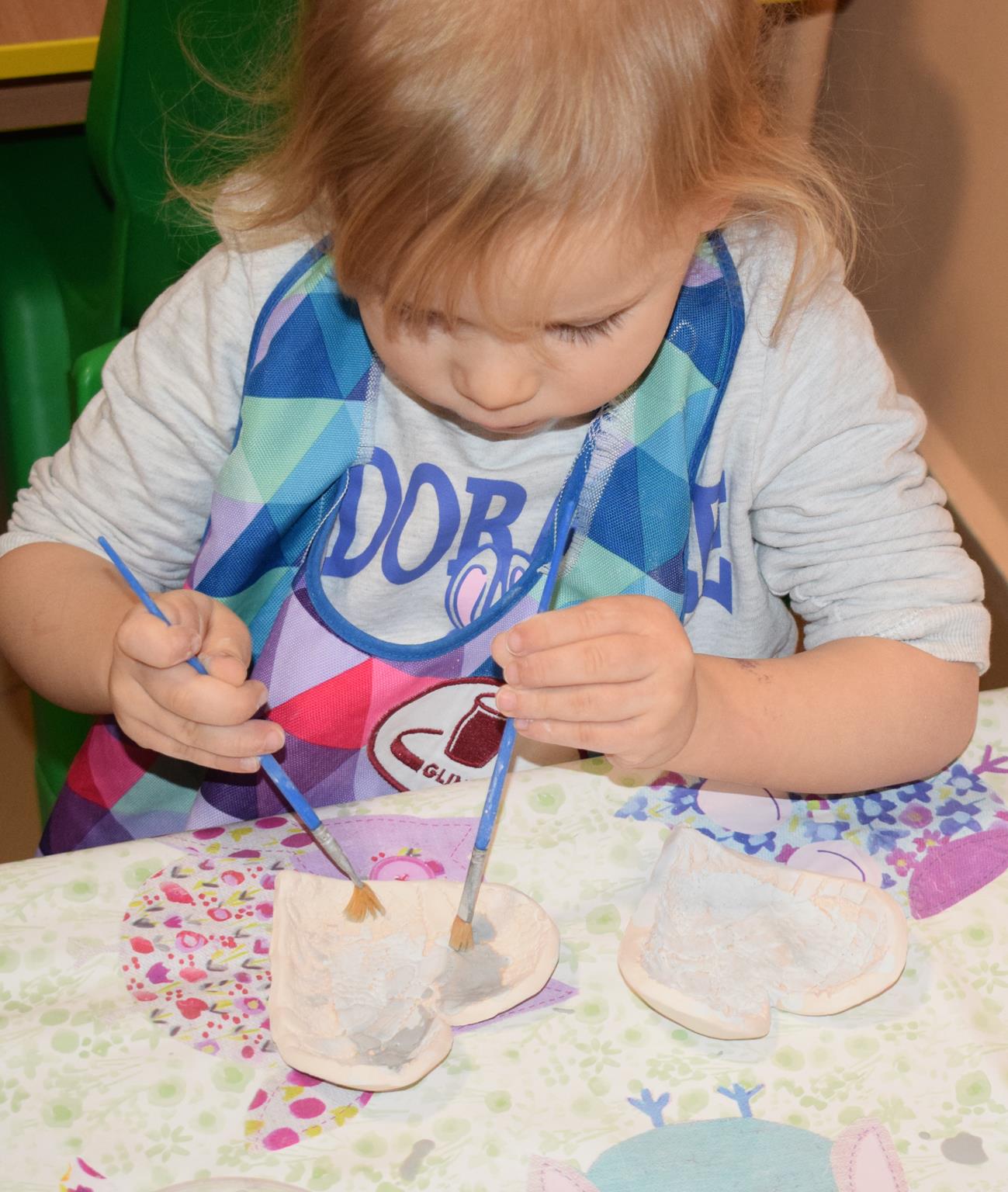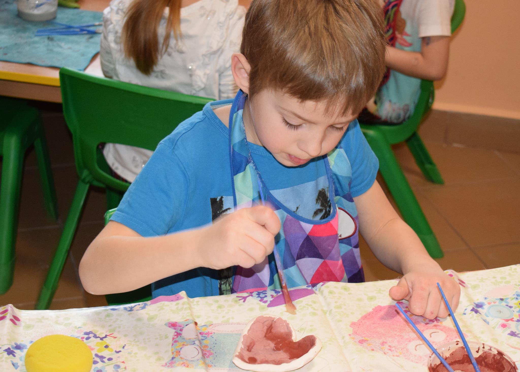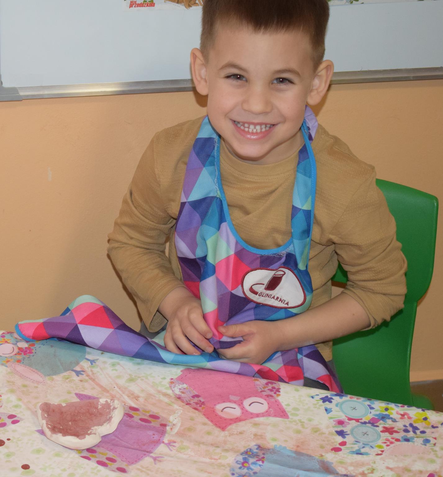 Dzieci delikatnie przecierały gąbką swoje prace, a następnie nakładały szkliwo. Po skończonych zajęciach Pani Julia zabierze serduszka do swojej pracowni i ponownie wypali je w piecu. Gotowe serduszka dzieci pięknie zapakują i podarują swoim kochanym Babciom i kochanym Dziadziusiom podczas przedszkolnych uroczystości, na które serdecznie zapraszamy Miłych Gości: