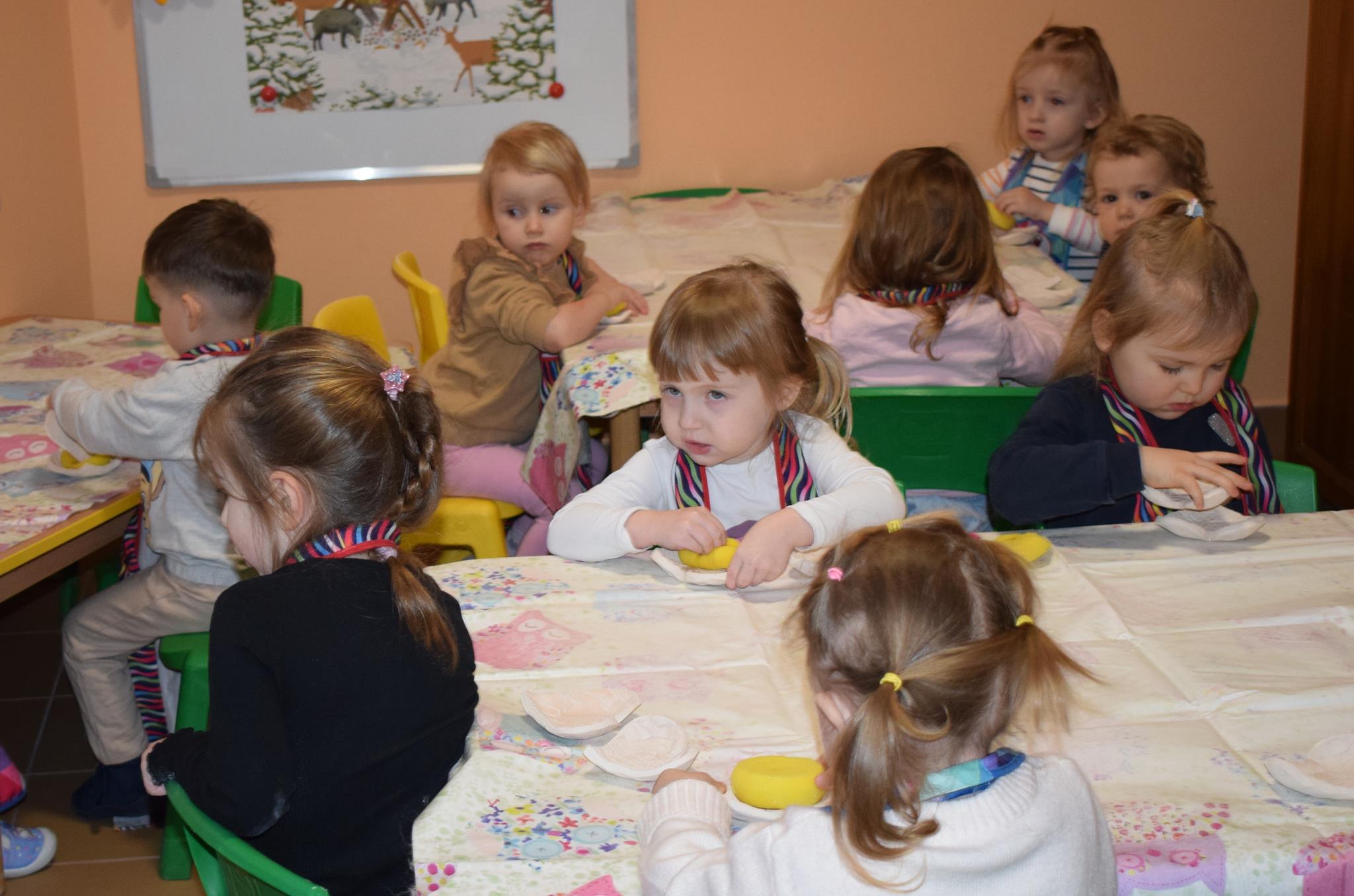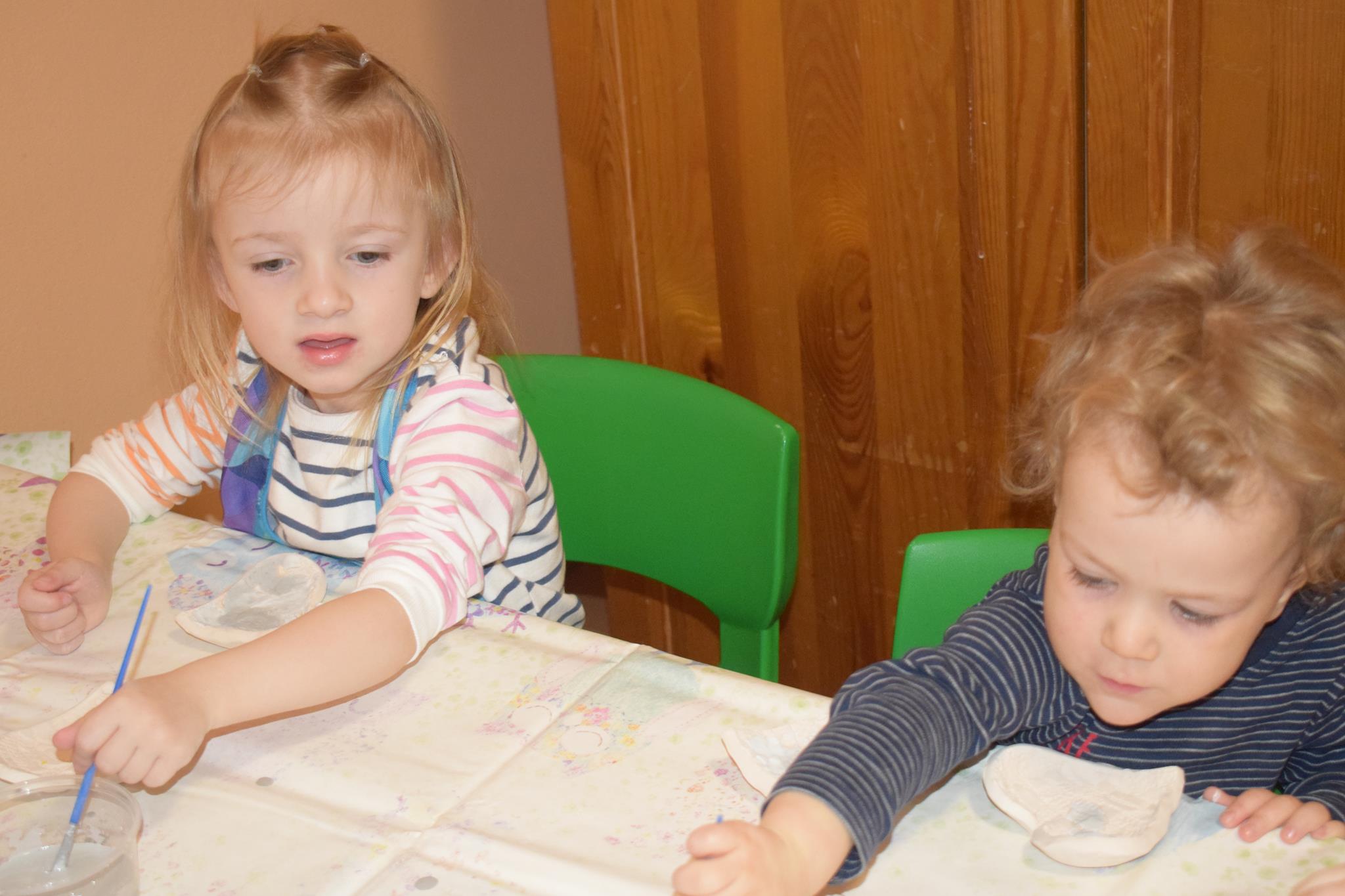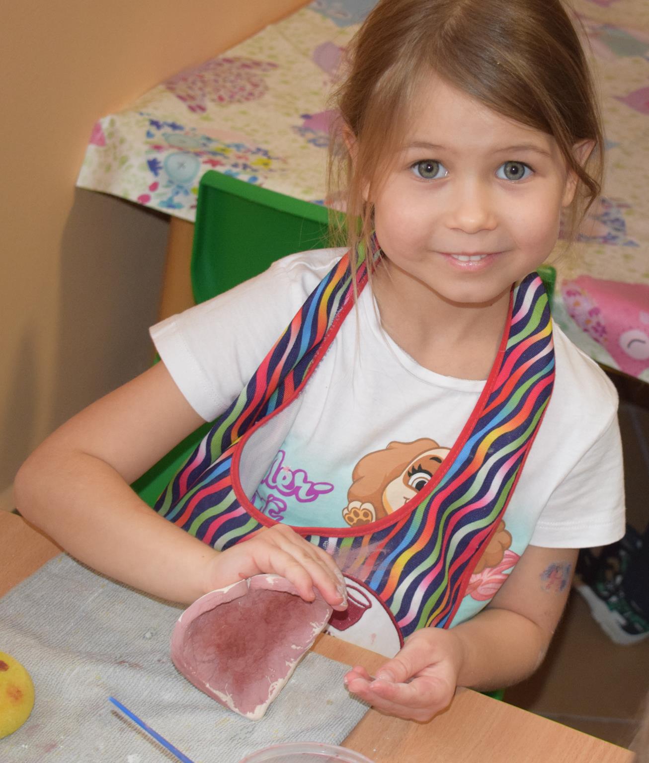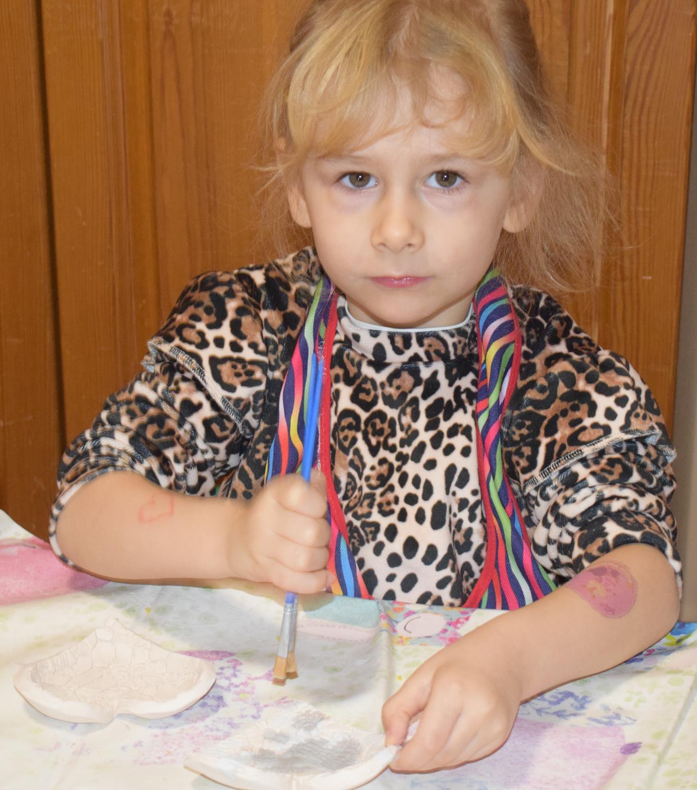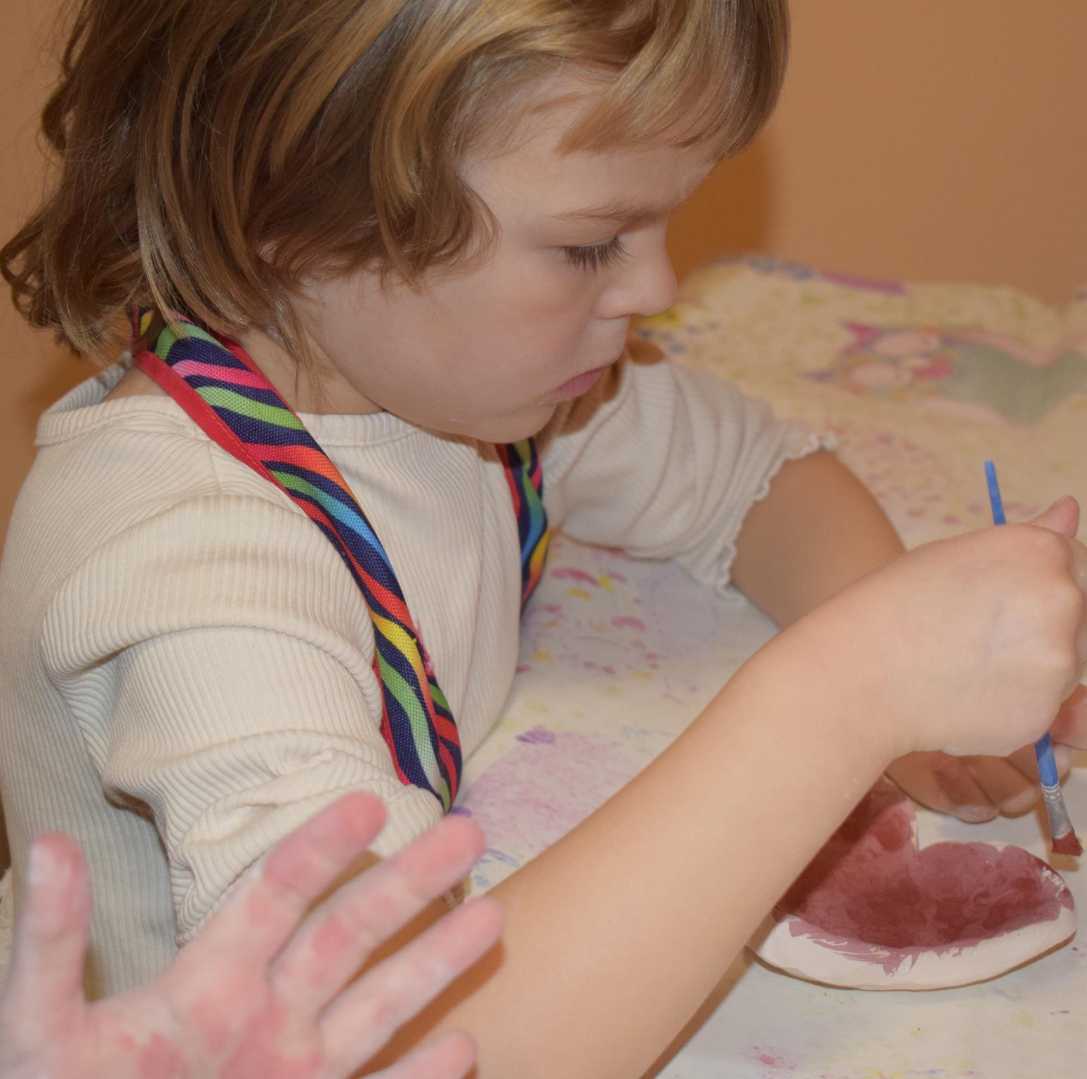 Dzieci delikatnie przecierały gąbką swoje prace, a następnie nakładały szkliwo. Po skończonych zajęciach Pani Julia zabierze serduszka do swojej pracowni i ponownie wypali je w piecu. Gotowe serduszka dzieci pięknie zapakują i podarują swoim kochanym Babciom i kochanym Dziadziusiom podczas przedszkolnych uroczystości, na które serdecznie zapraszamy Miłych Gości: