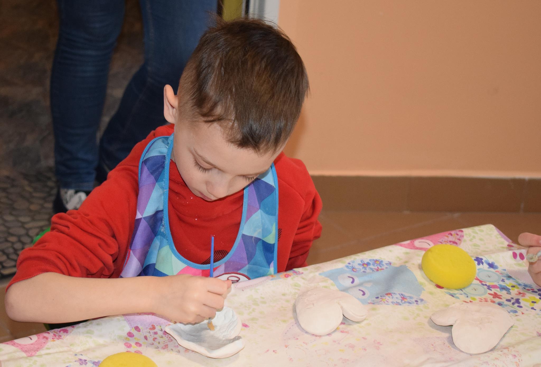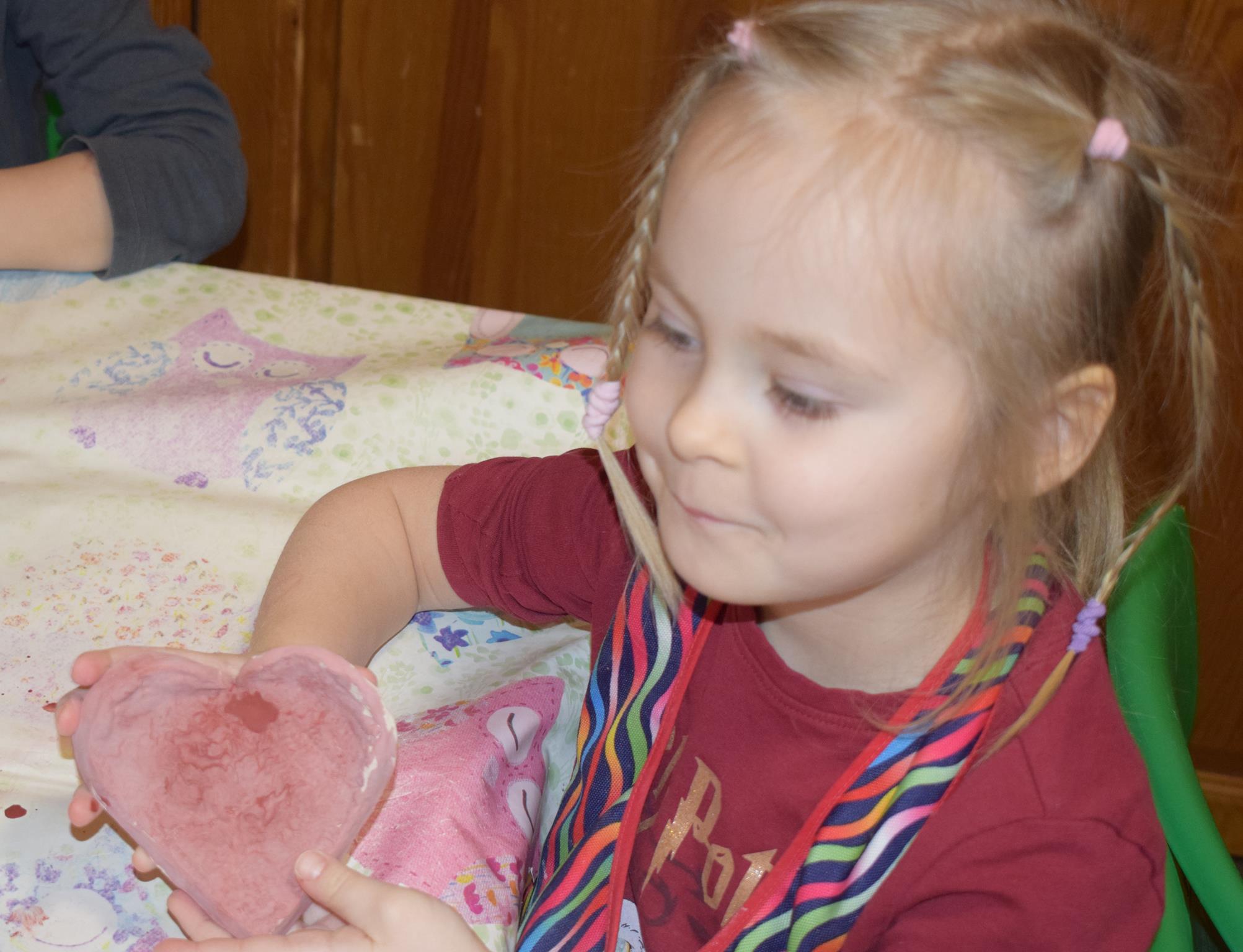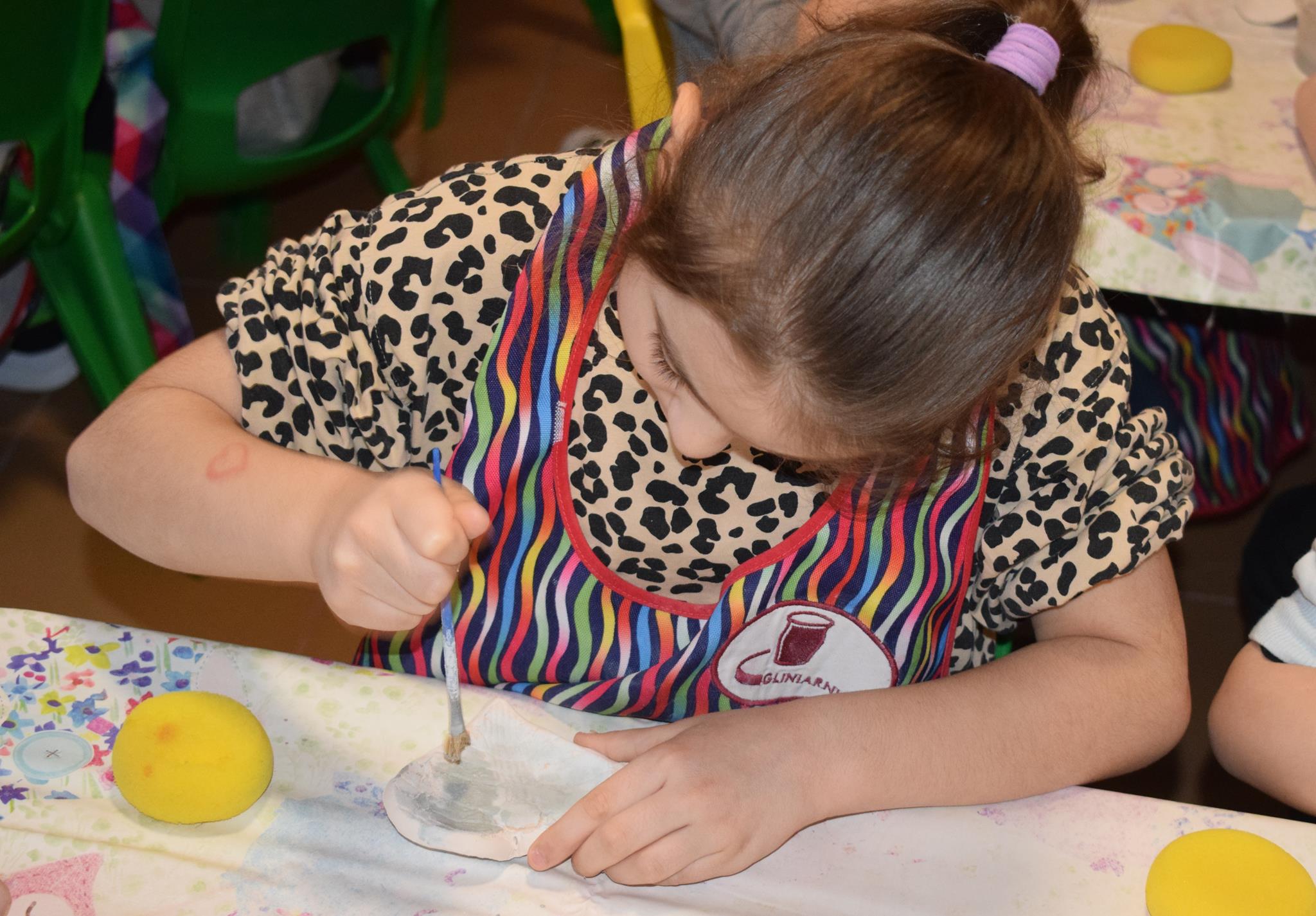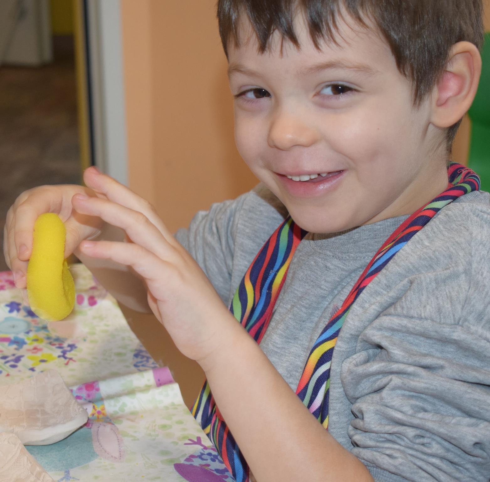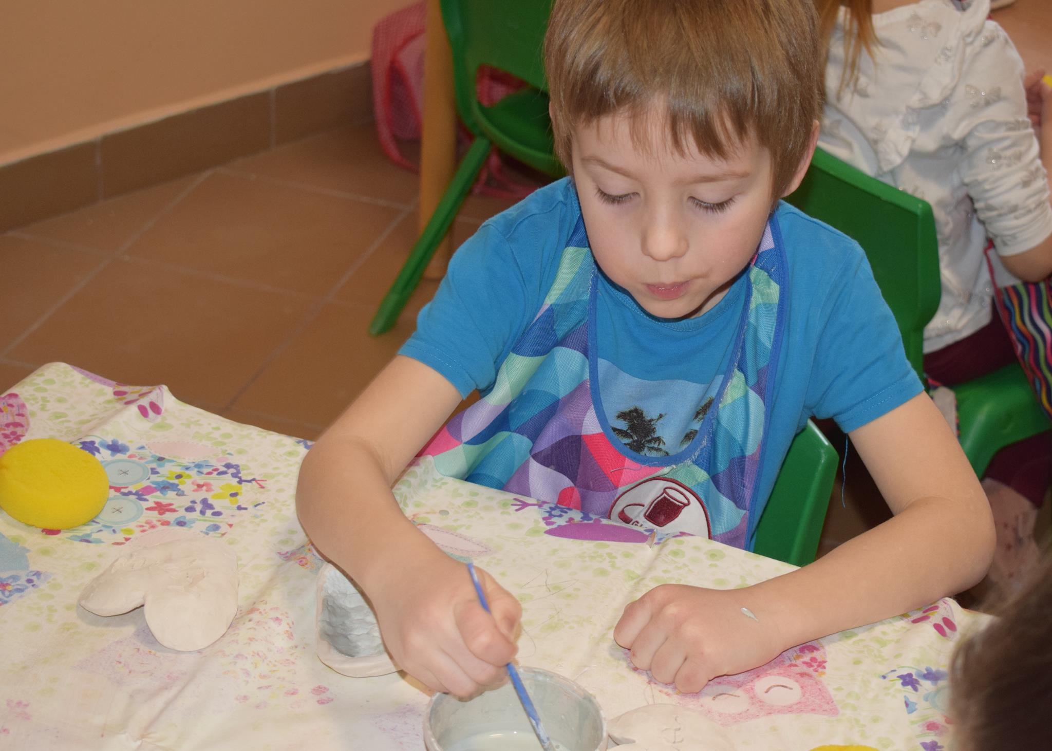 Dzieci delikatnie przecierały gąbką swoje prace, a następnie nakładały szkliwo. Po skończonych zajęciach Pani Julia zabierze serduszka do swojej pracowni i ponownie wypali je w piecu. Gotowe serduszka dzieci pięknie zapakują i podarują swoim kochanym Babciom i kochanym Dziadziusiom podczas przedszkolnych uroczystości, na które serdecznie zapraszamy Miłych Gości: