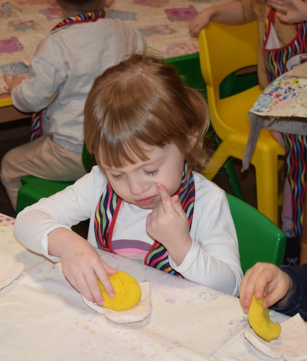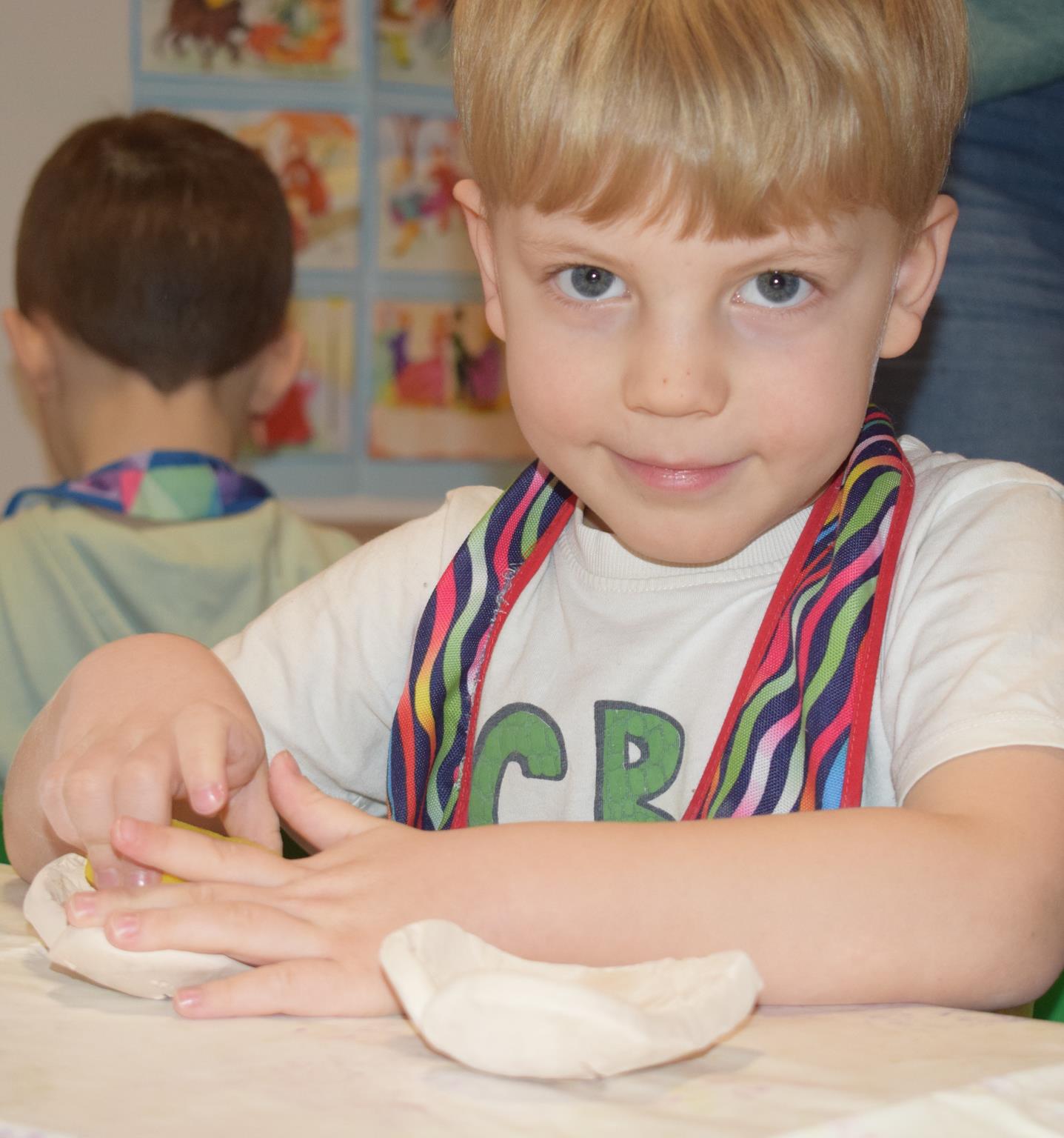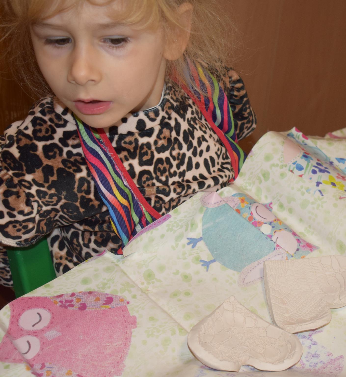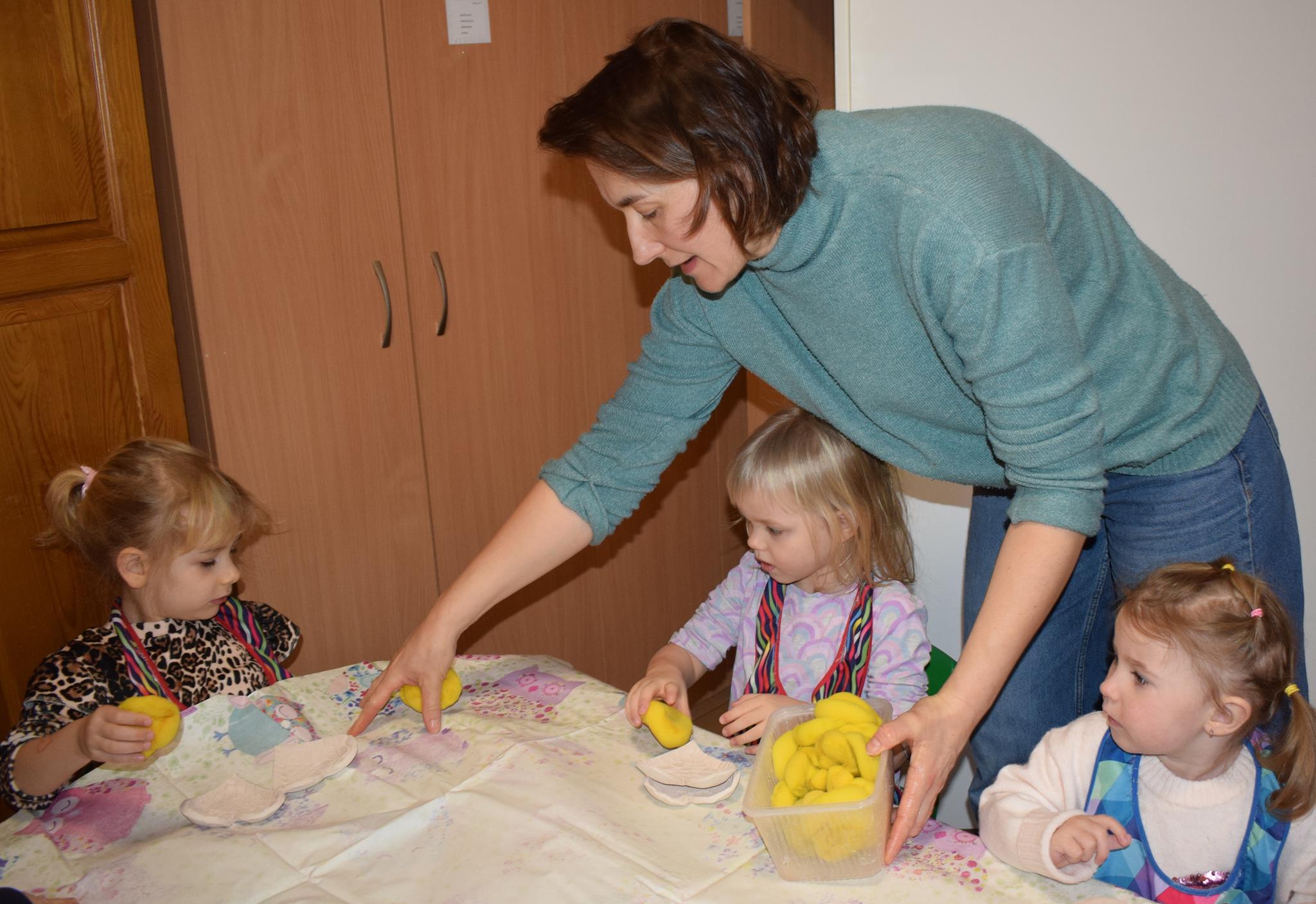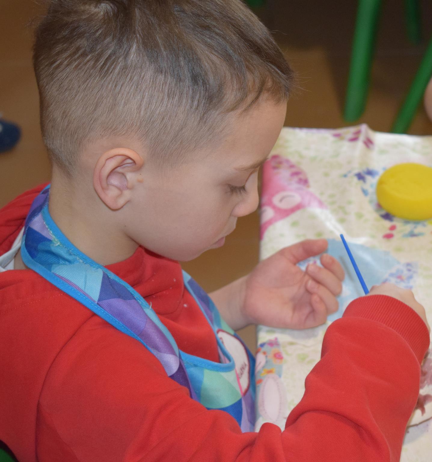 Dzieci delikatnie przecierały gąbką swoje prace, a następnie nakładały szkliwo. Po skończonych zajęciach Pani Julia zabierze serduszka do swojej pracowni i ponownie wypali je w piecu. Gotowe serduszka dzieci pięknie zapakują i podarują swoim kochanym Babciom i kochanym Dziadziusiom podczas przedszkolnych uroczystości, na które serdecznie zapraszamy Miłych Gości: