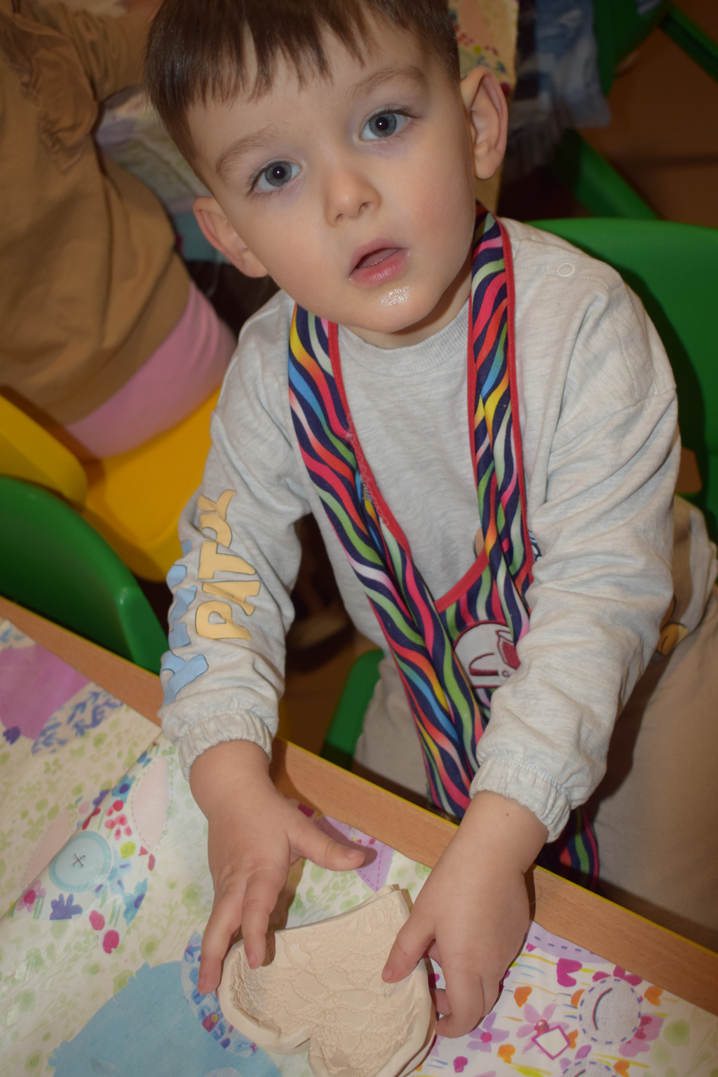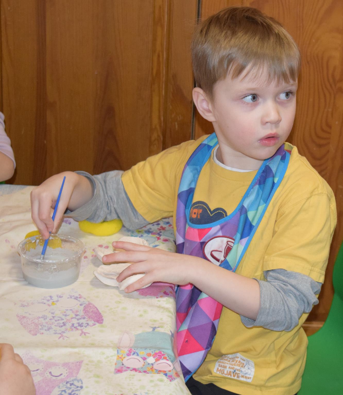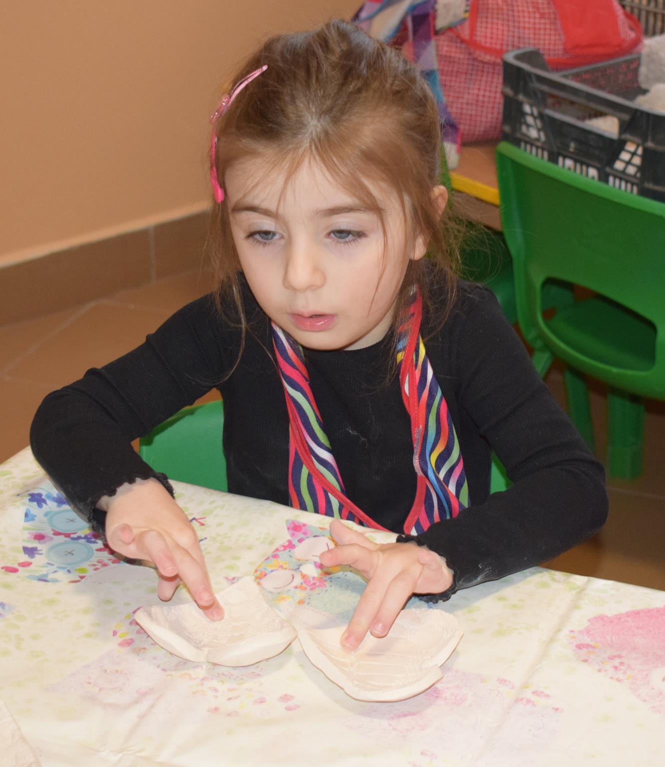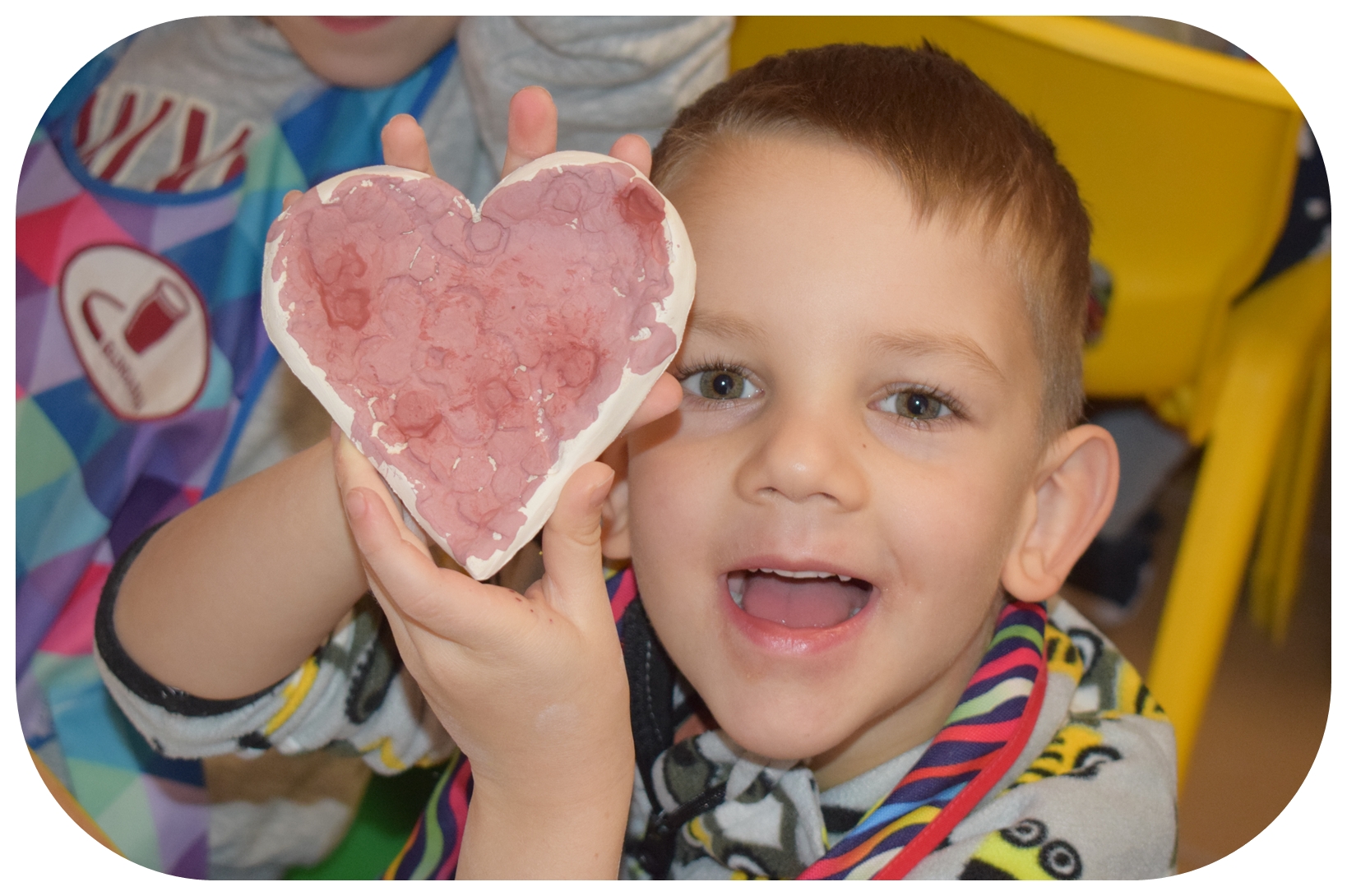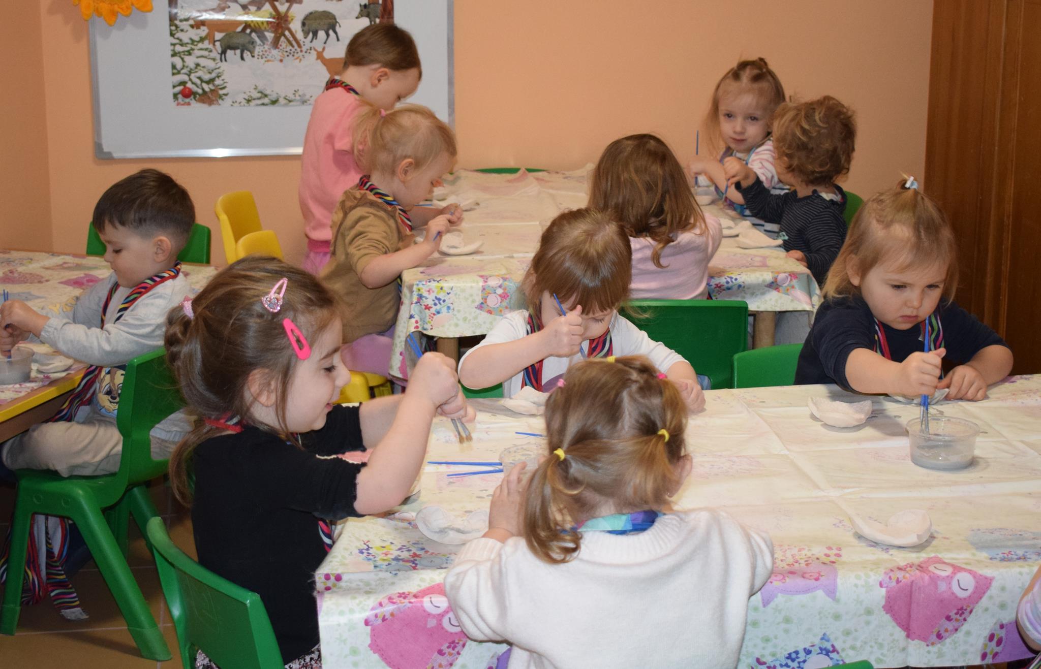 Dzieci delikatnie przecierały gąbką swoje prace, a następnie nakładały szkliwo. Po skończonych zajęciach Pani Julia zabierze serduszka do swojej pracowni i ponownie wypali je w piecu. Gotowe serduszka dzieci pięknie zapakują i podarują swoim kochanym Babciom i kochanym Dziadziusiom podczas przedszkolnych uroczystości, na które serdecznie zapraszamy Miłych Gości: