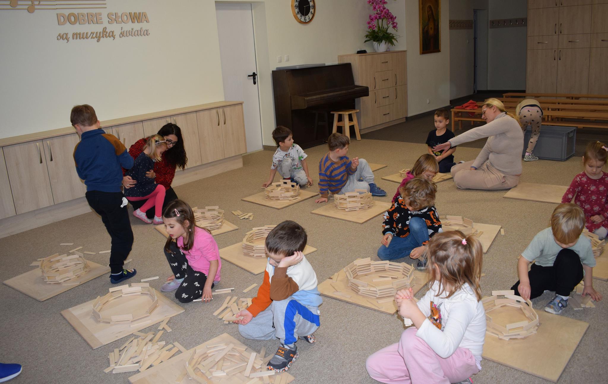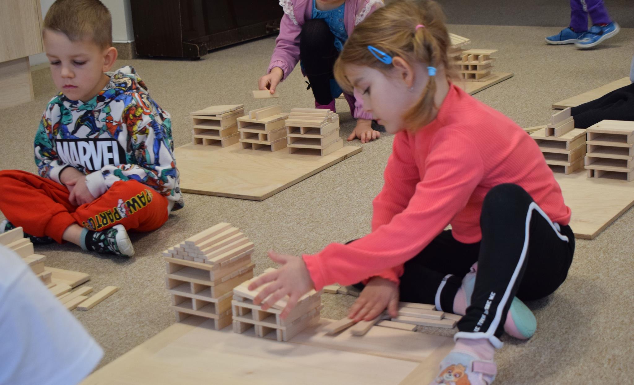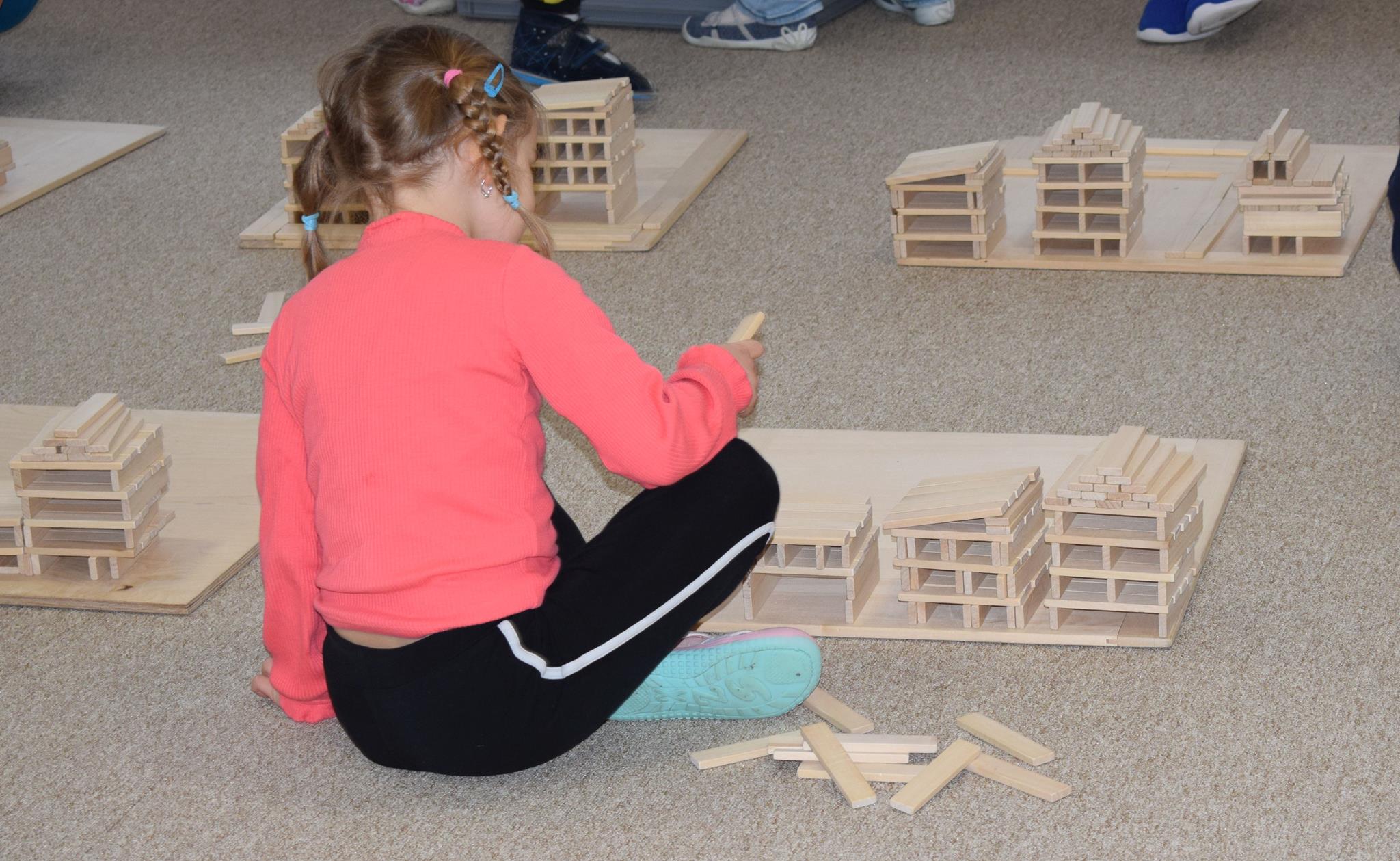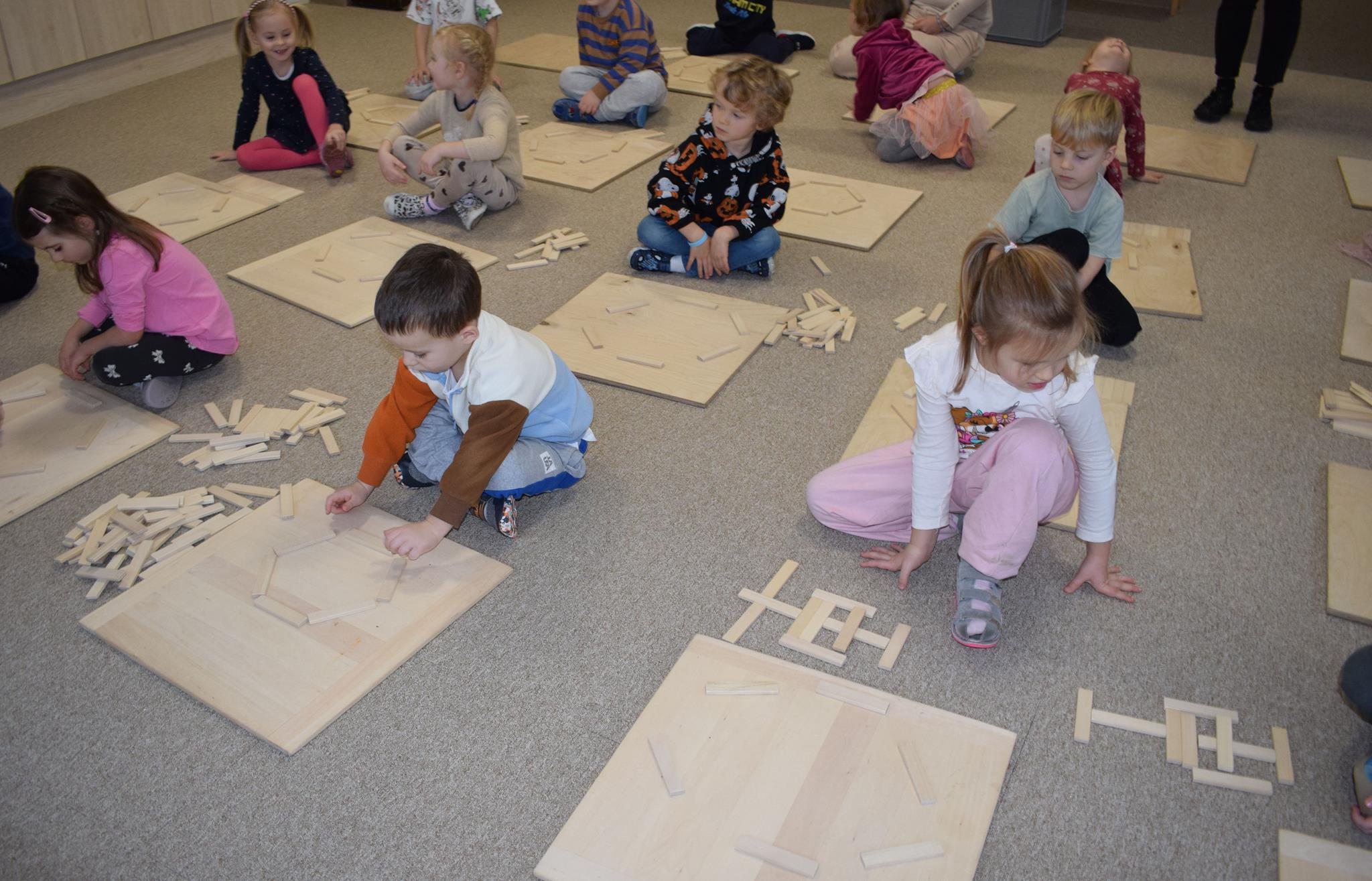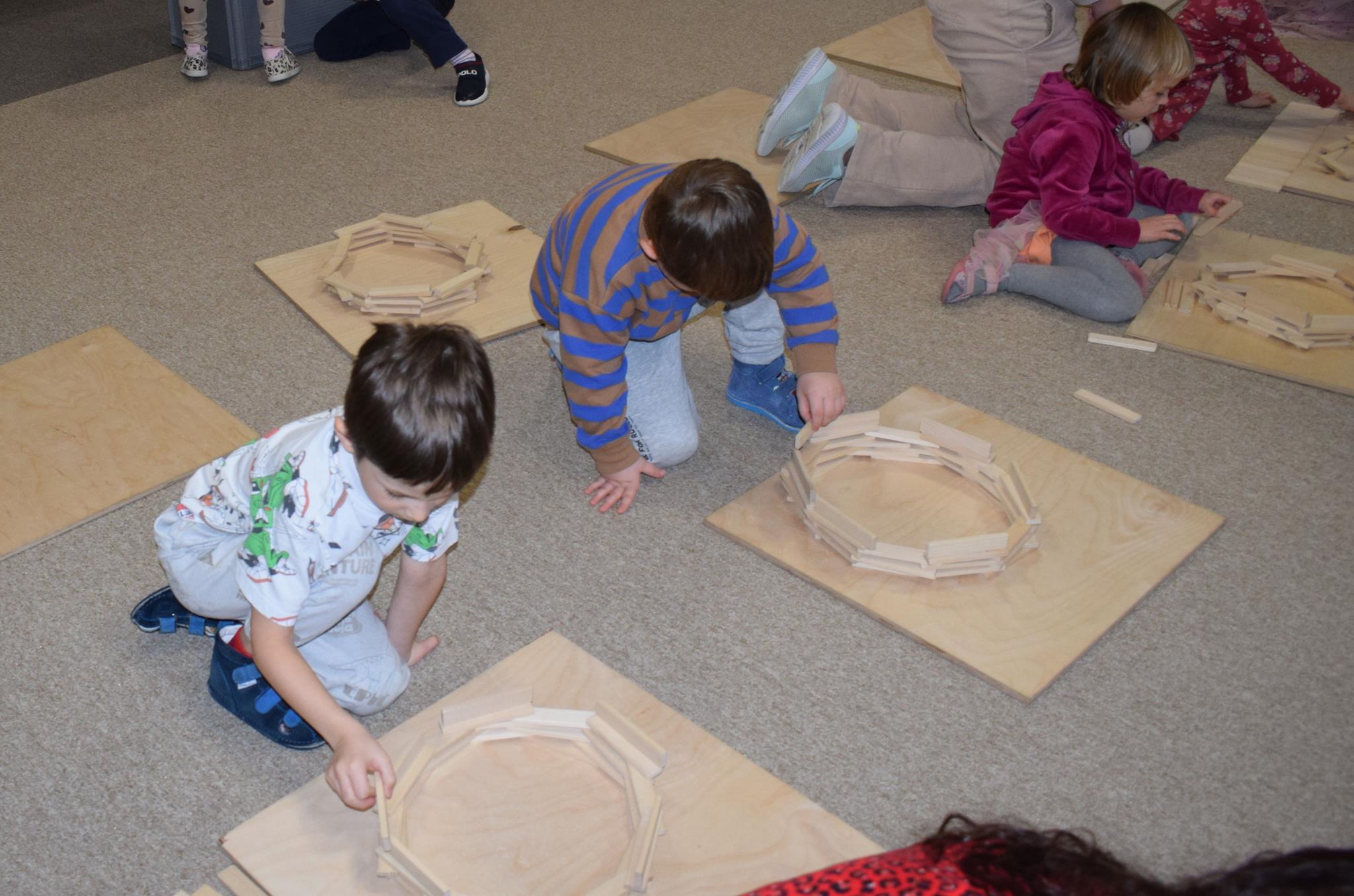 Po raz kolejny w tym roku dzieci uczestniczyły w warsztatach Małego Architekta. Wznosiły budowle pod czujnym okiem Pana Kreatka, musiały się wykazać umiejętnością uważnego słuchania, znajomością podstaw matematyki, a także zmysłem estetycznym, inicjatywą i umiejętnościami organizacyjnymi. Na pierwszy ogień poszły podstawowe konstrukcje geometryczne, takie jak trójkąty, kwadraty i koła. Motylki próbowały swoich sił we wznoszeniu budowli przypominającej rzymskie koloseum. Starszaki reprezentując wyższy poziom umiejętności, bo przecież to już trzeci rok, jak szlifują wymienione umiejętności, wznosiły budowle przypominające te z Rynku Starego Miasta w stolicy.