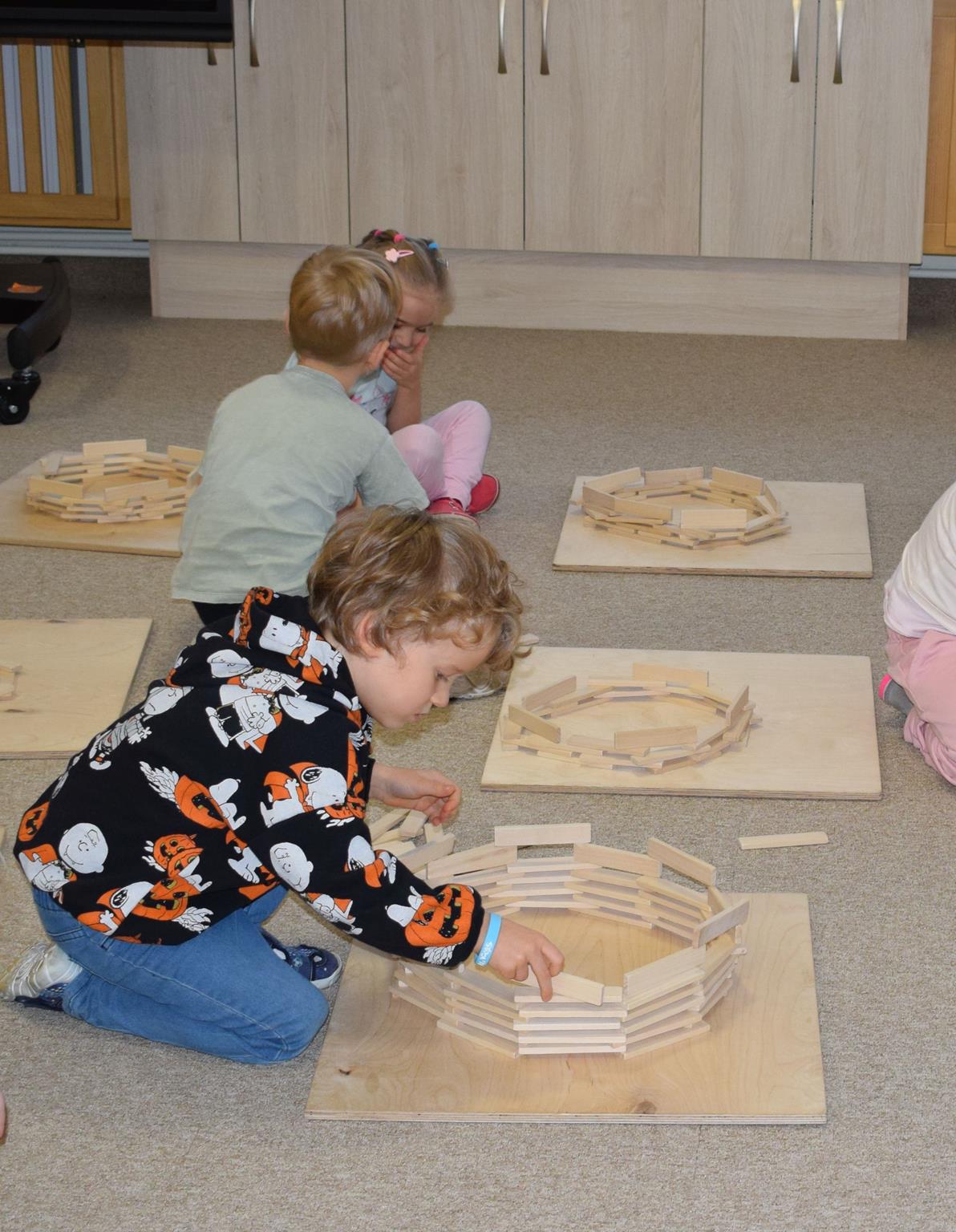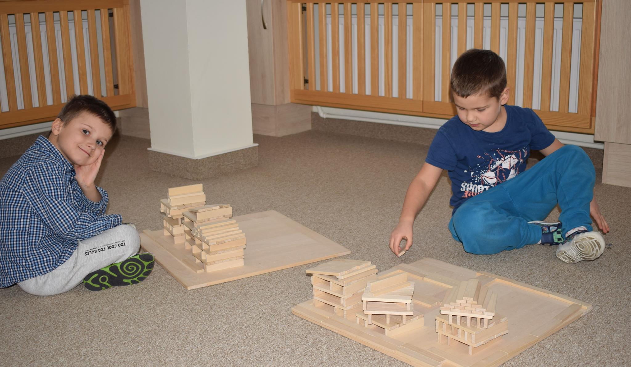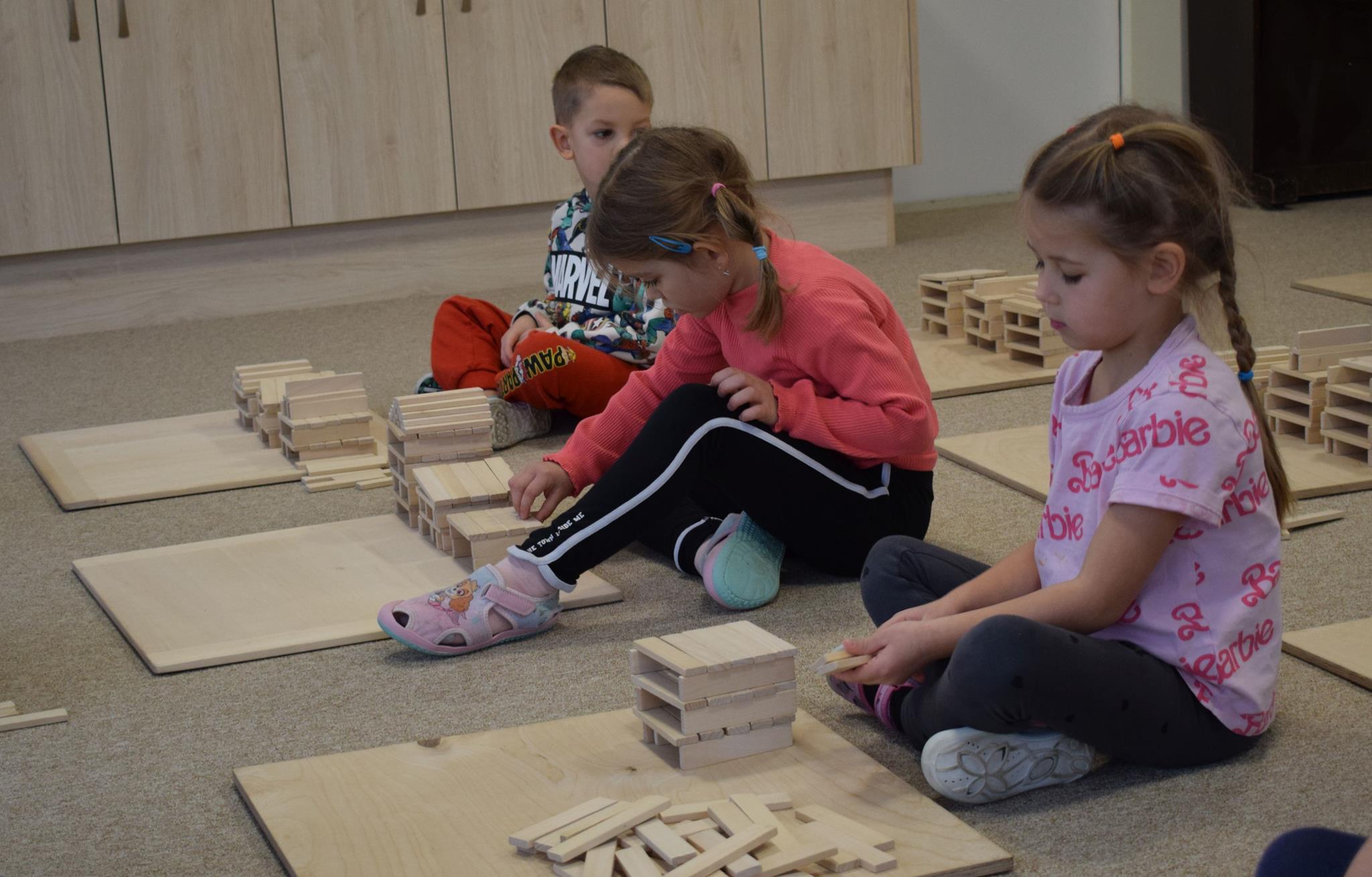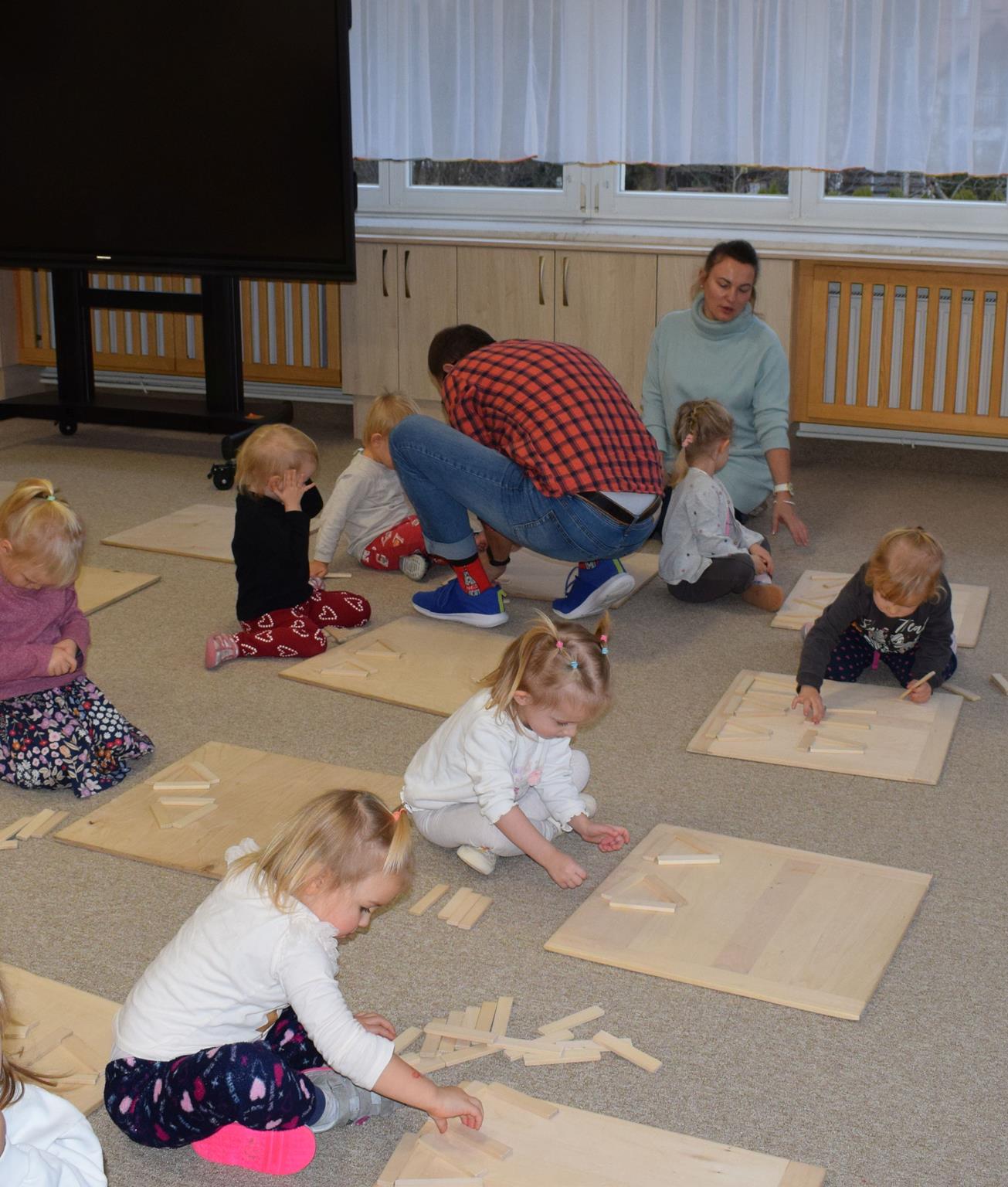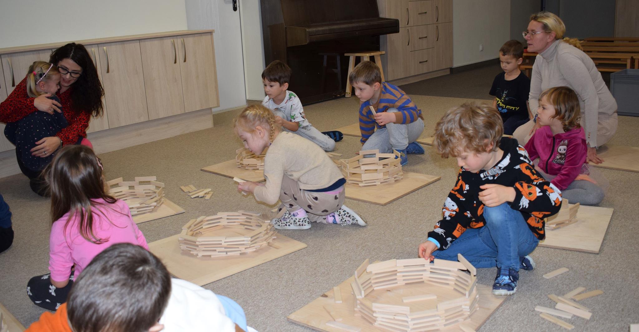 Po raz kolejny w tym roku dzieci uczestniczyły w warsztatach Małego Architekta. Wznosiły budowle pod czujnym okiem Pana Kreatka, musiały się wykazać umiejętnością uważnego słuchania, znajomością podstaw matematyki, a także zmysłem estetycznym, inicjatywą i umiejętnościami organizacyjnymi. Na pierwszy ogień poszły podstawowe konstrukcje geometryczne, takie jak trójkąty, kwadraty i koła. Motylki próbowały swoich sił we wznoszeniu budowli przypominającej rzymskie koloseum. Starszaki reprezentując wyższy poziom umiejętności, bo przecież to już trzeci rok, jak szlifują wymienione umiejętności, wznosiły budowle przypominające te z Rynku Starego Miasta w stolicy.
