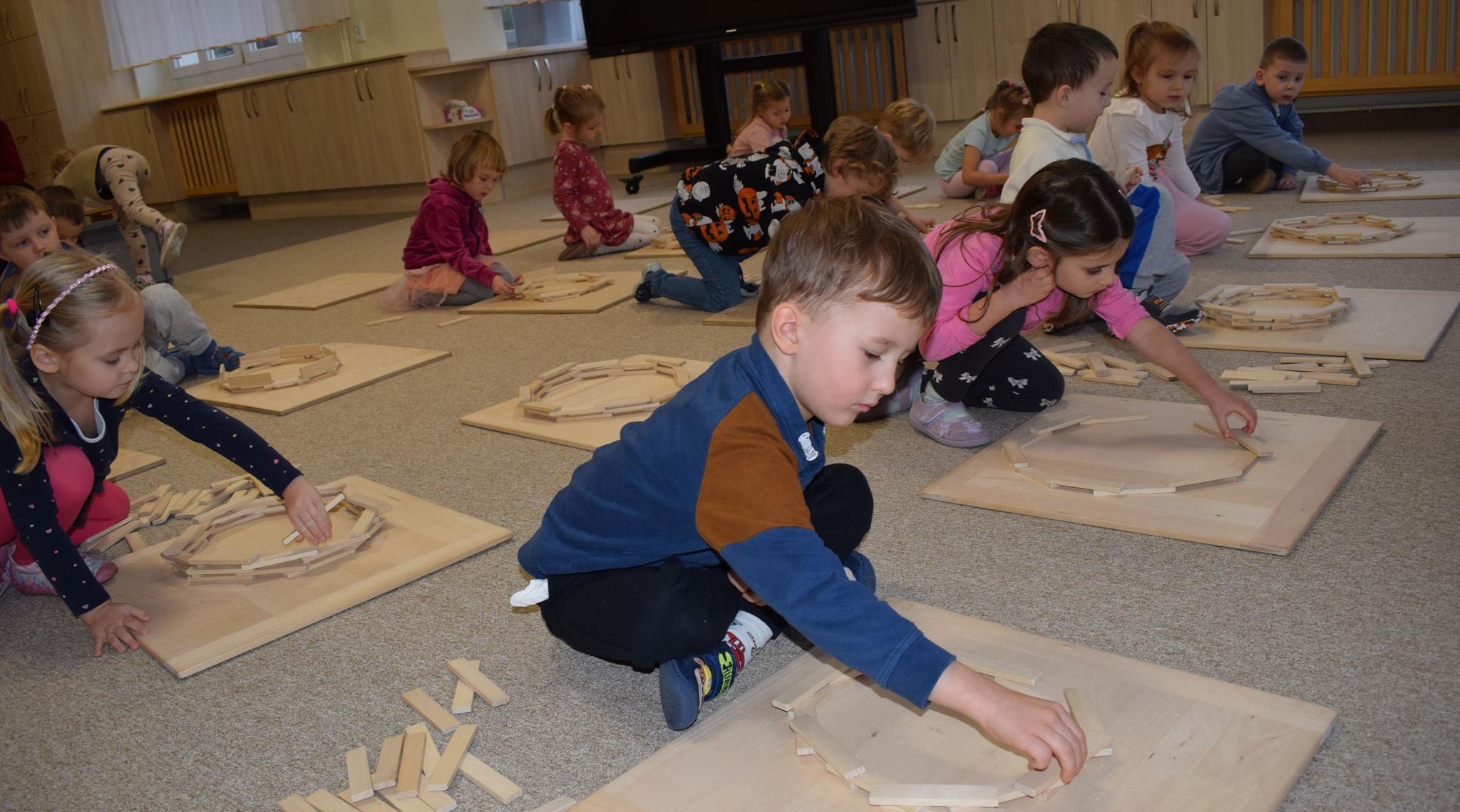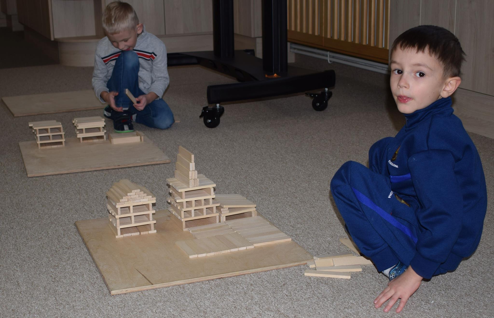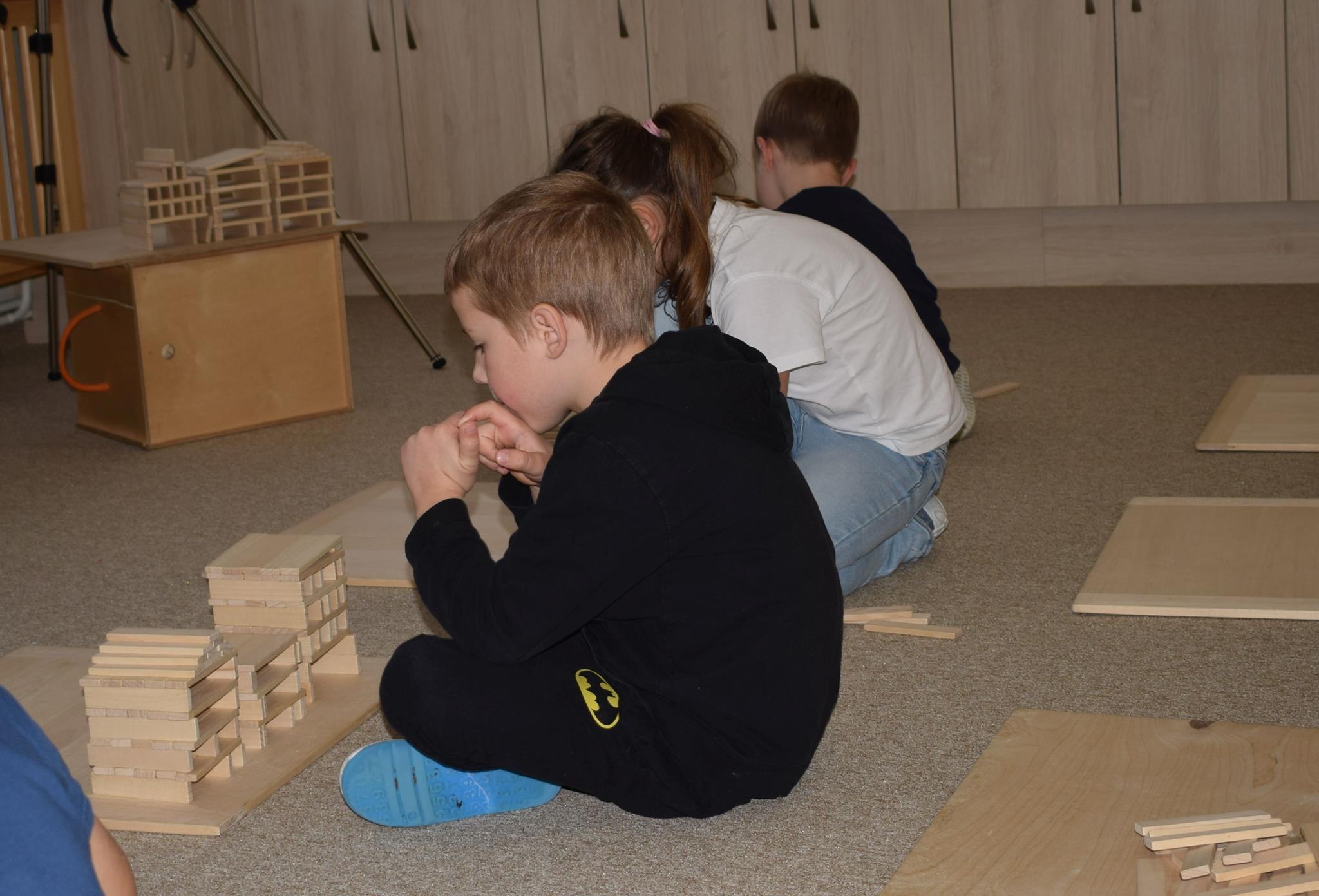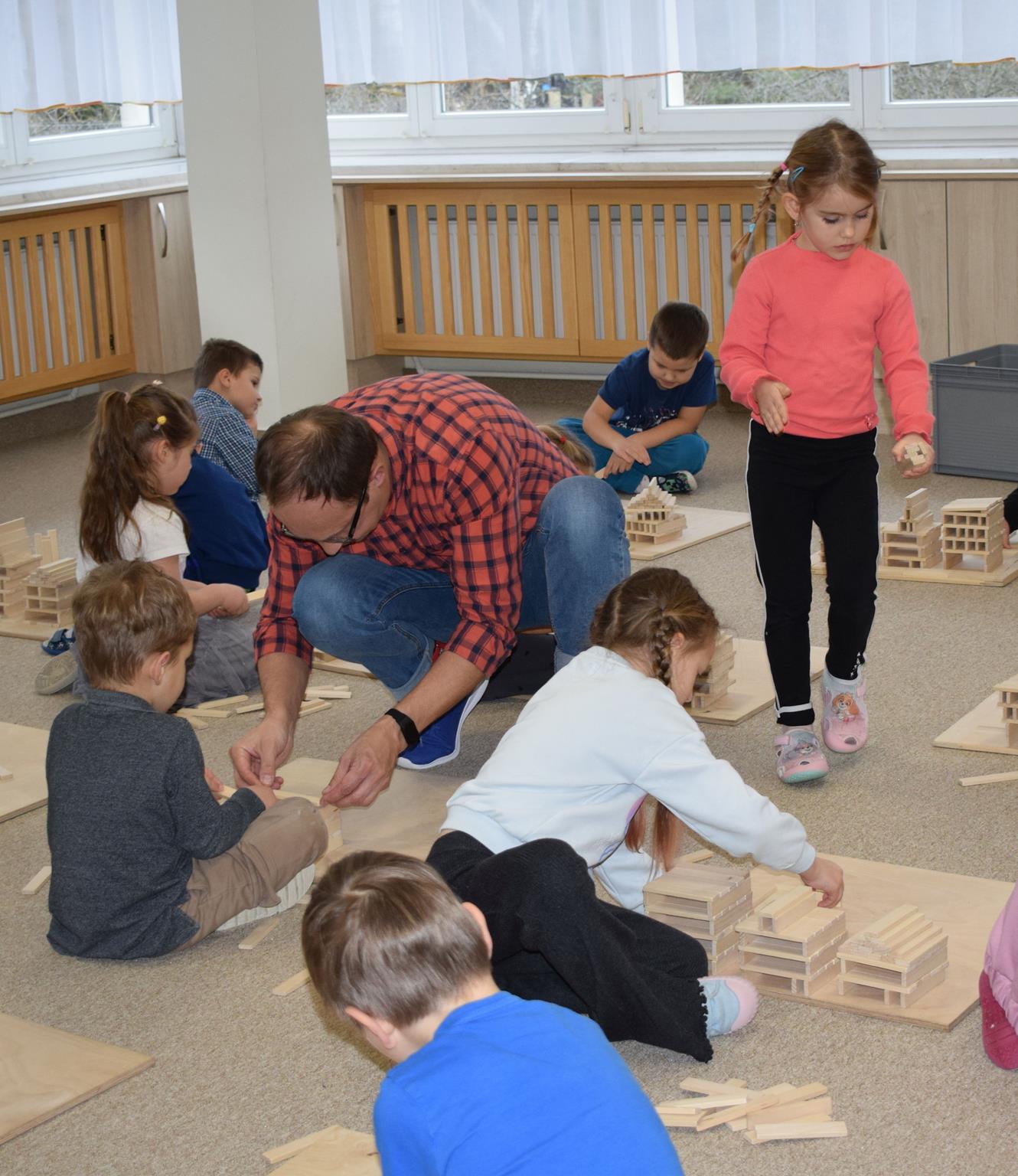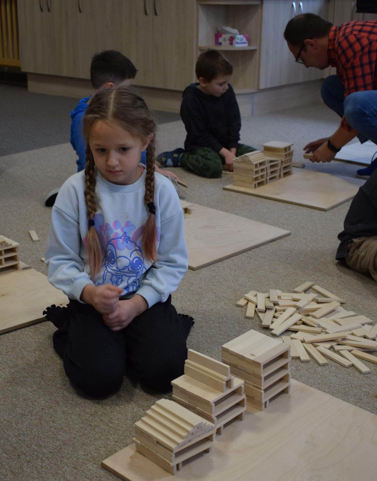 Po raz kolejny w tym roku dzieci uczestniczyły w warsztatach Małego Architekta. Wznosiły budowle pod czujnym okiem Pana Kreatka, musiały się wykazać umiejętnością uważnego słuchania, znajomością podstaw matematyki, a także zmysłem estetycznym, inicjatywą i umiejętnościami organizacyjnymi. Na pierwszy ogień poszły podstawowe konstrukcje geometryczne, takie jak trójkąty, kwadraty i koła. Motylki próbowały swoich sił we wznoszeniu budowli przypominającej rzymskie koloseum. Starszaki reprezentując wyższy poziom umiejętności, bo przecież to już trzeci rok, jak szlifują wymienione umiejętności, wznosiły budowle przypominające te z Rynku Starego Miasta w stolicy.