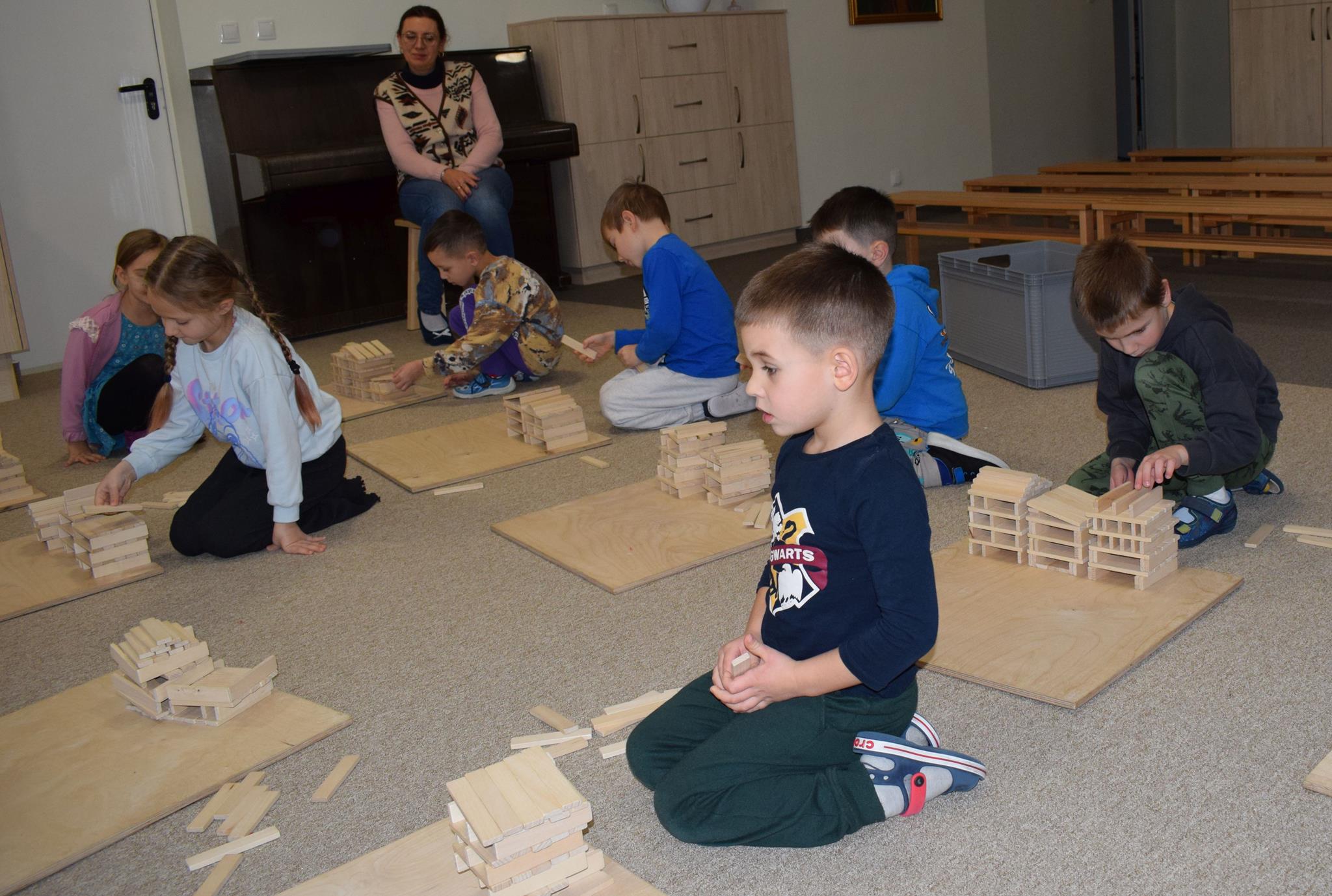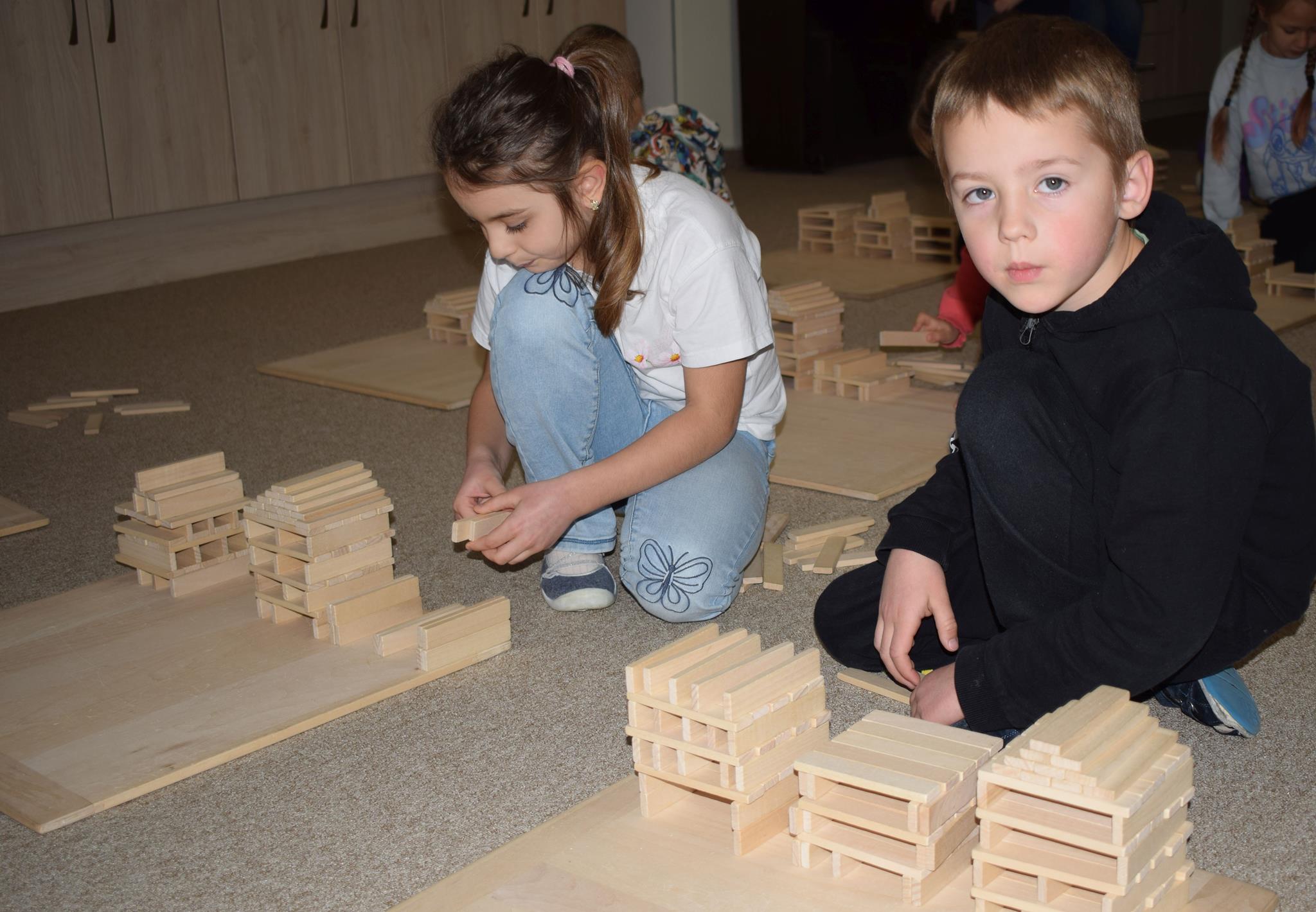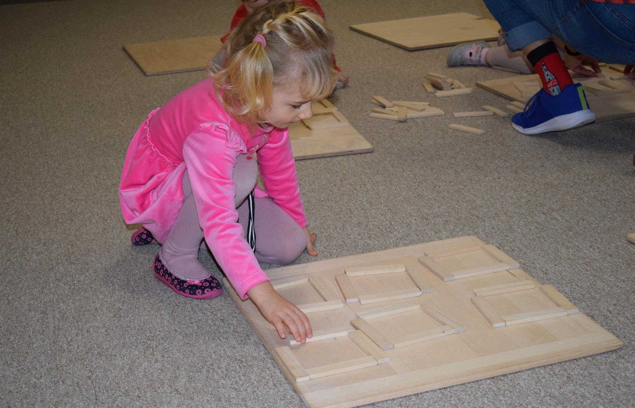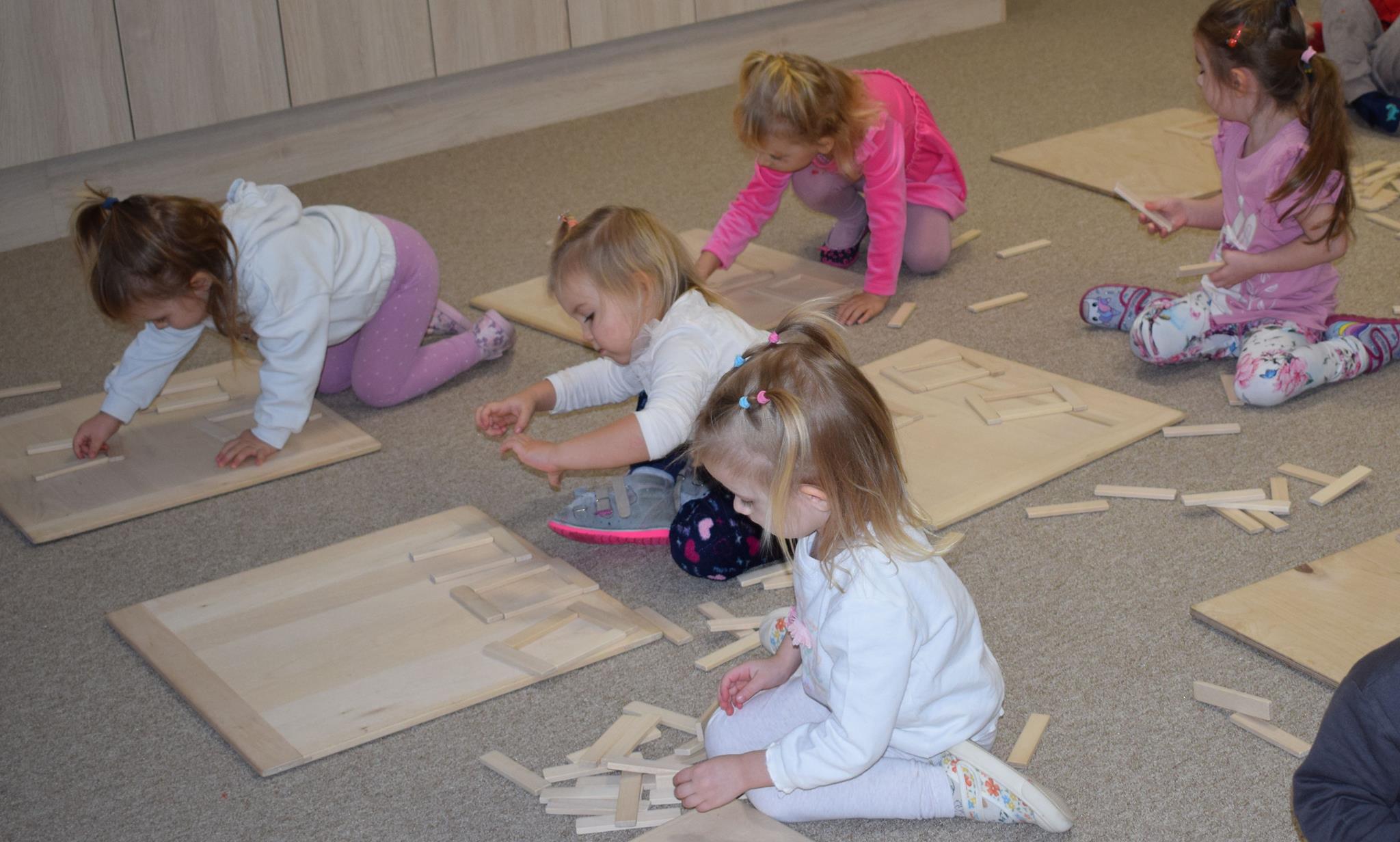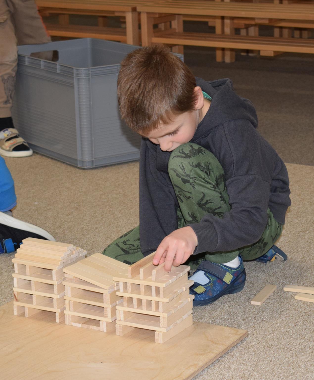 Po raz kolejny w tym roku dzieci uczestniczyły w warsztatach Małego Architekta. Wznosiły budowle pod czujnym okiem Pana Kreatka, musiały się wykazać umiejętnością uważnego słuchania, znajomością podstaw matematyki, a także zmysłem estetycznym, inicjatywą i umiejętnościami organizacyjnymi. Na pierwszy ogień poszły podstawowe konstrukcje geometryczne, takie jak trójkąty, kwadraty i koła. Motylki próbowały swoich sił we wznoszeniu budowli przypominającej rzymskie koloseum. Starszaki reprezentując wyższy poziom umiejętności, bo przecież to już trzeci rok, jak szlifują wymienione umiejętności, wznosiły budowle przypominające te z Rynku Starego Miasta w stolicy.