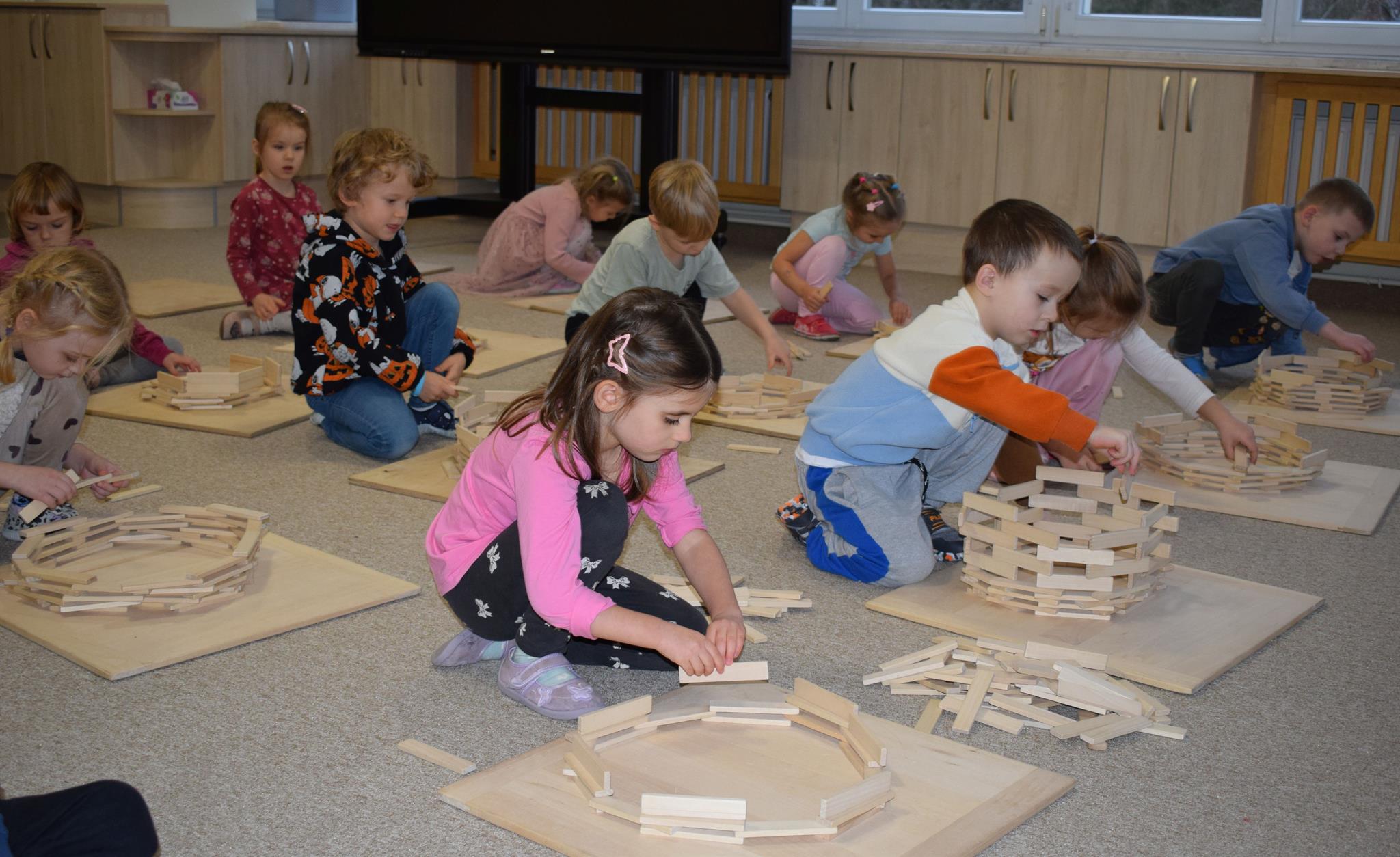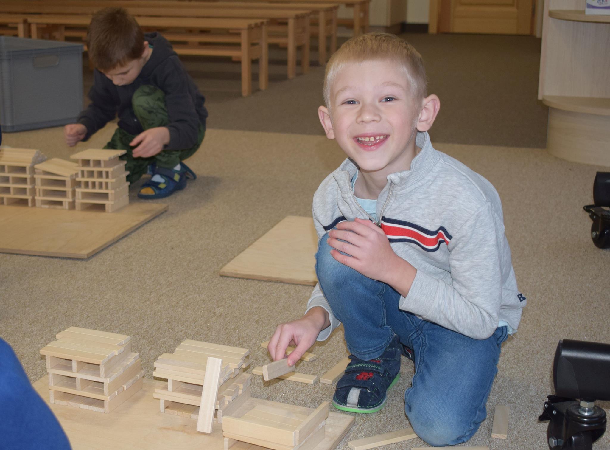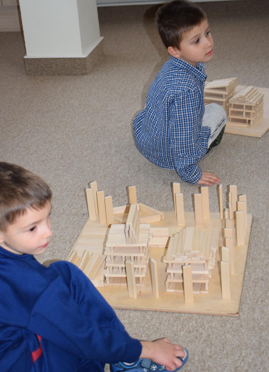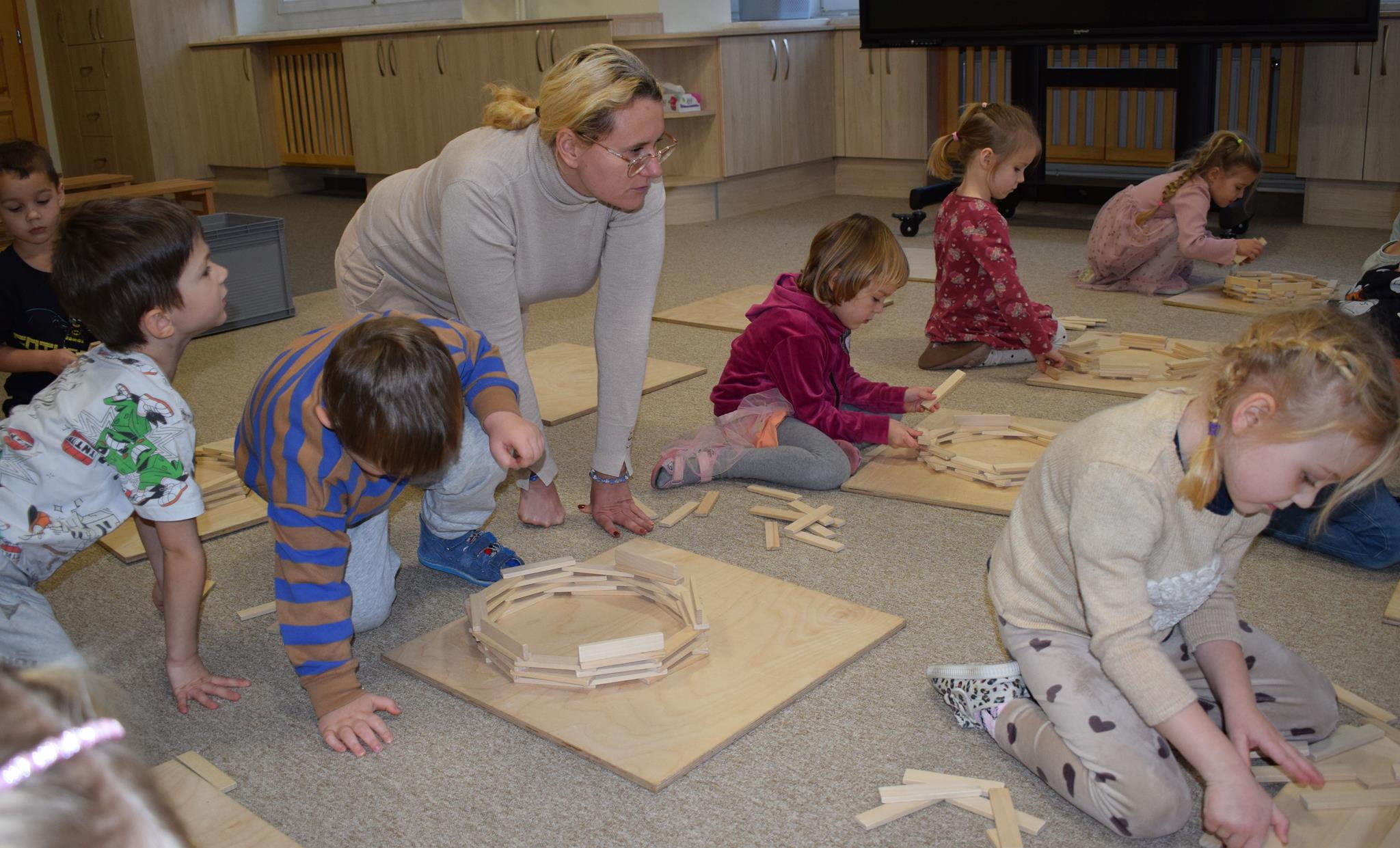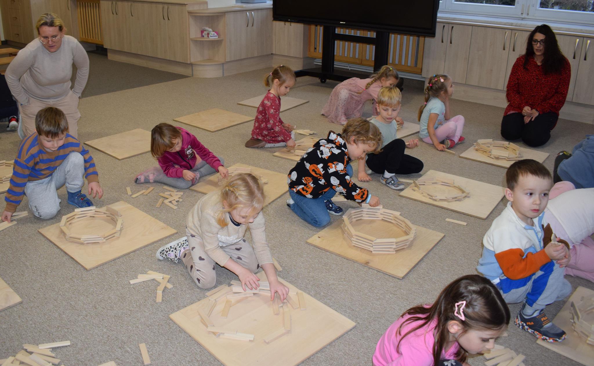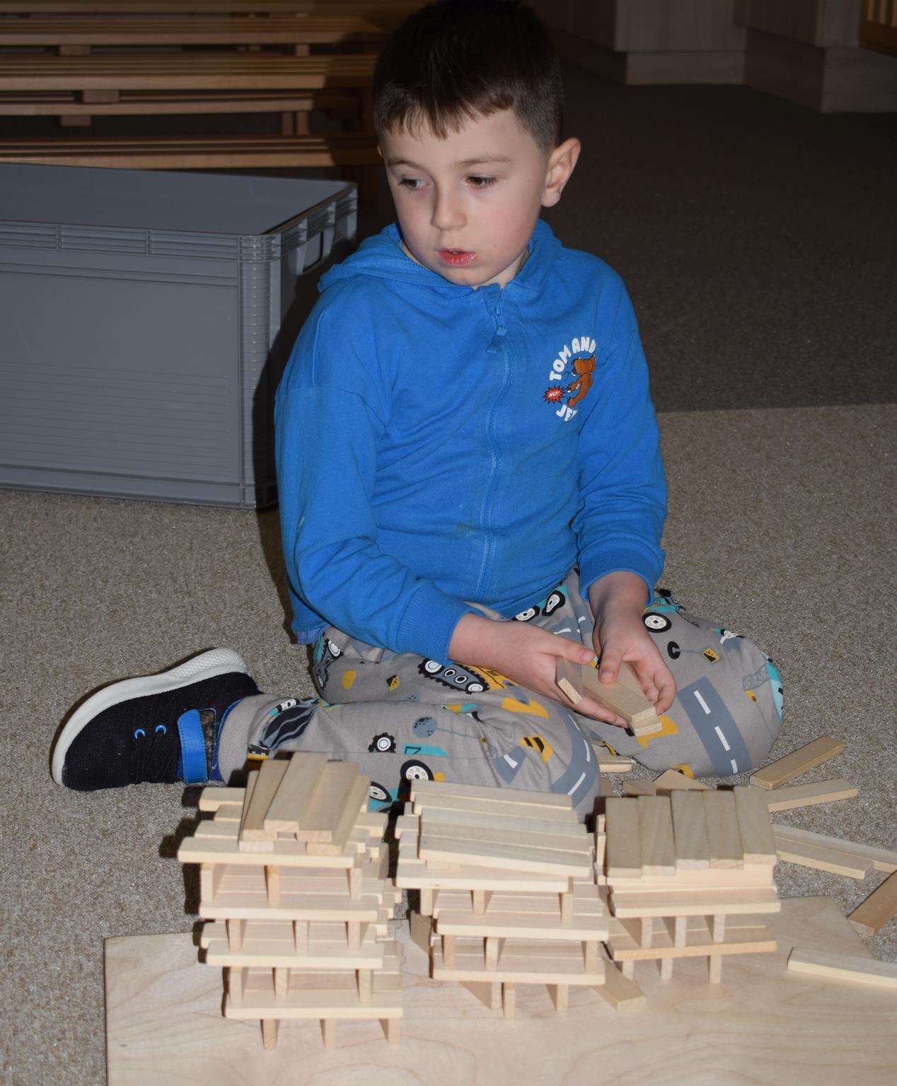 Po raz kolejny w tym roku dzieci uczestniczyły w warsztatach Małego Architekta. Wznosiły budowle pod czujnym okiem Pana Kreatka, musiały się wykazać umiejętnością uważnego słuchania, znajomością podstaw matematyki, a także zmysłem estetycznym, inicjatywą i umiejętnościami organizacyjnymi. Na pierwszy ogień poszły podstawowe konstrukcje geometryczne, takie jak trójkąty, kwadraty i koła. Motylki próbowały swoich sił we wznoszeniu budowli przypominającej rzymskie koloseum. Starszaki reprezentując wyższy poziom umiejętności, bo przecież to już trzeci rok, jak szlifują wymienione umiejętności, wznosiły budowle przypominające te z Rynku Starego Miasta w stolicy.