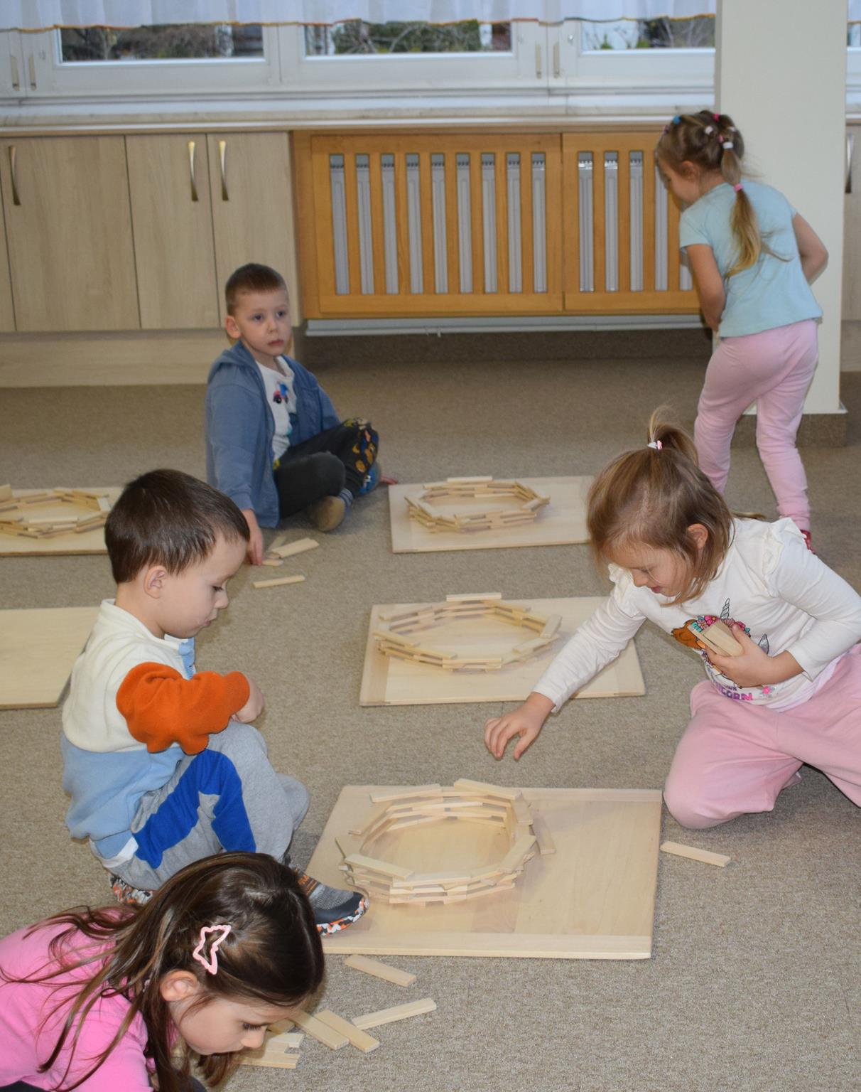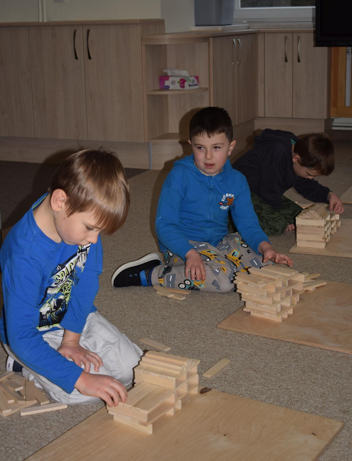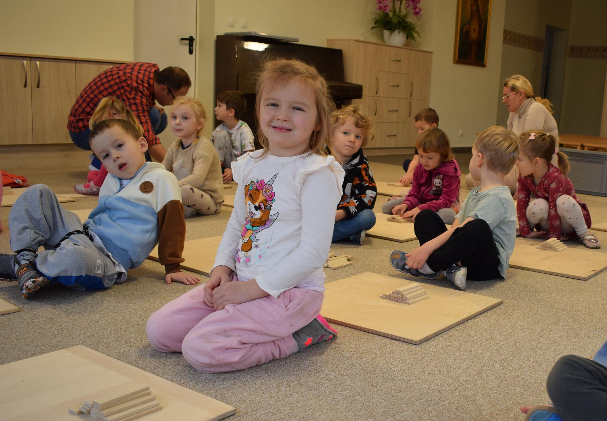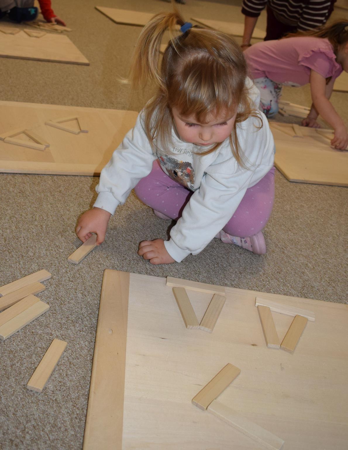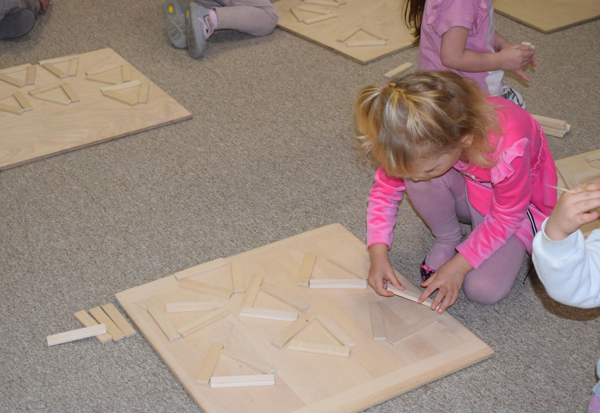 Po raz kolejny w tym roku dzieci uczestniczyły w warsztatach Małego Architekta. Wznosiły budowle pod czujnym okiem Pana Kreatka, musiały się wykazać umiejętnością uważnego słuchania, znajomością podstaw matematyki, a także zmysłem estetycznym, inicjatywą i umiejętnościami organizacyjnymi. Na pierwszy ogień poszły podstawowe konstrukcje geometryczne, takie jak trójkąty, kwadraty i koła. Motylki próbowały swoich sił we wznoszeniu budowli przypominającej rzymskie koloseum. Starszaki reprezentując wyższy poziom umiejętności, bo przecież to już trzeci rok, jak szlifują wymienione umiejętności, wznosiły budowle przypominające te z Rynku Starego Miasta w stolicy.