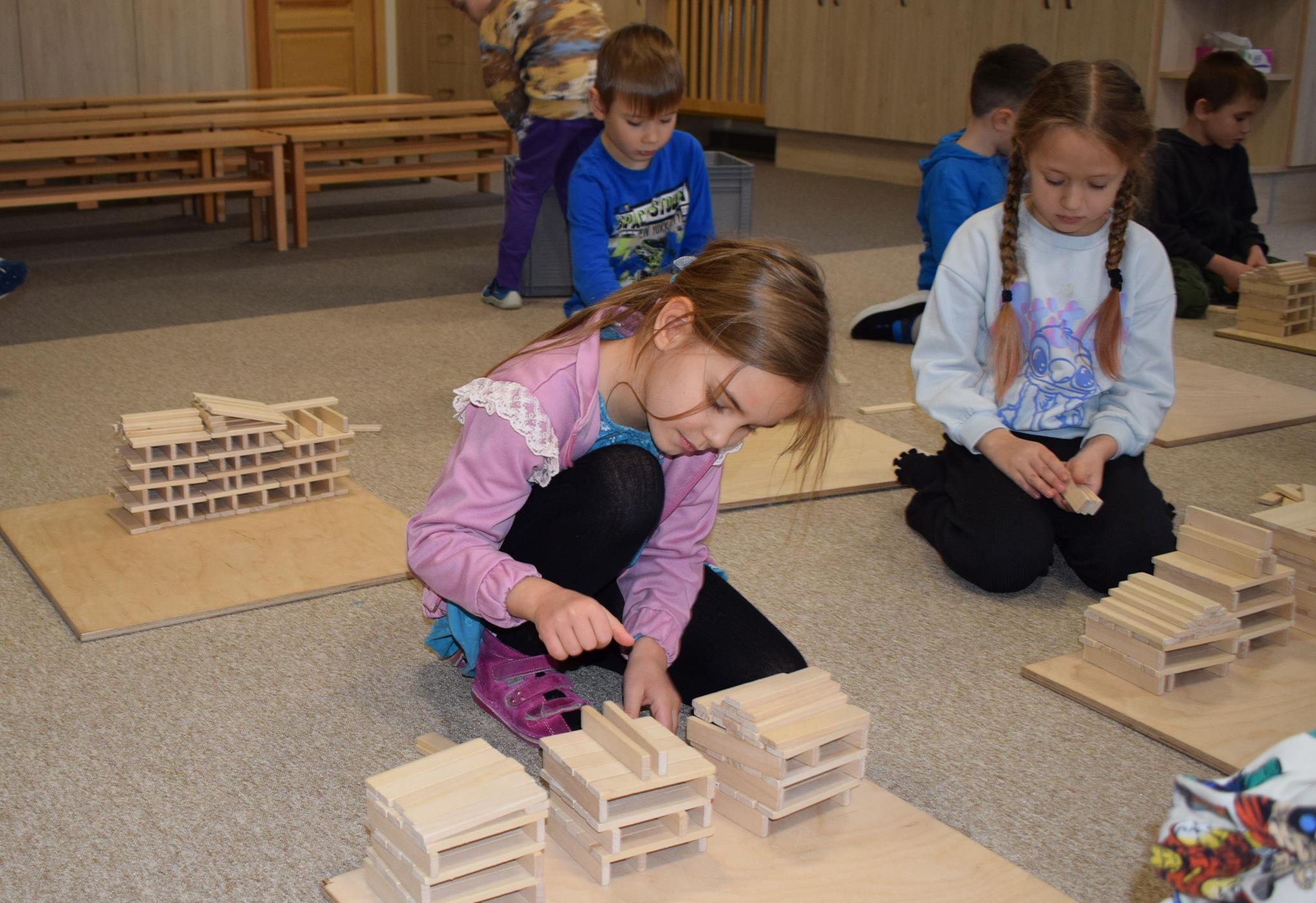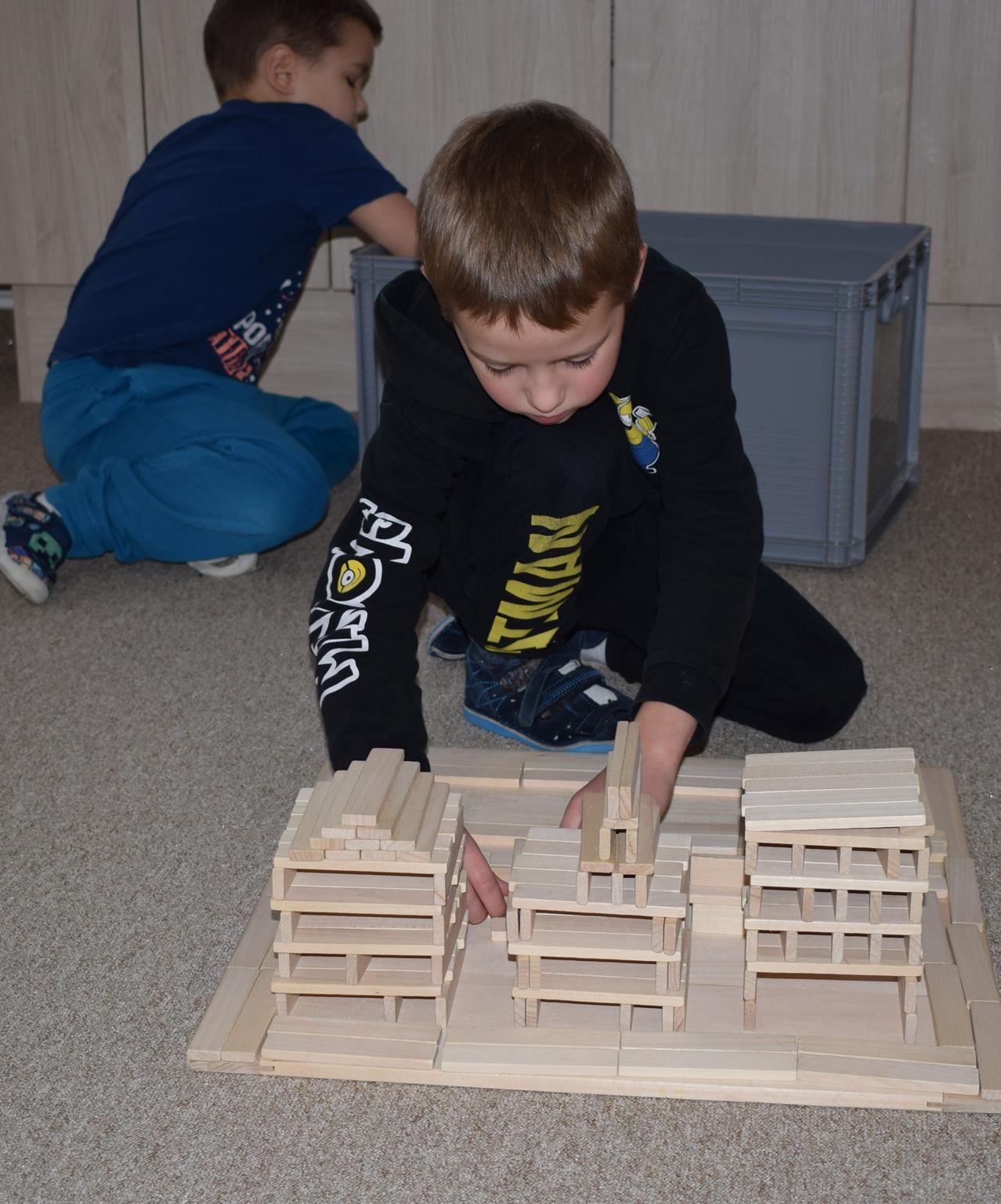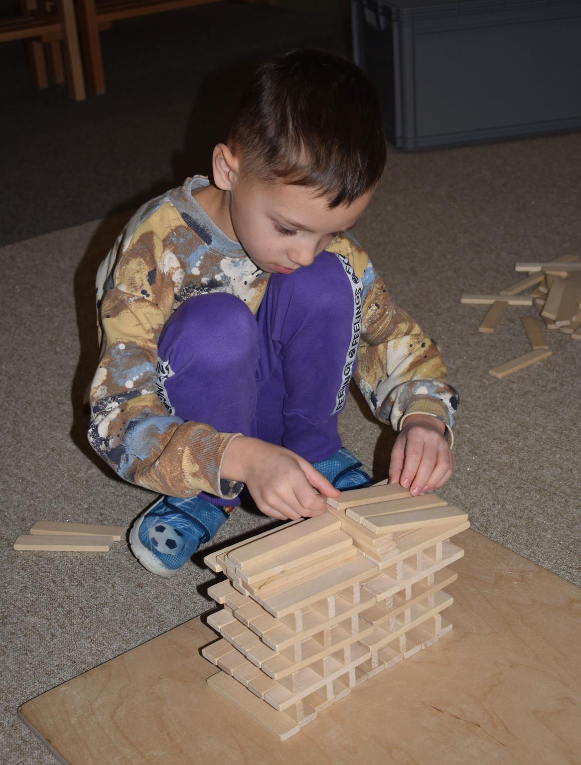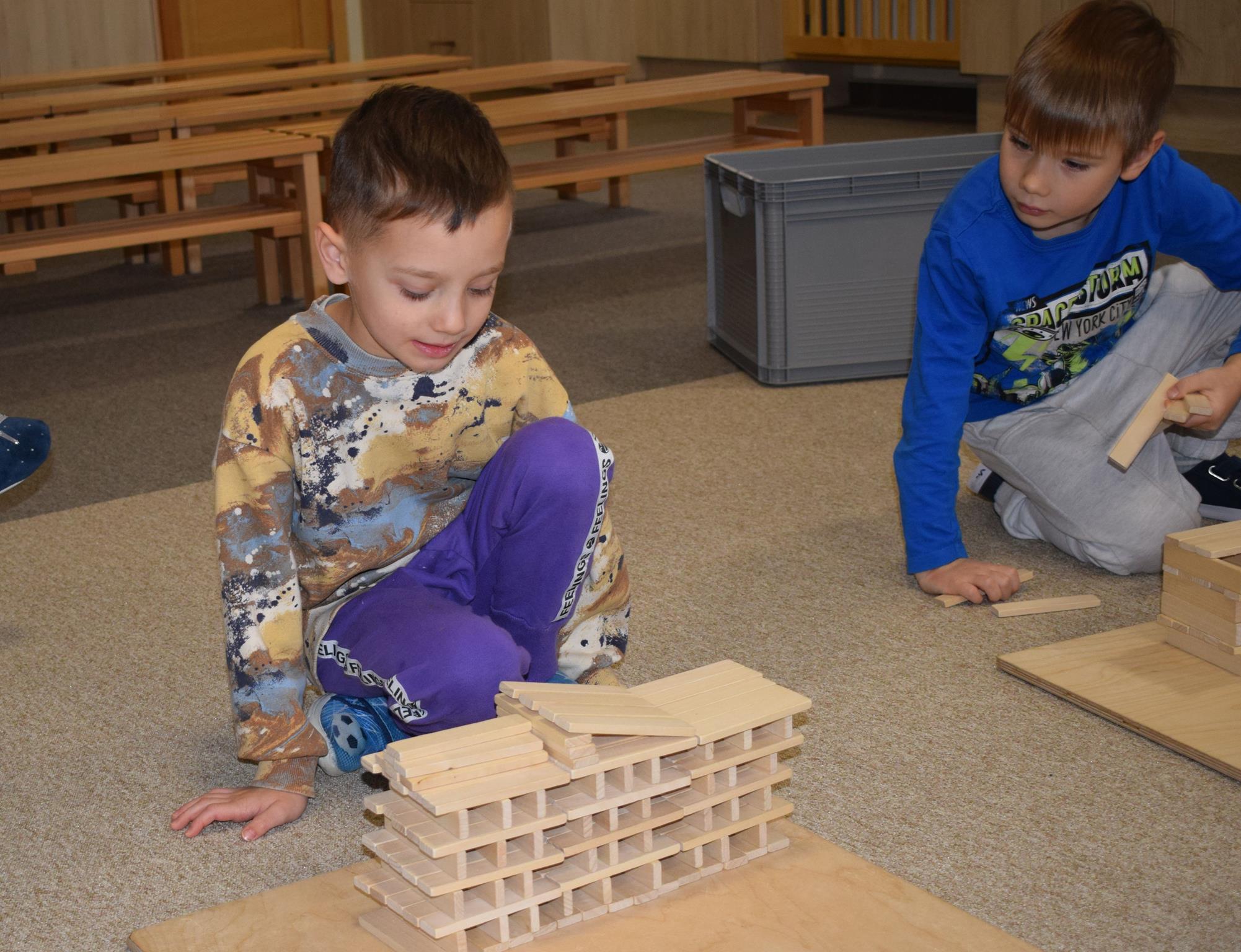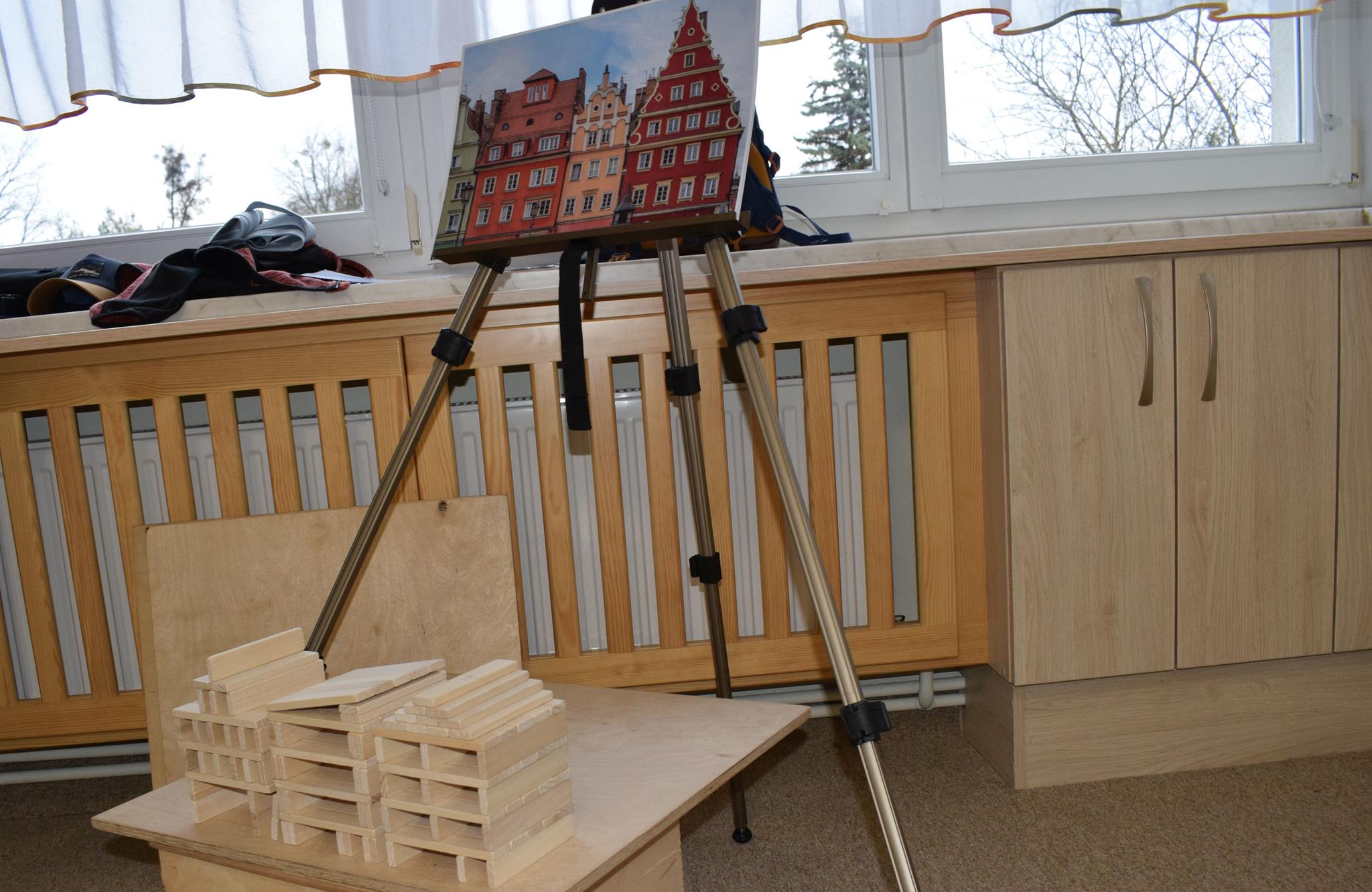 Po raz kolejny w tym roku dzieci uczestniczyły w warsztatach Małego Architekta. Wznosiły budowle pod czujnym okiem Pana Kreatka, musiały się wykazać umiejętnością uważnego słuchania, znajomością podstaw matematyki, a także zmysłem estetycznym, inicjatywą i umiejętnościami organizacyjnymi. Na pierwszy ogień poszły podstawowe konstrukcje geometryczne, takie jak trójkąty, kwadraty i koła. Motylki próbowały swoich sił we wznoszeniu budowli przypominającej rzymskie koloseum. Starszaki reprezentując wyższy poziom umiejętności, bo przecież to już trzeci rok, jak szlifują wymienione umiejętności, wznosiły budowle przypominające te z Rynku Starego Miasta w stolicy.