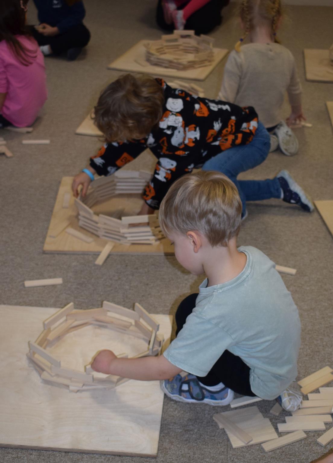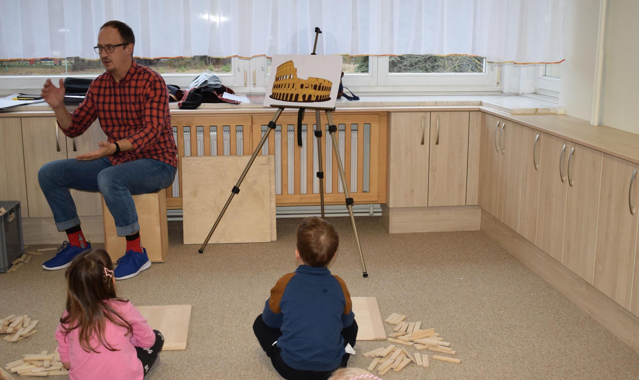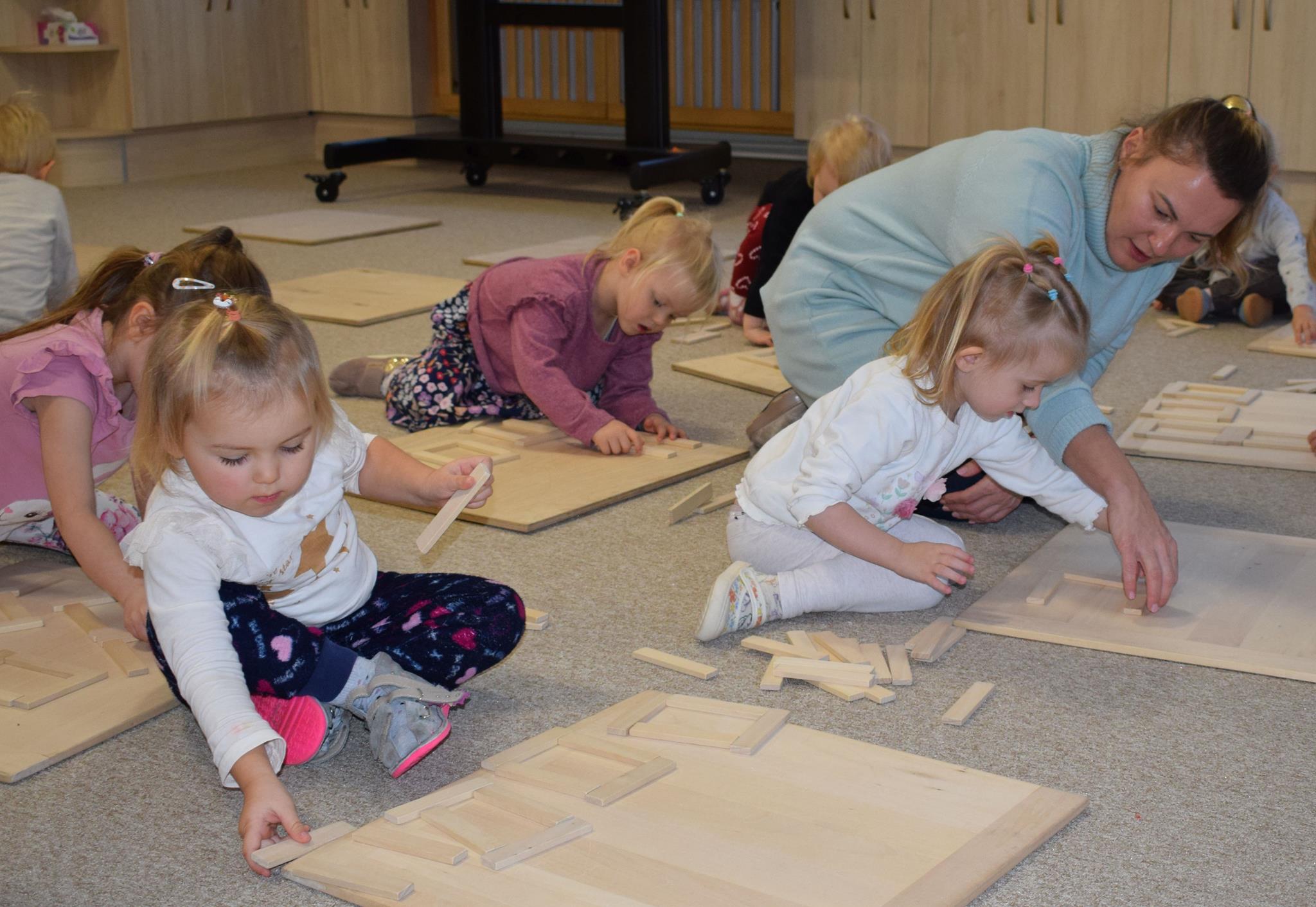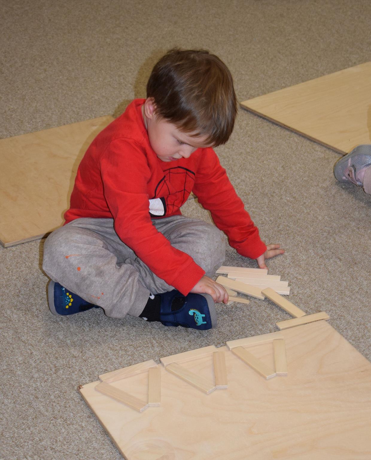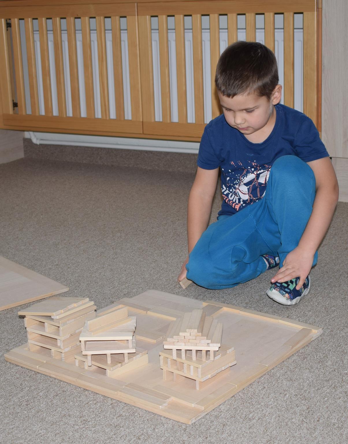 Po raz kolejny w tym roku dzieci uczestniczyły w warsztatach Małego Architekta. Wznosiły budowle pod czujnym okiem Pana Kreatka, musiały się wykazać umiejętnością uważnego słuchania, znajomością podstaw matematyki, a także zmysłem estetycznym, inicjatywą i umiejętnościami organizacyjnymi. Na pierwszy ogień poszły podstawowe konstrukcje geometryczne, takie jak trójkąty, kwadraty i koła. Motylki próbowały swoich sił we wznoszeniu budowli przypominającej rzymskie koloseum. Starszaki reprezentując wyższy poziom umiejętności, bo przecież to już trzeci rok, jak szlifują wymienione umiejętności, wznosiły budowle przypominające te z Rynku Starego Miasta w stolicy.
