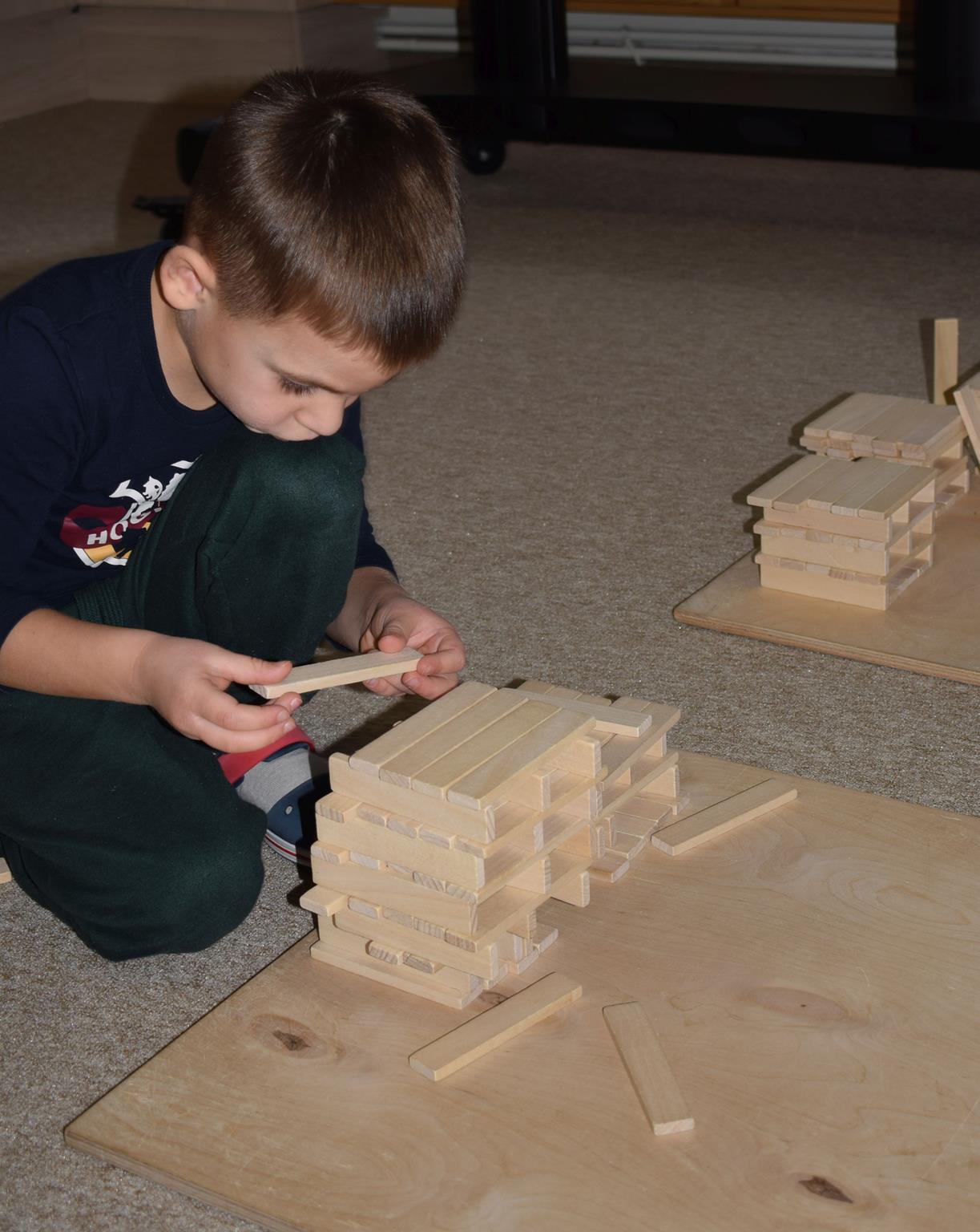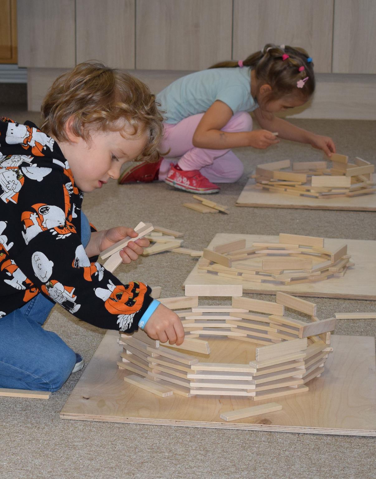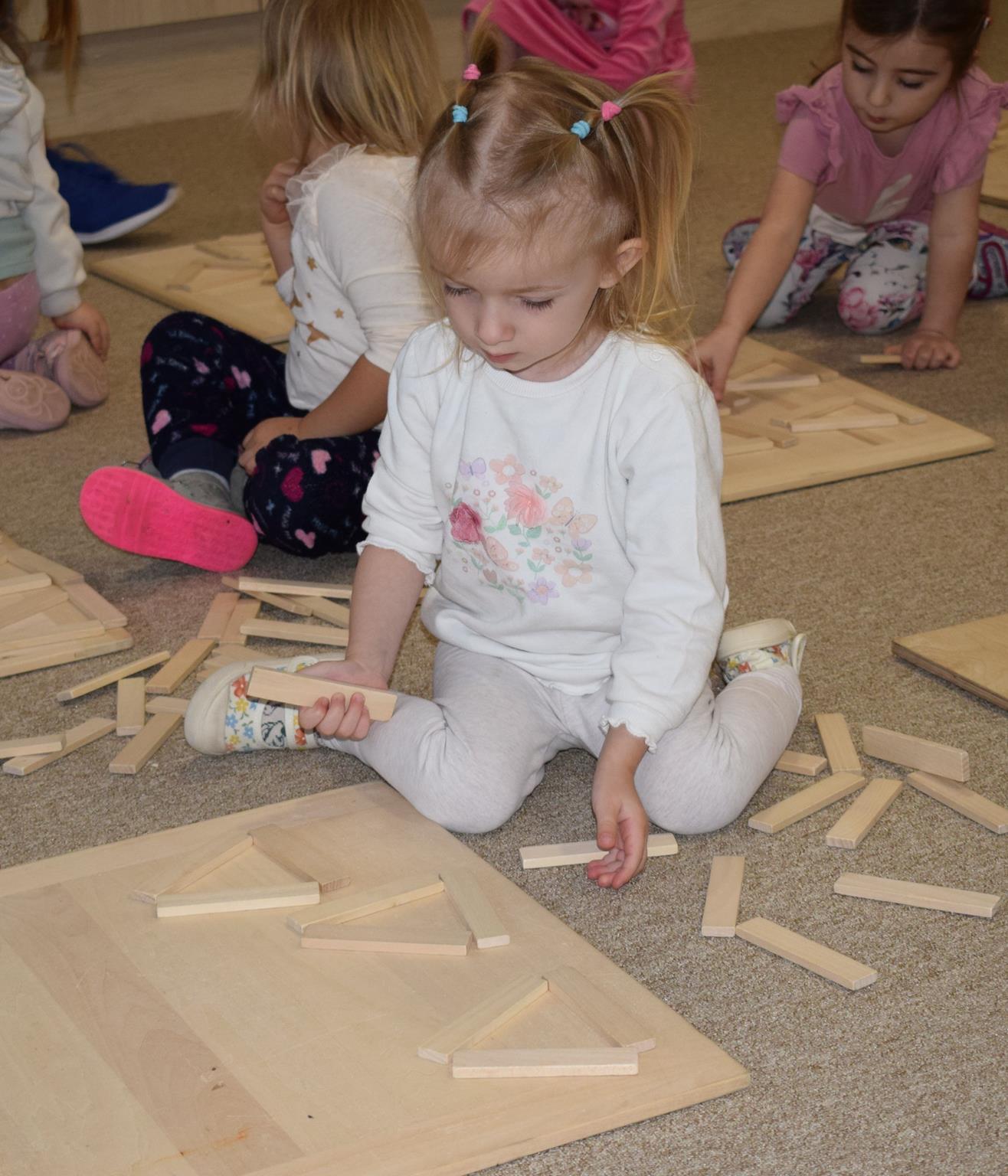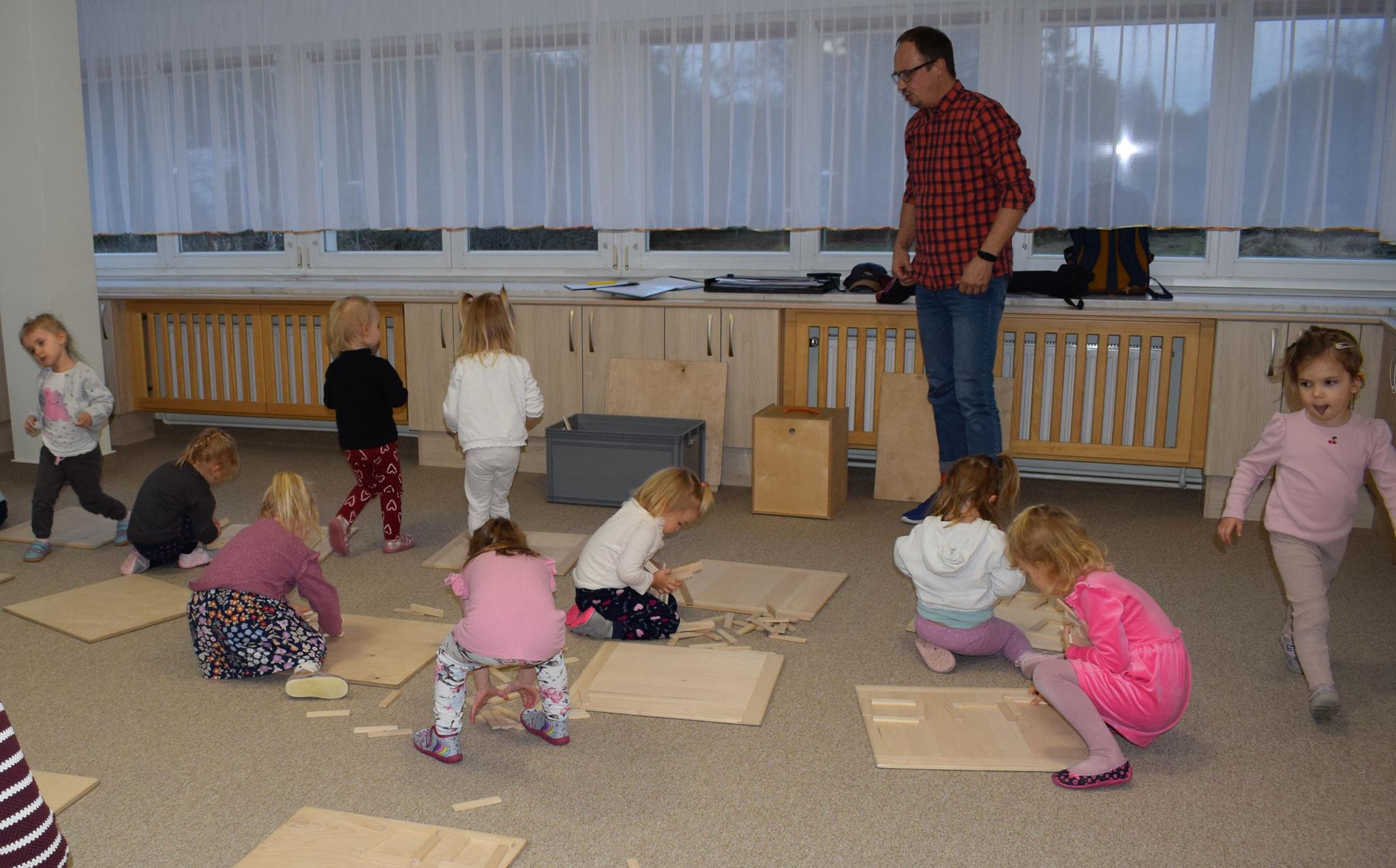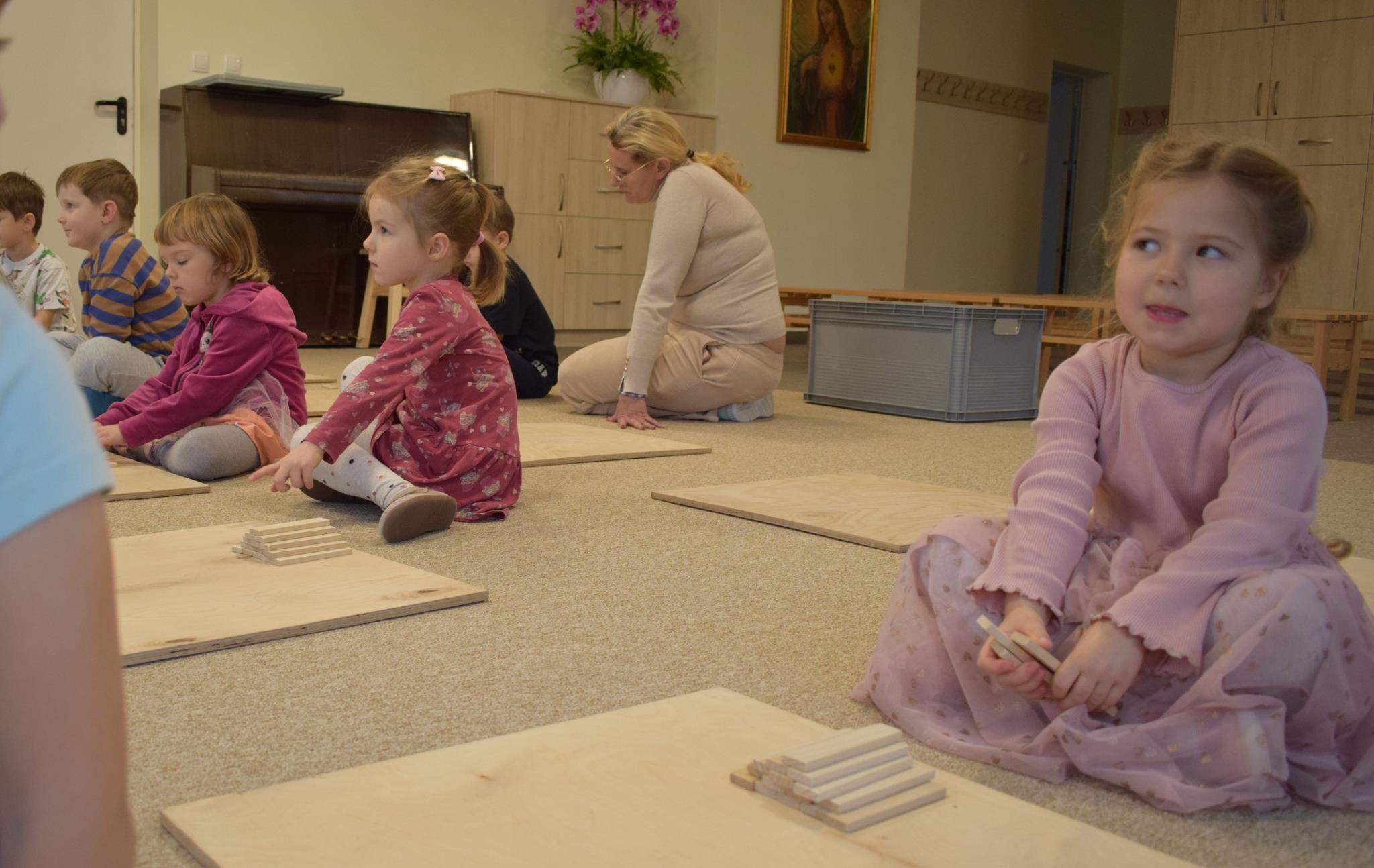 Po raz kolejny w tym roku dzieci uczestniczyły w warsztatach Małego Architekta. Wznosiły budowle pod czujnym okiem Pana Kreatka, musiały się wykazać umiejętnością uważnego słuchania, znajomością podstaw matematyki, a także zmysłem estetycznym, inicjatywą i umiejętnościami organizacyjnymi. Na pierwszy ogień poszły podstawowe konstrukcje geometryczne, takie jak trójkąty, kwadraty i koła. Motylki próbowały swoich sił we wznoszeniu budowli przypominającej rzymskie koloseum. Starszaki reprezentując wyższy poziom umiejętności, bo przecież to już trzeci rok, jak szlifują wymienione umiejętności, wznosiły budowle przypominające te z Rynku Starego Miasta w stolicy.
