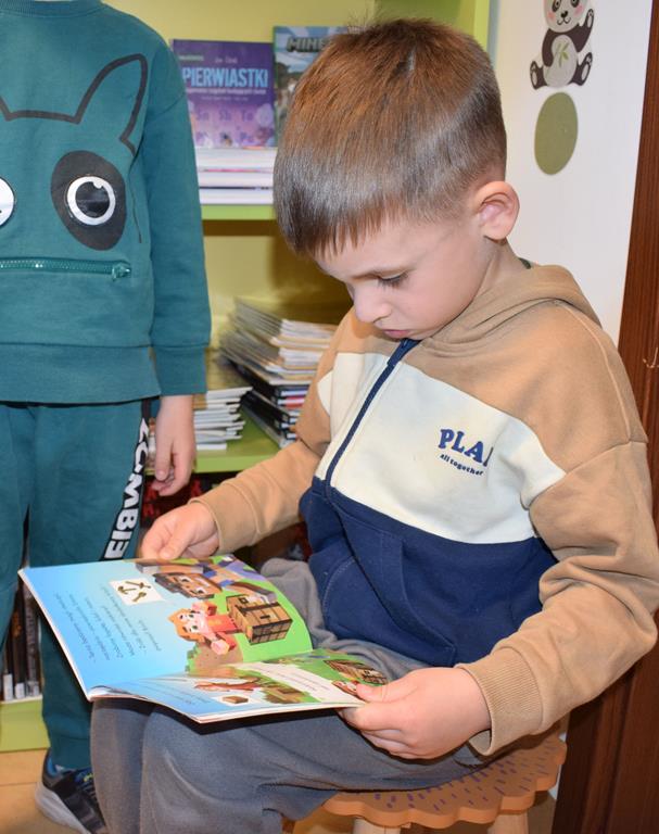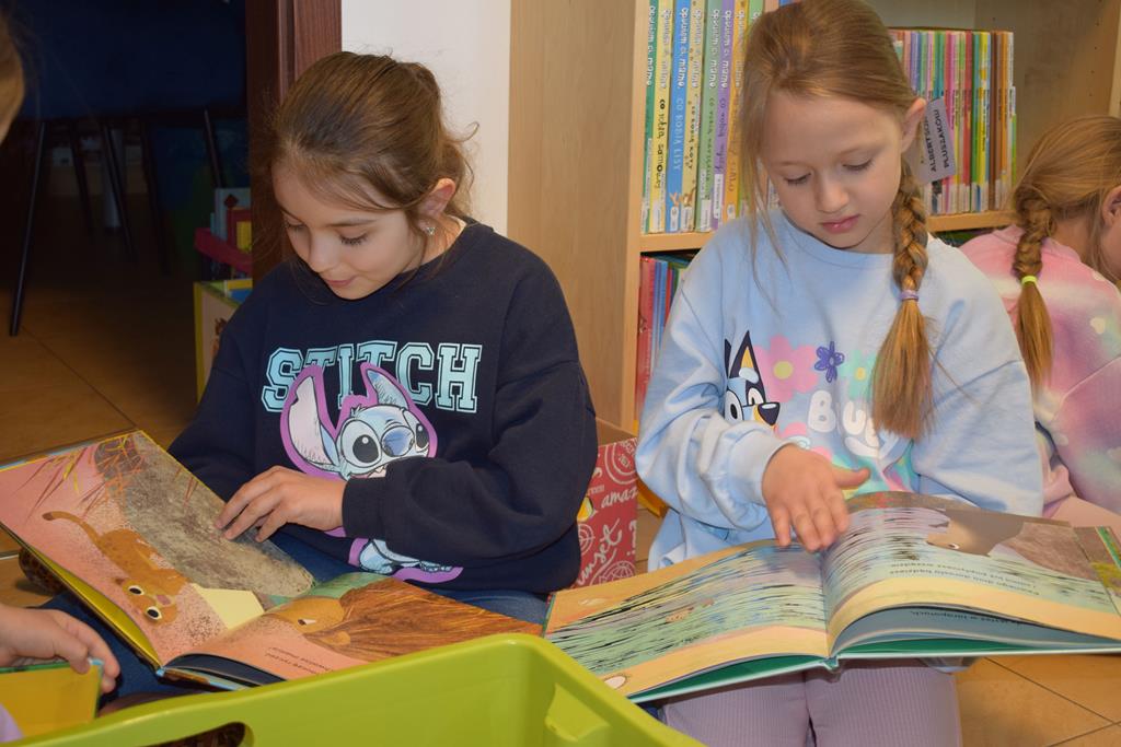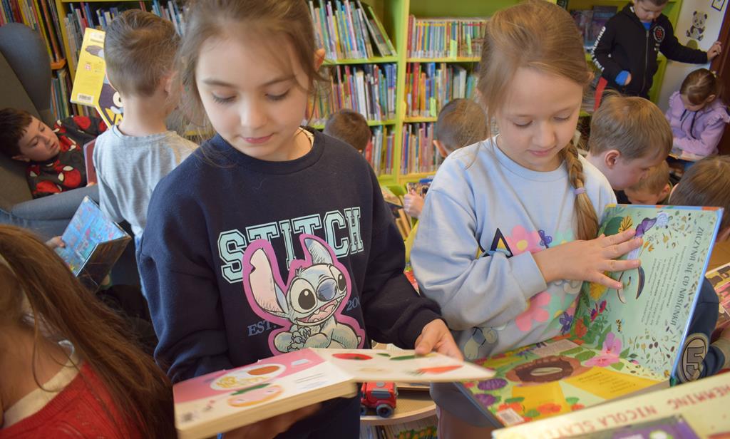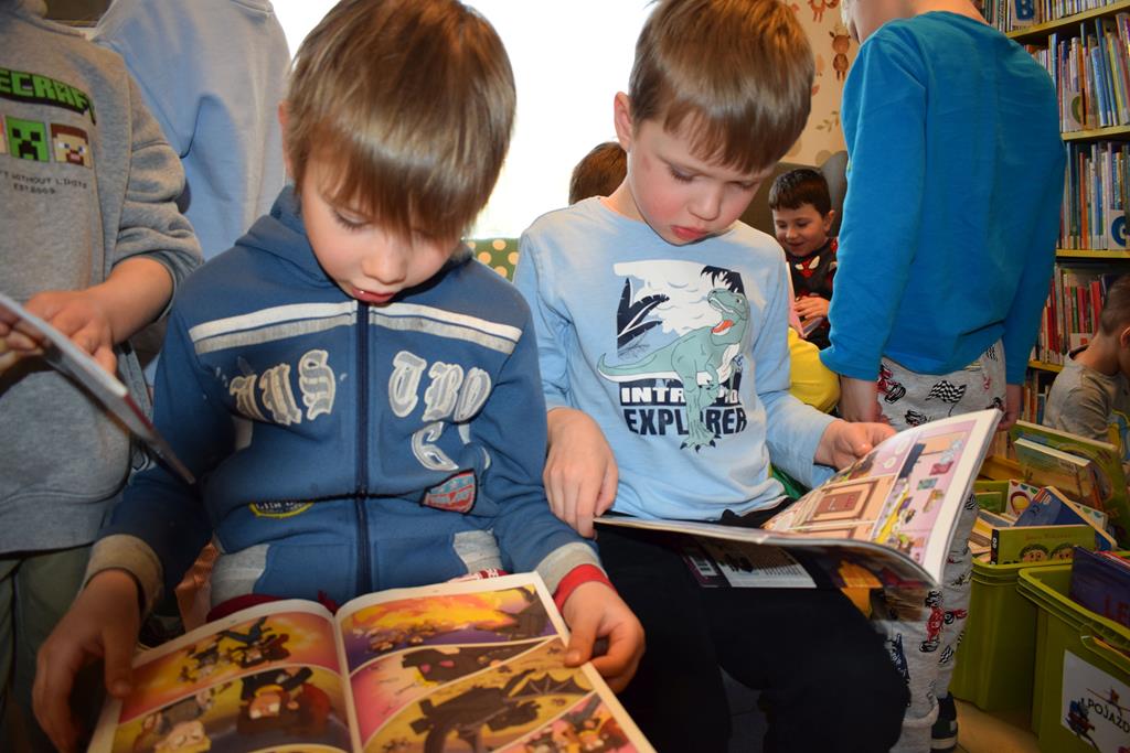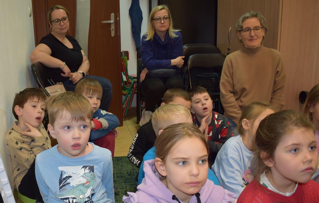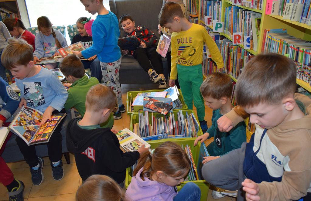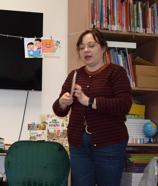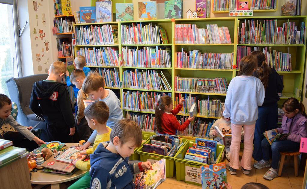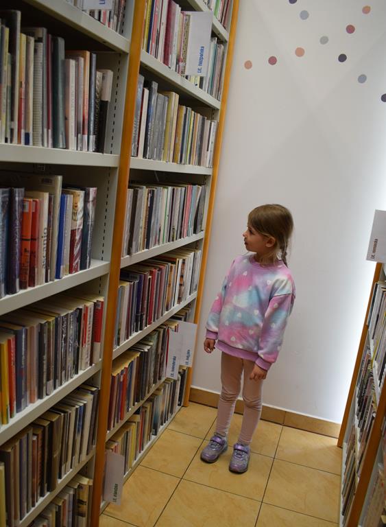 Dzieci z gr. Sówek udały się do pobliskiej biblioteki publicznej, gdzie wzięły udział w zajęciach bibliotecznych. Część dzieci odwiedzała bibliotekę już wcześniej, jednak dla wielu przedszkolaków było to pierwsze spotkanie z tym wyjątkowym miejscem. Pani bibliotekarka opowiedziała dzieciom, kiedy książki „się smucą”, a kiedy „cieszą”. Wspólnie ustalono zasady obowiązujące czytelnika, dotyczące właściwego zachowania w bibliotece oraz odpowiedniego obchodzenia się z książkami. Z obrazków przedstawiających dobre nawyki powstał „Kodeks przyjaciela książek”. Przedszkolaki wysłuchały również opowieści o dinozaurach, z której dowiedziały się, że biblioteka jest miejscem otwartym dla każdego i każdy może znaleźć w niej coś ciekawego dla siebie. Następnie dzieci odwiedziły kącik czytelniczy, gdzie z zainteresowaniem oglądały wybrane pozycje. Niektóre Sówki tak zaciekawiły się wybranymi książkami, że zapragnęły wrócić w to miejsce i wypożyczyć je do domu. Wizyta w bibliotece była dla dzieci ciekawym doświadczeniem, które rozbudziło ich zainteresowanie literaturę dziecięcą.