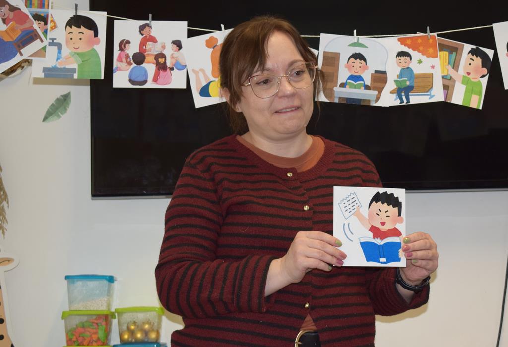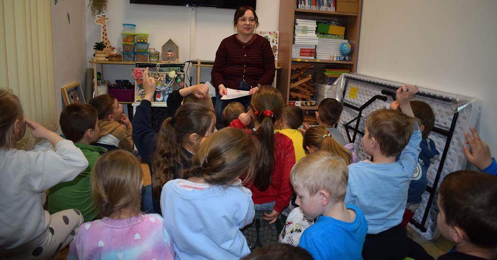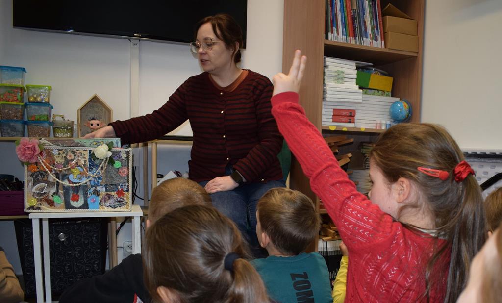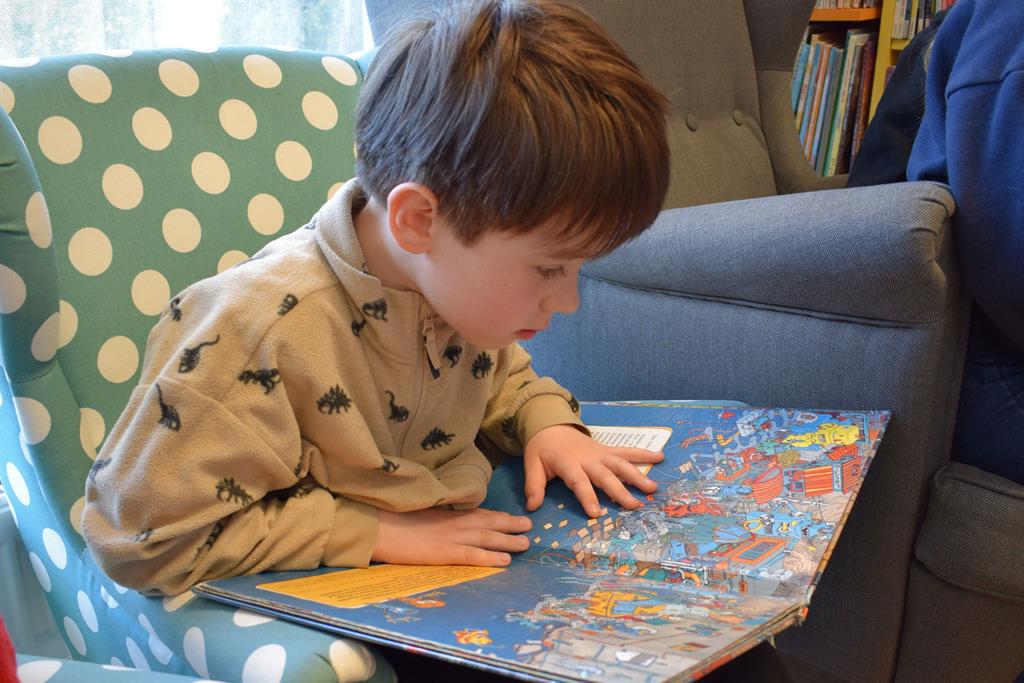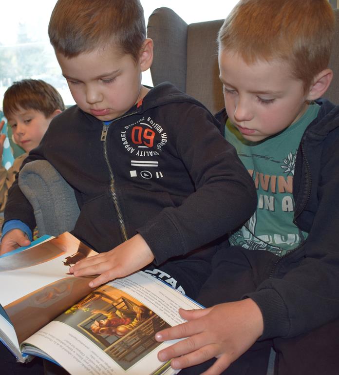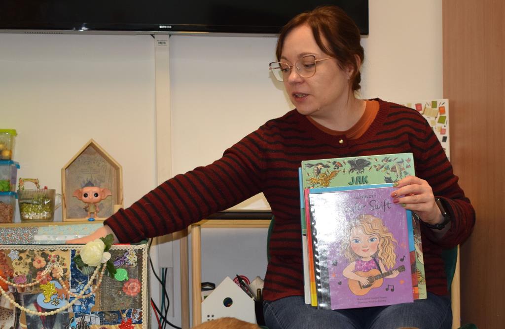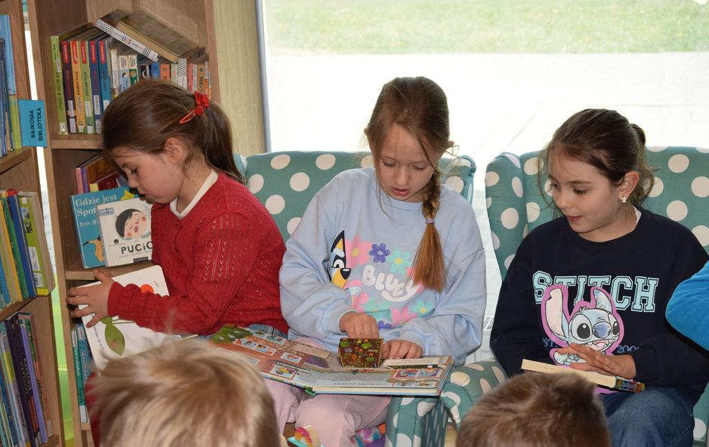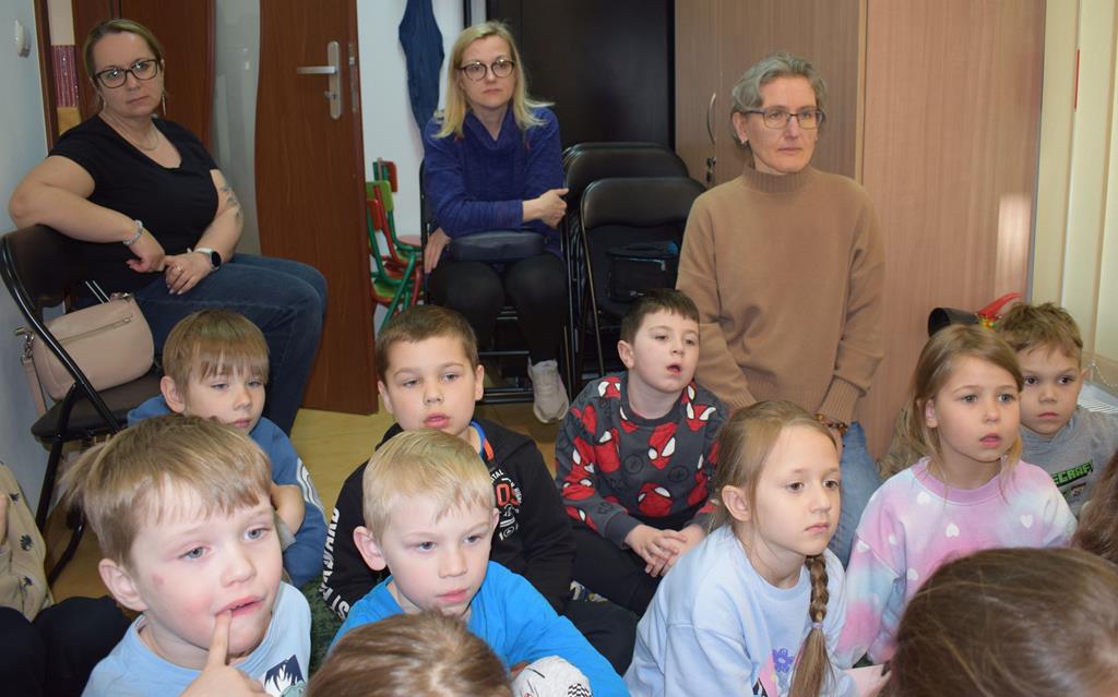 Dzieci z gr. Sówek udały się do pobliskiej biblioteki publicznej, gdzie wzięły udział w zajęciach bibliotecznych. Część dzieci odwiedzała bibliotekę już wcześniej, jednak dla wielu przedszkolaków było to pierwsze spotkanie z tym wyjątkowym miejscem. Pani bibliotekarka opowiedziała dzieciom, kiedy książki „się smucą”, a kiedy „cieszą”. Wspólnie ustalono zasady obowiązujące czytelnika, dotyczące właściwego zachowania w bibliotece oraz odpowiedniego obchodzenia się z książkami. Z obrazków przedstawiających dobre nawyki powstał „Kodeks przyjaciela książek”. Przedszkolaki wysłuchały również opowieści o dinozaurach, z której dowiedziały się, że biblioteka jest miejscem otwartym dla każdego i każdy może znaleźć w niej coś ciekawego dla siebie. Następnie dzieci odwiedziły kącik czytelniczy, gdzie z zainteresowaniem oglądały wybrane pozycje. Niektóre Sówki tak zaciekawiły się wybranymi książkami, że zapragnęły wrócić w to miejsce i wypożyczyć je do domu. Wizyta w bibliotece była dla dzieci ciekawym doświadczeniem, które rozbudziło ich zainteresowanie literaturę dziecięcą.
