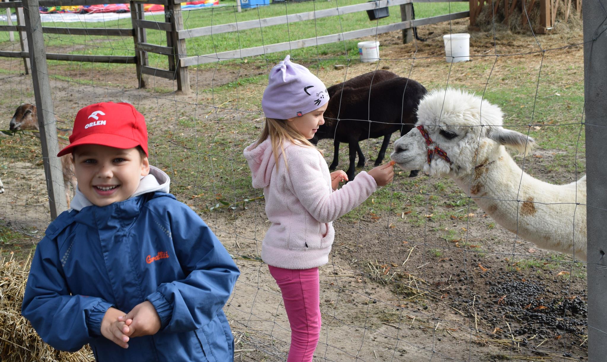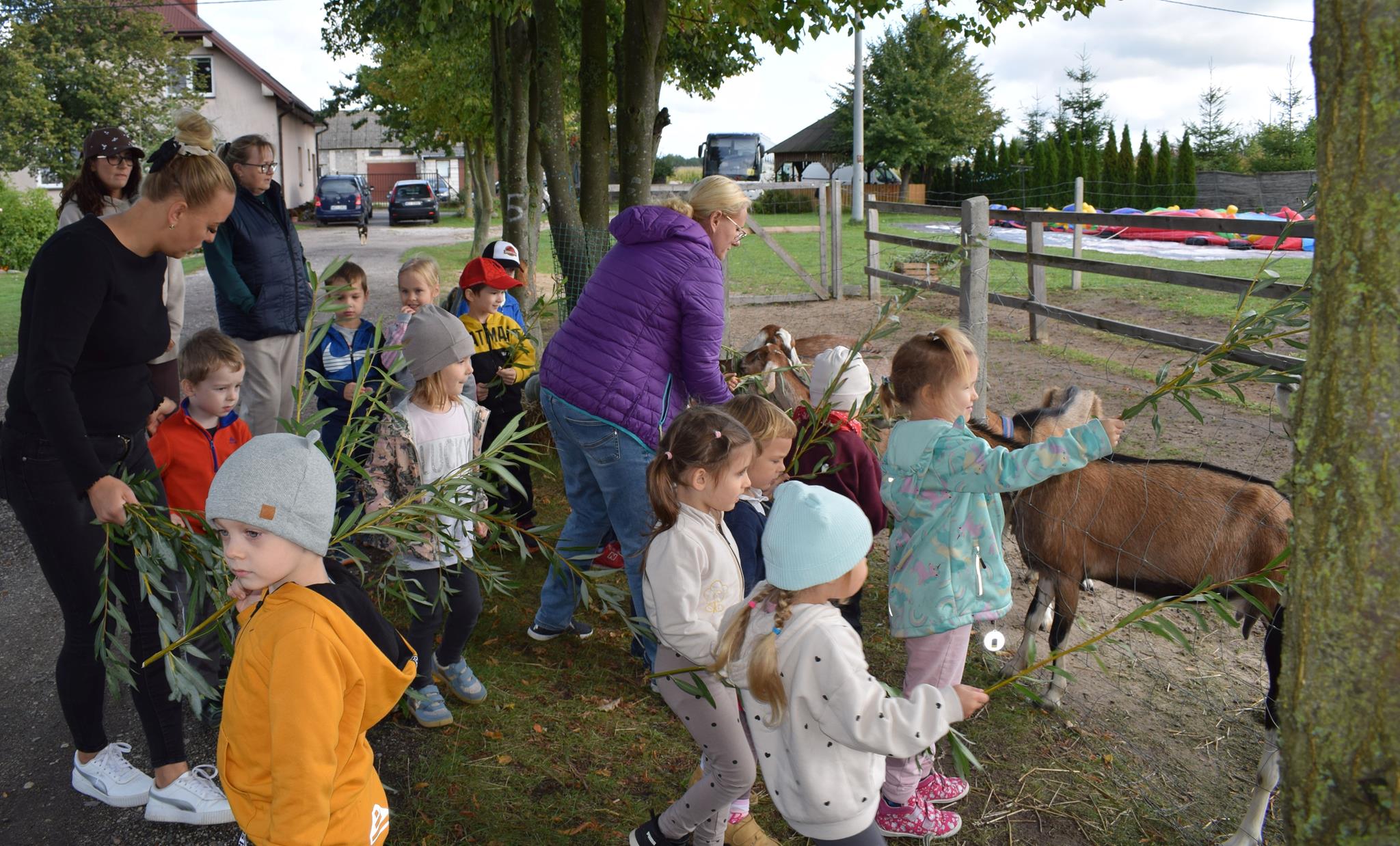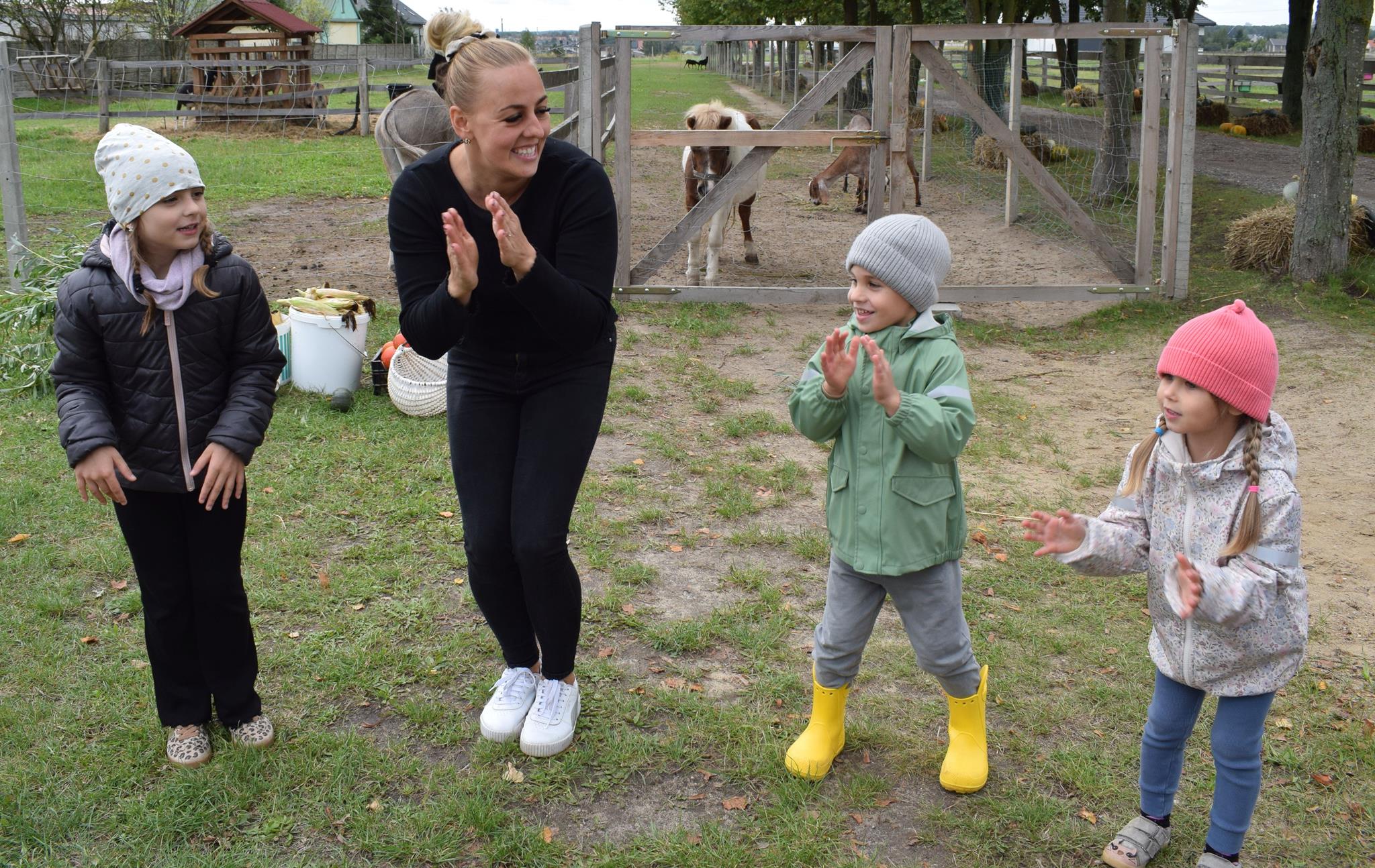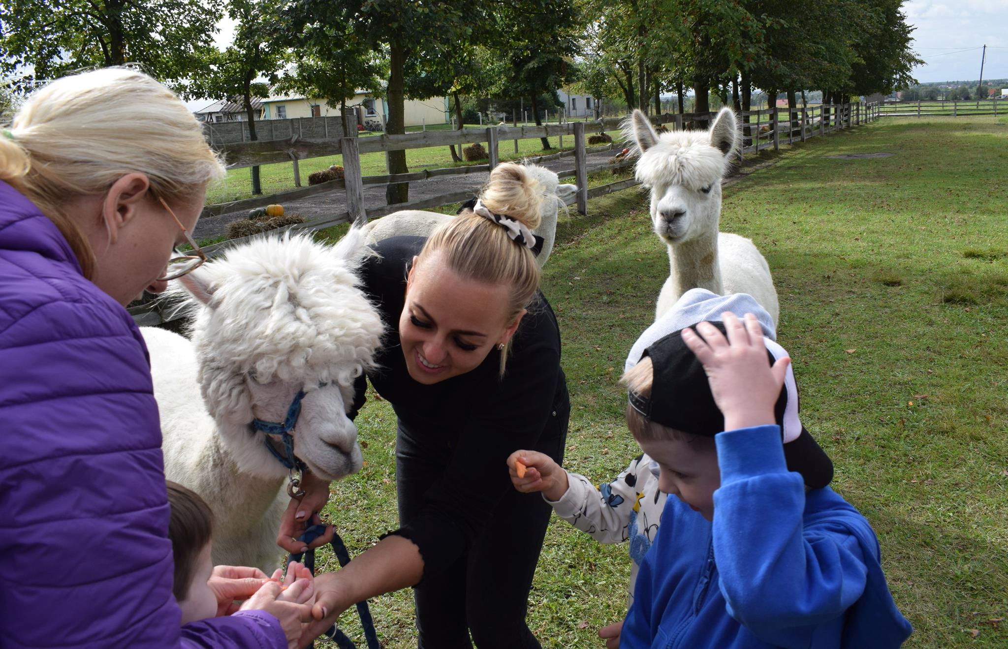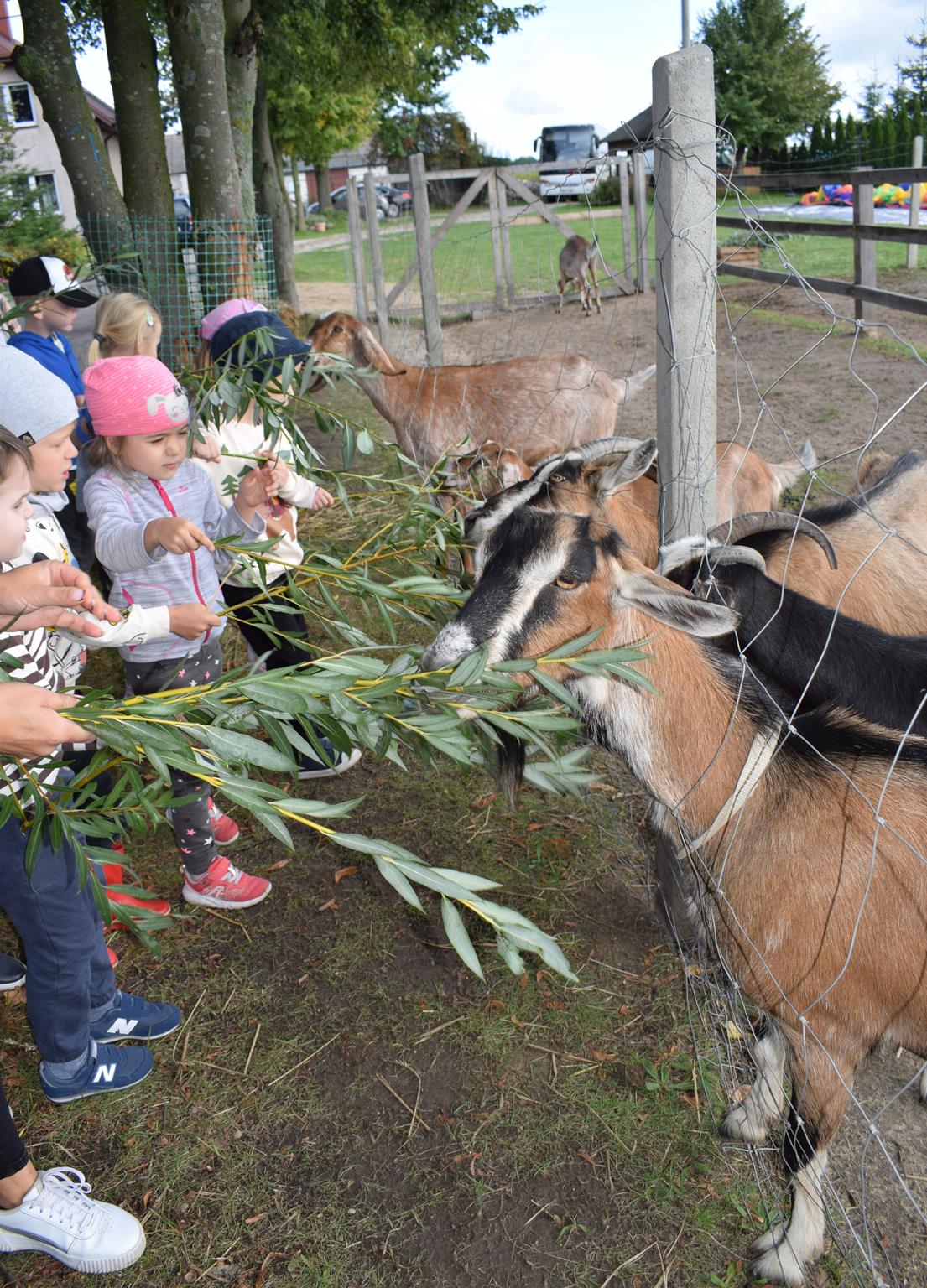 Na pierwszą wycieczkę w tym roku szkolnym wybraliśmy się do Farmy Wesołe Alpaki w miejscowości Żabokliki koło Siedlec. Najważniejszym punktem programu naszej wycieczki było spotkanie ze zwierzętami. Poznaliśmy mieszkańców farmy z bliska: alpaki, kozy, króliki, owce, osiołka, kucyka i kury. Uczyliśmy się, jak bezpiecznie i z szacunkiem obchodzić się ze zwierzątkami. Mogliśmy je pogłaskać, nakarmić, a także przytulić. Uczestniczyliśmy w jesiennych grach i zabawach, i kolejny raz przekonaliśmy się, że śmiech i ruch to najlepszy sposób na integrację! Miłych chwil doświadczyliśmy w trakcie oprowadzanek na kucyku, była to dla nas ważna lekcja zaufania do zwierząt. Dmuchańce – to prawdziwa frajda, to taka atrakcja, która nigdy się nam nie nudzi. Uczestniczyliśmy w zajęciach prowadzonych przez lekarza weterynarii. Dowiedzieliśmy się, jak wygląda praca ze zwierzętami „od kuchni”, zobaczyliśmy prawdziwe narzędzia lekarskie, mogliśmy także osłuchać serduszko kucyka. Gospodarzom farmy serdecznie dziękujemy za wszystkie atrakcje, ciekawe zajęcia, wspólną zabawę. Był to dla nas udany dzień i udana WYCIECZKA!