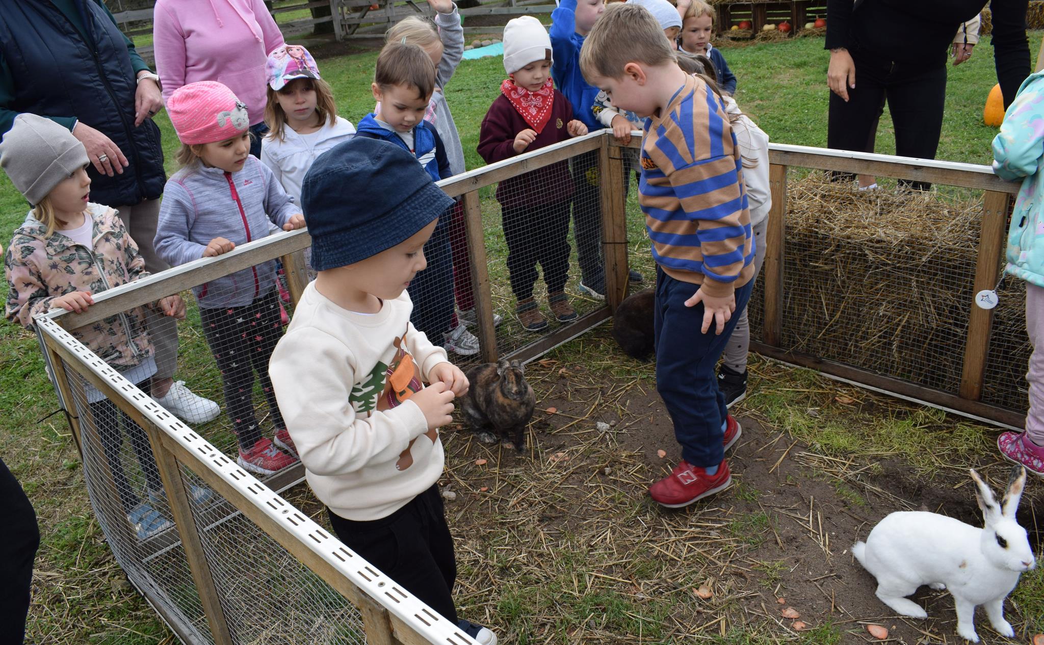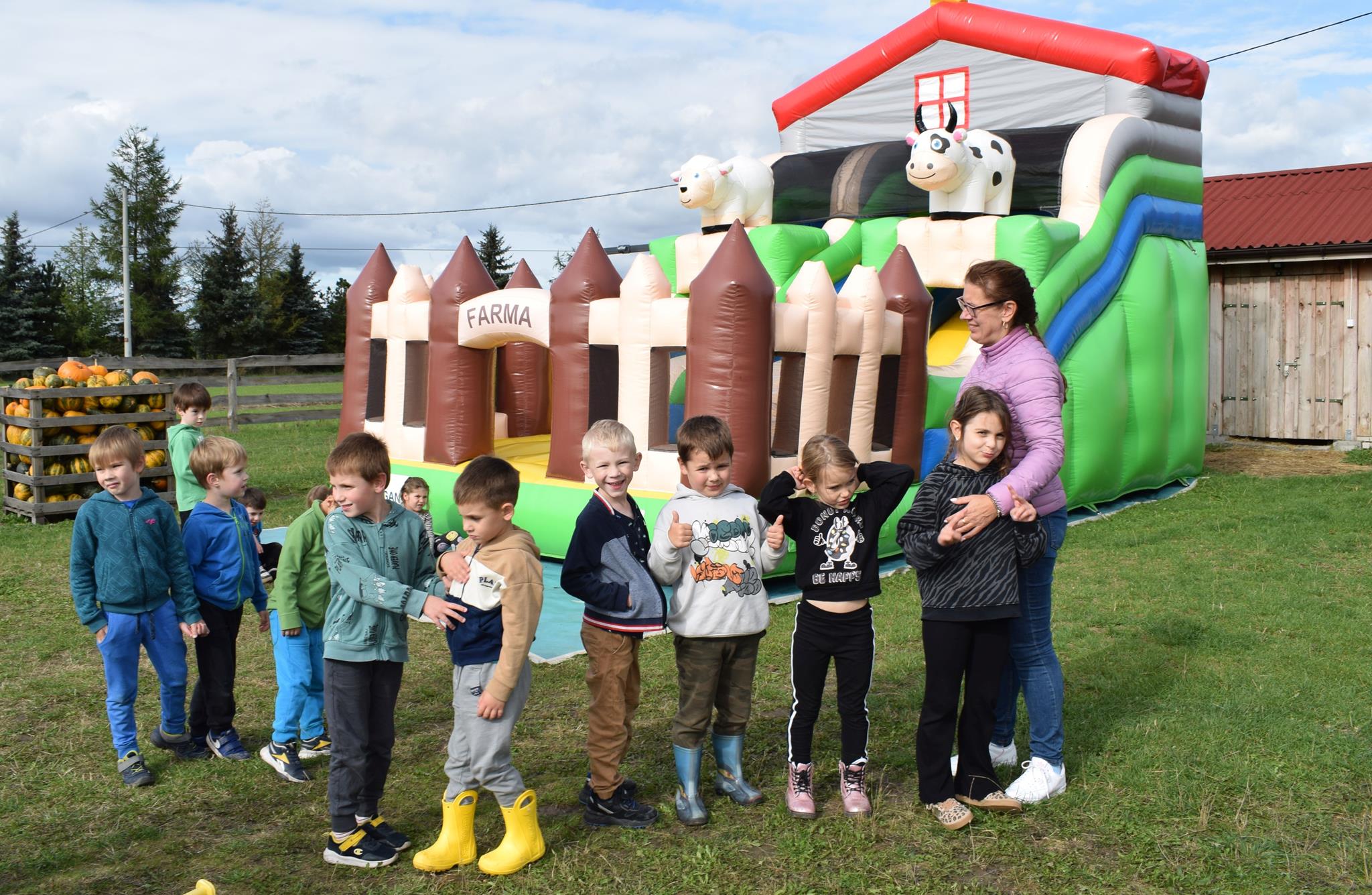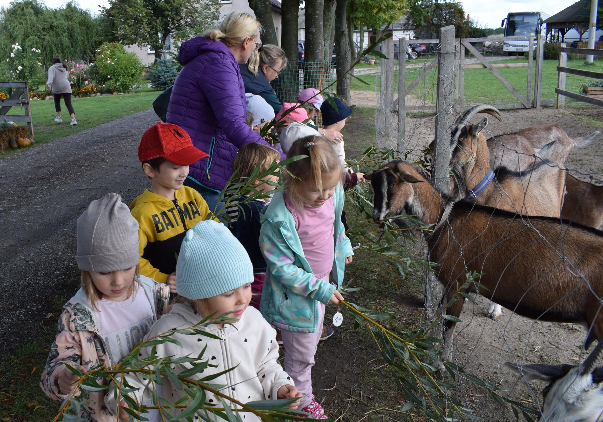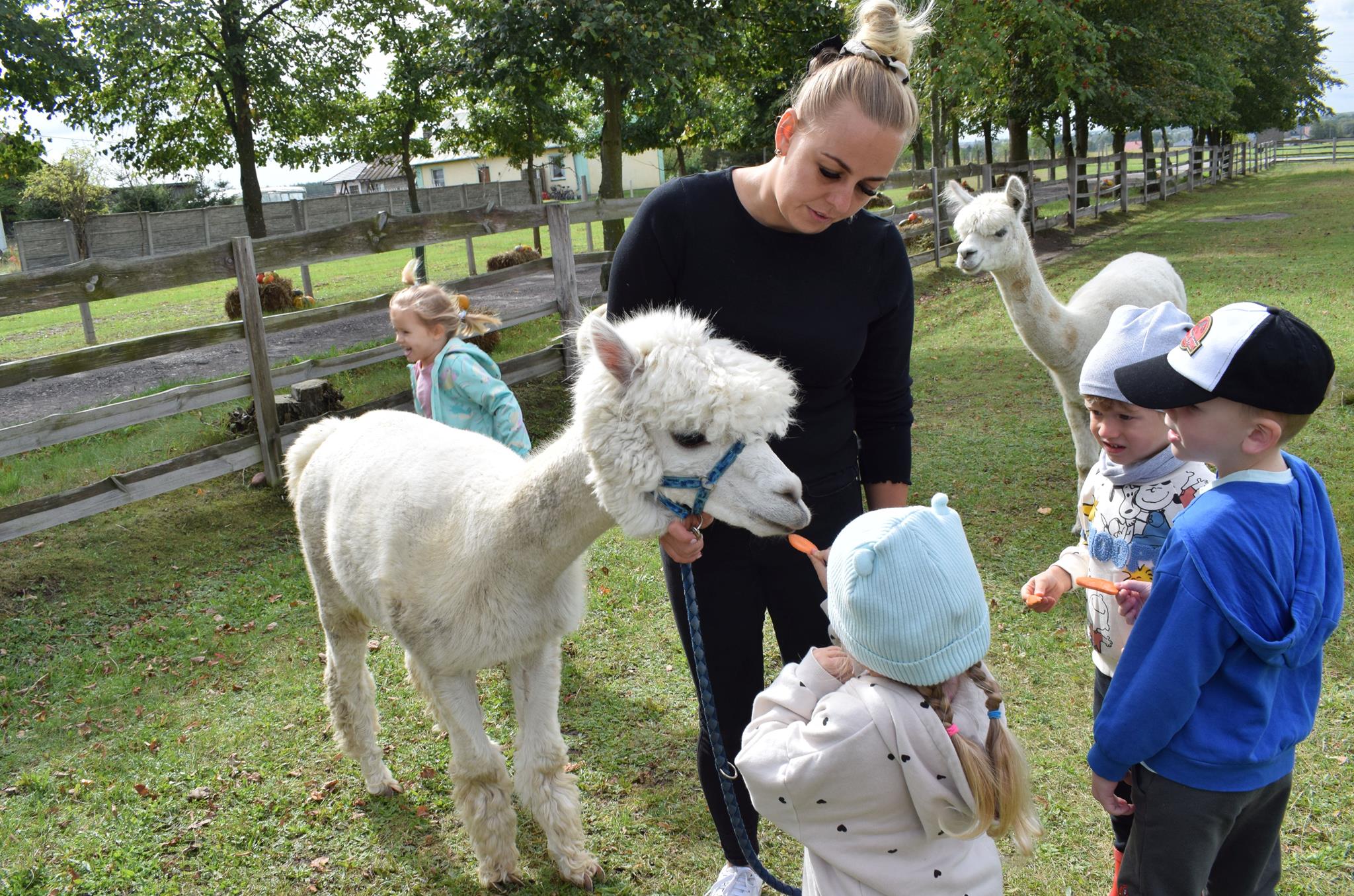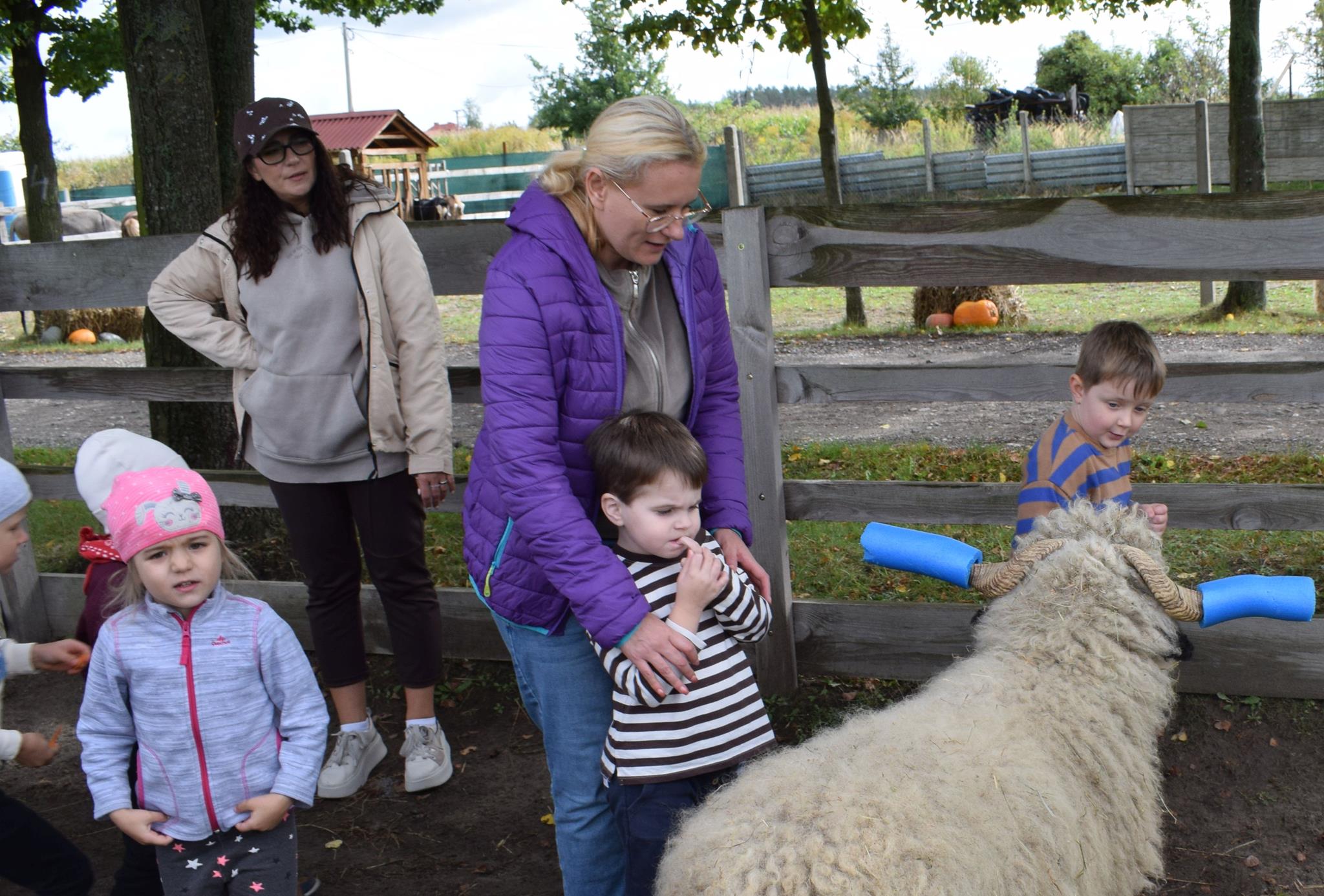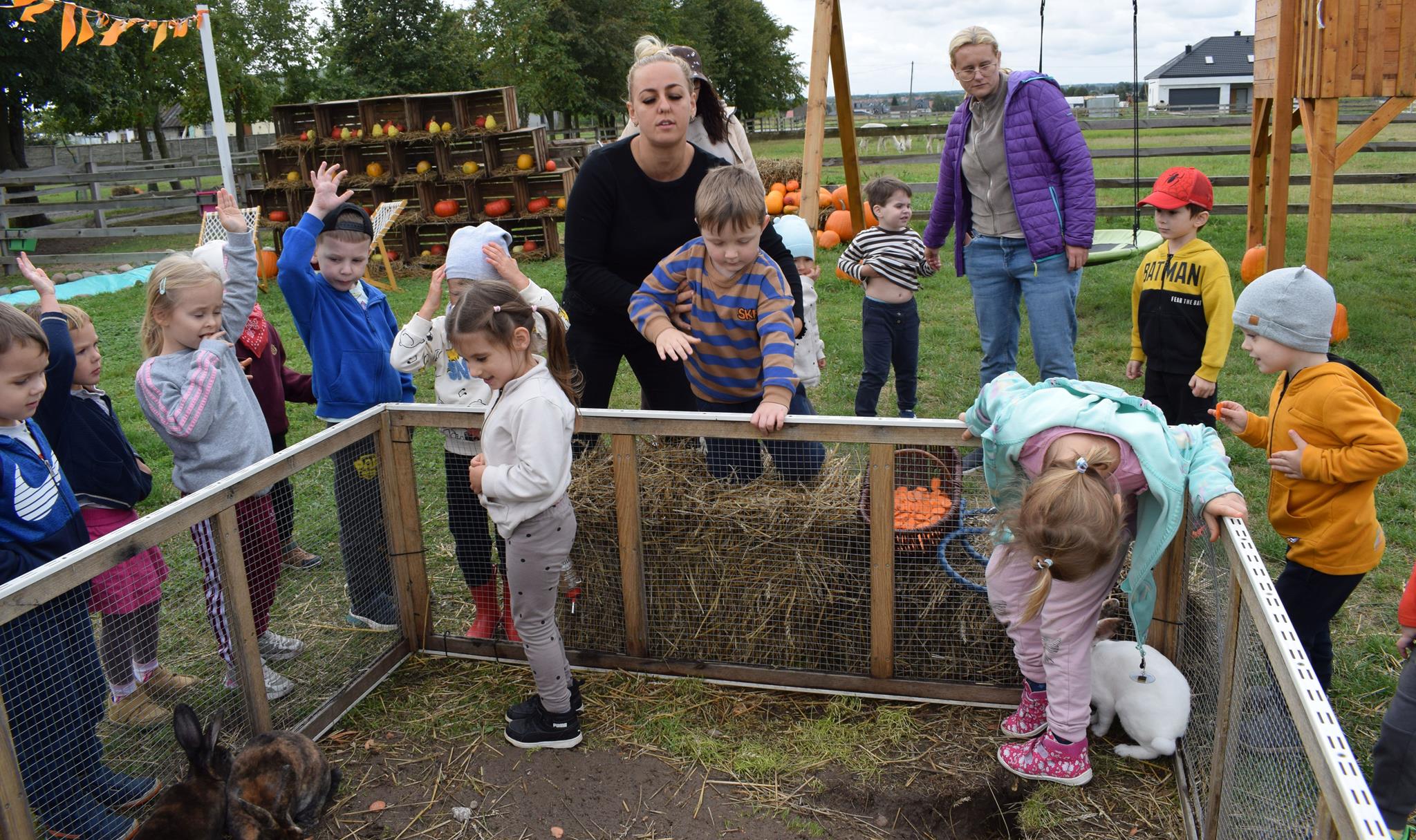 Na pierwszą wycieczkę w tym roku szkolnym wybraliśmy się do Farmy Wesołe Alpaki w miejscowości Żabokliki koło Siedlec. Najważniejszym punktem programu naszej wycieczki było spotkanie ze zwierzętami. Poznaliśmy mieszkańców farmy z bliska: alpaki, kozy, króliki, owce, osiołka, kucyka i kury. Uczyliśmy się, jak bezpiecznie i z szacunkiem obchodzić się ze zwierzątkami. Mogliśmy je pogłaskać, nakarmić, a także przytulić. Uczestniczyliśmy w jesiennych grach i zabawach, i kolejny raz przekonaliśmy się, że śmiech i ruch to najlepszy sposób na integrację! Miłych chwil doświadczyliśmy w trakcie oprowadzanek na kucyku, była to dla nas ważna lekcja zaufania do zwierząt. Dmuchańce – to prawdziwa frajda, to taka atrakcja, która nigdy się nam nie nudzi. Uczestniczyliśmy w zajęciach prowadzonych przez lekarza weterynarii. Dowiedzieliśmy się, jak wygląda praca ze zwierzętami „od kuchni”, zobaczyliśmy prawdziwe narzędzia lekarskie, mogliśmy także osłuchać serduszko kucyka. Gospodarzom farmy serdecznie dziękujemy za wszystkie atrakcje, ciekawe zajęcia, wspólną zabawę. Był to dla nas udany dzień i udana WYCIECZKA!