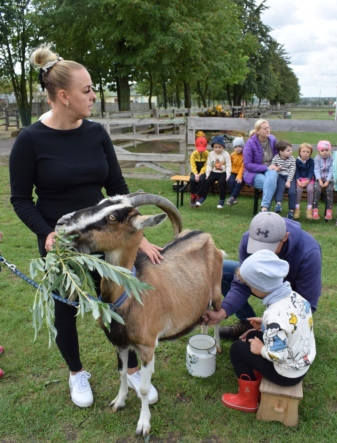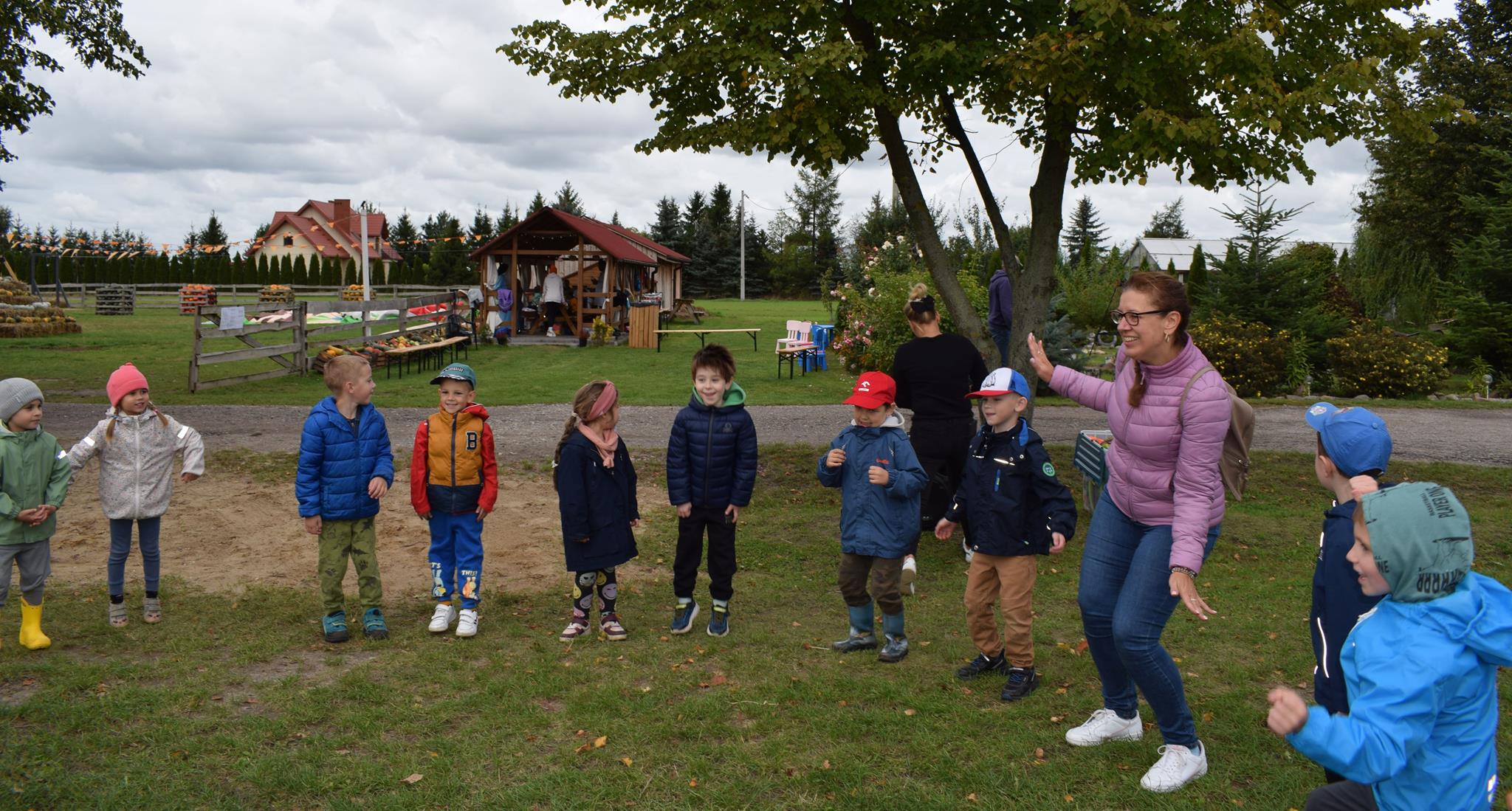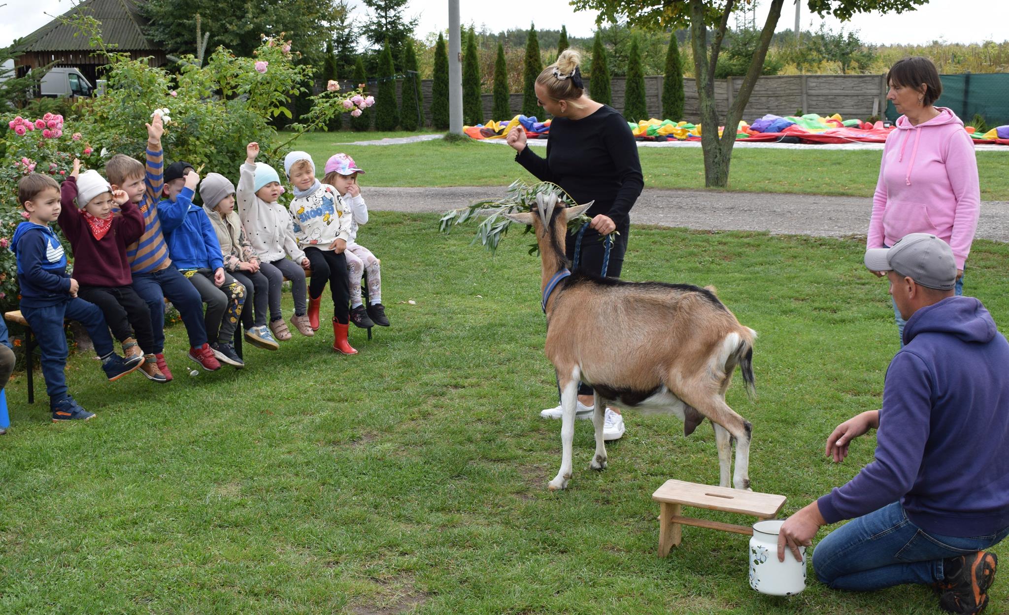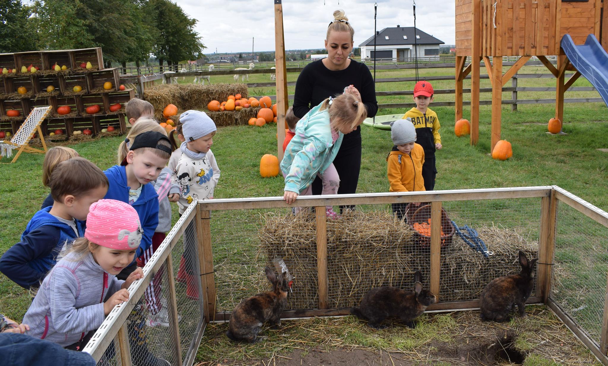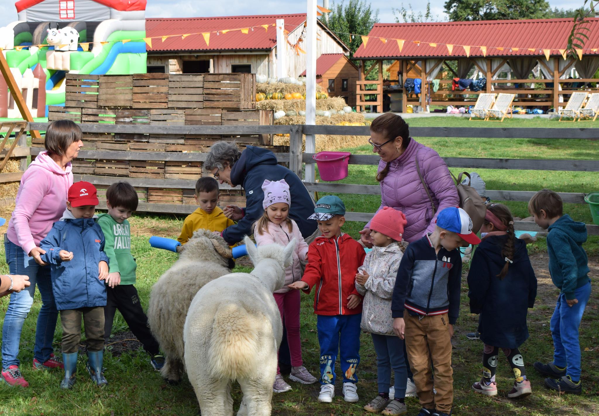 Na pierwszą wycieczkę w tym roku szkolnym wybraliśmy się do Farmy Wesołe Alpaki w miejscowości Żabokliki koło Siedlec. Najważniejszym punktem programu naszej wycieczki było spotkanie ze zwierzętami. Poznaliśmy mieszkańców farmy z bliska: alpaki, kozy, króliki, owce, osiołka, kucyka i kury. Uczyliśmy się, jak bezpiecznie i z szacunkiem obchodzić się ze zwierzątkami. Mogliśmy je pogłaskać, nakarmić, a także przytulić. Uczestniczyliśmy w jesiennych grach i zabawach, i kolejny raz przekonaliśmy się, że śmiech i ruch to najlepszy sposób na integrację! Miłych chwil doświadczyliśmy w trakcie oprowadzanek na kucyku, była to dla nas ważna lekcja zaufania do zwierząt. Dmuchańce – to prawdziwa frajda, to taka atrakcja, która nigdy się nam nie nudzi. Uczestniczyliśmy w zajęciach prowadzonych przez lekarza weterynarii. Dowiedzieliśmy się, jak wygląda praca ze zwierzętami „od kuchni”, zobaczyliśmy prawdziwe narzędzia lekarskie, mogliśmy także osłuchać serduszko kucyka. Gospodarzom farmy serdecznie dziękujemy za wszystkie atrakcje, ciekawe zajęcia, wspólną zabawę. Był to dla nas udany dzień i udana WYCIECZKA!