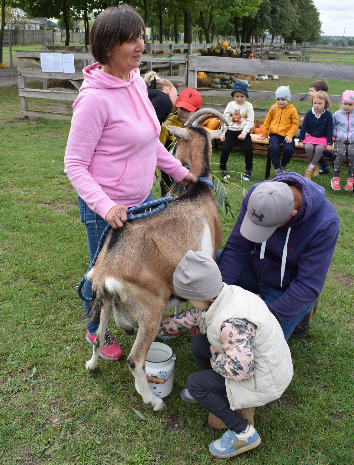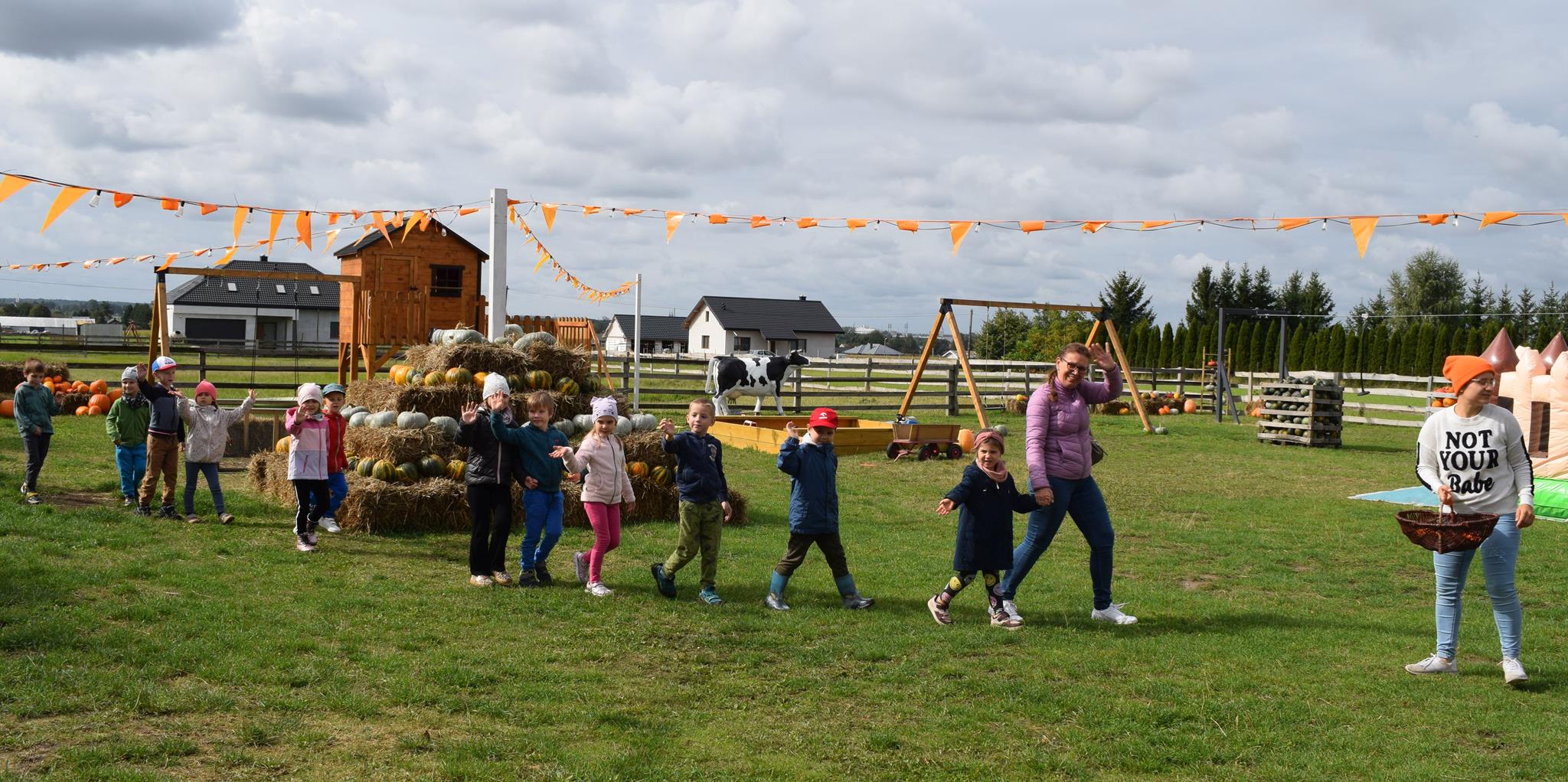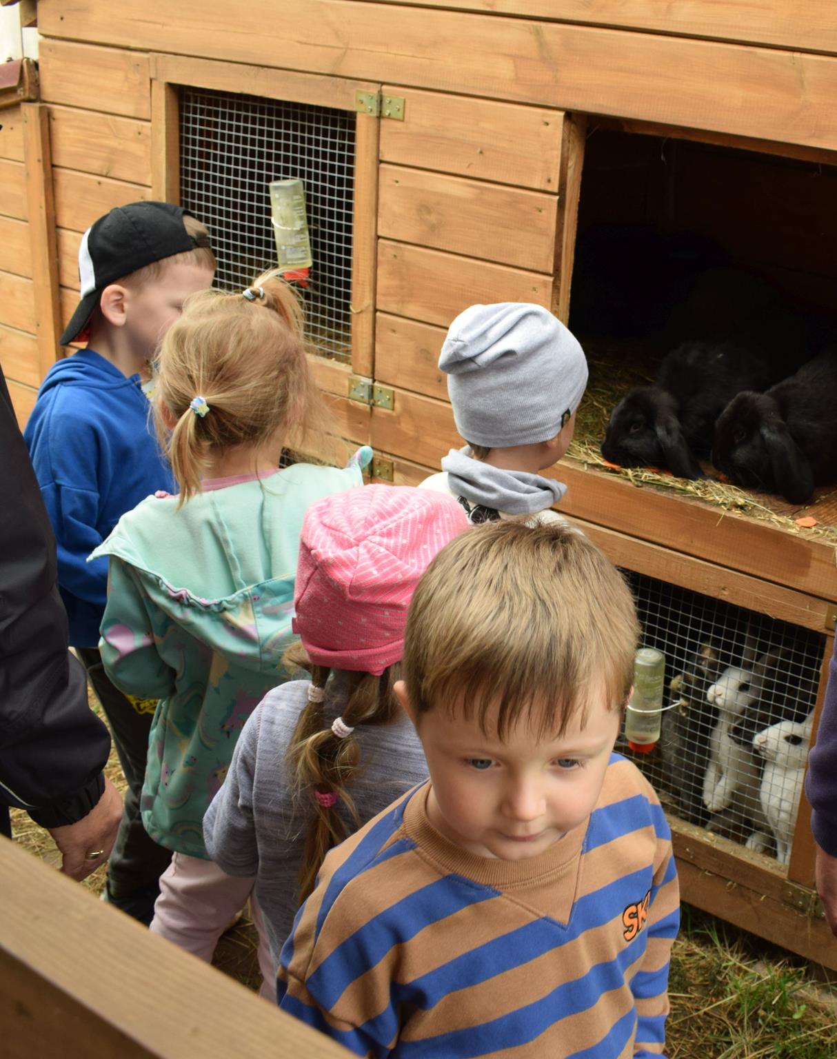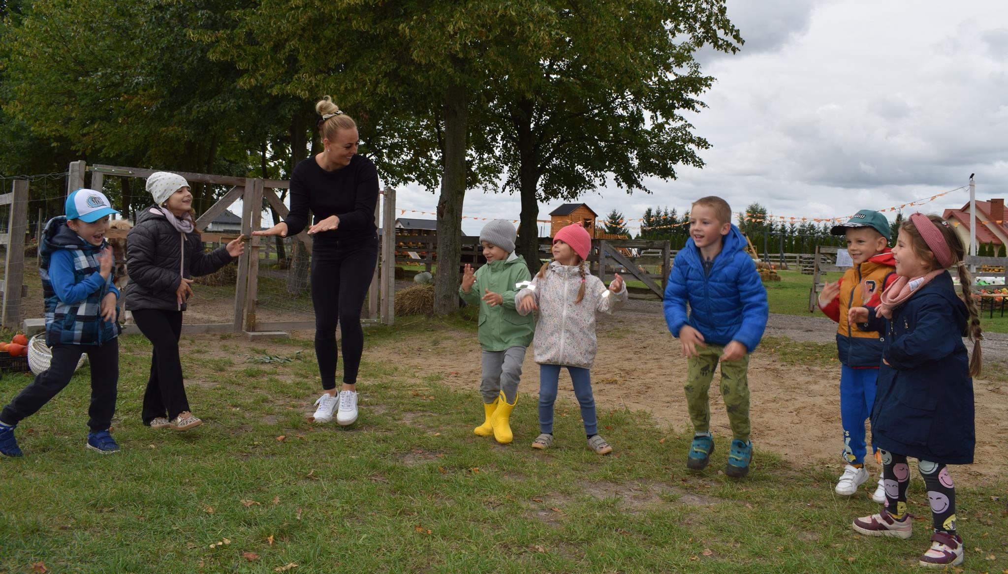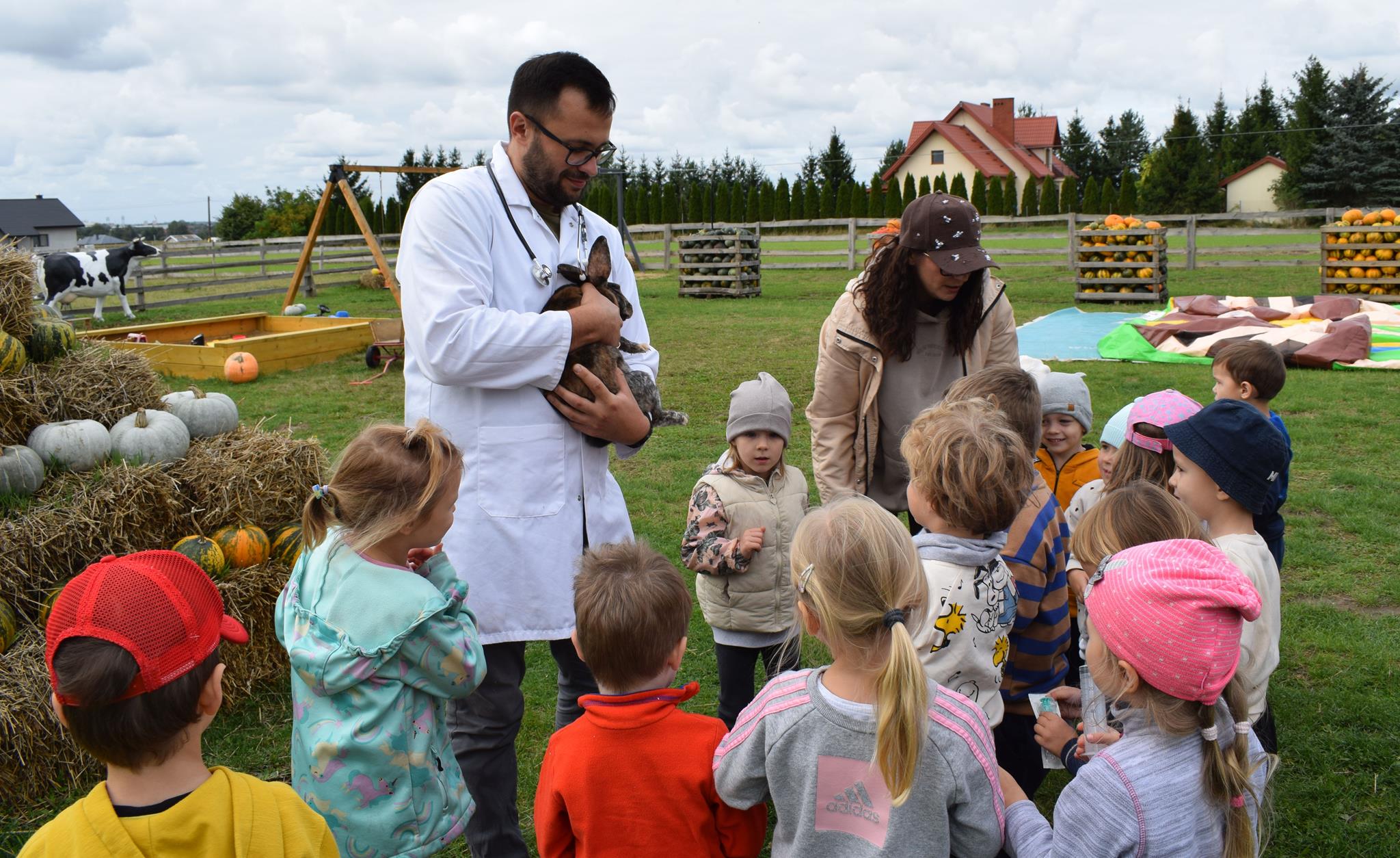 Na pierwszą wycieczkę w tym roku szkolnym wybraliśmy się do Farmy Wesołe Alpaki w miejscowości Żabokliki koło Siedlec. Najważniejszym punktem programu naszej wycieczki było spotkanie ze zwierzętami. Poznaliśmy mieszkańców farmy z bliska: alpaki, kozy, króliki, owce, osiołka, kucyka i kury. Uczyliśmy się, jak bezpiecznie i z szacunkiem obchodzić się ze zwierzątkami. Mogliśmy je pogłaskać, nakarmić, a także przytulić. Uczestniczyliśmy w jesiennych grach i zabawach, i kolejny raz przekonaliśmy się, że śmiech i ruch to najlepszy sposób na integrację! Miłych chwil doświadczyliśmy w trakcie oprowadzanek na kucyku, była to dla nas ważna lekcja zaufania do zwierząt. Dmuchańce – to prawdziwa frajda, to taka atrakcja, która nigdy się nam nie nudzi. Uczestniczyliśmy w zajęciach prowadzonych przez lekarza weterynarii. Dowiedzieliśmy się, jak wygląda praca ze zwierzętami „od kuchni”, zobaczyliśmy prawdziwe narzędzia lekarskie, mogliśmy także osłuchać serduszko kucyka. Gospodarzom farmy serdecznie dziękujemy za wszystkie atrakcje, ciekawe zajęcia, wspólną zabawę. Był to dla nas udany dzień i udana WYCIECZKA!