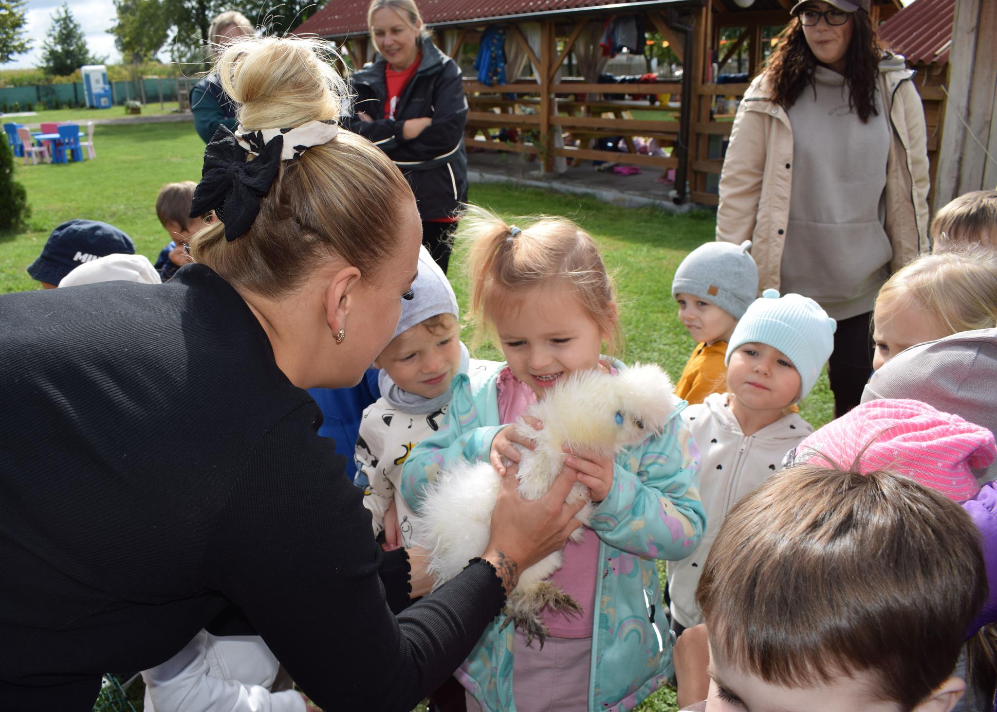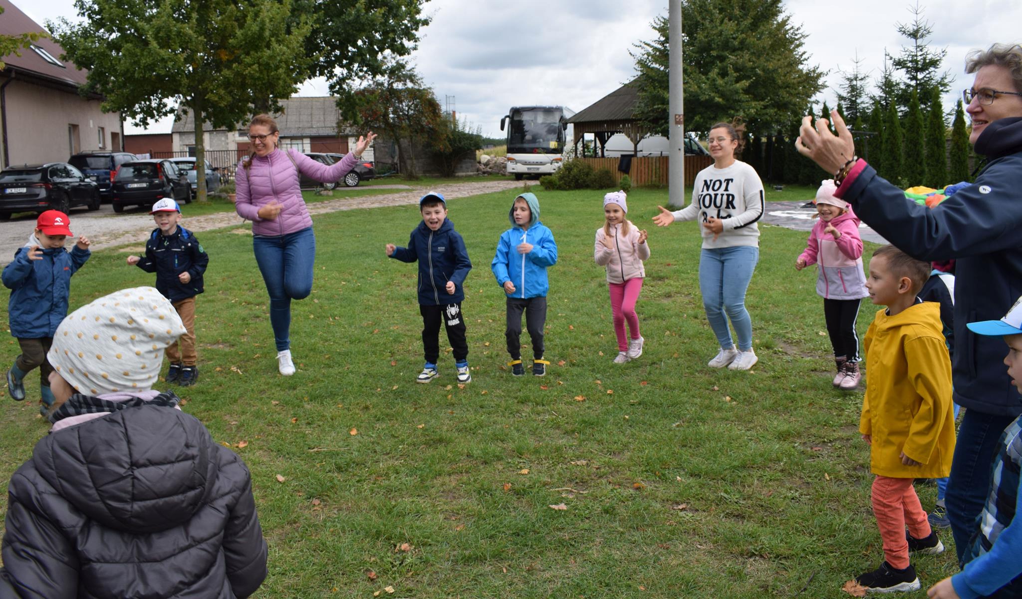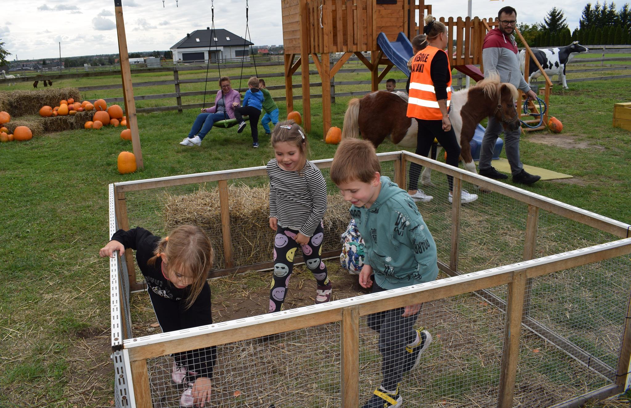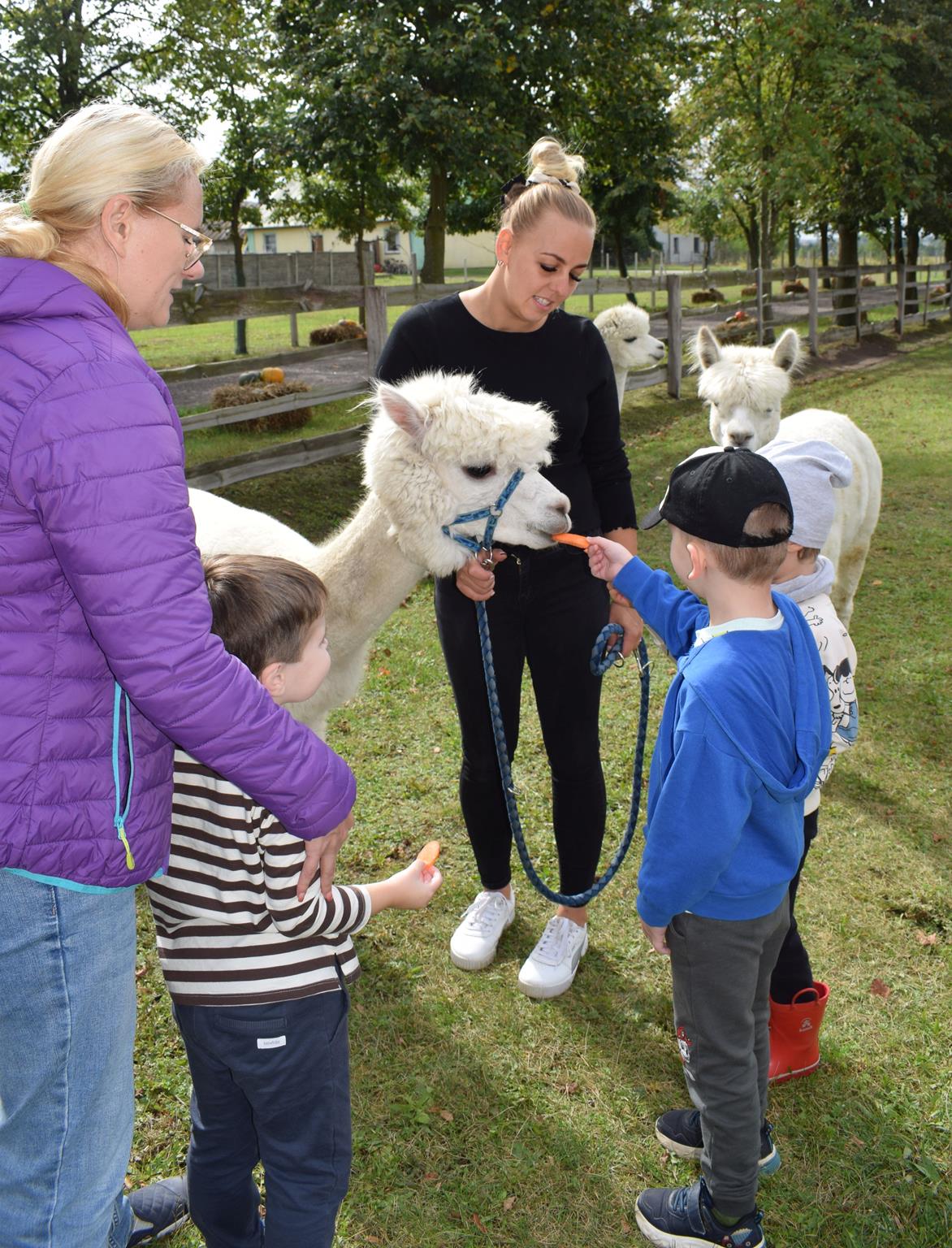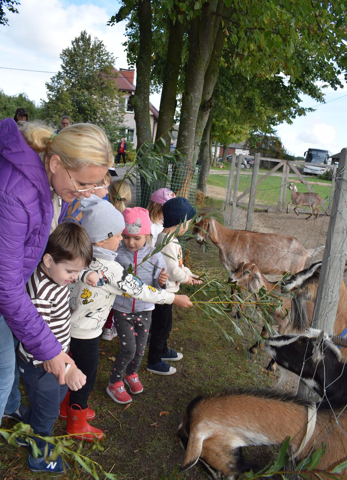 Na pierwszą wycieczkę w tym roku szkolnym wybraliśmy się do Farmy Wesołe Alpaki w miejscowości Żabokliki koło Siedlec. Najważniejszym punktem programu naszej wycieczki było spotkanie ze zwierzętami. Poznaliśmy mieszkańców farmy z bliska: alpaki, kozy, króliki, owce, osiołka, kucyka i kury. Uczyliśmy się, jak bezpiecznie i z szacunkiem obchodzić się ze zwierzątkami. Mogliśmy je pogłaskać, nakarmić, a także przytulić. Uczestniczyliśmy w jesiennych grach i zabawach, i kolejny raz przekonaliśmy się, że śmiech i ruch to najlepszy sposób na integrację! Miłych chwil doświadczyliśmy w trakcie oprowadzanek na kucyku, była to dla nas ważna lekcja zaufania do zwierząt. Dmuchańce – to prawdziwa frajda, to taka atrakcja, która nigdy się nam nie nudzi. Uczestniczyliśmy w zajęciach prowadzonych przez lekarza weterynarii. Dowiedzieliśmy się, jak wygląda praca ze zwierzętami „od kuchni”, zobaczyliśmy prawdziwe narzędzia lekarskie, mogliśmy także osłuchać serduszko kucyka. Gospodarzom farmy serdecznie dziękujemy za wszystkie atrakcje, ciekawe zajęcia, wspólną zabawę. Był to dla nas udany dzień i udana WYCIECZKA!