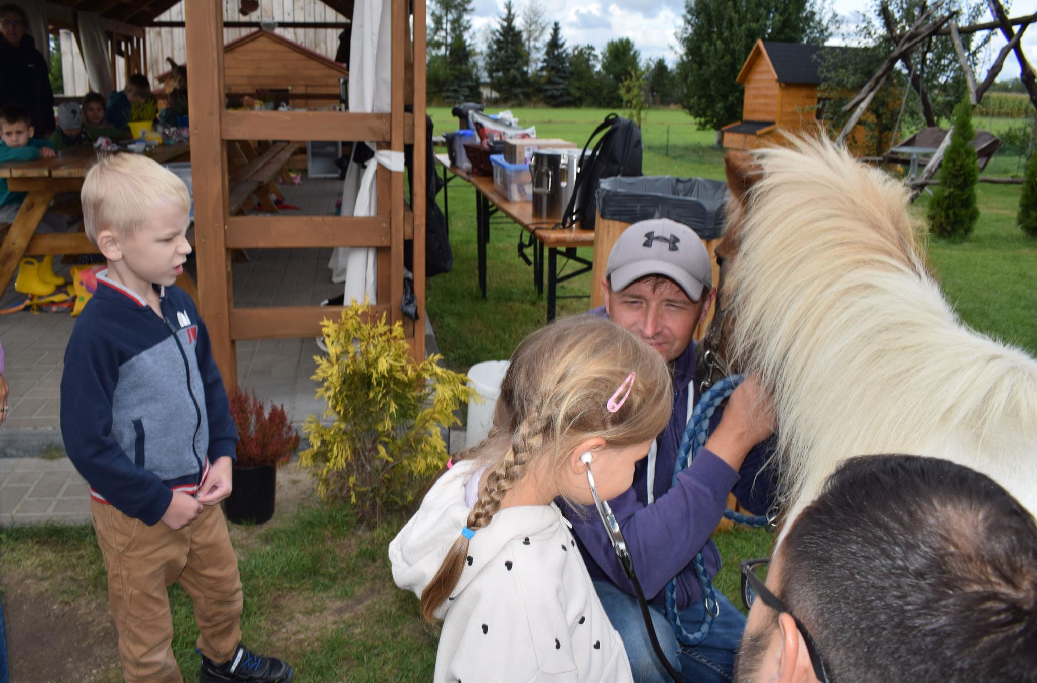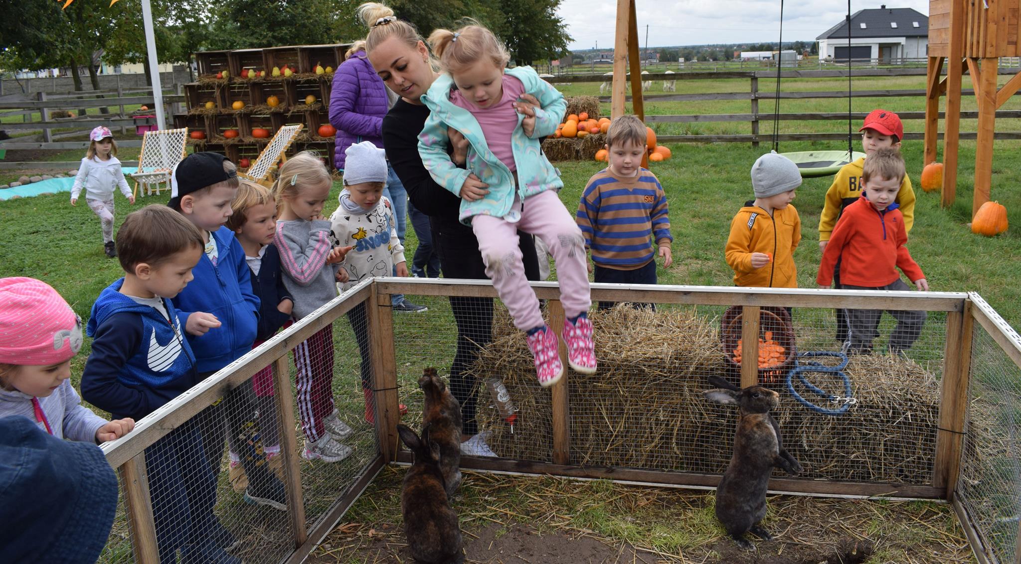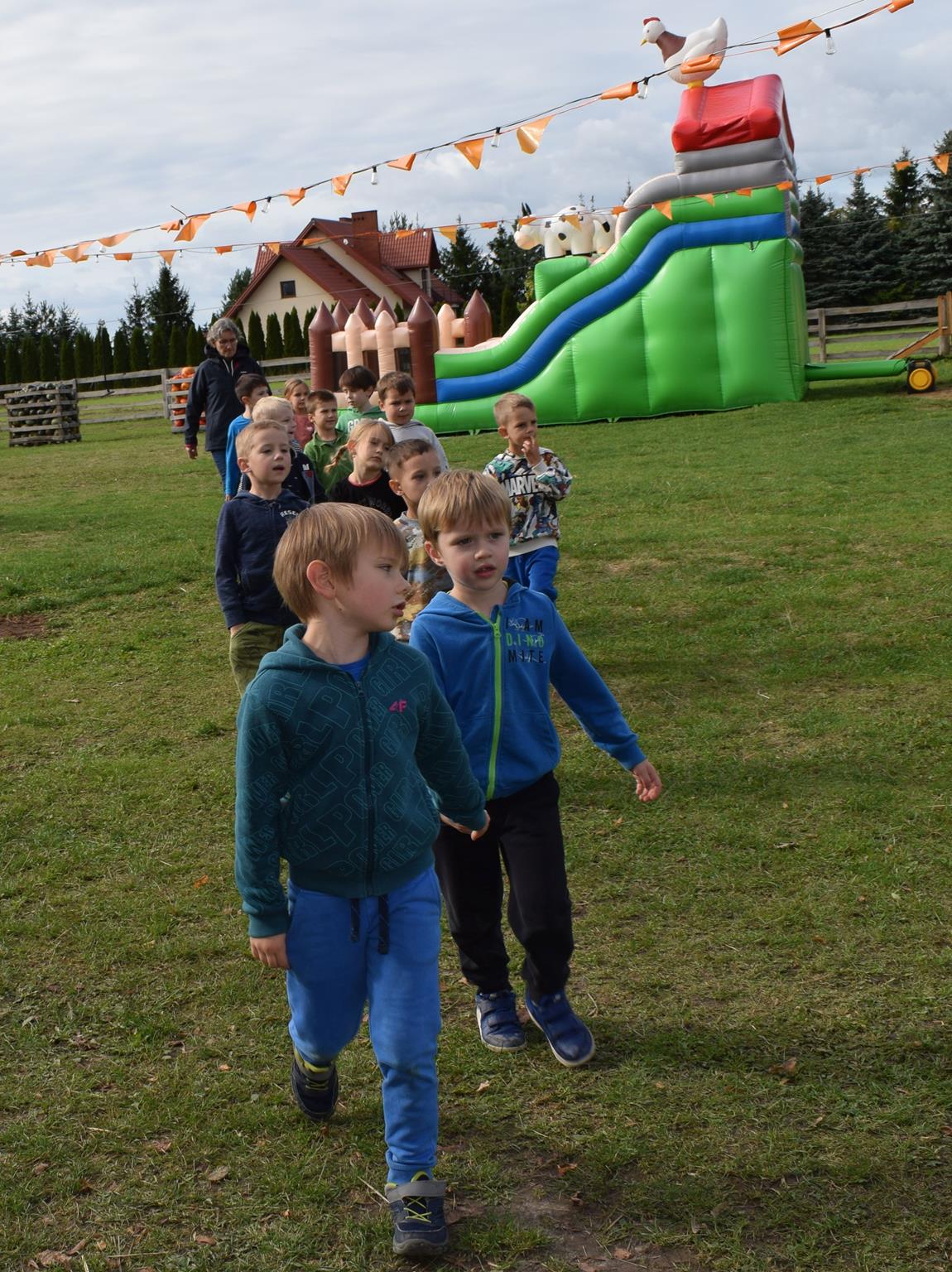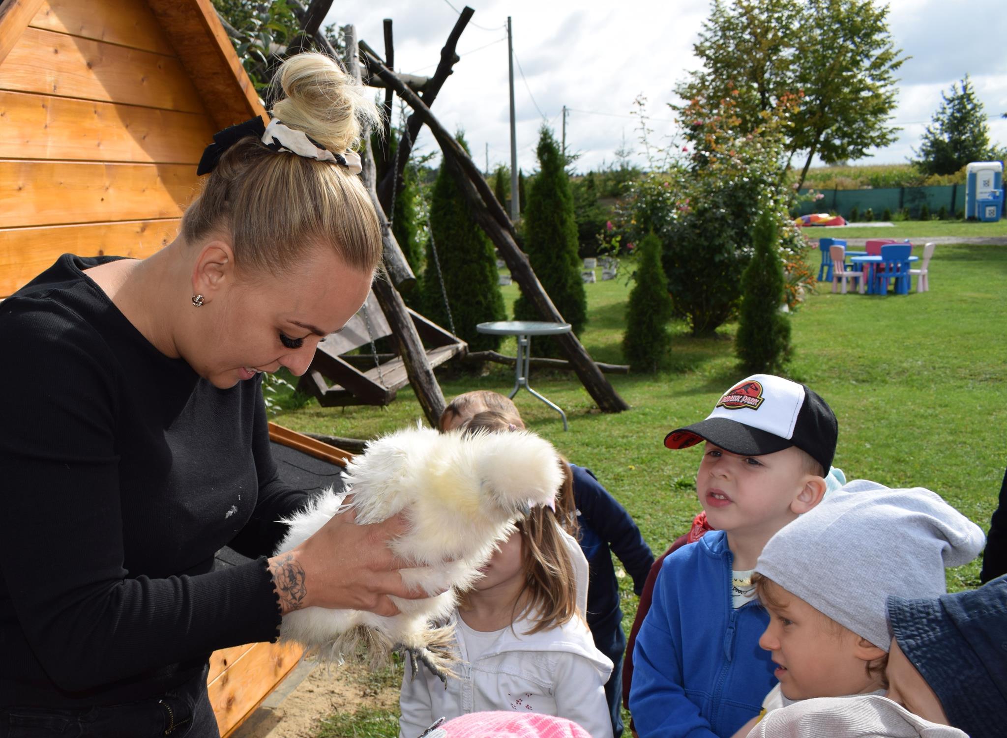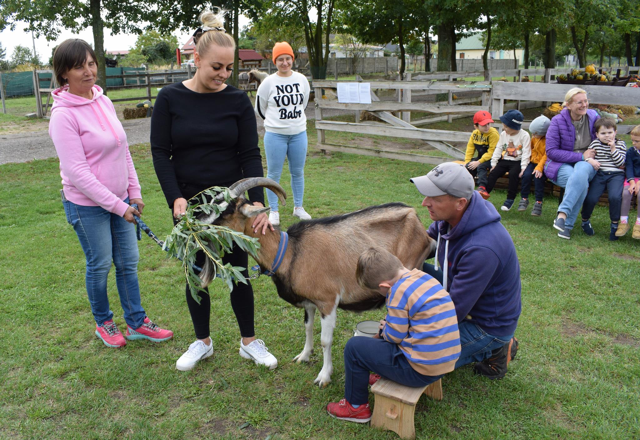 Na pierwszą wycieczkę w tym roku szkolnym wybraliśmy się do Farmy Wesołe Alpaki w miejscowości Żabokliki koło Siedlec. Najważniejszym punktem programu naszej wycieczki było spotkanie ze zwierzętami. Poznaliśmy mieszkańców farmy z bliska: alpaki, kozy, króliki, owce, osiołka, kucyka i kury. Uczyliśmy się, jak bezpiecznie i z szacunkiem obchodzić się ze zwierzątkami. Mogliśmy je pogłaskać, nakarmić, a także przytulić. Uczestniczyliśmy w jesiennych grach i zabawach, i kolejny raz przekonaliśmy się, że śmiech i ruch to najlepszy sposób na integrację! Miłych chwil doświadczyliśmy w trakcie oprowadzanek na kucyku, była to dla nas ważna lekcja zaufania do zwierząt. Dmuchańce – to prawdziwa frajda, to taka atrakcja, która nigdy się nam nie nudzi. Uczestniczyliśmy w zajęciach prowadzonych przez lekarza weterynarii. Dowiedzieliśmy się, jak wygląda praca ze zwierzętami „od kuchni”, zobaczyliśmy prawdziwe narzędzia lekarskie, mogliśmy także osłuchać serduszko kucyka. Gospodarzom farmy serdecznie dziękujemy za wszystkie atrakcje, ciekawe zajęcia, wspólną zabawę. Był to dla nas udany dzień i udana WYCIECZKA!