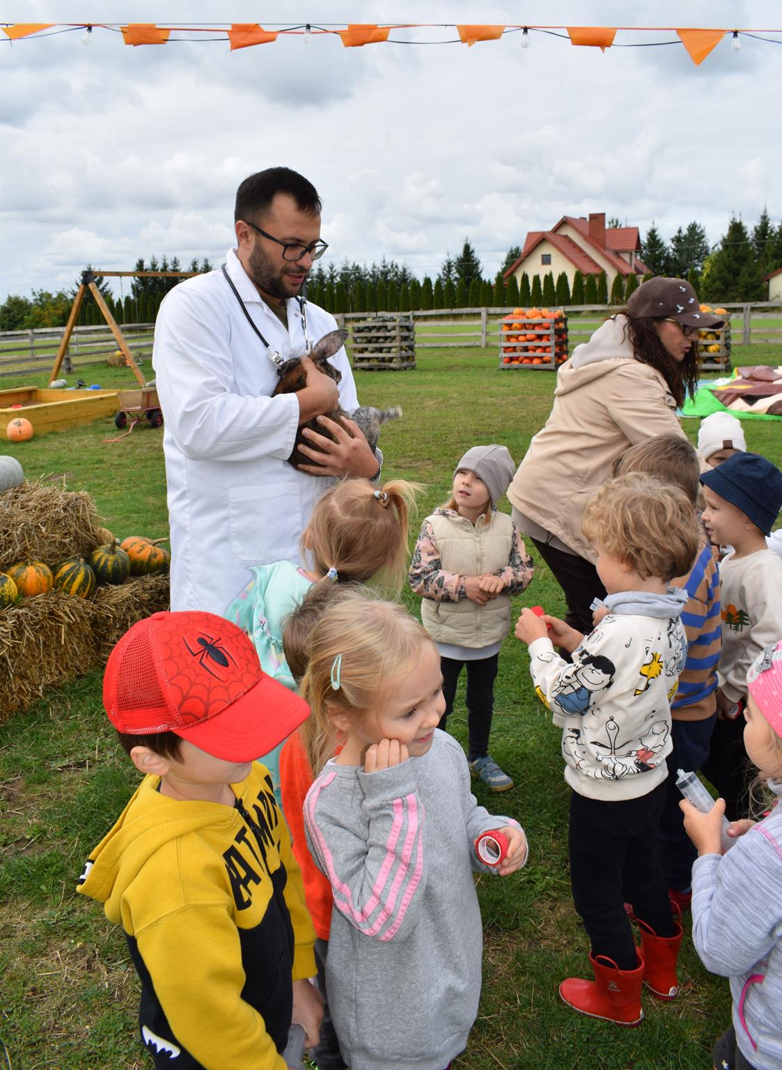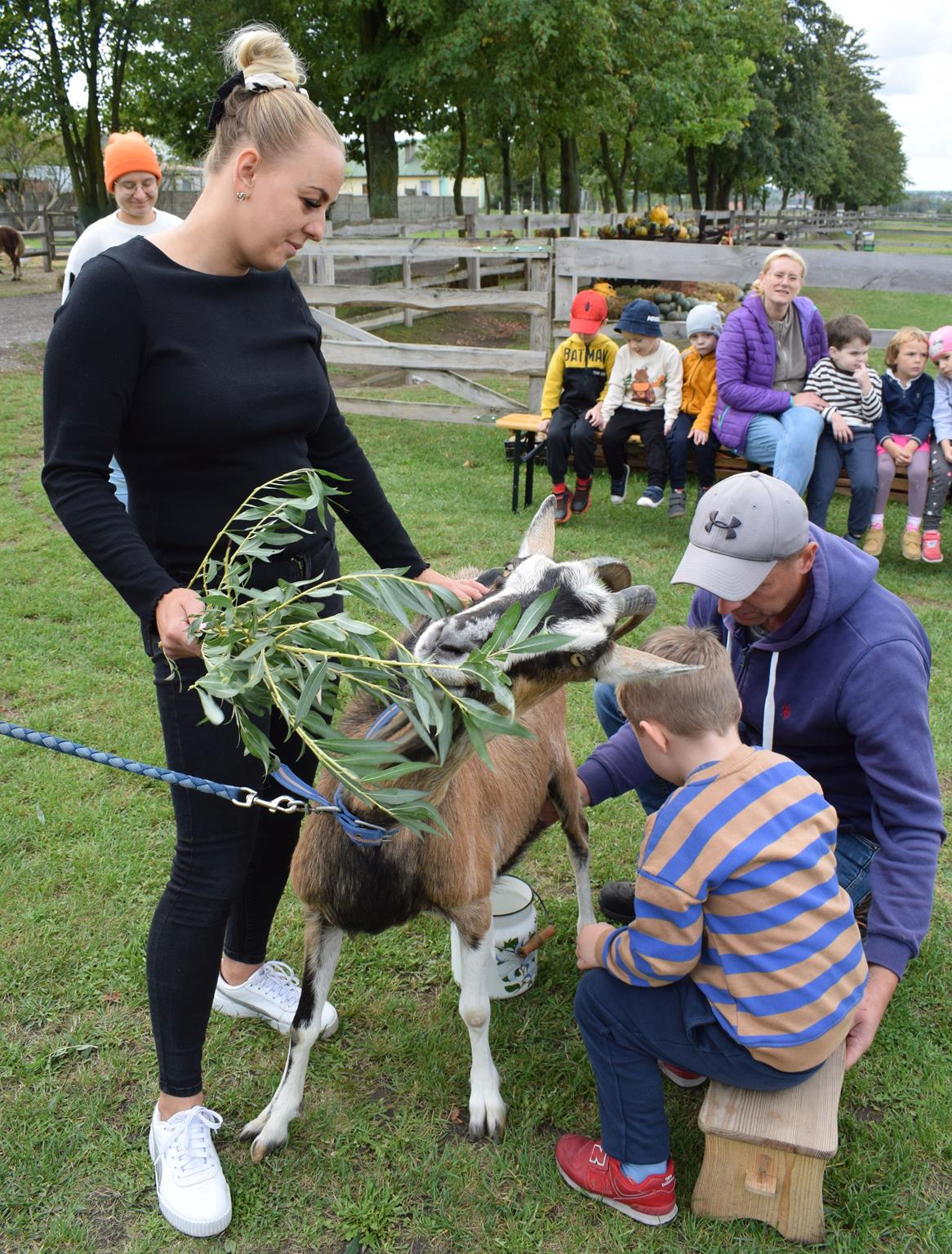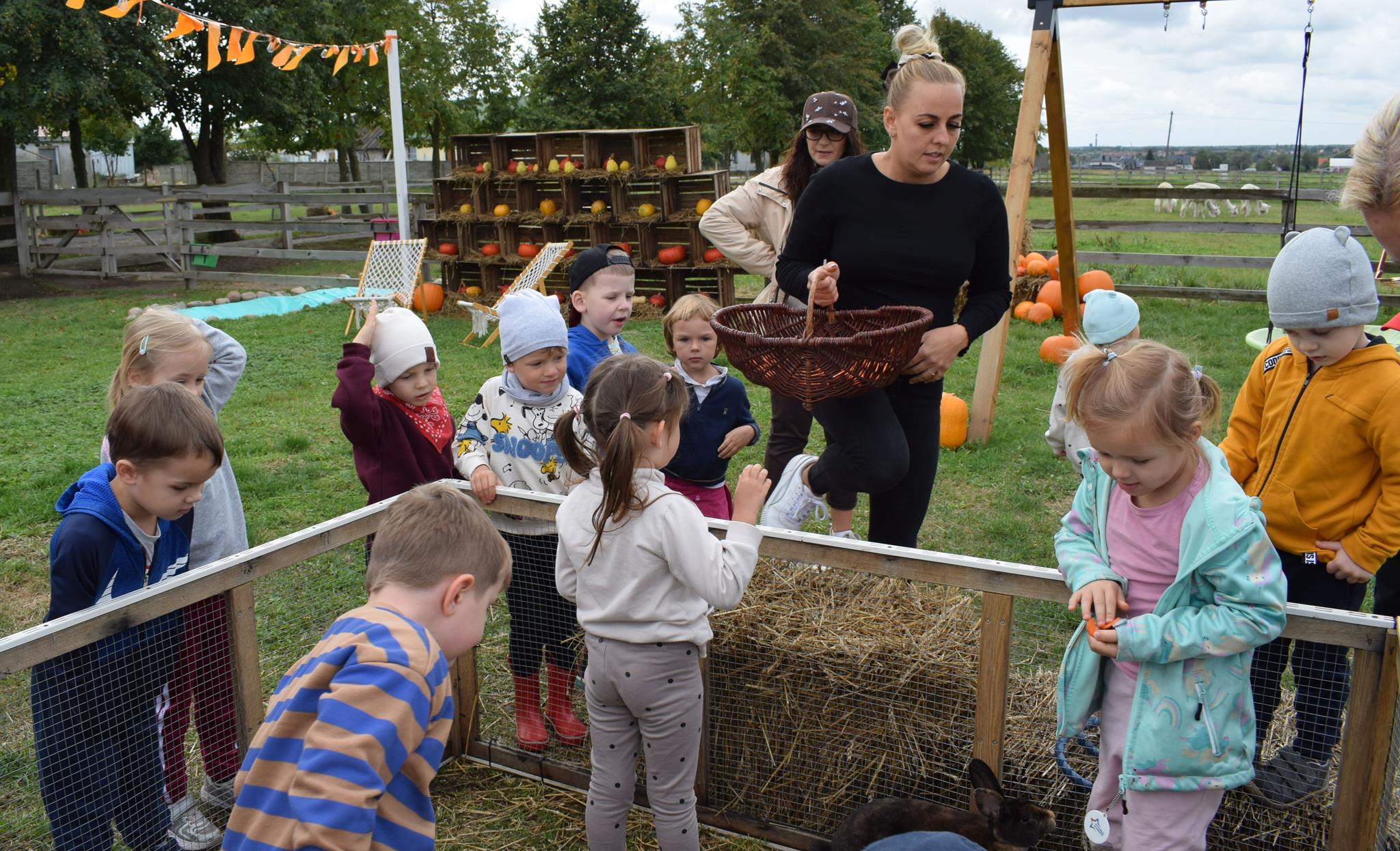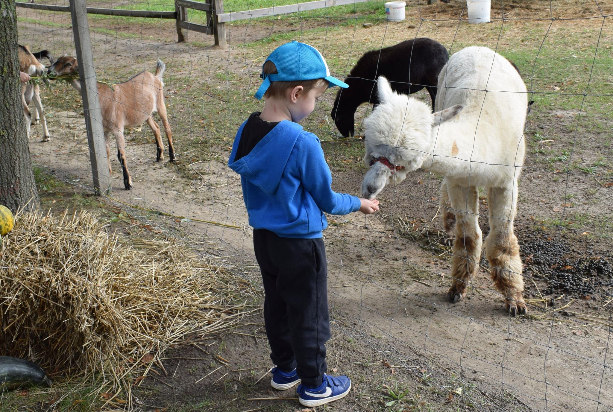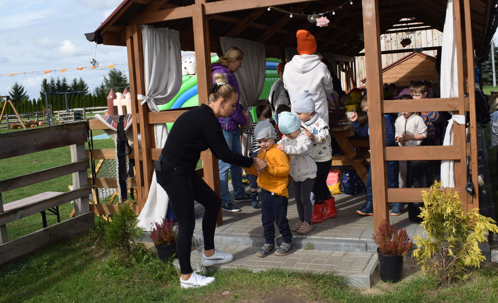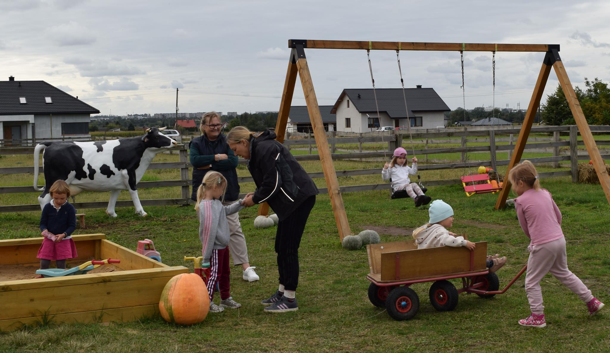 Na pierwszą wycieczkę w tym roku szkolnym wybraliśmy się do Farmy Wesołe Alpaki w miejscowości Żabokliki koło Siedlec. Najważniejszym punktem programu naszej wycieczki było spotkanie ze zwierzętami. Poznaliśmy mieszkańców farmy z bliska: alpaki, kozy, króliki, owce, osiołka, kucyka i kury. Uczyliśmy się, jak bezpiecznie i z szacunkiem obchodzić się ze zwierzątkami. Mogliśmy je pogłaskać, nakarmić, a także przytulić. Uczestniczyliśmy w jesiennych grach i zabawach, i kolejny raz przekonaliśmy się, że śmiech i ruch to najlepszy sposób na integrację! Miłych chwil doświadczyliśmy w trakcie oprowadzanek na kucyku, była to dla nas ważna lekcja zaufania do zwierząt. Dmuchańce – to prawdziwa frajda, to taka atrakcja, która nigdy się nam nie nudzi. Uczestniczyliśmy w zajęciach prowadzonych przez lekarza weterynarii. Dowiedzieliśmy się, jak wygląda praca ze zwierzętami „od kuchni”, zobaczyliśmy prawdziwe narzędzia lekarskie, mogliśmy także osłuchać serduszko kucyka. Gospodarzom farmy serdecznie dziękujemy za wszystkie atrakcje, ciekawe zajęcia, wspólną zabawę. Był to dla nas udany dzień i udana WYCIECZKA!