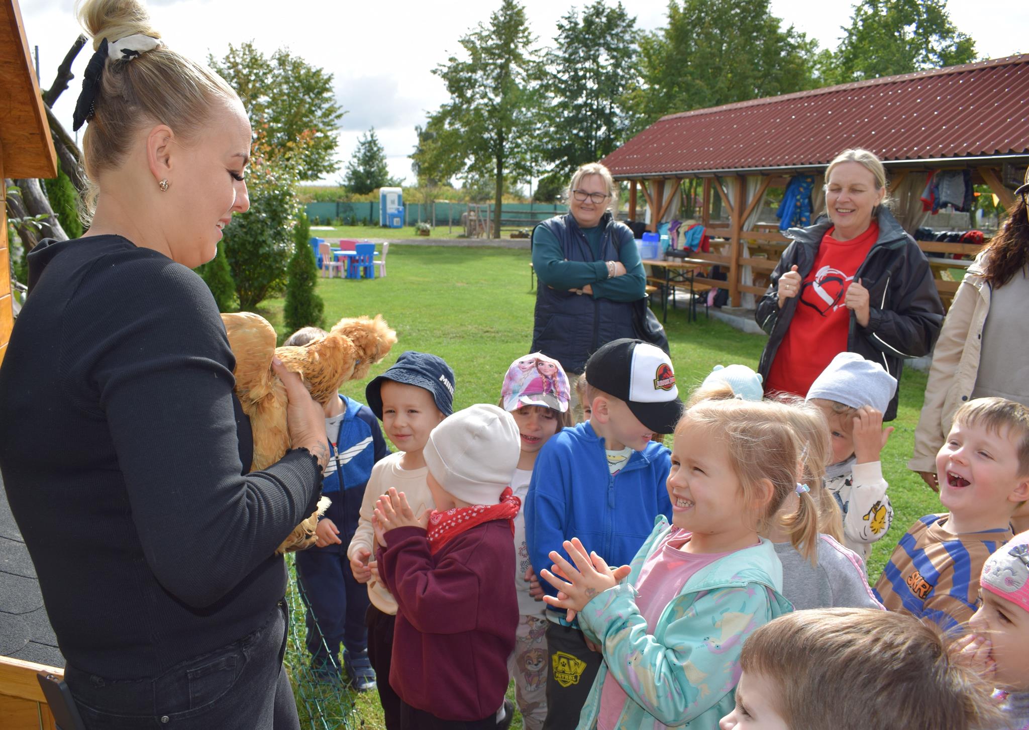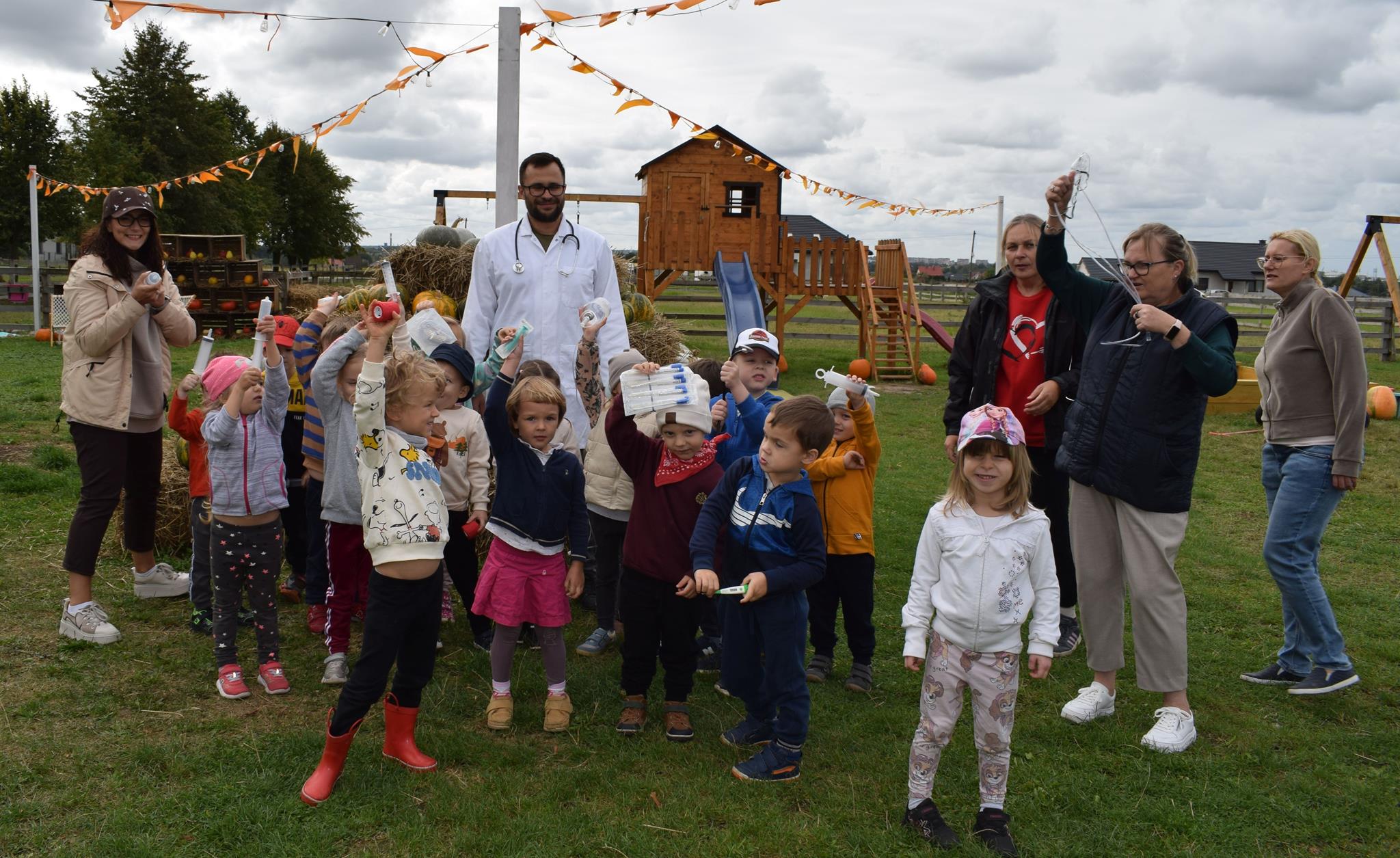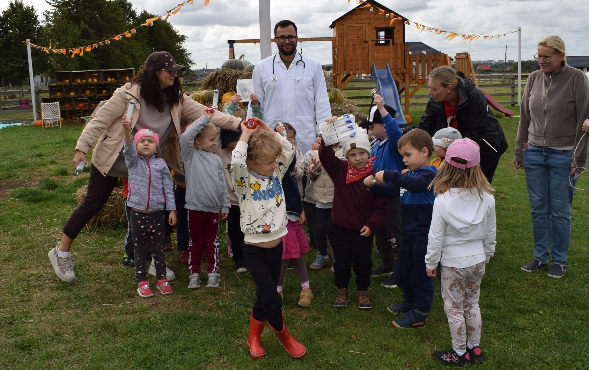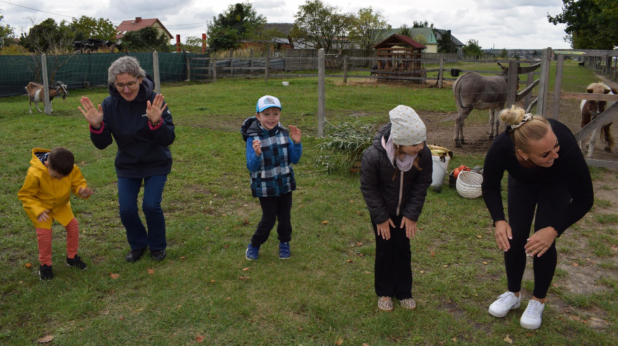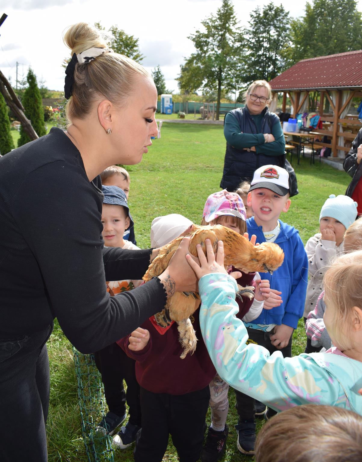 Na pierwszą wycieczkę w tym roku szkolnym wybraliśmy się do Farmy Wesołe Alpaki w miejscowości Żabokliki koło Siedlec. Najważniejszym punktem programu naszej wycieczki było spotkanie ze zwierzętami. Poznaliśmy mieszkańców farmy z bliska: alpaki, kozy, króliki, owce, osiołka, kucyka i kury. Uczyliśmy się, jak bezpiecznie i z szacunkiem obchodzić się ze zwierzątkami. Mogliśmy je pogłaskać, nakarmić, a także przytulić. Uczestniczyliśmy w jesiennych grach i zabawach, i kolejny raz przekonaliśmy się, że śmiech i ruch to najlepszy sposób na integrację! Miłych chwil doświadczyliśmy w trakcie oprowadzanek na kucyku, była to dla nas ważna lekcja zaufania do zwierząt. Dmuchańce – to prawdziwa frajda, to taka atrakcja, która nigdy się nam nie nudzi. Uczestniczyliśmy w zajęciach prowadzonych przez lekarza weterynarii. Dowiedzieliśmy się, jak wygląda praca ze zwierzętami „od kuchni”, zobaczyliśmy prawdziwe narzędzia lekarskie, mogliśmy także osłuchać serduszko kucyka. Gospodarzom farmy serdecznie dziękujemy za wszystkie atrakcje, ciekawe zajęcia, wspólną zabawę. Był to dla nas udany dzień i udana WYCIECZKA!
