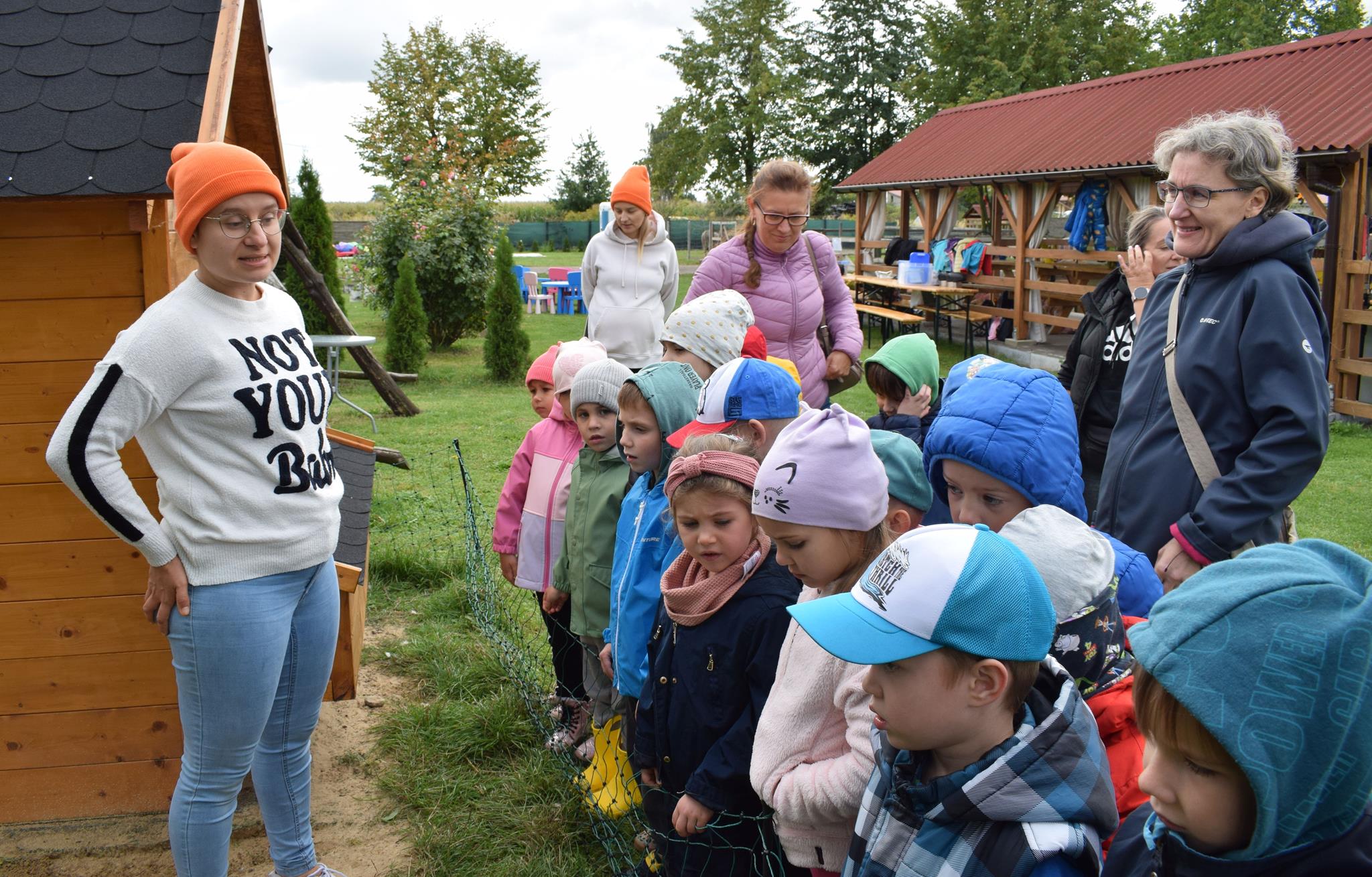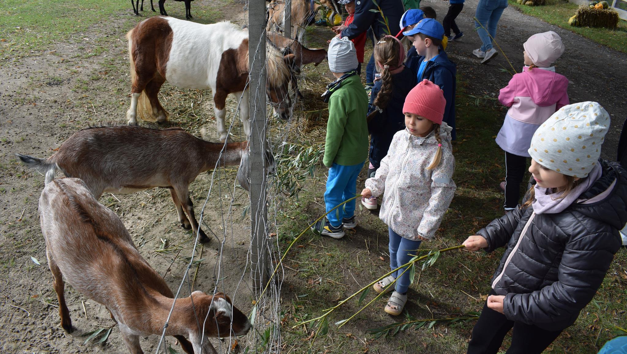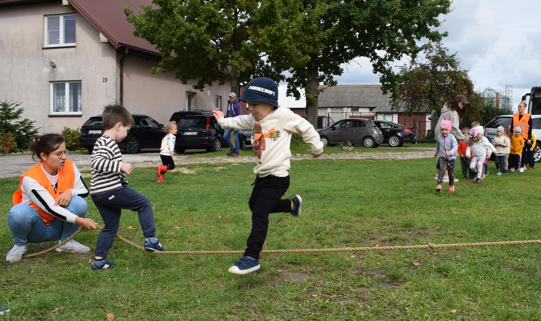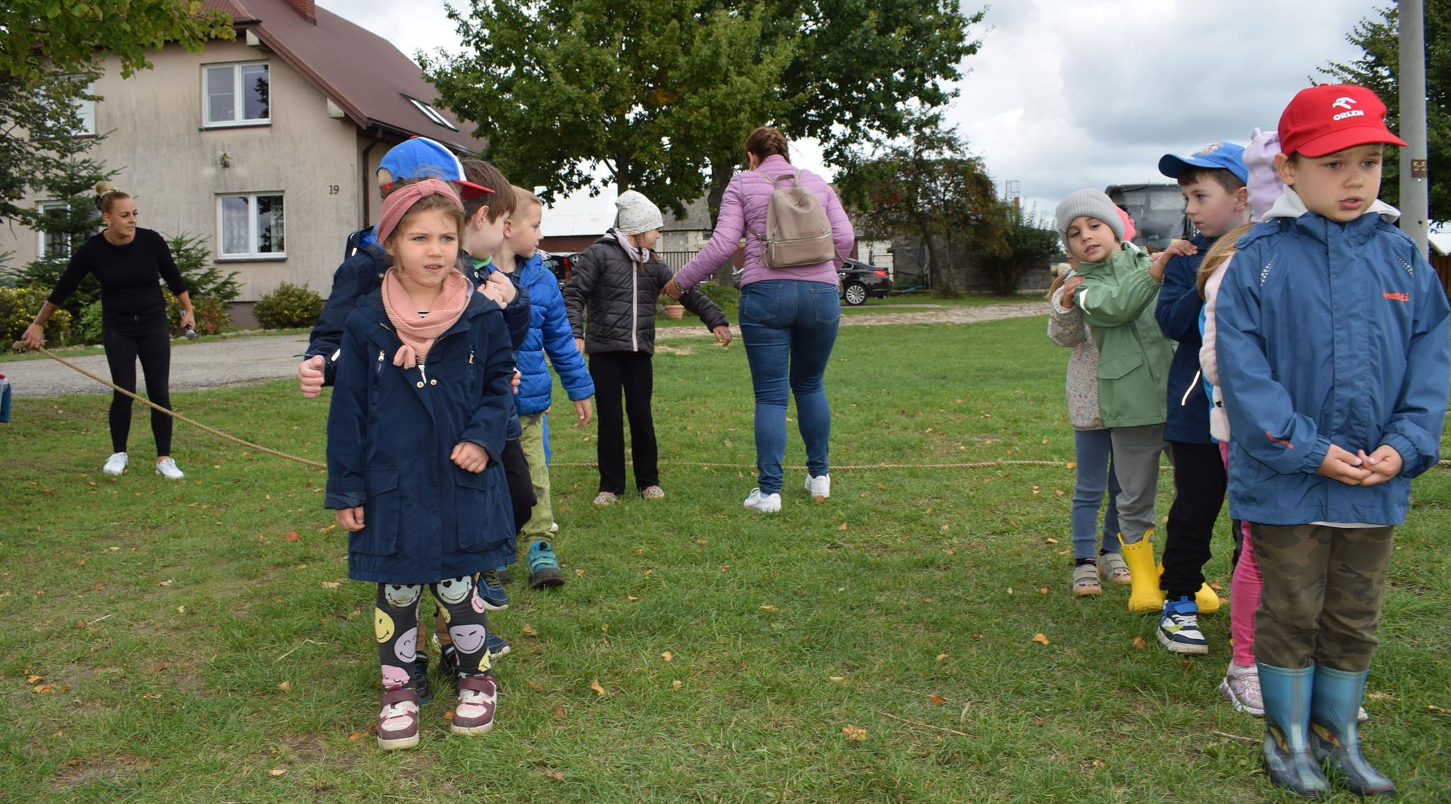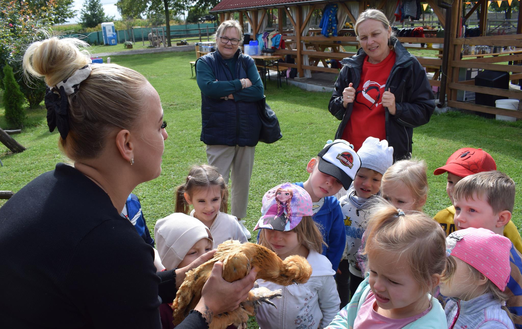 Na pierwszą wycieczkę w tym roku szkolnym wybraliśmy się do Farmy Wesołe Alpaki w miejscowości Żabokliki koło Siedlec. Najważniejszym punktem programu naszej wycieczki było spotkanie ze zwierzętami. Poznaliśmy mieszkańców farmy z bliska: alpaki, kozy, króliki, owce, osiołka, kucyka i kury. Uczyliśmy się, jak bezpiecznie i z szacunkiem obchodzić się ze zwierzątkami. Mogliśmy je pogłaskać, nakarmić, a także przytulić. Uczestniczyliśmy w jesiennych grach i zabawach, i kolejny raz przekonaliśmy się, że śmiech i ruch to najlepszy sposób na integrację! Miłych chwil doświadczyliśmy w trakcie oprowadzanek na kucyku, była to dla nas ważna lekcja zaufania do zwierząt. Dmuchańce – to prawdziwa frajda, to taka atrakcja, która nigdy się nam nie nudzi. Uczestniczyliśmy w zajęciach prowadzonych przez lekarza weterynarii. Dowiedzieliśmy się, jak wygląda praca ze zwierzętami „od kuchni”, zobaczyliśmy prawdziwe narzędzia lekarskie, mogliśmy także osłuchać serduszko kucyka. Gospodarzom farmy serdecznie dziękujemy za wszystkie atrakcje, ciekawe zajęcia, wspólną zabawę. Był to dla nas udany dzień i udana WYCIECZKA!