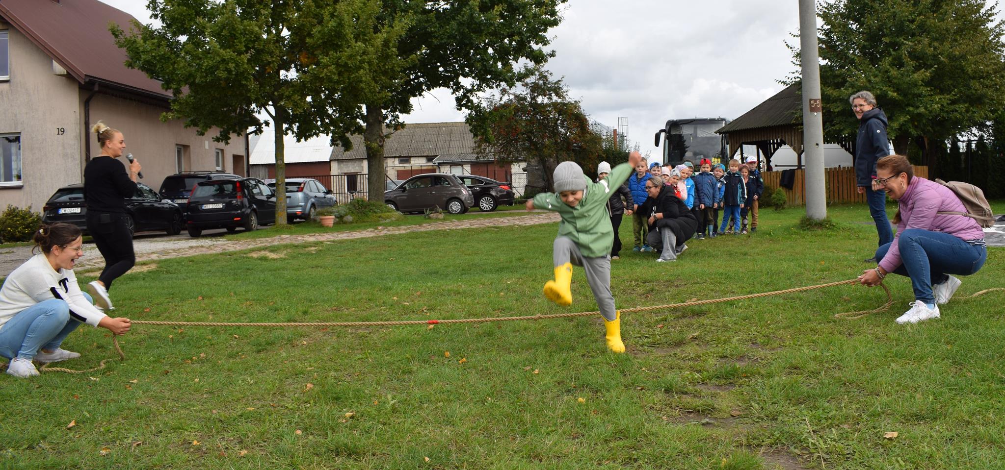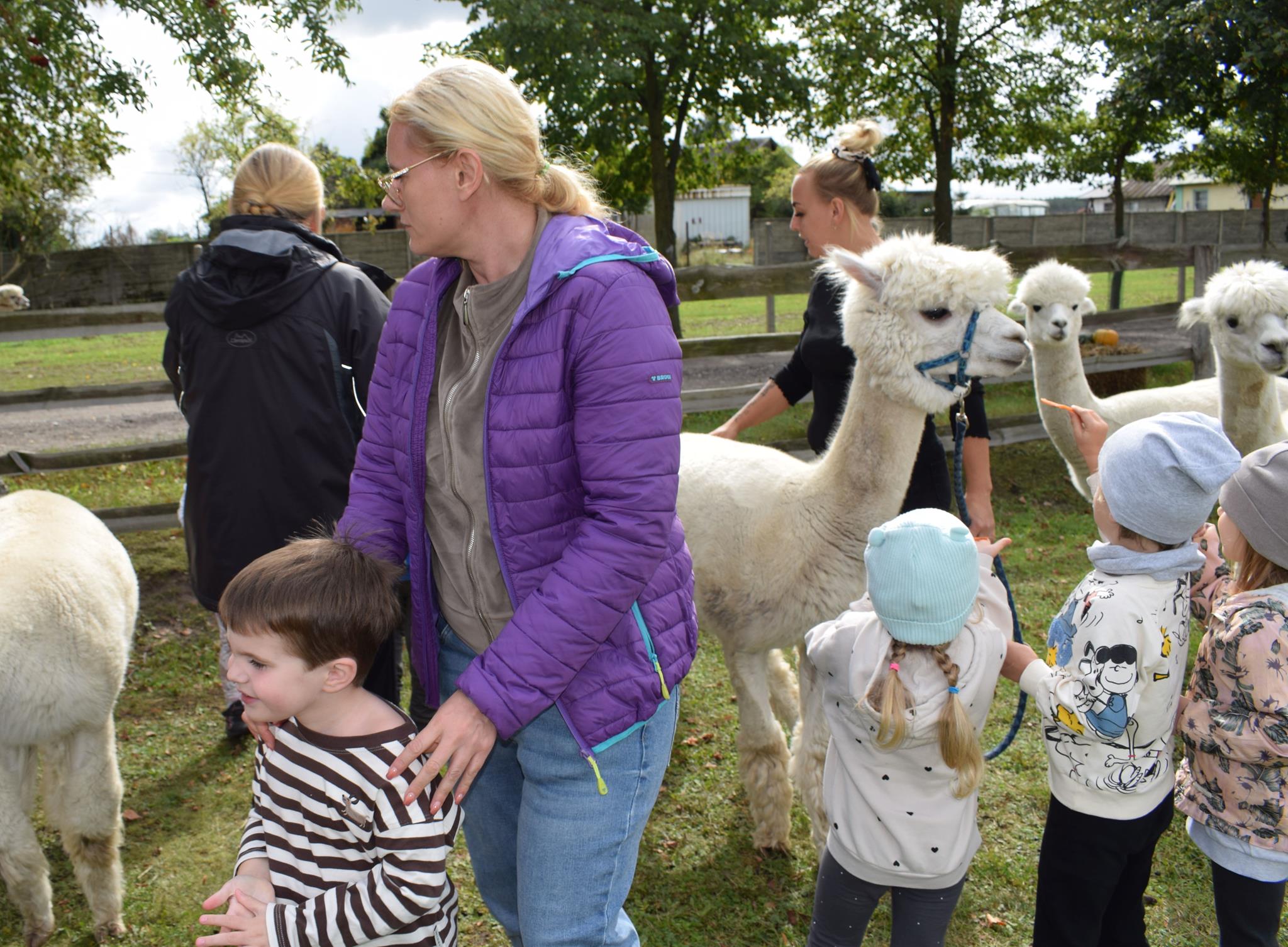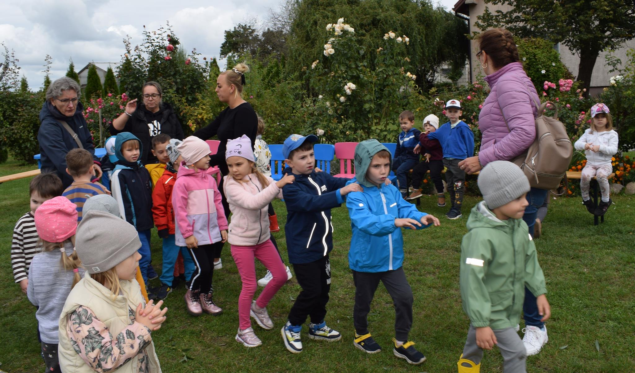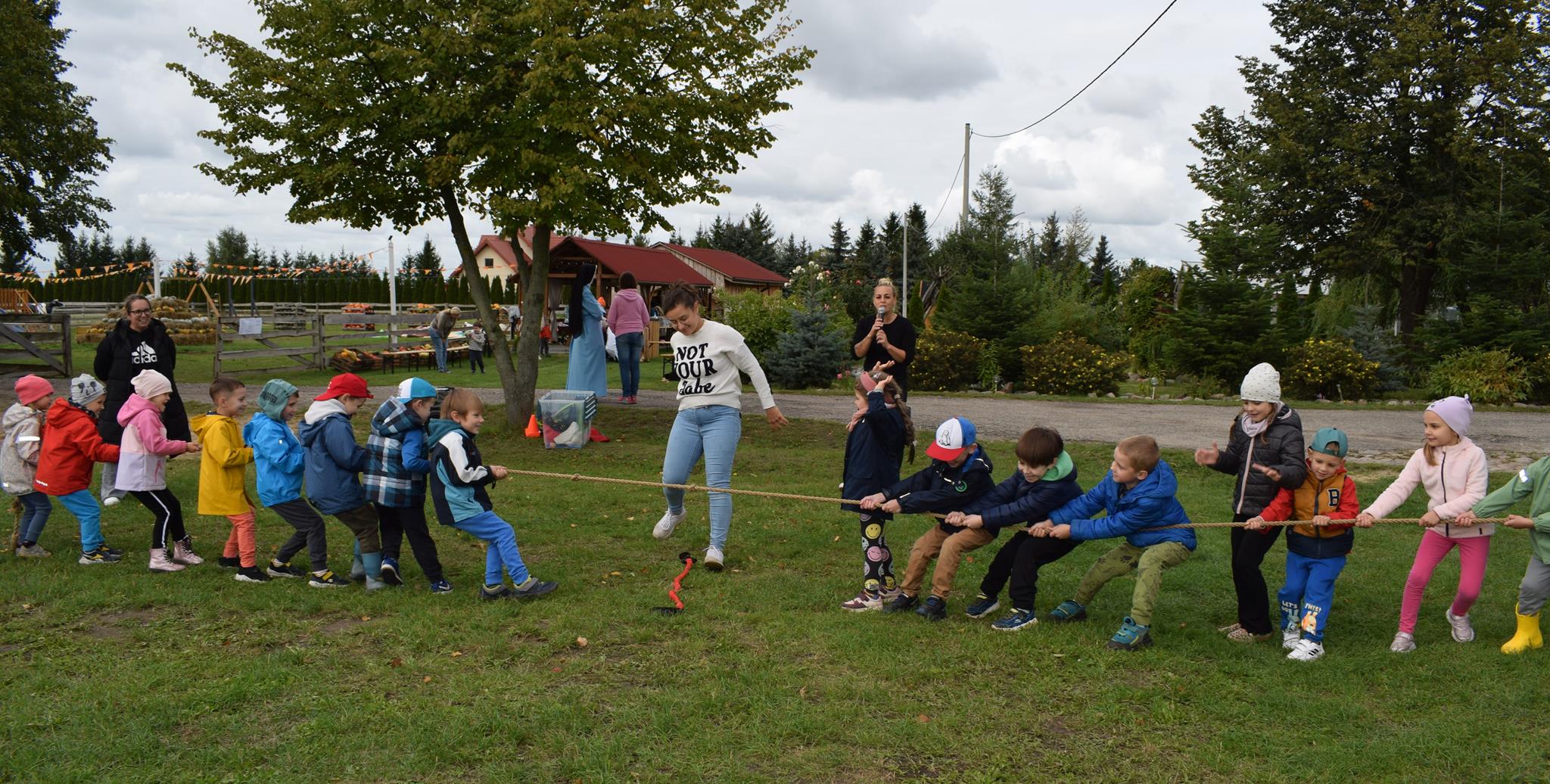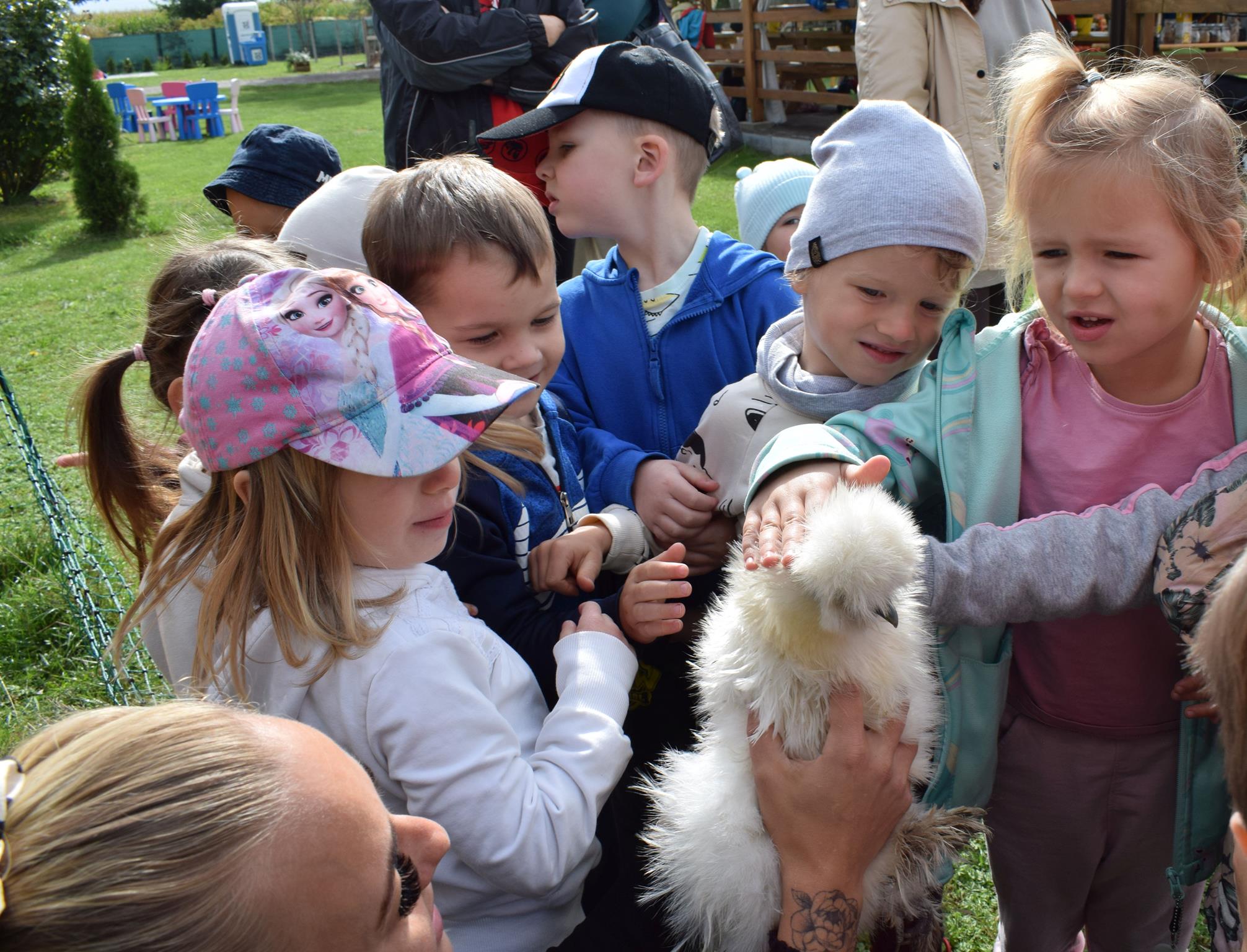 Na pierwszą wycieczkę w tym roku szkolnym wybraliśmy się do Farmy Wesołe Alpaki w miejscowości Żabokliki koło Siedlec. Najważniejszym punktem programu naszej wycieczki było spotkanie ze zwierzętami. Poznaliśmy mieszkańców farmy z bliska: alpaki, kozy, króliki, owce, osiołka, kucyka i kury. Uczyliśmy się, jak bezpiecznie i z szacunkiem obchodzić się ze zwierzątkami. Mogliśmy je pogłaskać, nakarmić, a także przytulić. Uczestniczyliśmy w jesiennych grach i zabawach, i kolejny raz przekonaliśmy się, że śmiech i ruch to najlepszy sposób na integrację! Miłych chwil doświadczyliśmy w trakcie oprowadzanek na kucyku, była to dla nas ważna lekcja zaufania do zwierząt. Dmuchańce – to prawdziwa frajda, to taka atrakcja, która nigdy się nam nie nudzi. Uczestniczyliśmy w zajęciach prowadzonych przez lekarza weterynarii. Dowiedzieliśmy się, jak wygląda praca ze zwierzętami „od kuchni”, zobaczyliśmy prawdziwe narzędzia lekarskie, mogliśmy także osłuchać serduszko kucyka. Gospodarzom farmy serdecznie dziękujemy za wszystkie atrakcje, ciekawe zajęcia, wspólną zabawę. Był to dla nas udany dzień i udana WYCIECZKA!