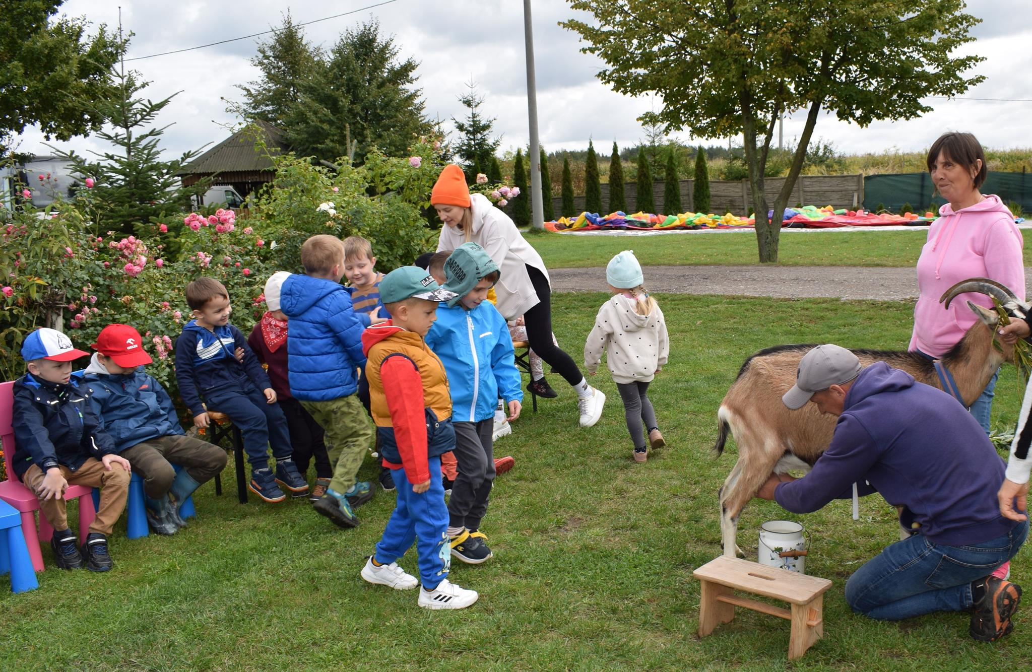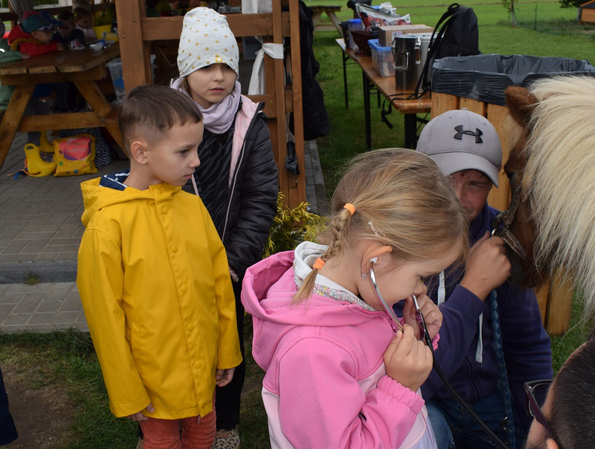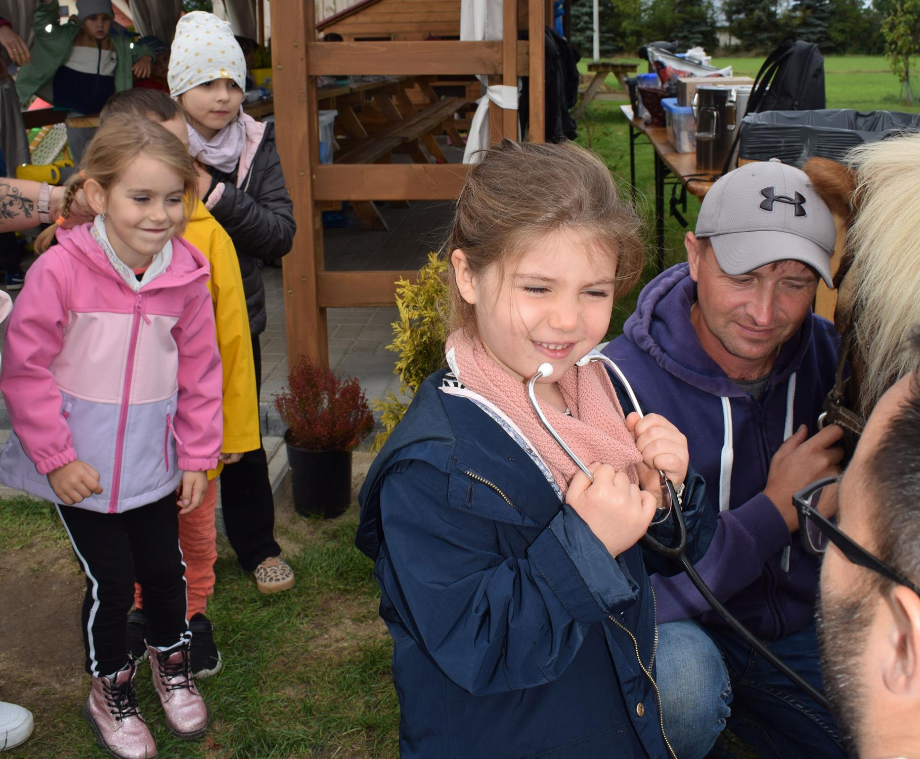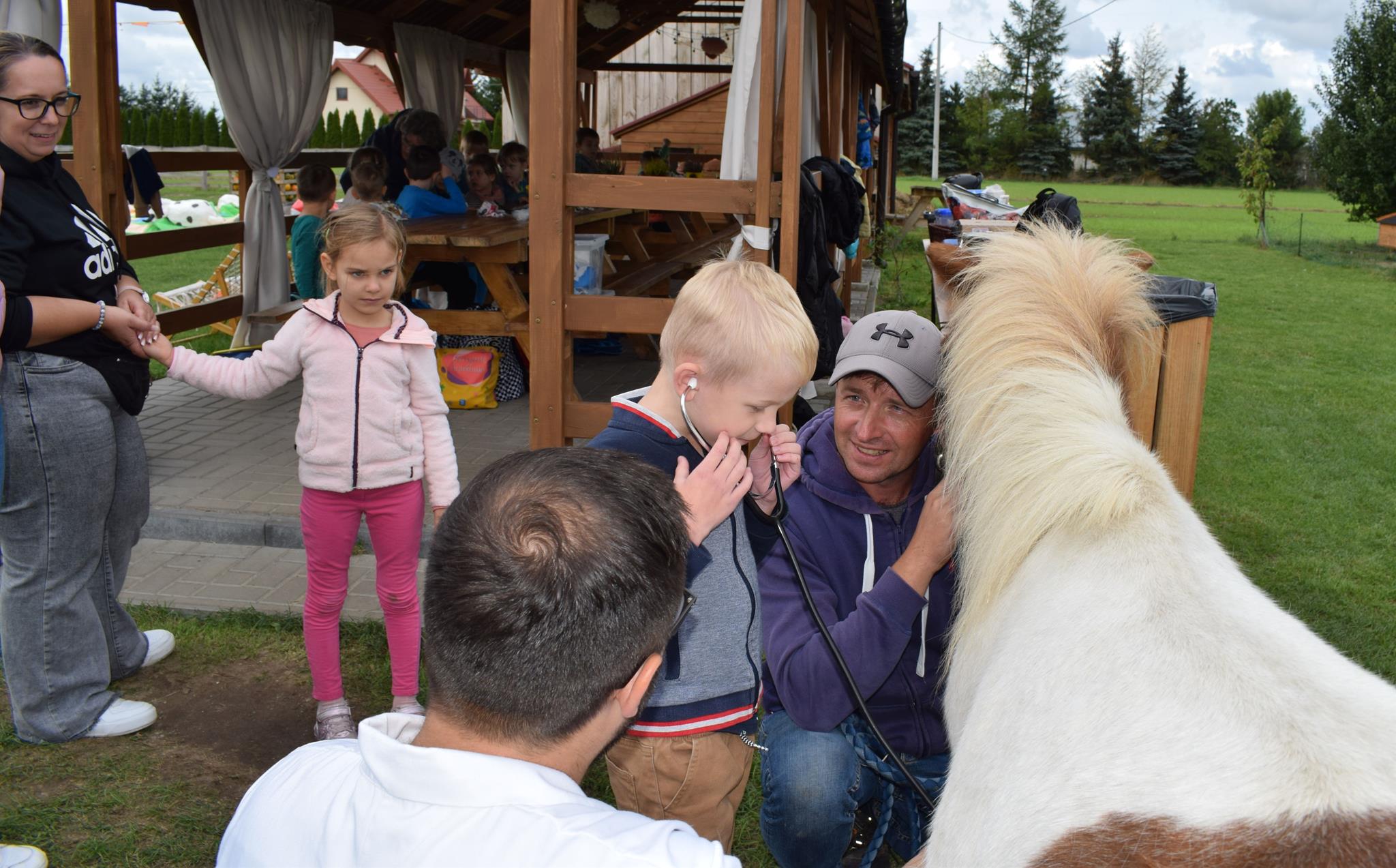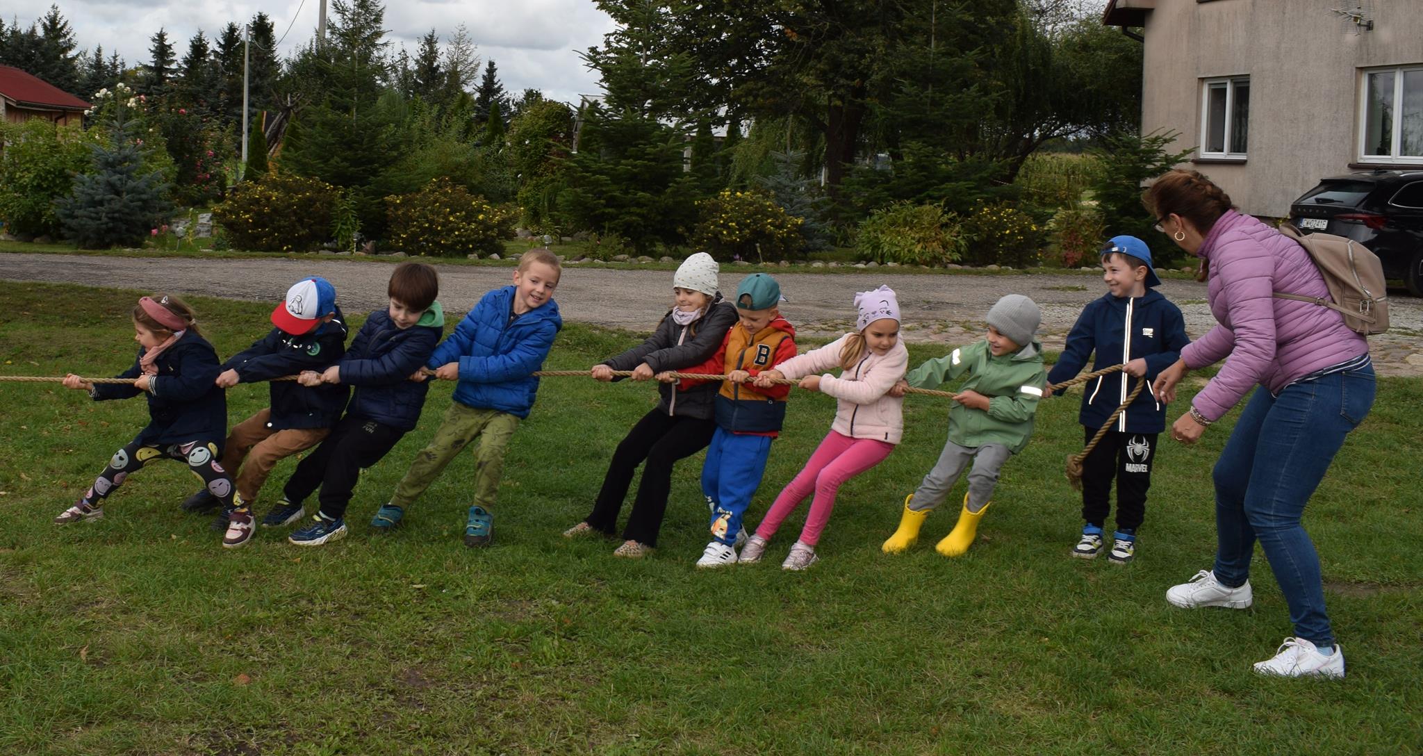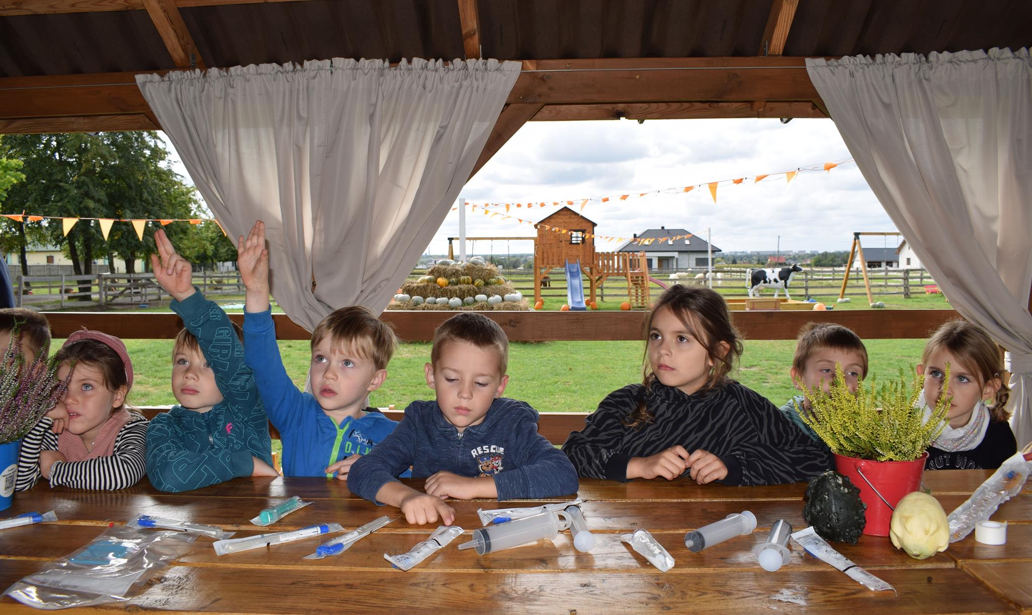 Na pierwszą wycieczkę w tym roku szkolnym wybraliśmy się do Farmy Wesołe Alpaki w miejscowości Żabokliki koło Siedlec. Najważniejszym punktem programu naszej wycieczki było spotkanie ze zwierzętami. Poznaliśmy mieszkańców farmy z bliska: alpaki, kozy, króliki, owce, osiołka, kucyka i kury. Uczyliśmy się, jak bezpiecznie i z szacunkiem obchodzić się ze zwierzątkami. Mogliśmy je pogłaskać, nakarmić, a także przytulić. Uczestniczyliśmy w jesiennych grach i zabawach, i kolejny raz przekonaliśmy się, że śmiech i ruch to najlepszy sposób na integrację! Miłych chwil doświadczyliśmy w trakcie oprowadzanek na kucyku, była to dla nas ważna lekcja zaufania do zwierząt. Dmuchańce – to prawdziwa frajda, to taka atrakcja, która nigdy się nam nie nudzi. Uczestniczyliśmy w zajęciach prowadzonych przez lekarza weterynarii. Dowiedzieliśmy się, jak wygląda praca ze zwierzętami „od kuchni”, zobaczyliśmy prawdziwe narzędzia lekarskie, mogliśmy także osłuchać serduszko kucyka. Gospodarzom farmy serdecznie dziękujemy za wszystkie atrakcje, ciekawe zajęcia, wspólną zabawę. Był to dla nas udany dzień i udana WYCIECZKA!