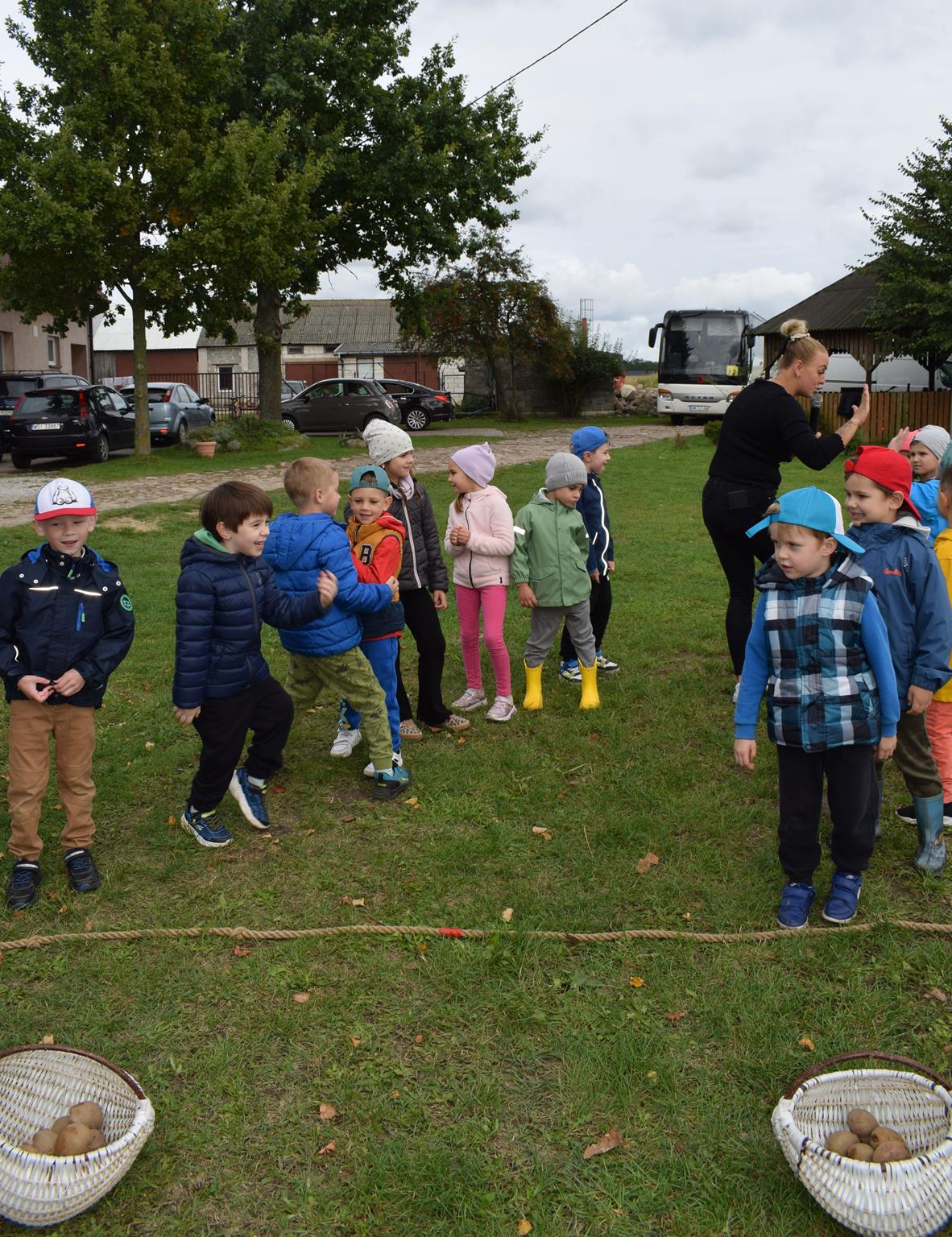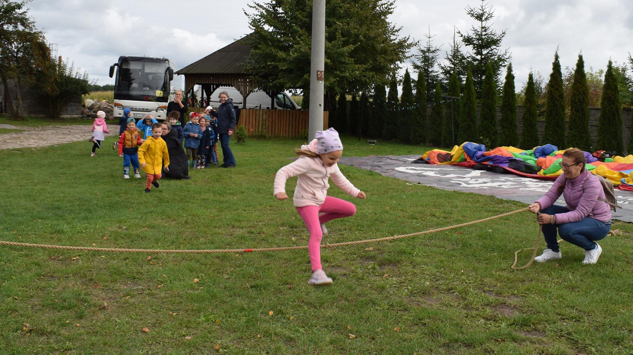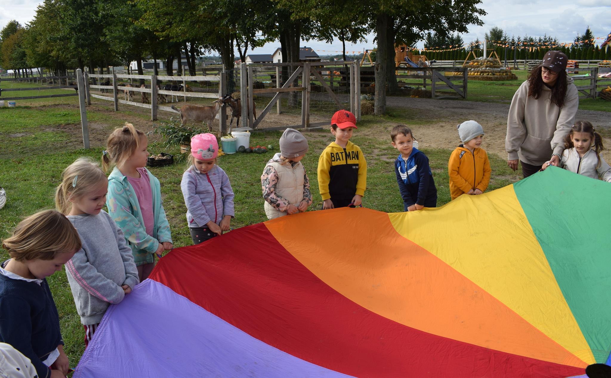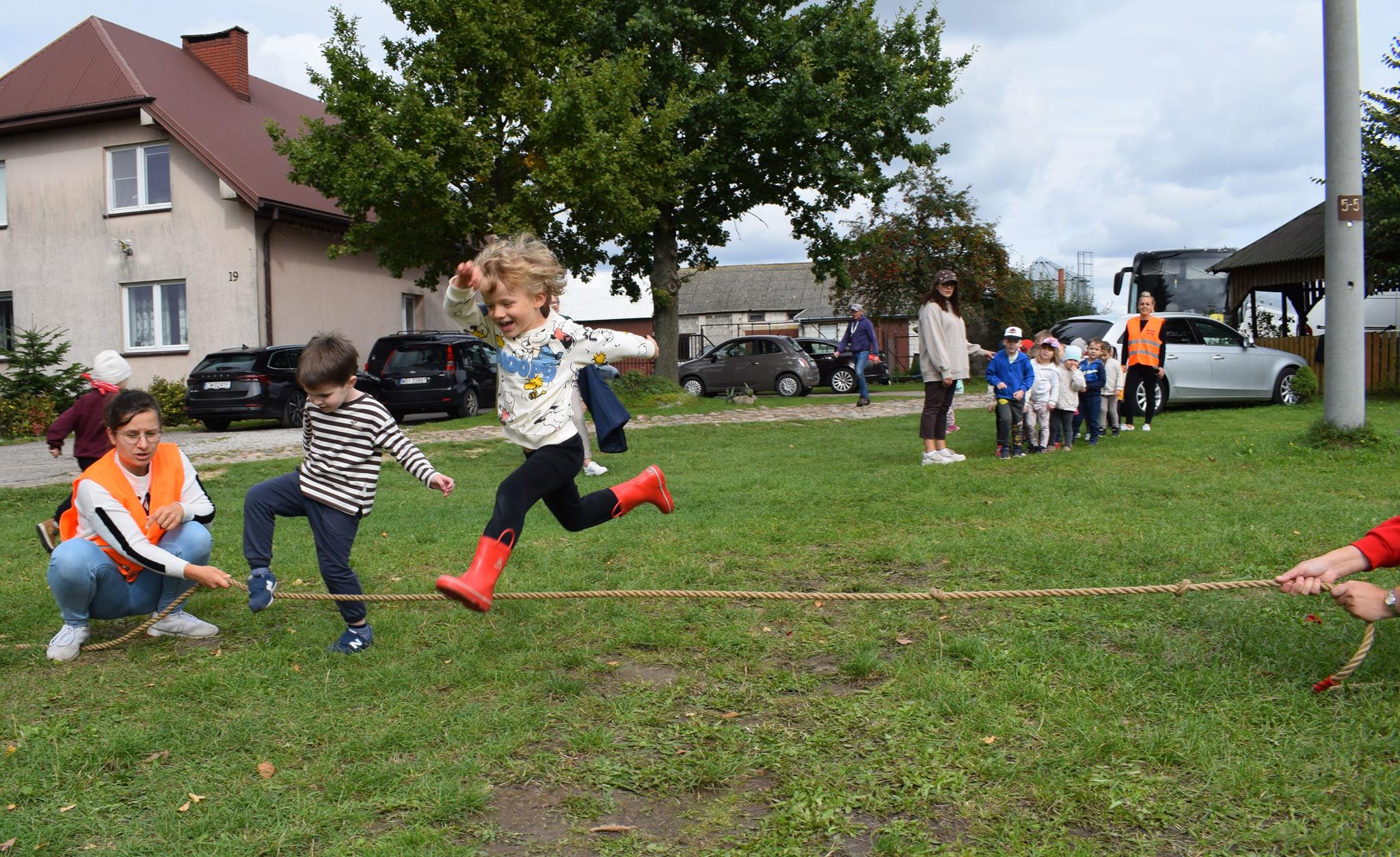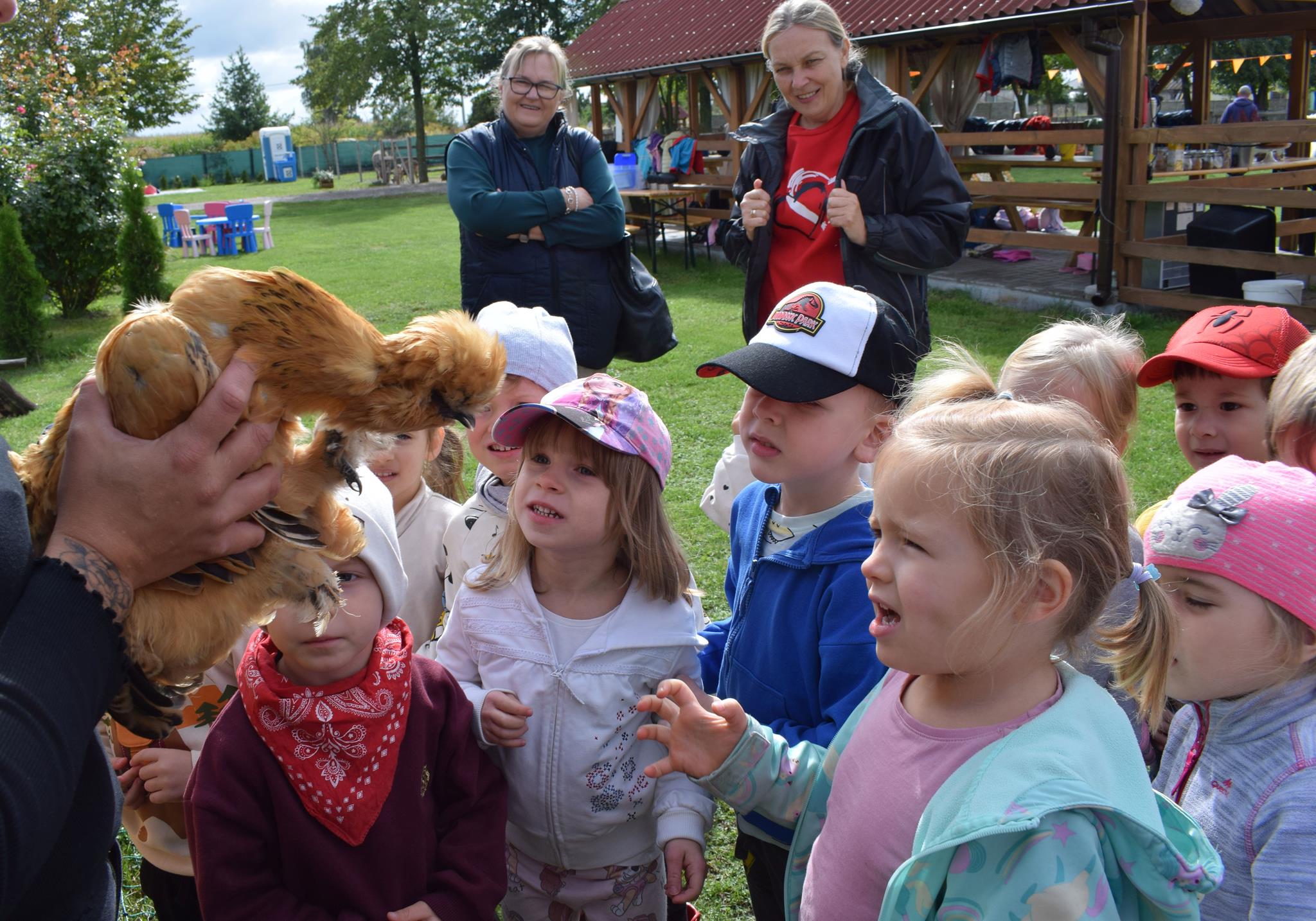 Na pierwszą wycieczkę w tym roku szkolnym wybraliśmy się do Farmy Wesołe Alpaki w miejscowości Żabokliki koło Siedlec. Najważniejszym punktem programu naszej wycieczki było spotkanie ze zwierzętami. Poznaliśmy mieszkańców farmy z bliska: alpaki, kozy, króliki, owce, osiołka, kucyka i kury. Uczyliśmy się, jak bezpiecznie i z szacunkiem obchodzić się ze zwierzątkami. Mogliśmy je pogłaskać, nakarmić, a także przytulić. Uczestniczyliśmy w jesiennych grach i zabawach, i kolejny raz przekonaliśmy się, że śmiech i ruch to najlepszy sposób na integrację! Miłych chwil doświadczyliśmy w trakcie oprowadzanek na kucyku, była to dla nas ważna lekcja zaufania do zwierząt. Dmuchańce – to prawdziwa frajda, to taka atrakcja, która nigdy się nam nie nudzi. Uczestniczyliśmy w zajęciach prowadzonych przez lekarza weterynarii. Dowiedzieliśmy się, jak wygląda praca ze zwierzętami „od kuchni”, zobaczyliśmy prawdziwe narzędzia lekarskie, mogliśmy także osłuchać serduszko kucyka. Gospodarzom farmy serdecznie dziękujemy za wszystkie atrakcje, ciekawe zajęcia, wspólną zabawę. Był to dla nas udany dzień i udana WYCIECZKA!
