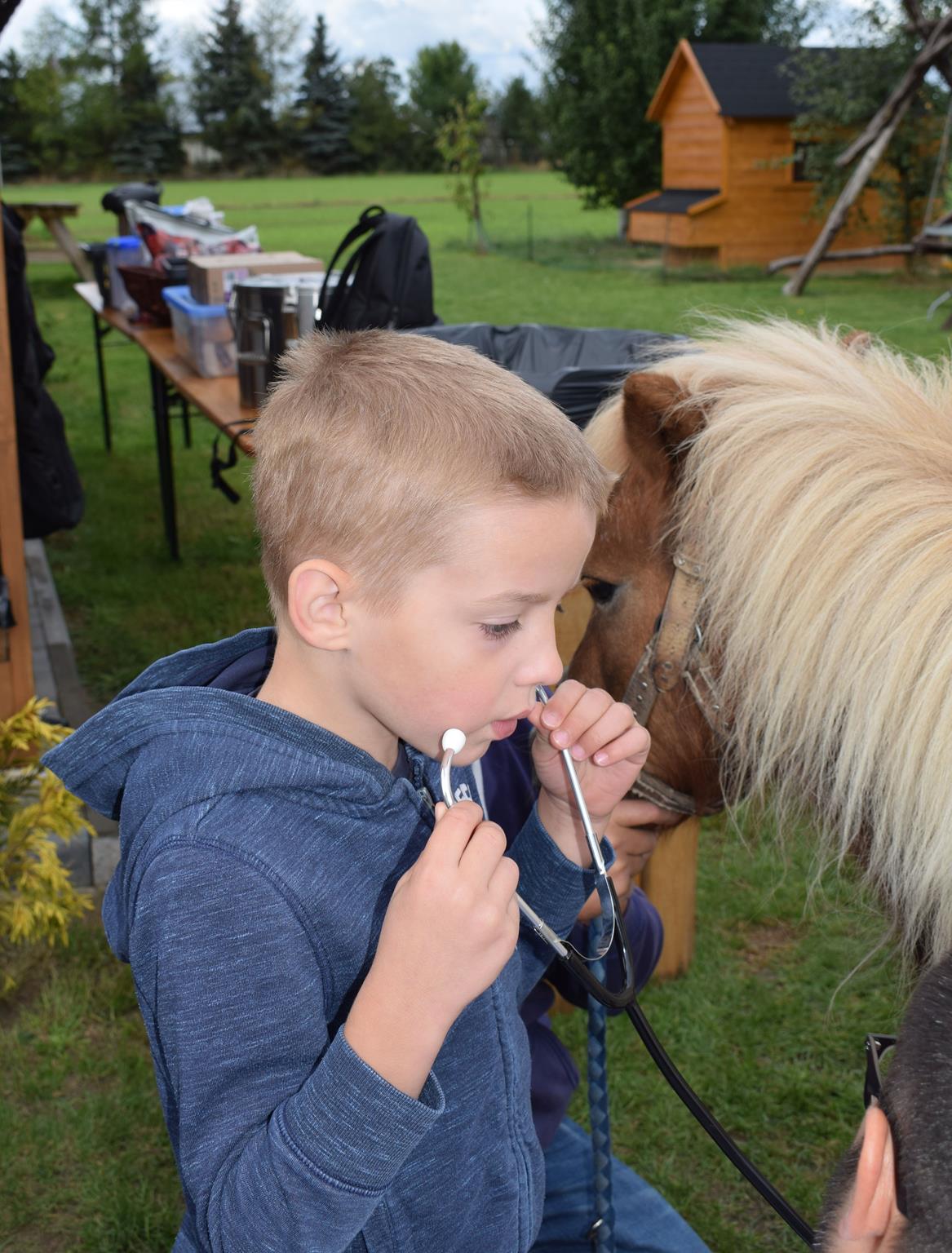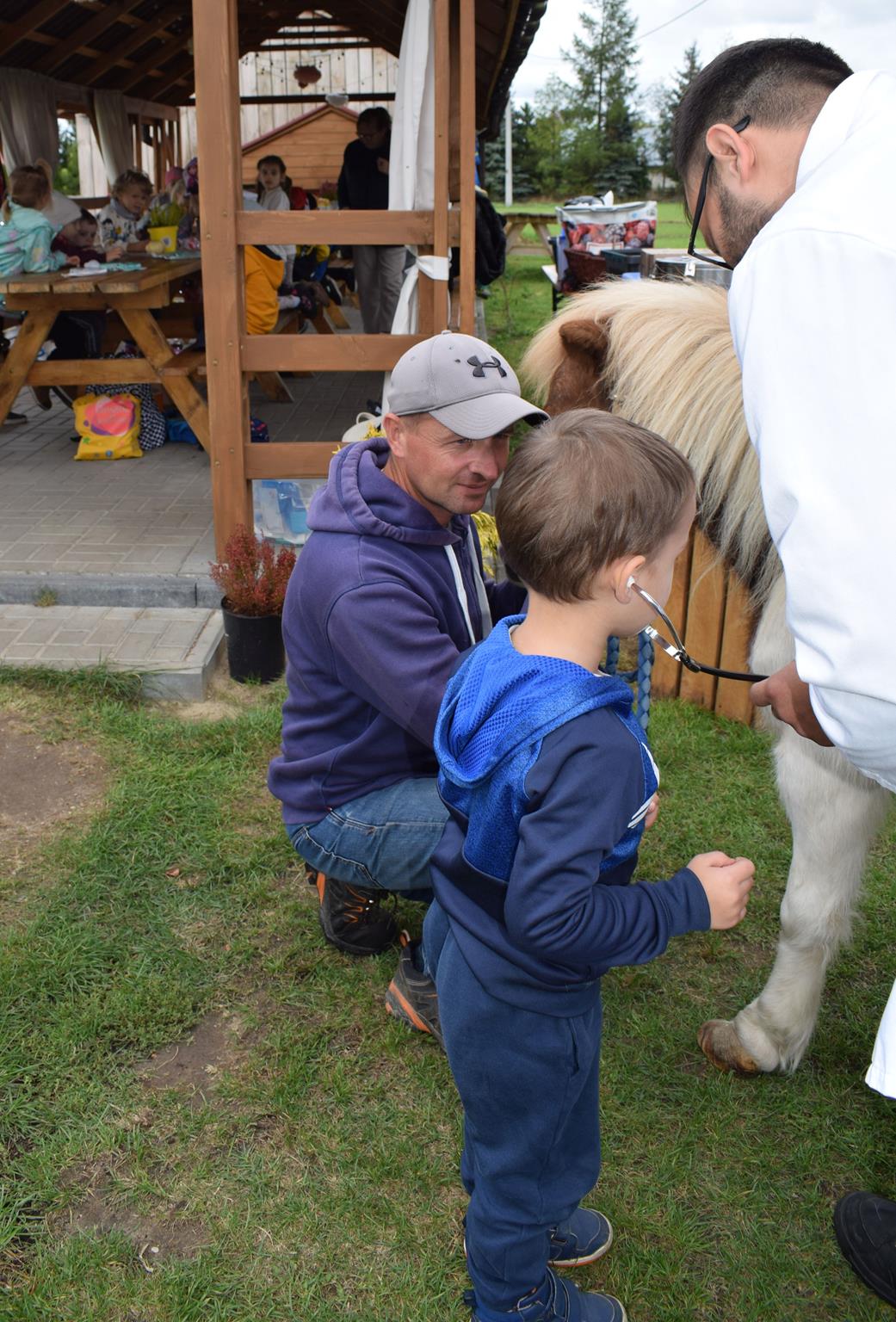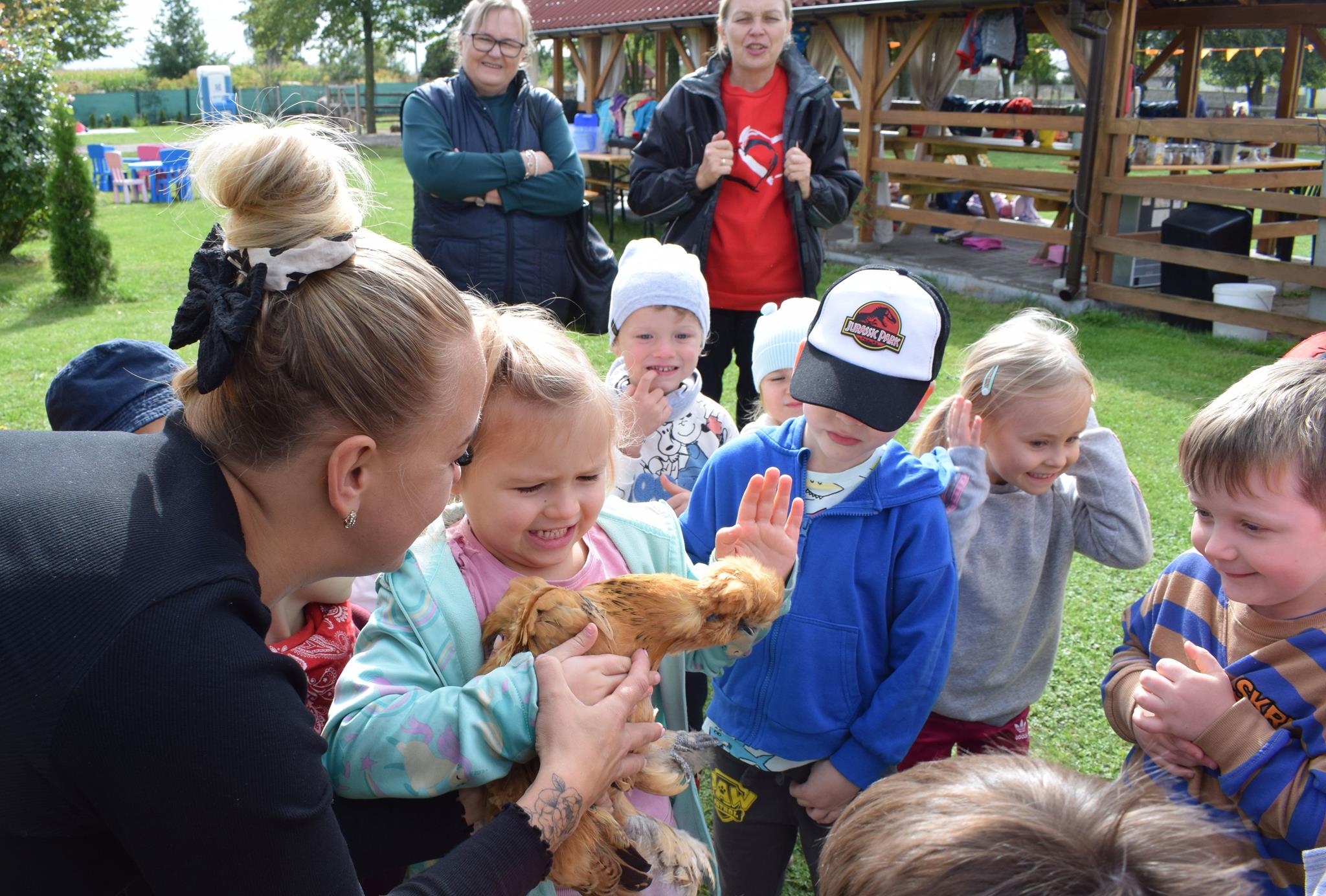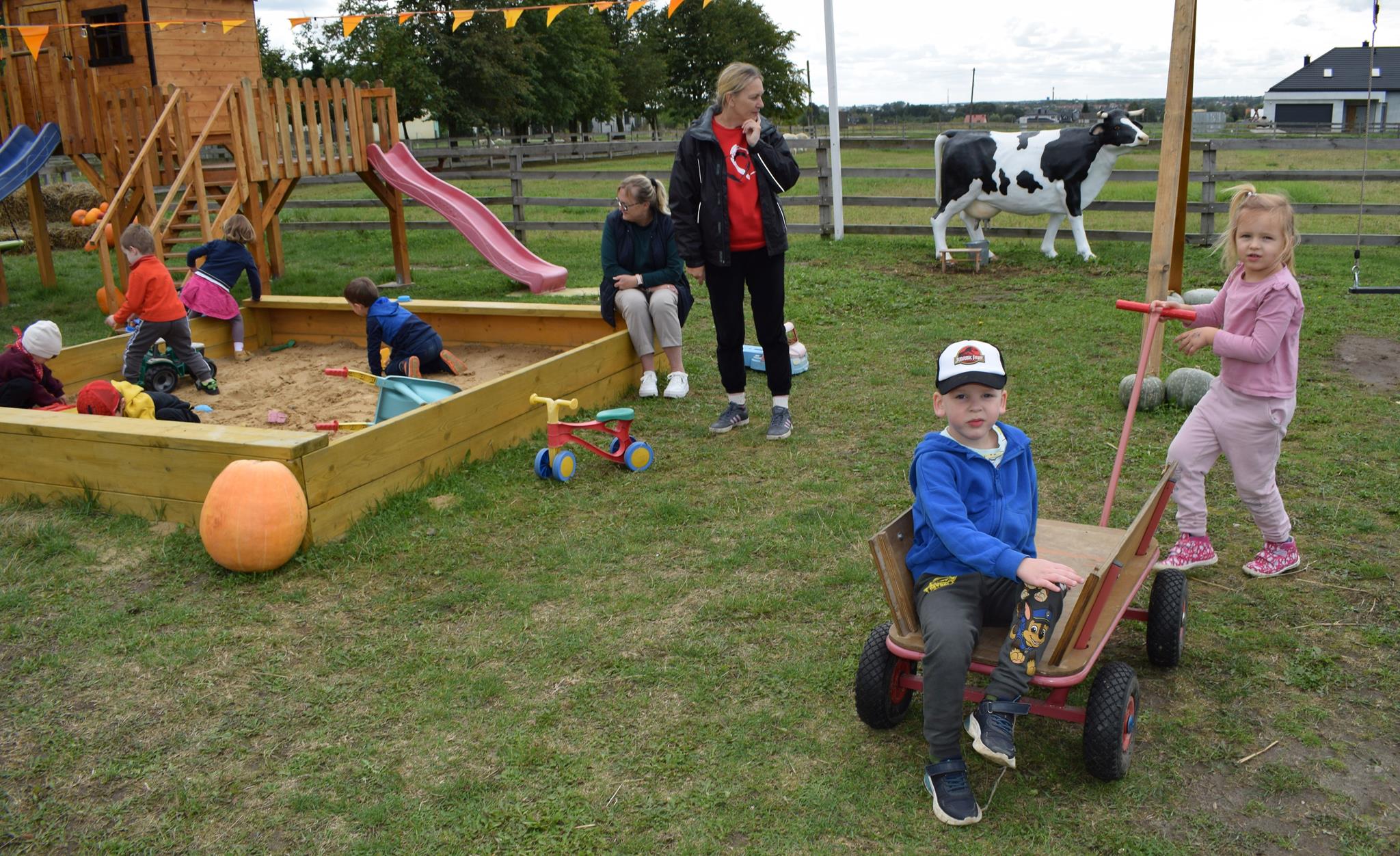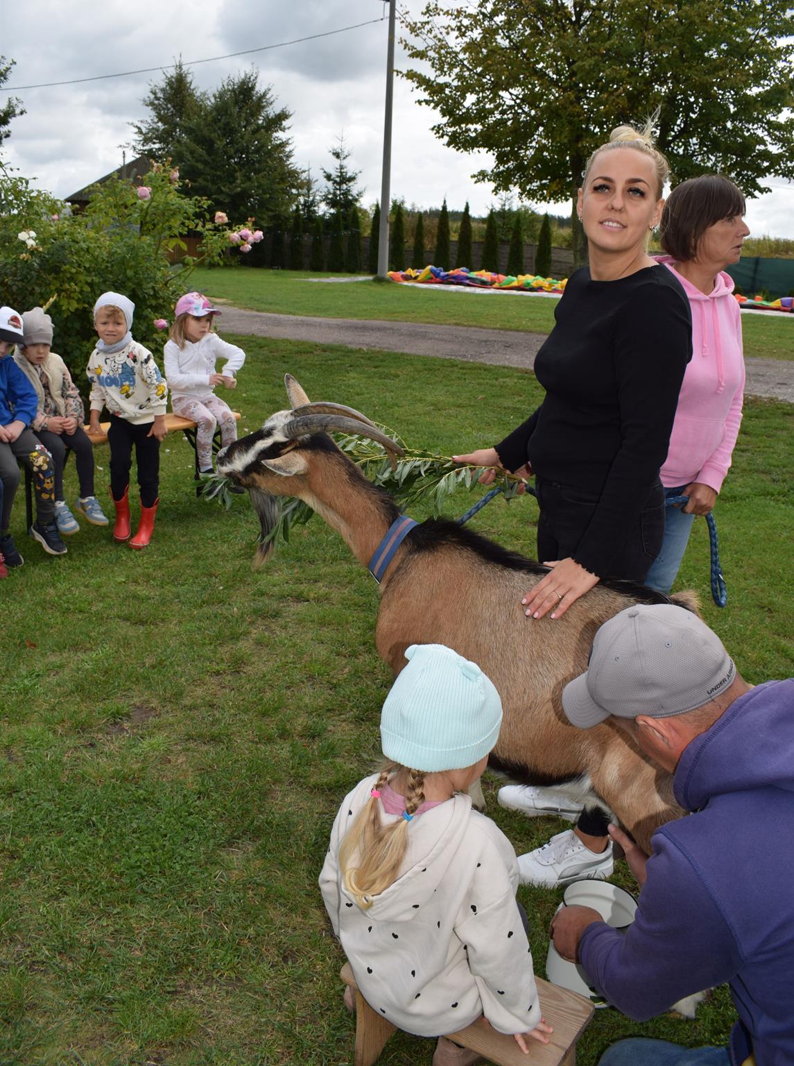 Na pierwszą wycieczkę w tym roku szkolnym wybraliśmy się do Farmy Wesołe Alpaki w miejscowości Żabokliki koło Siedlec. Najważniejszym punktem programu naszej wycieczki było spotkanie ze zwierzętami. Poznaliśmy mieszkańców farmy z bliska: alpaki, kozy, króliki, owce, osiołka, kucyka i kury. Uczyliśmy się, jak bezpiecznie i z szacunkiem obchodzić się ze zwierzątkami. Mogliśmy je pogłaskać, nakarmić, a także przytulić. Uczestniczyliśmy w jesiennych grach i zabawach, i kolejny raz przekonaliśmy się, że śmiech i ruch to najlepszy sposób na integrację! Miłych chwil doświadczyliśmy w trakcie oprowadzanek na kucyku, była to dla nas ważna lekcja zaufania do zwierząt. Dmuchańce – to prawdziwa frajda, to taka atrakcja, która nigdy się nam nie nudzi. Uczestniczyliśmy w zajęciach prowadzonych przez lekarza weterynarii. Dowiedzieliśmy się, jak wygląda praca ze zwierzętami „od kuchni”, zobaczyliśmy prawdziwe narzędzia lekarskie, mogliśmy także osłuchać serduszko kucyka. Gospodarzom farmy serdecznie dziękujemy za wszystkie atrakcje, ciekawe zajęcia, wspólną zabawę. Był to dla nas udany dzień i udana WYCIECZKA!