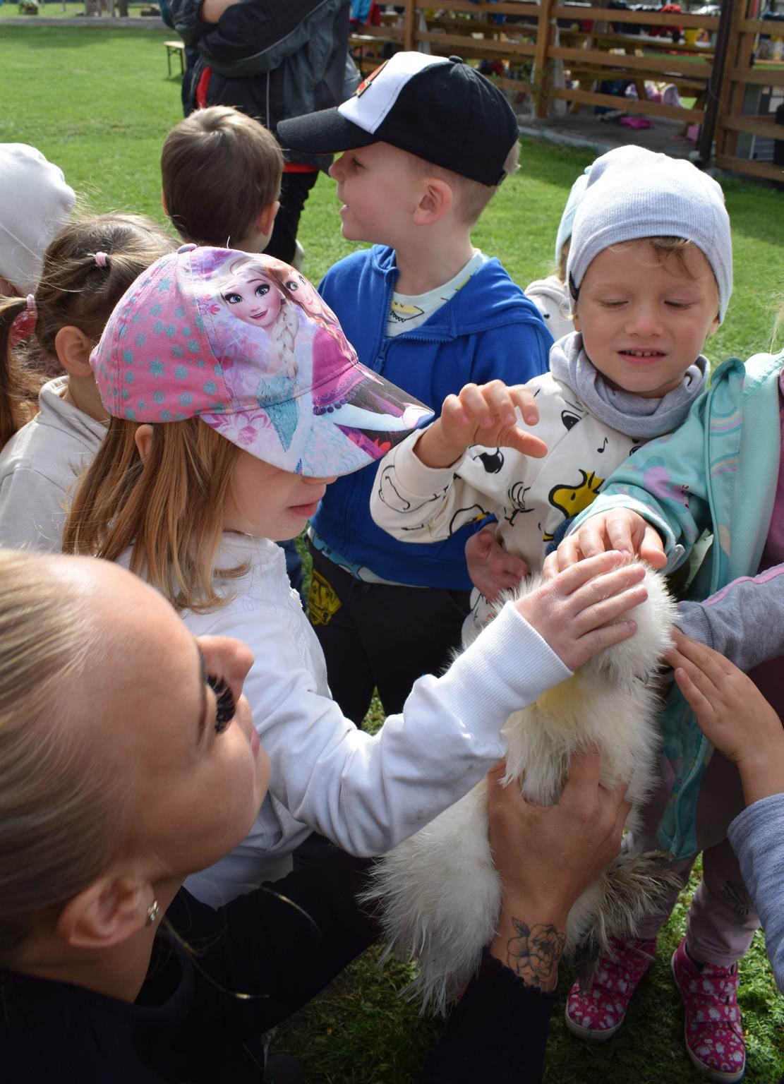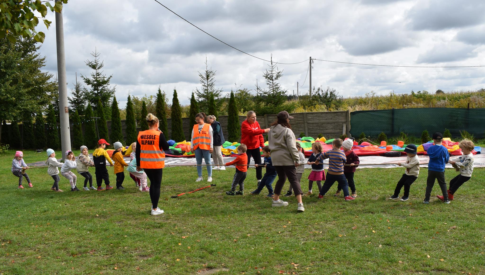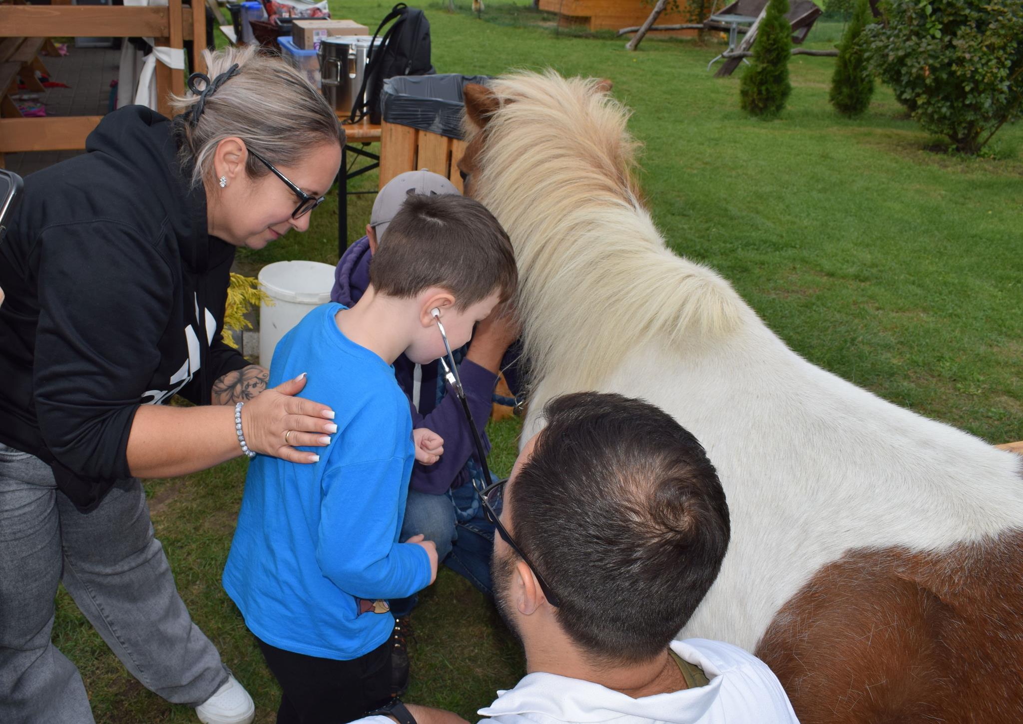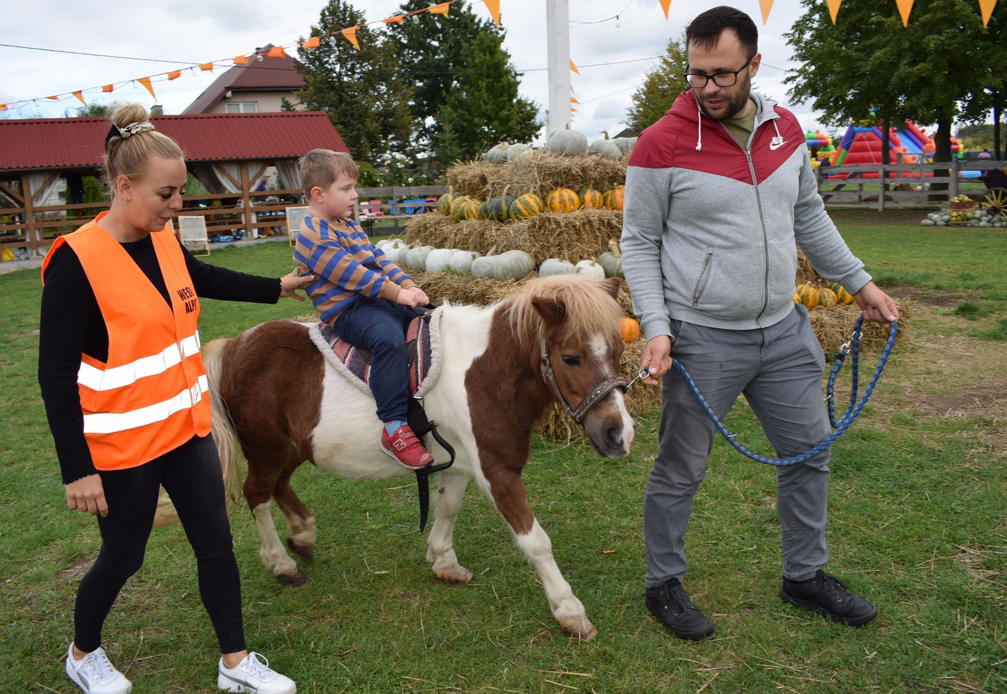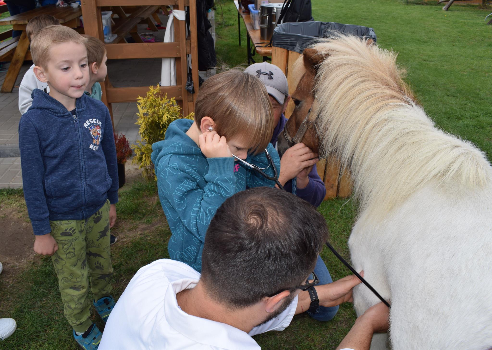 Na pierwszą wycieczkę w tym roku szkolnym wybraliśmy się do Farmy Wesołe Alpaki w miejscowości Żabokliki koło Siedlec. Najważniejszym punktem programu naszej wycieczki było spotkanie ze zwierzętami. Poznaliśmy mieszkańców farmy z bliska: alpaki, kozy, króliki, owce, osiołka, kucyka i kury. Uczyliśmy się, jak bezpiecznie i z szacunkiem obchodzić się ze zwierzątkami. Mogliśmy je pogłaskać, nakarmić, a także przytulić. Uczestniczyliśmy w jesiennych grach i zabawach, i kolejny raz przekonaliśmy się, że śmiech i ruch to najlepszy sposób na integrację! Miłych chwil doświadczyliśmy w trakcie oprowadzanek na kucyku, była to dla nas ważna lekcja zaufania do zwierząt. Dmuchańce – to prawdziwa frajda, to taka atrakcja, która nigdy się nam nie nudzi. Uczestniczyliśmy w zajęciach prowadzonych przez lekarza weterynarii. Dowiedzieliśmy się, jak wygląda praca ze zwierzętami „od kuchni”, zobaczyliśmy prawdziwe narzędzia lekarskie, mogliśmy także osłuchać serduszko kucyka. Gospodarzom farmy serdecznie dziękujemy za wszystkie atrakcje, ciekawe zajęcia, wspólną zabawę. Był to dla nas udany dzień i udana WYCIECZKA!